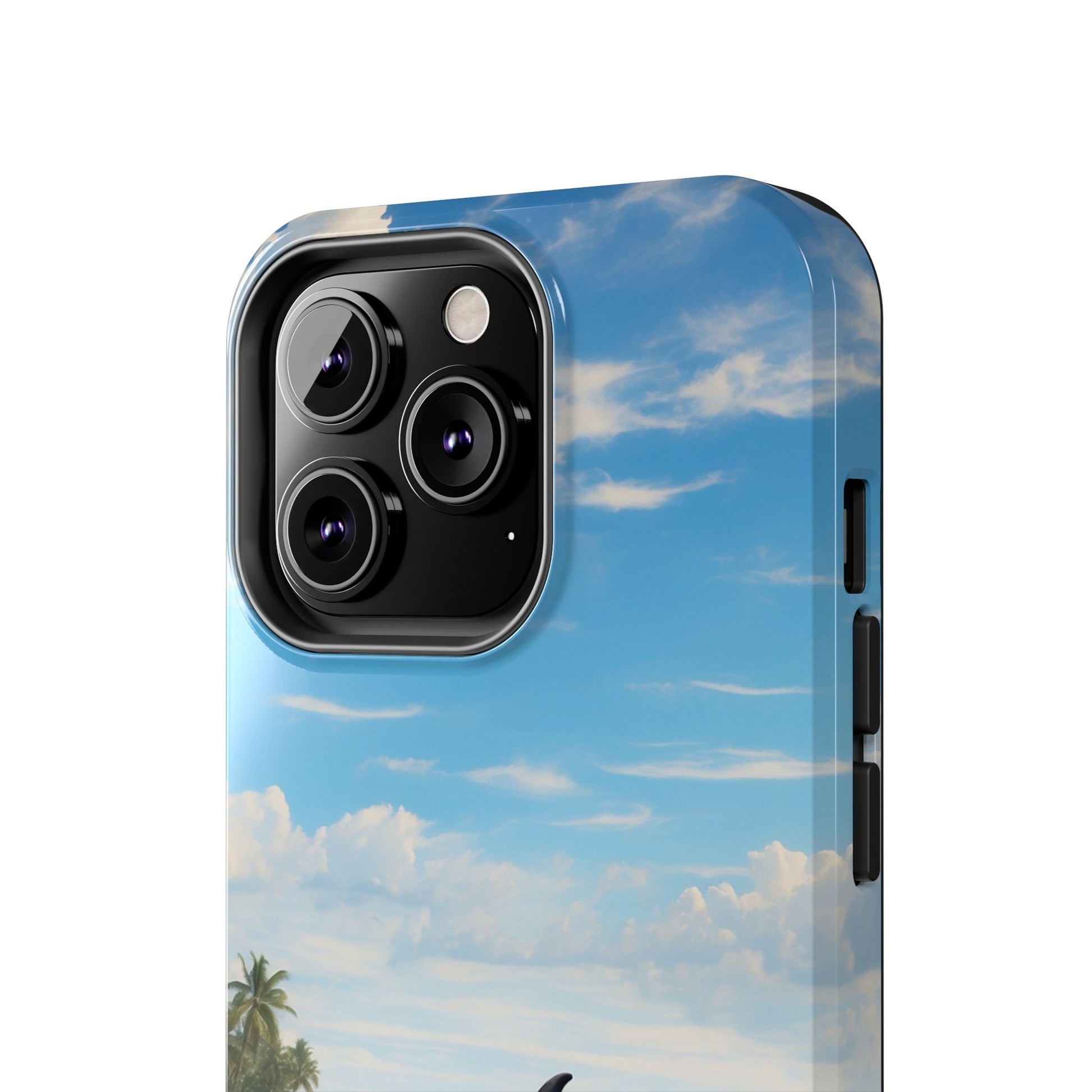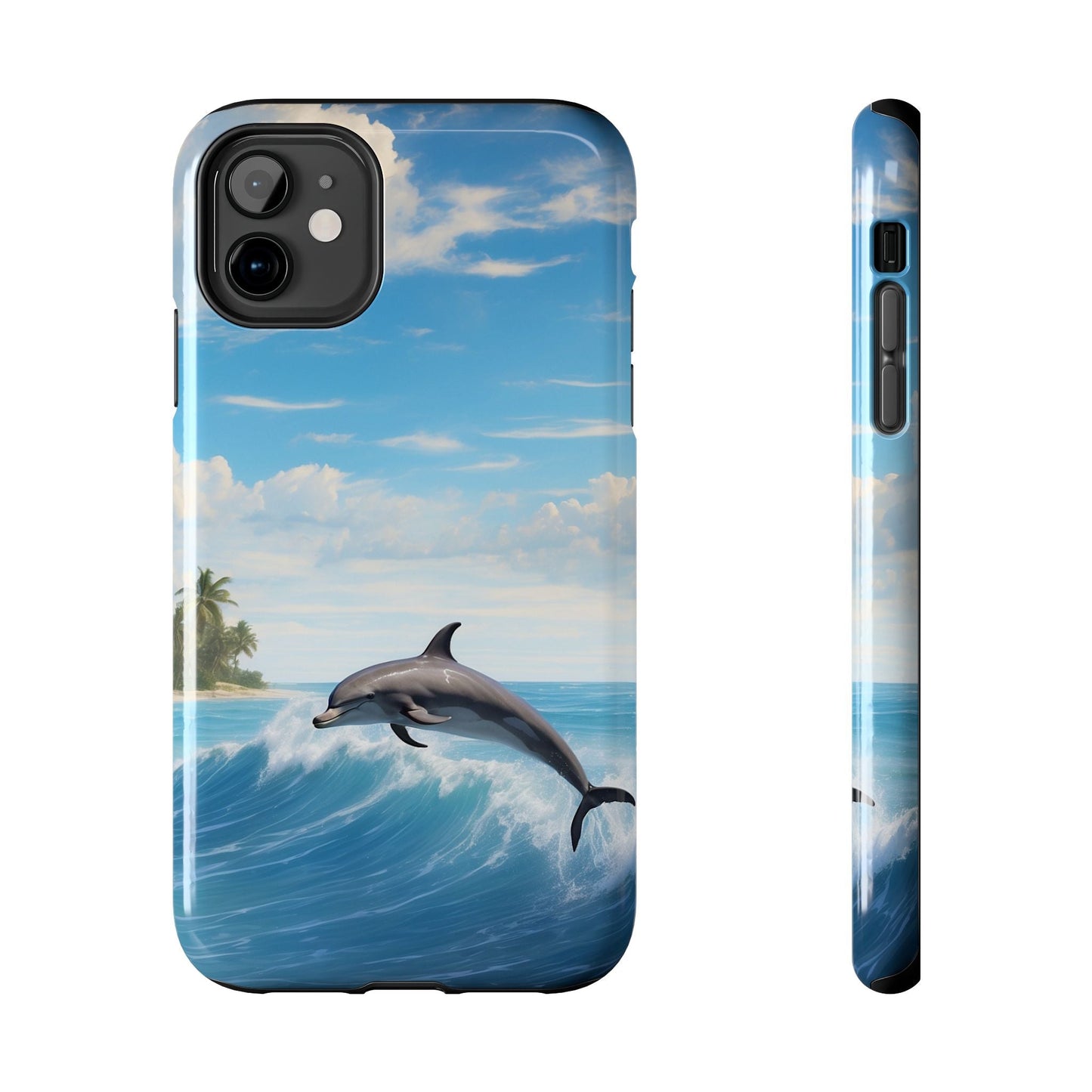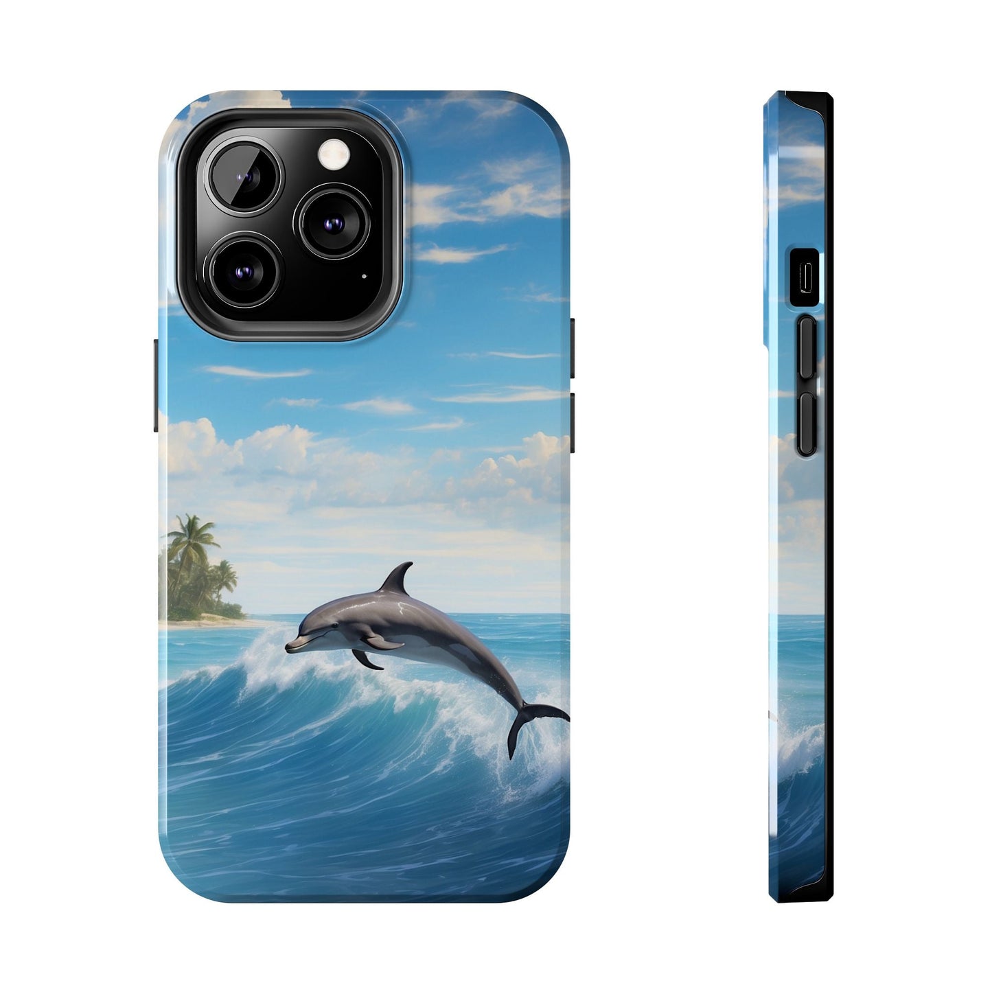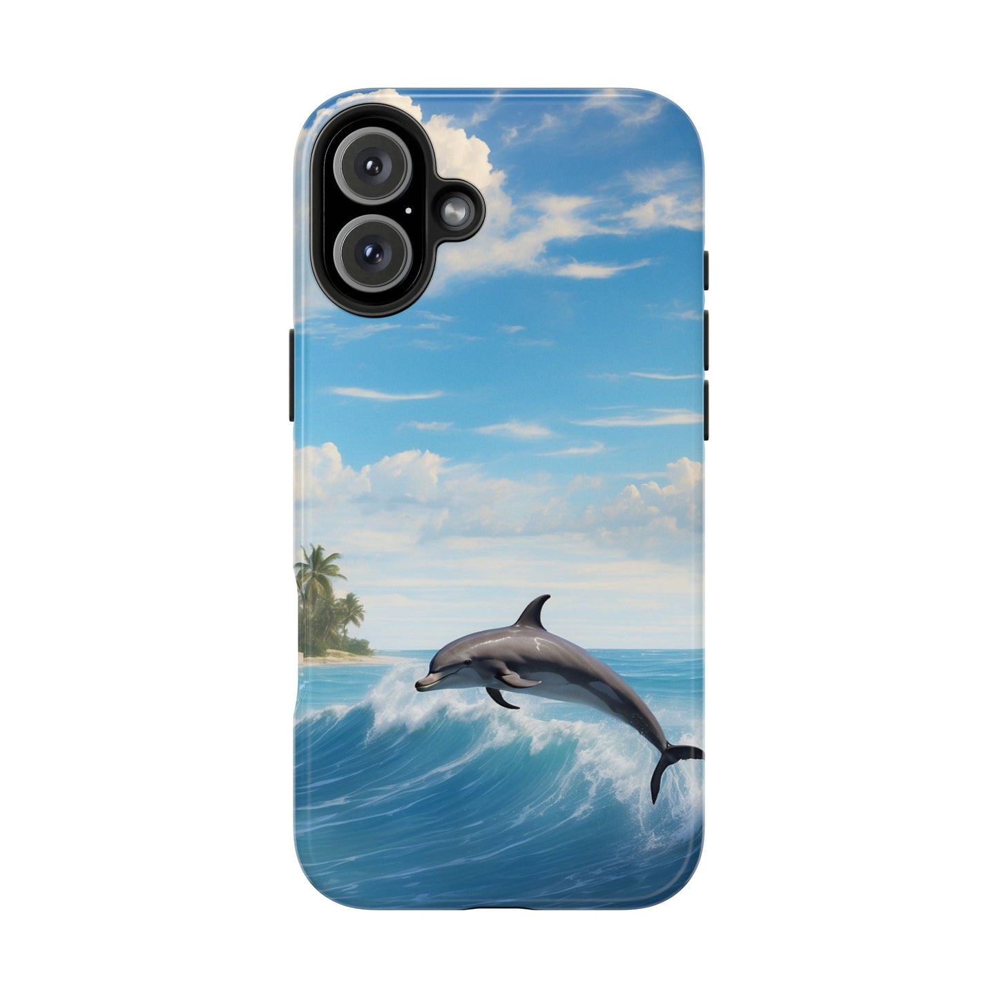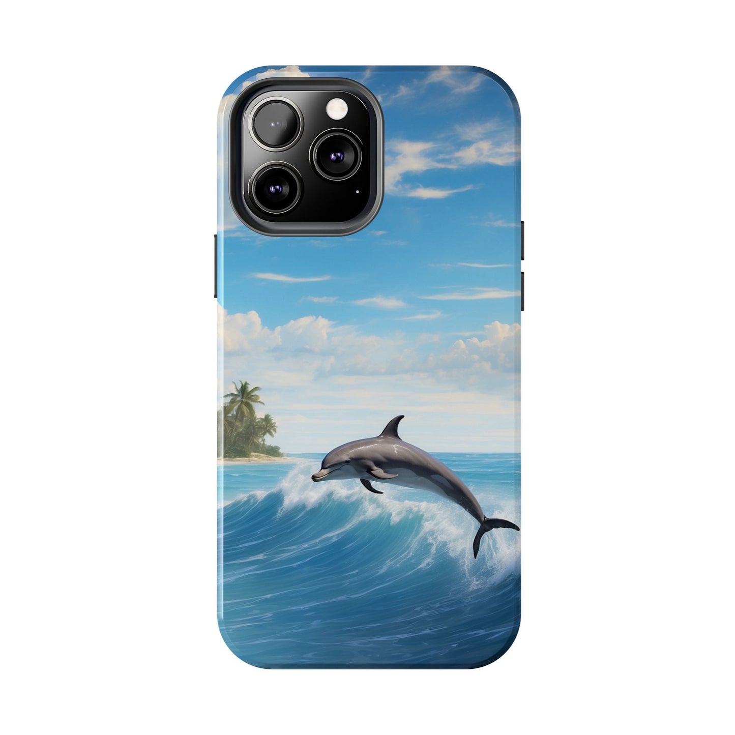 Ride the waves of adventure with this Tropical Surf Dolphin iPhone Case! Featuring a playful dolphin leaping through a crystal-blue wave, surrounded by lush palm trees and a bright tropical sky, this case is perfect for ocean lovers and free spirits. Designed with tough polycarbonate and a shock-absorbing TPU bumper, it protects your phone while bringing a touch of paradise to your everyday life.