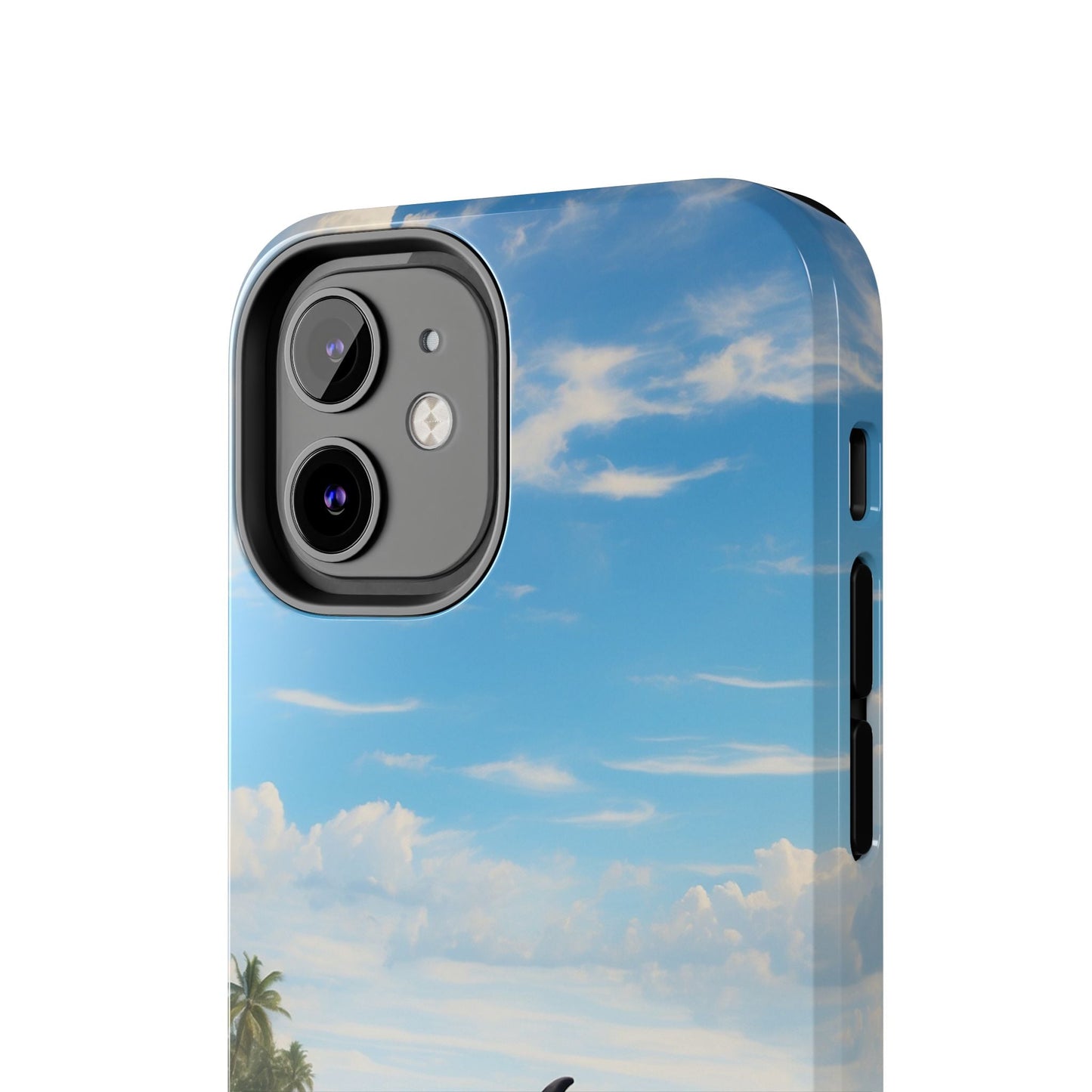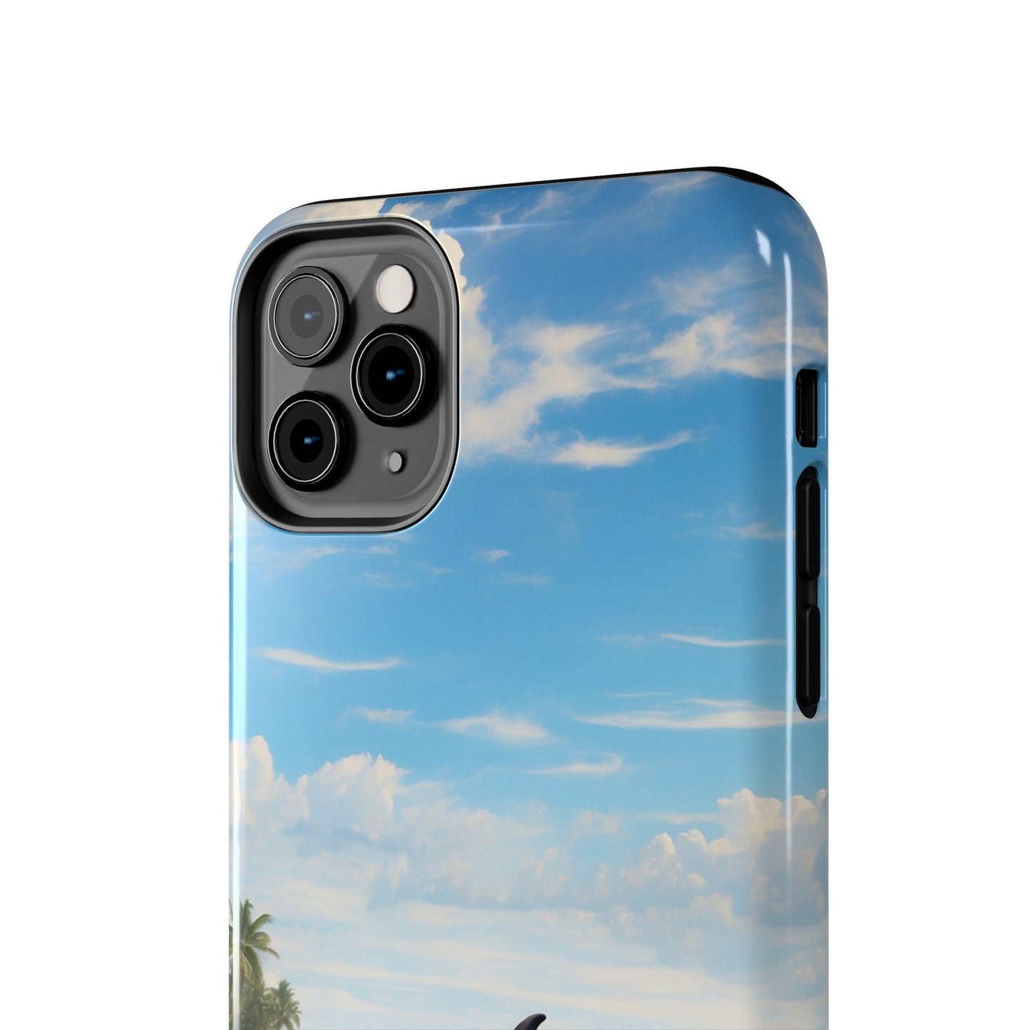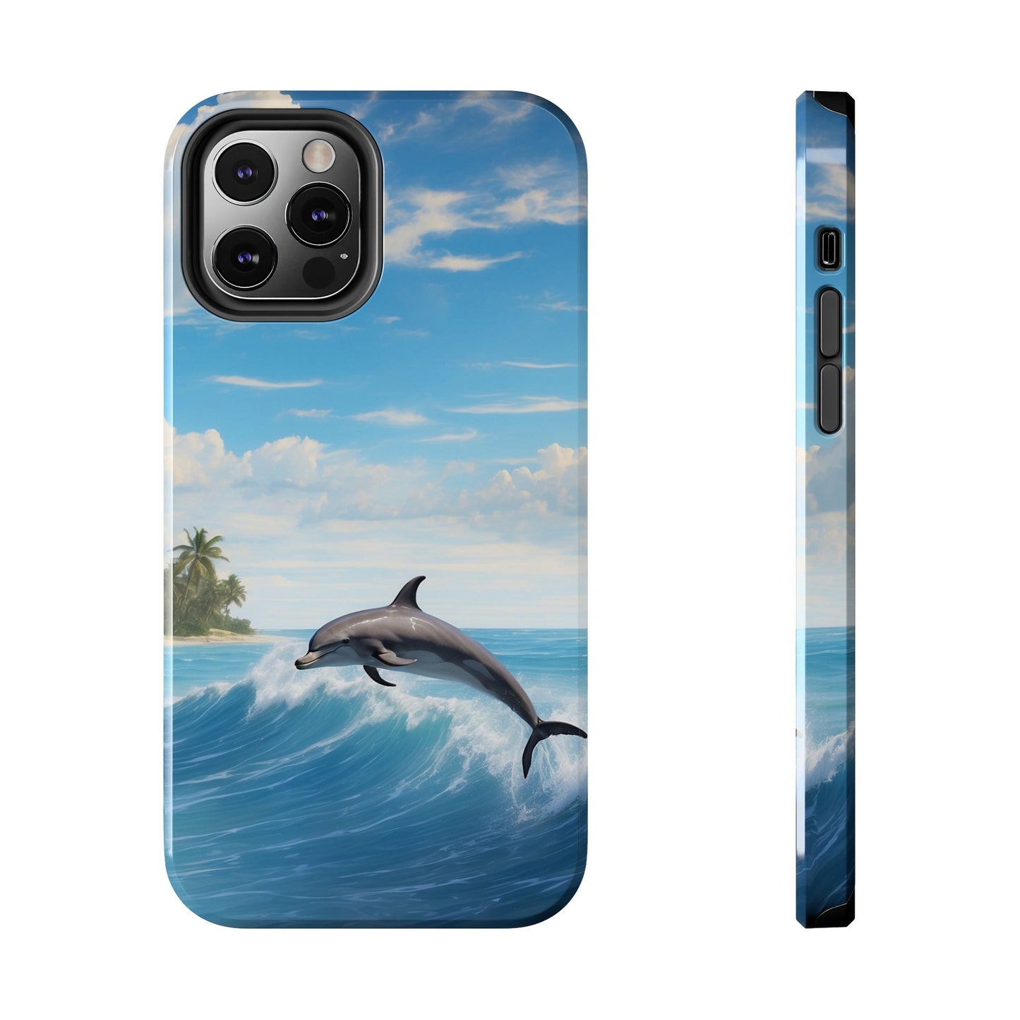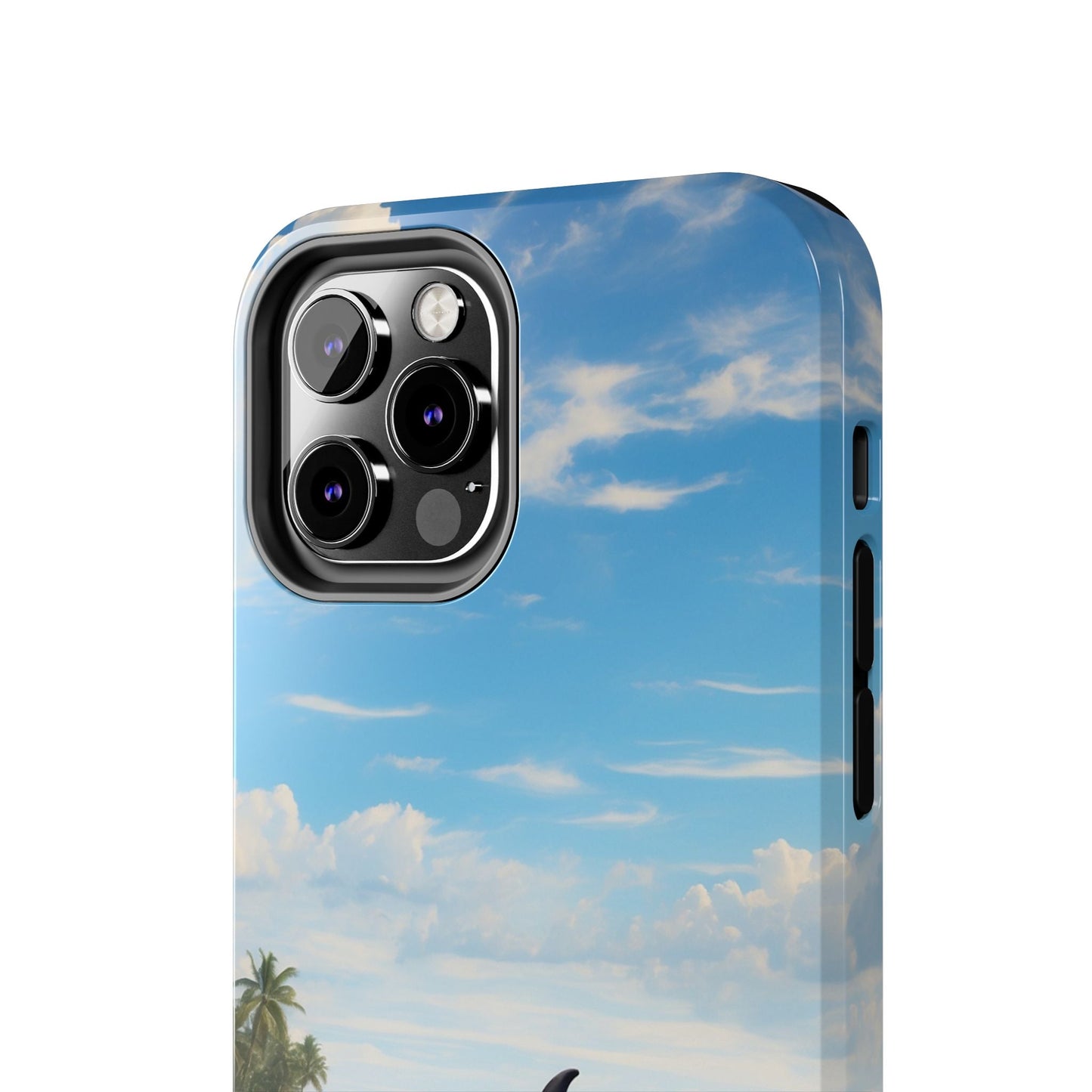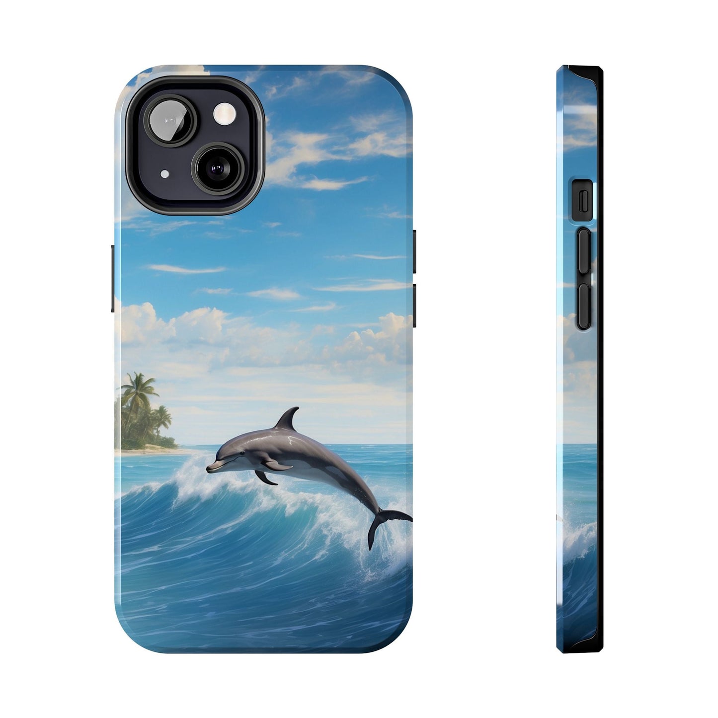 Ride the waves of adventure with this Tropical Surf Dolphin iPhone Case! Featuring a playful dolphin leaping through a crystal-blue wave, surrounded by lush palm trees and a bright tropical sky, this case is perfect for ocean lovers and free spirits. Designed with tough polycarbonate and a shock-absorbing TPU bumper, it protects your phone while bringing a touch of paradise to your everyday life.