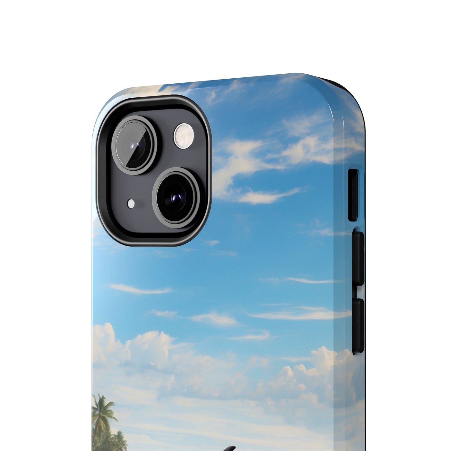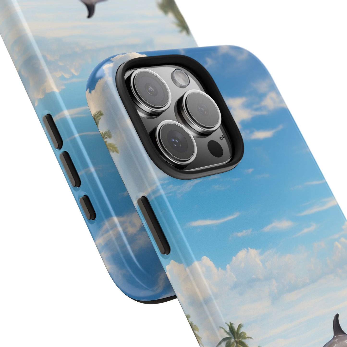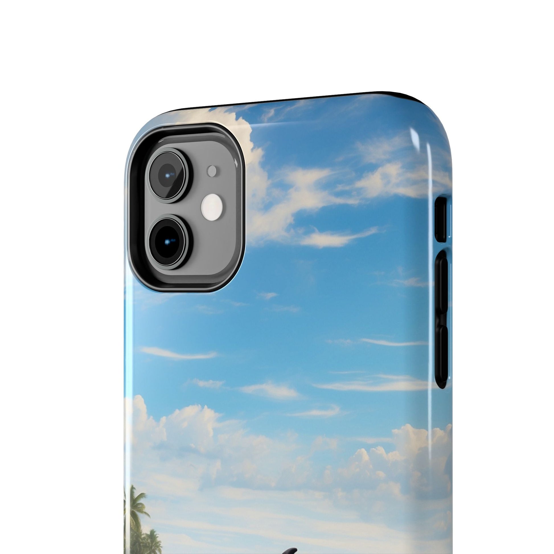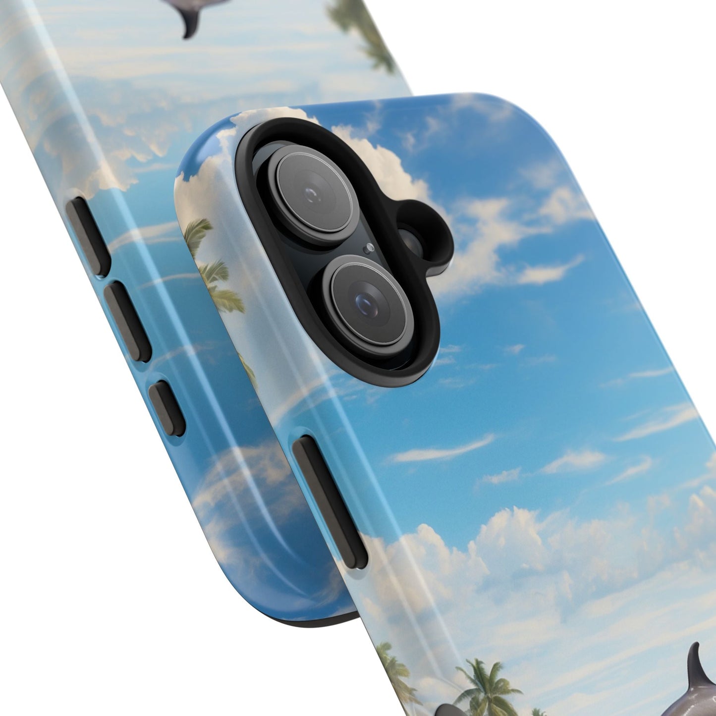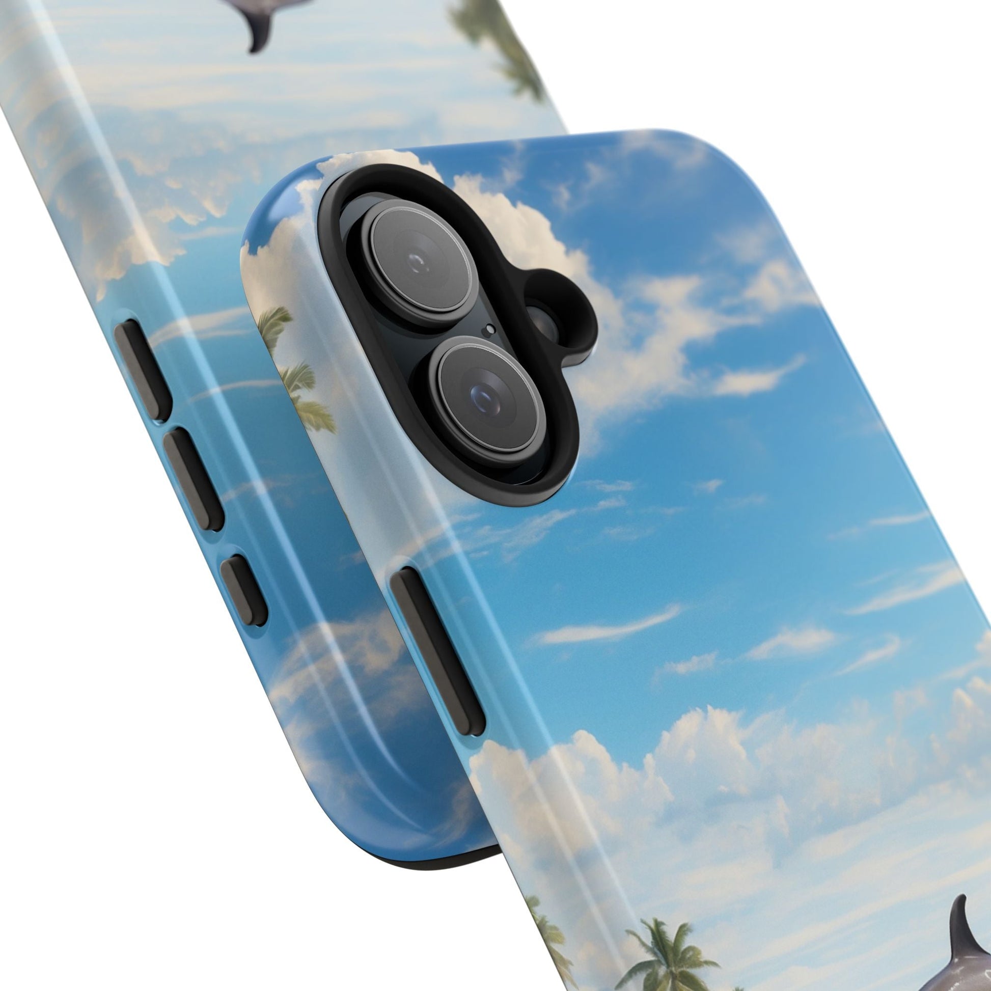Ride the waves of adventure with this Tropical Surf Dolphin iPhone Case! Featuring a playful dolphin leaping through a crystal-blue wave, surrounded by lush palm trees and a bright tropical sky, this case is perfect for ocean lovers and free spirits. Designed with tough polycarbonate and a shock-absorbing TPU bumper, it protects your phone while bringing a touch of paradise to your everyday life.