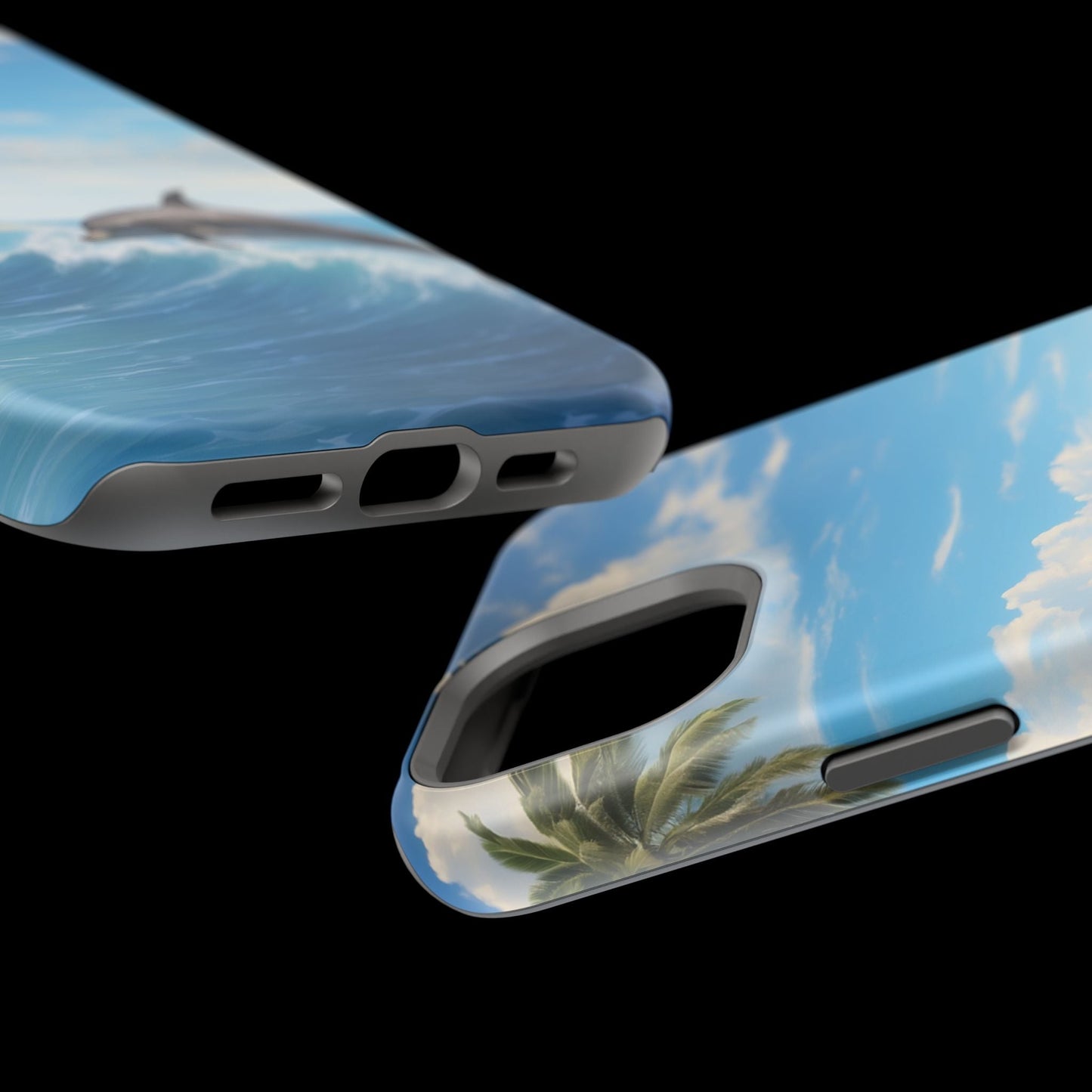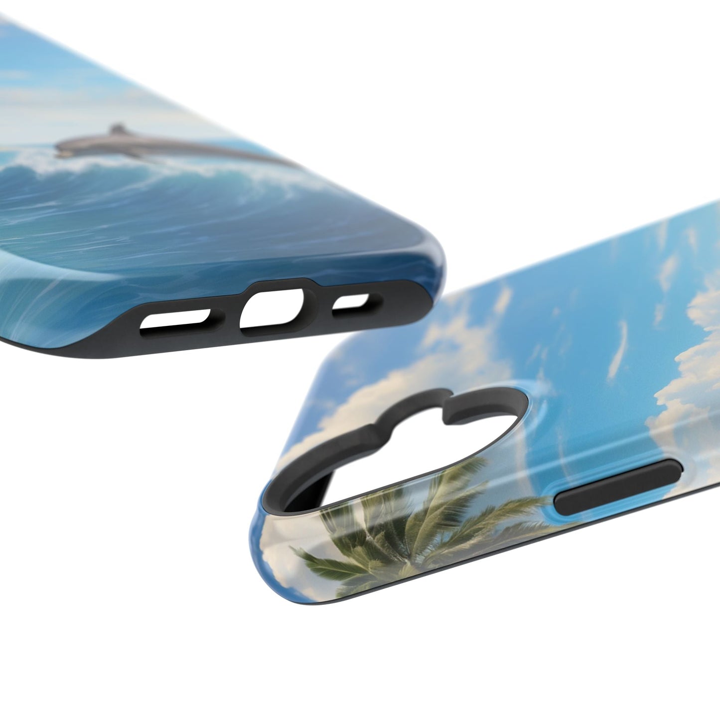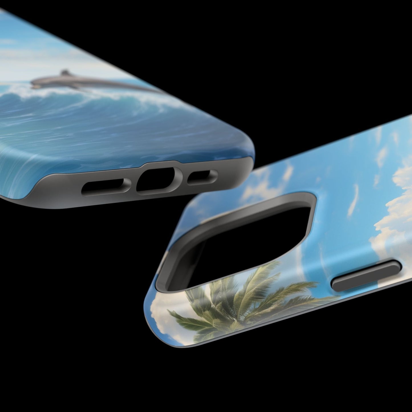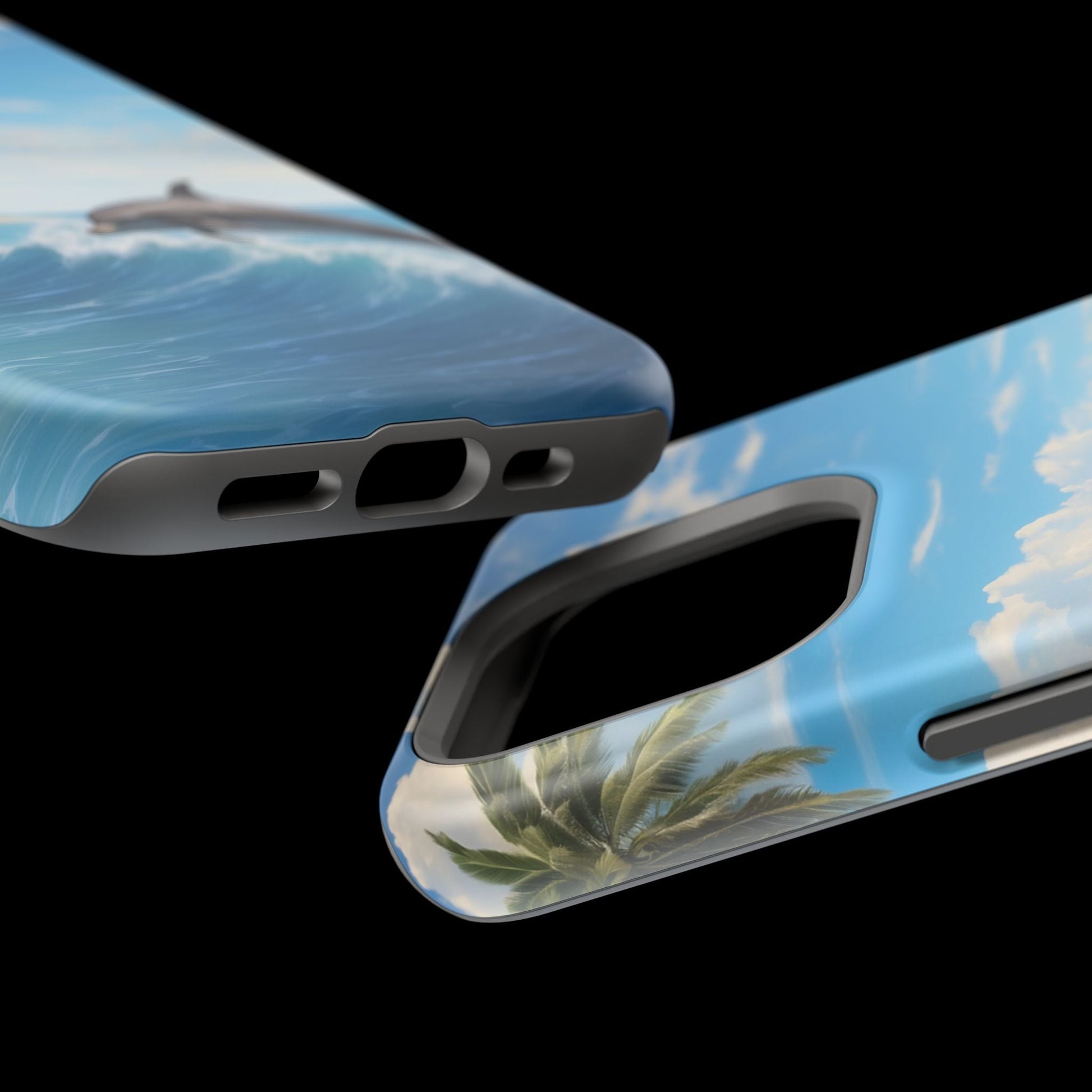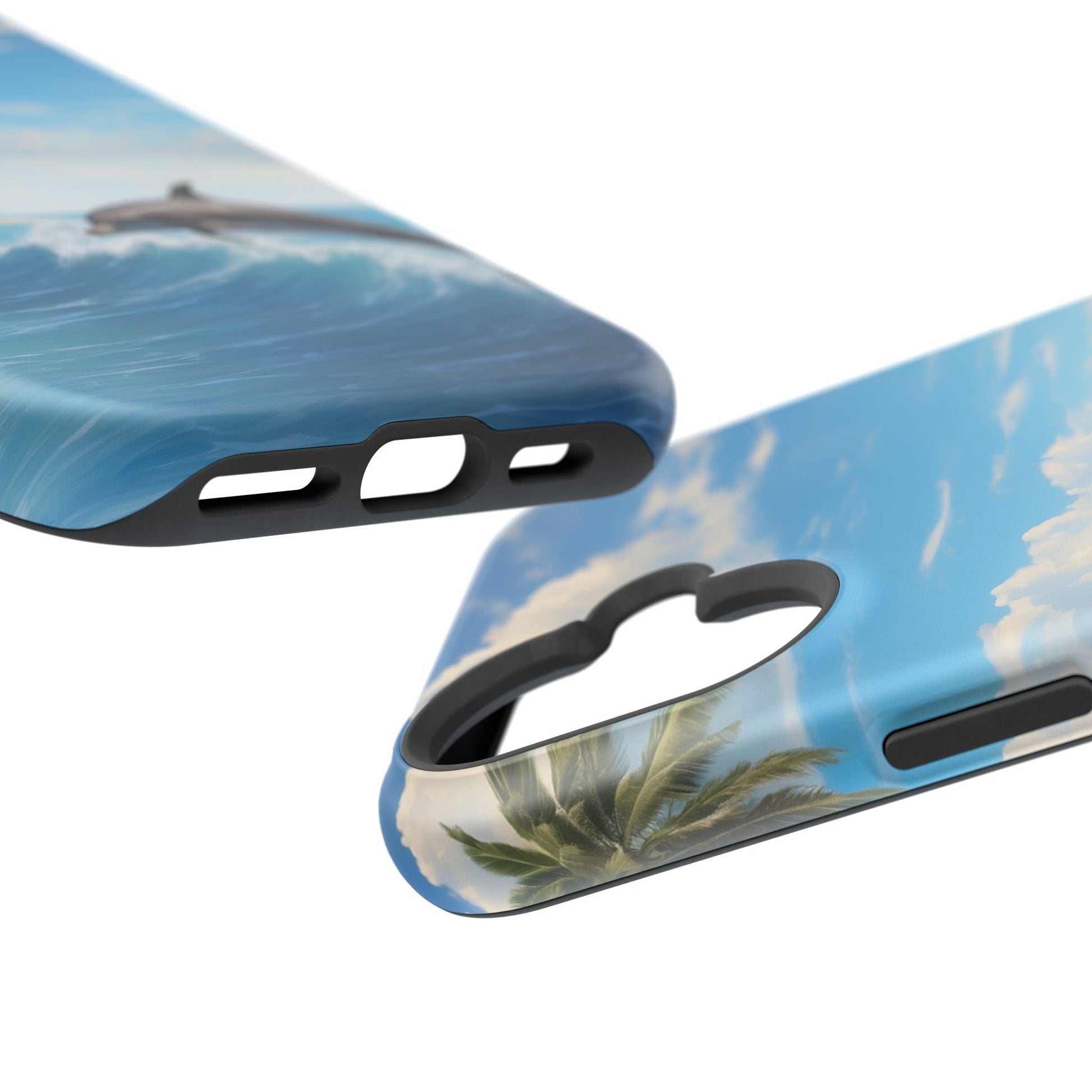 Ride the wave of convenience and style with this Tropical Surf Dolphin MagSafe Case! Featuring a majestic dolphin soaring over crystal-clear waves, this case brings a sense of freedom and ocean adventure to your device. With built-in MagSafe magnets for effortless wireless charging, plus a shockproof TPU bumper and hard polycarbonate shell, it’s both functional and stylish.