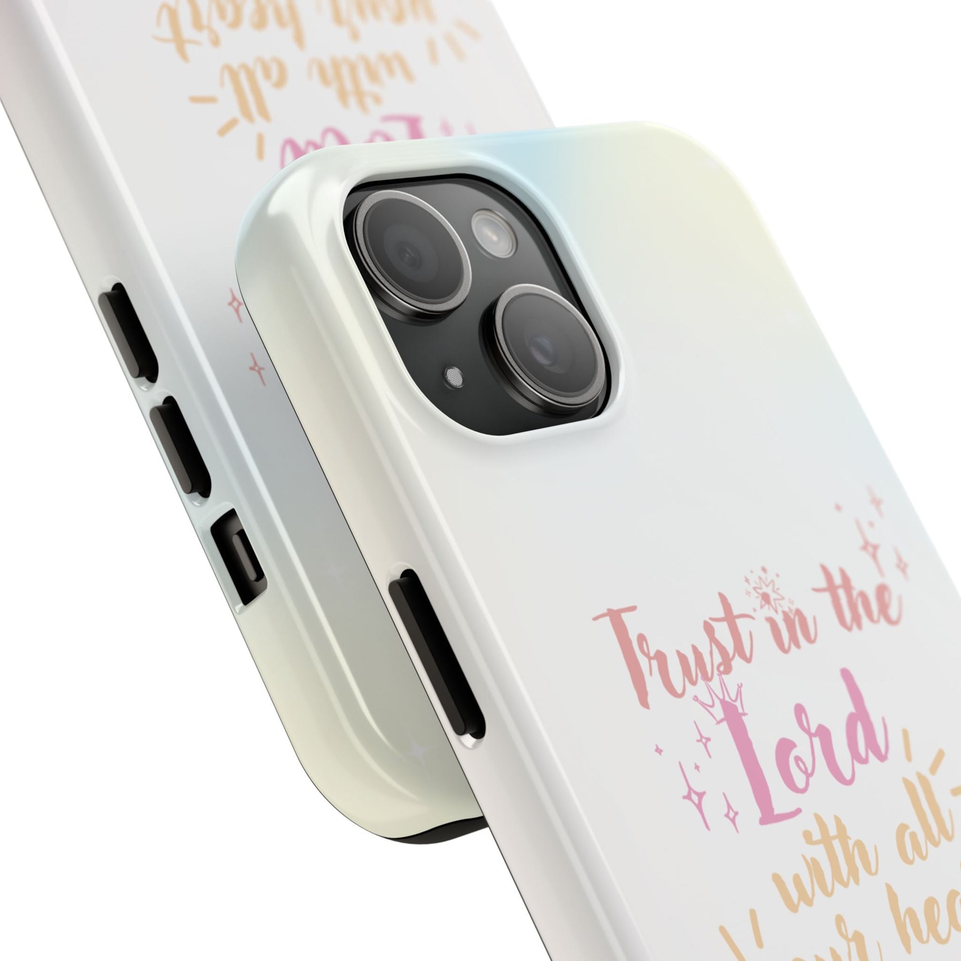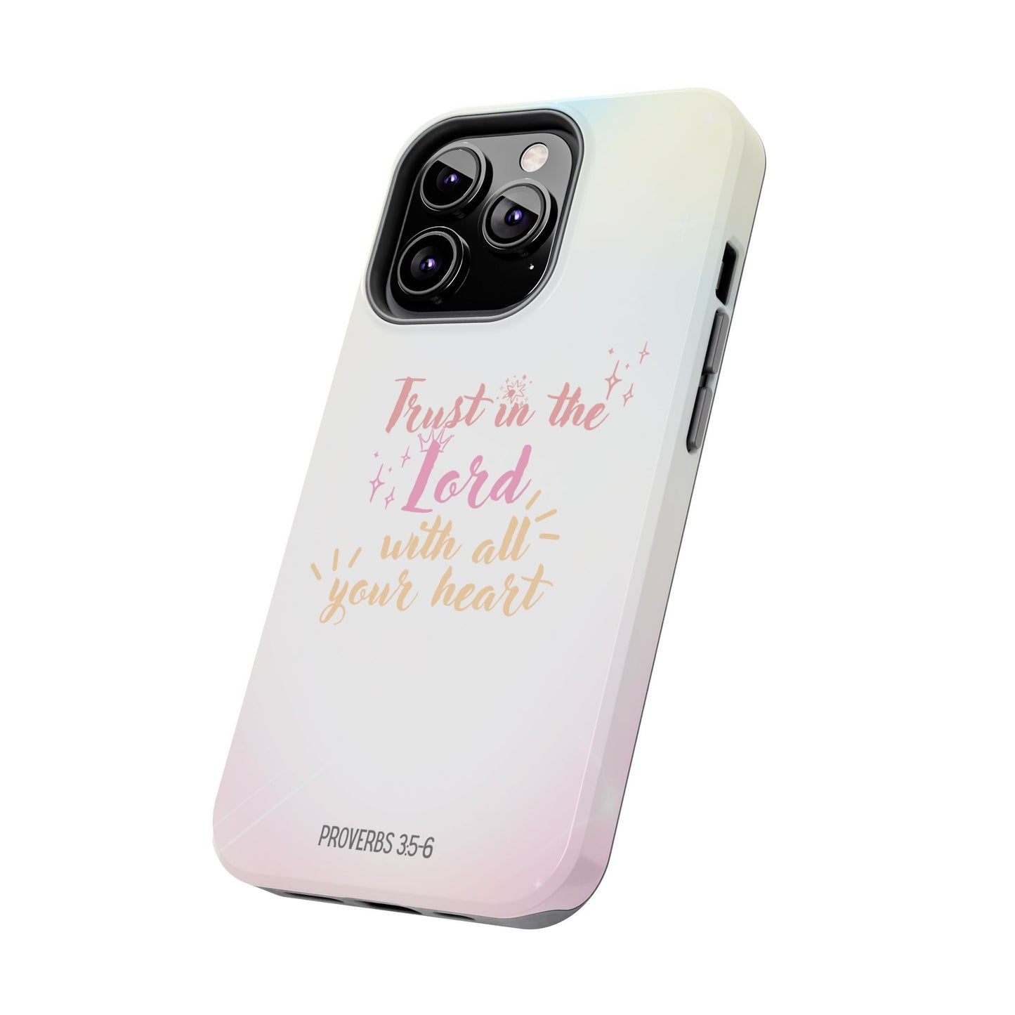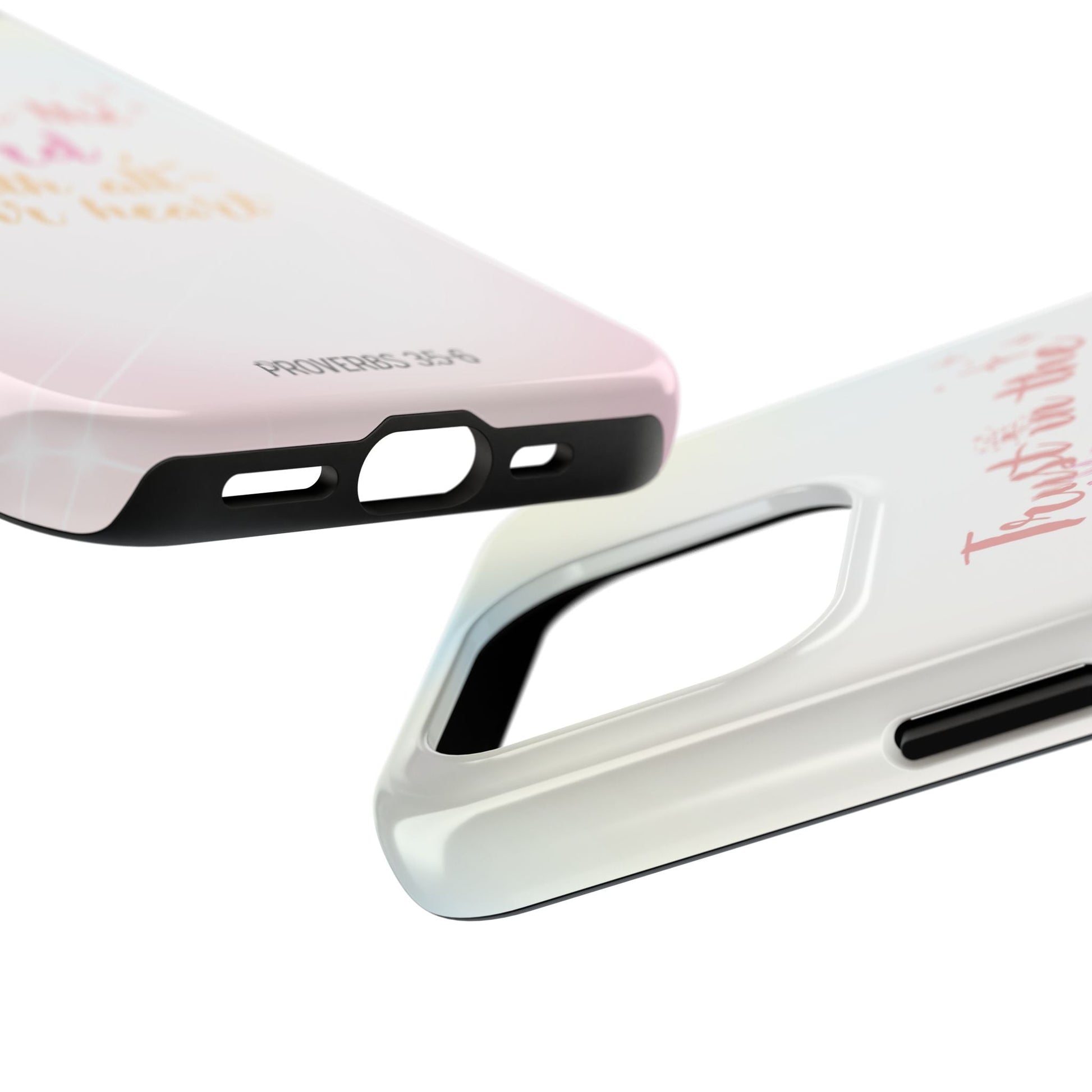 Find strength in faith with this enchanting iPhone case featuring Proverbs 3:5-6. The soft pastel hues and sparkling design serve as a constant reminder to trust in the Lord with all your heart.
