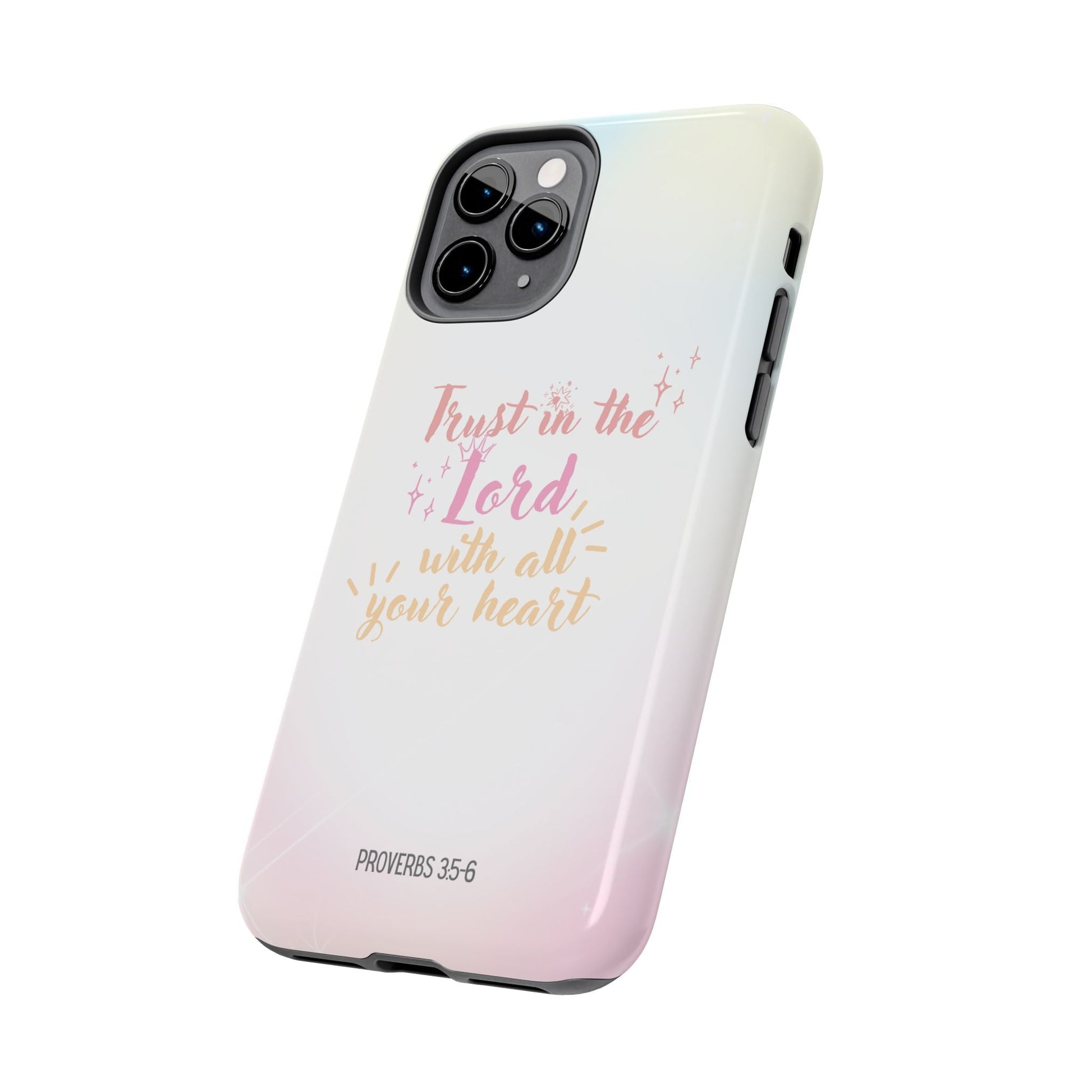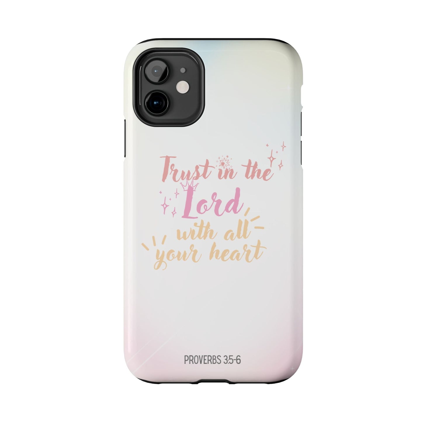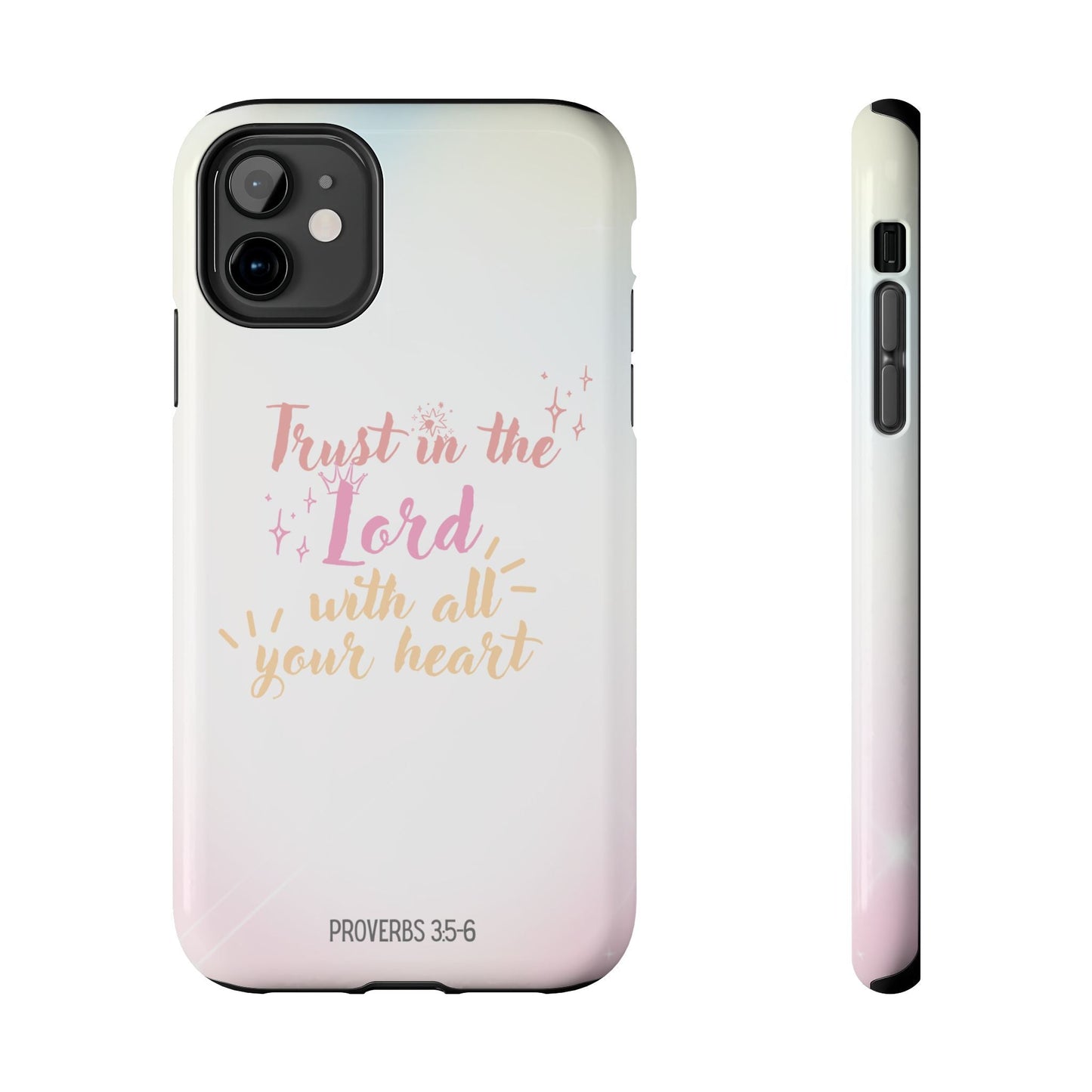Find strength in faith with this enchanting iPhone case featuring Proverbs 3:5-6. The soft pastel hues and sparkling design serve as a constant reminder to trust in the Lord with all your heart.