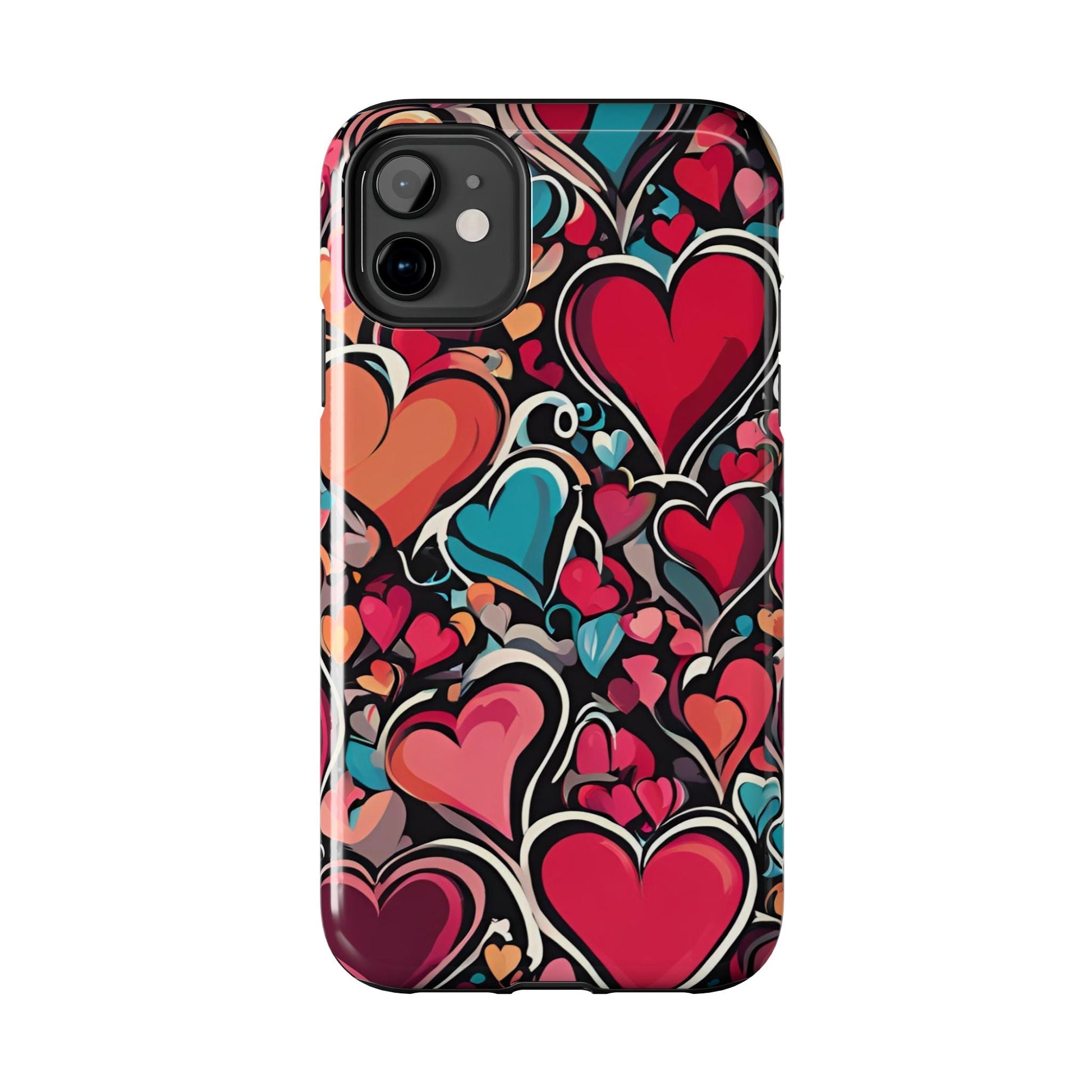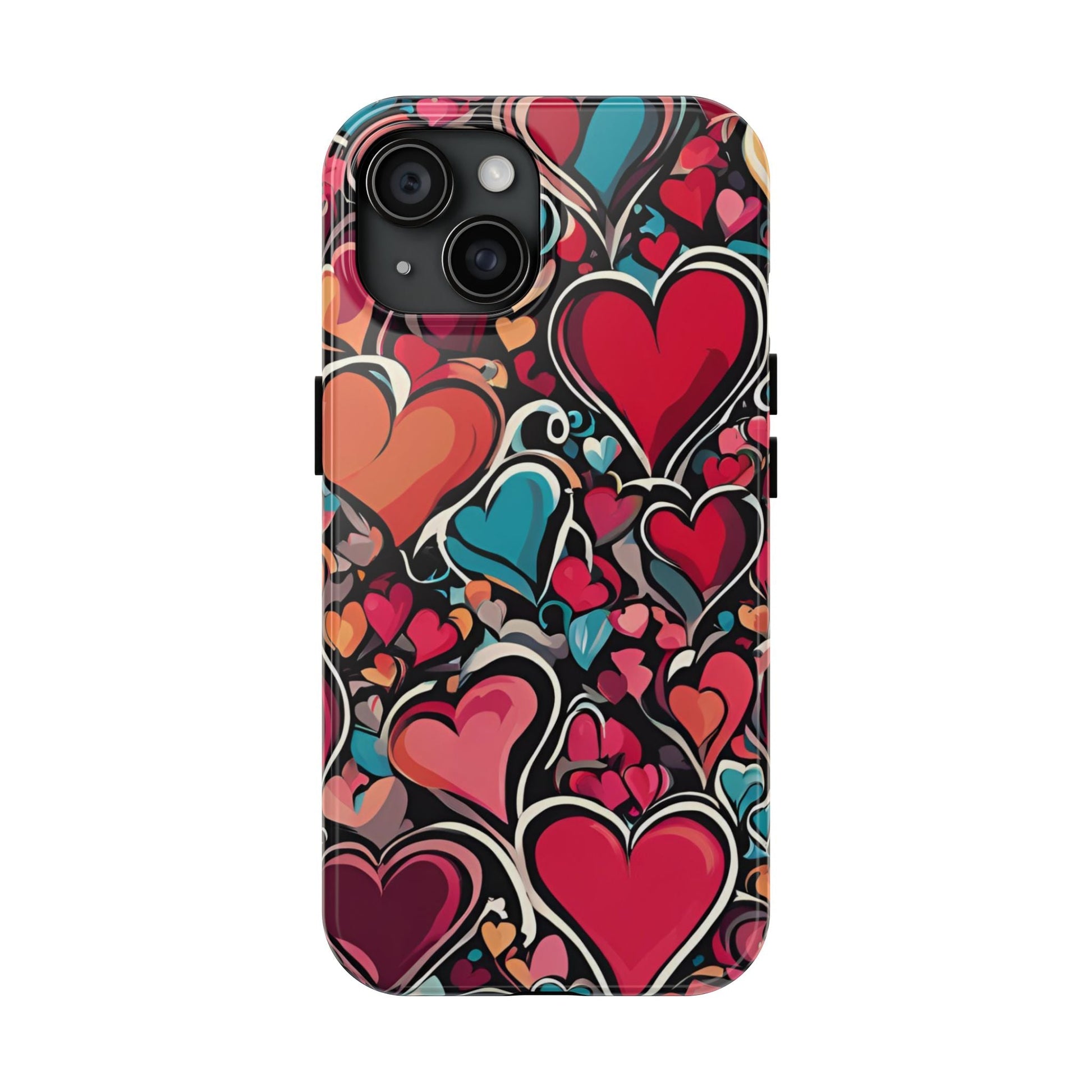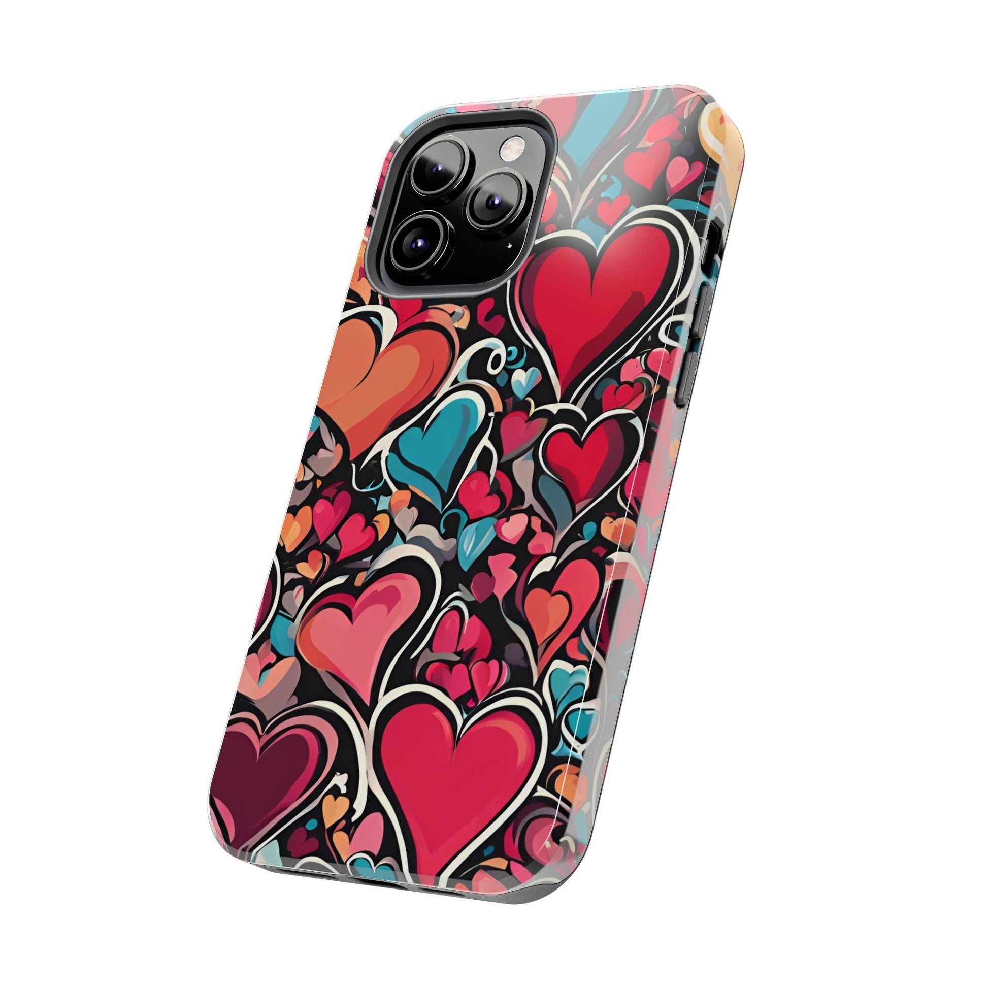 Show your love for art and color with the Vibrant Multicolor Heart Art iPhone Case. Featuring a vibrant heart pattern in red, pink, teal, and orange tones against a striking black background, this case blends fashion and functionality. Built with a slim yet protective design, it guards your iPhone against daily bumps and scratches while maintaining a sleek profile.