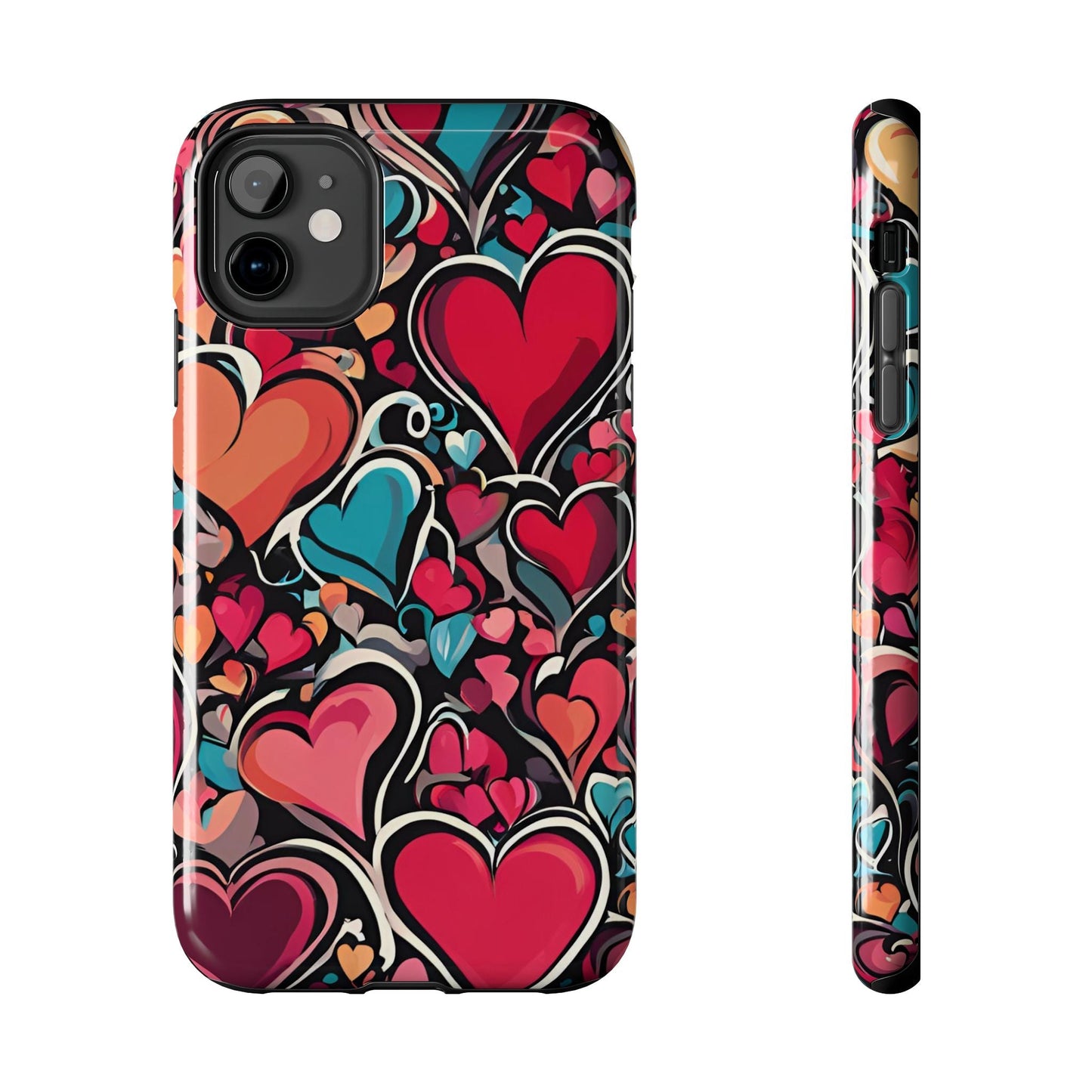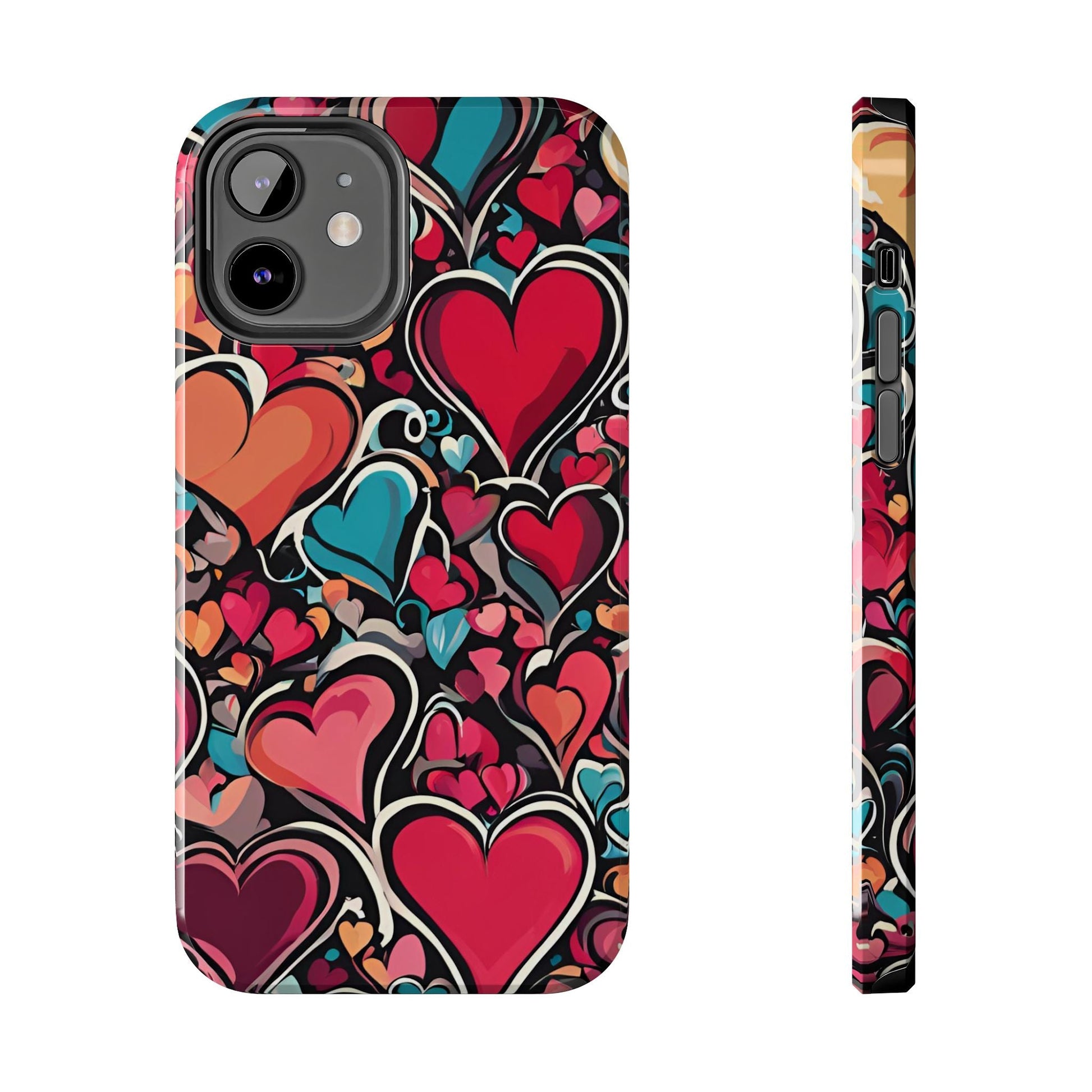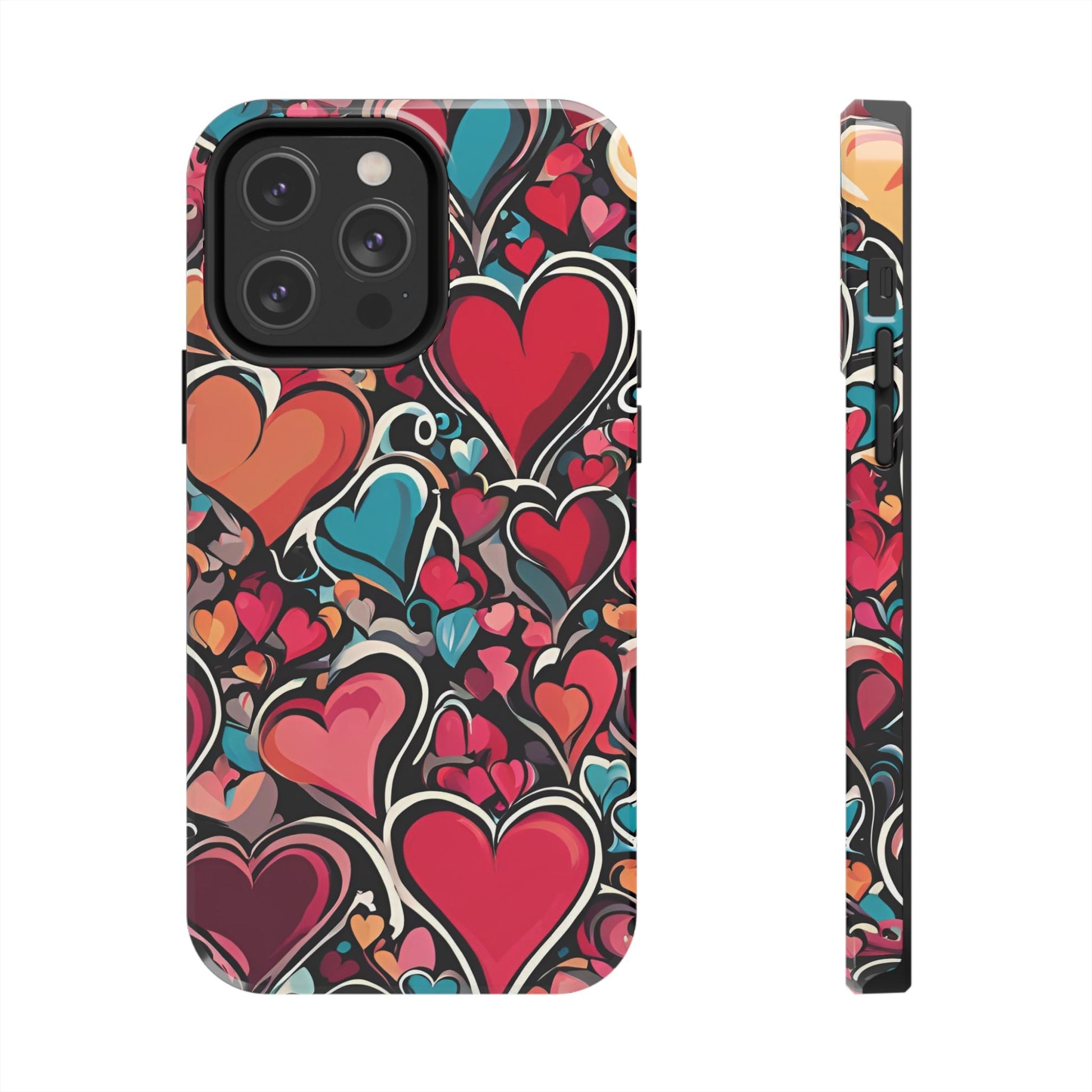 Show your love for art and color with the Vibrant Multicolor Heart Art iPhone Case. Featuring a vibrant heart pattern in red, pink, teal, and orange tones against a striking black background, this case blends fashion and functionality. Built with a slim yet protective design, it guards your iPhone against daily bumps and scratches while maintaining a sleek profile.