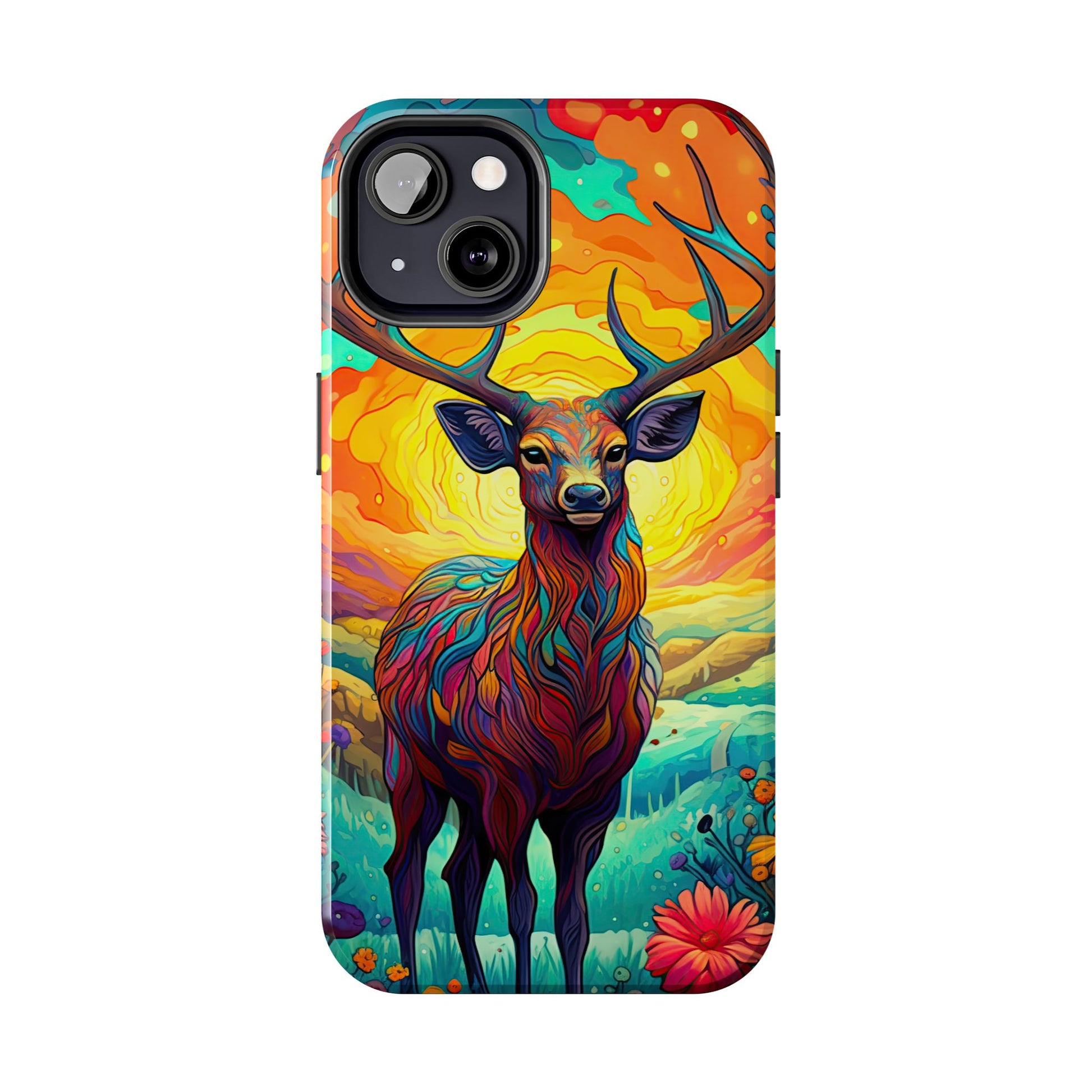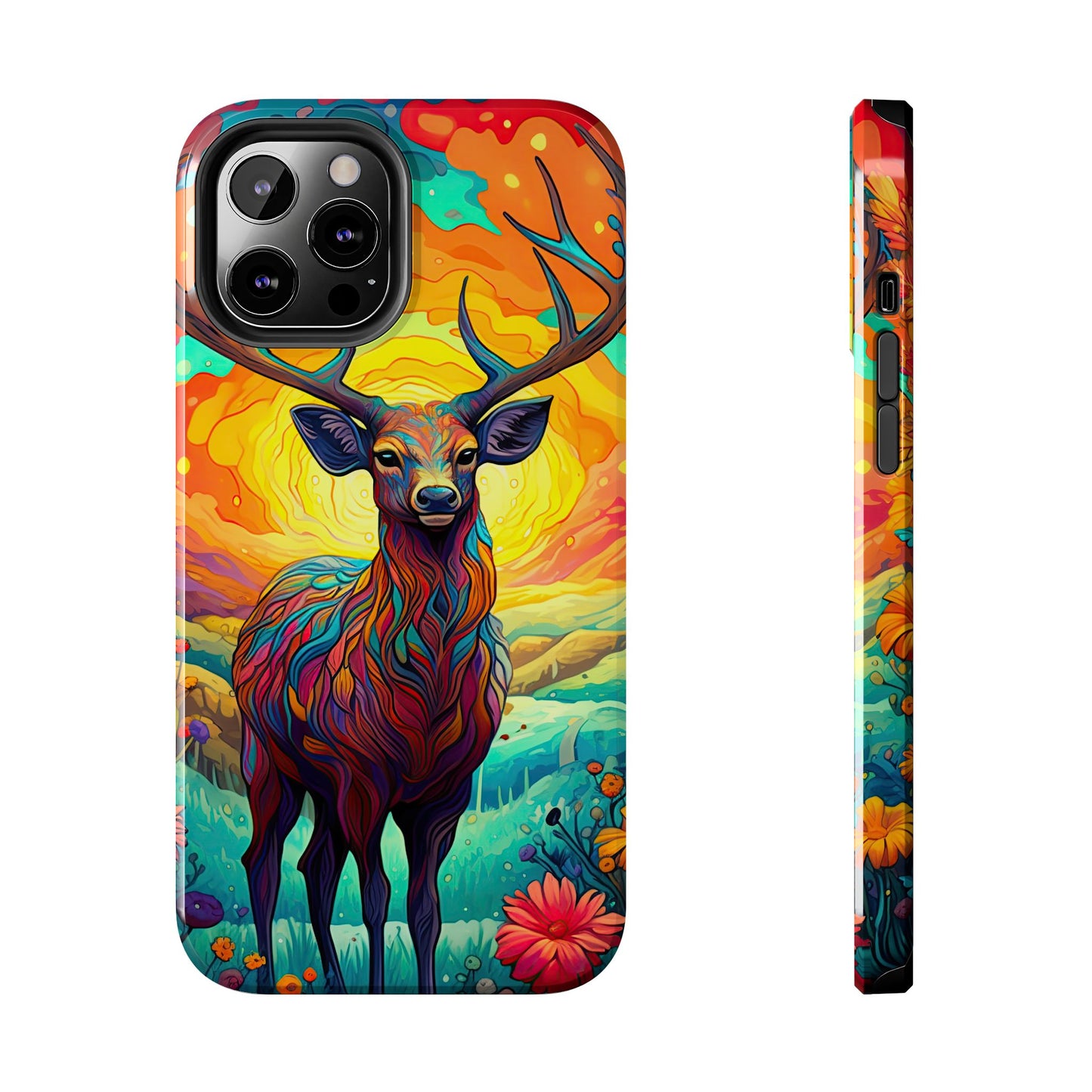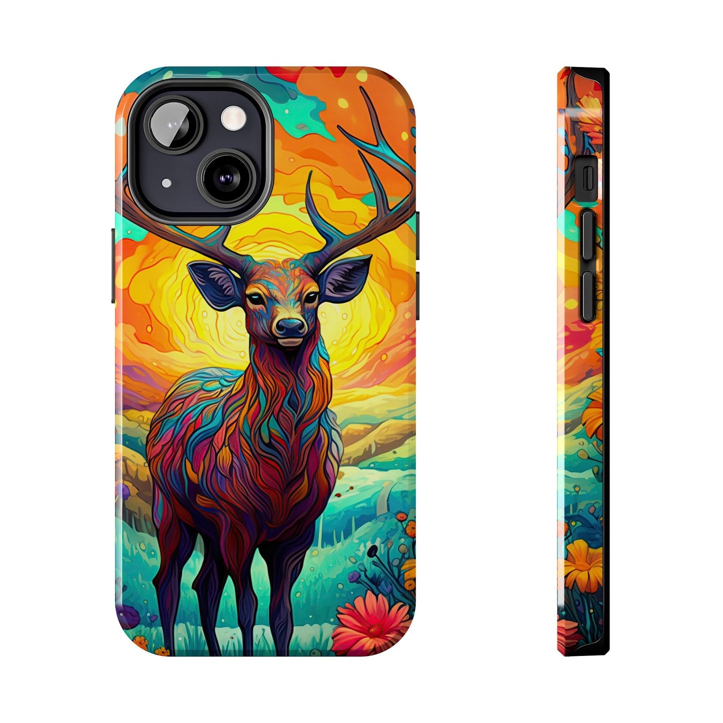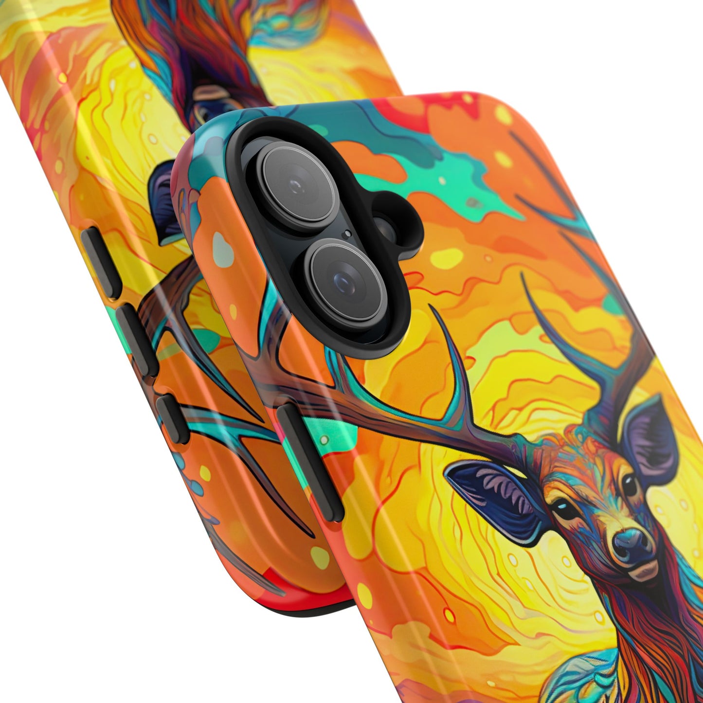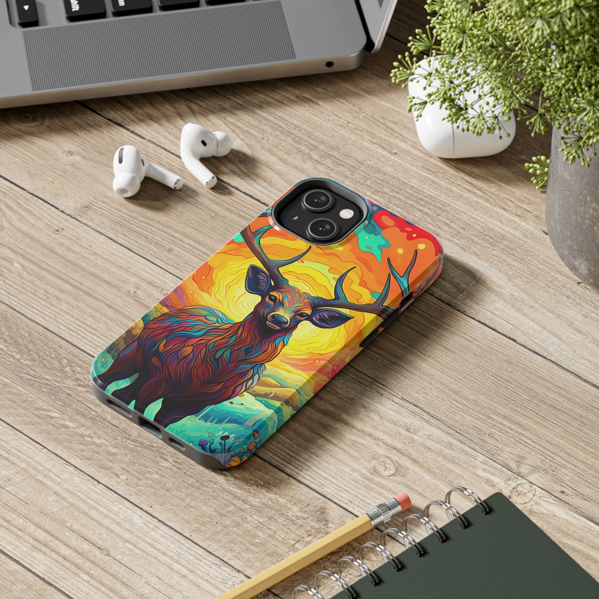 Show off your love for bold designs and nature with the Vibrant Stag in Bloom iPhone Case. This eye-catching artwork features a majestic deer surrounded by glowing wildflowers and a radiant sunset, all in a kaleidoscope of vivid colors. Perfect for combining artistry and practicality.