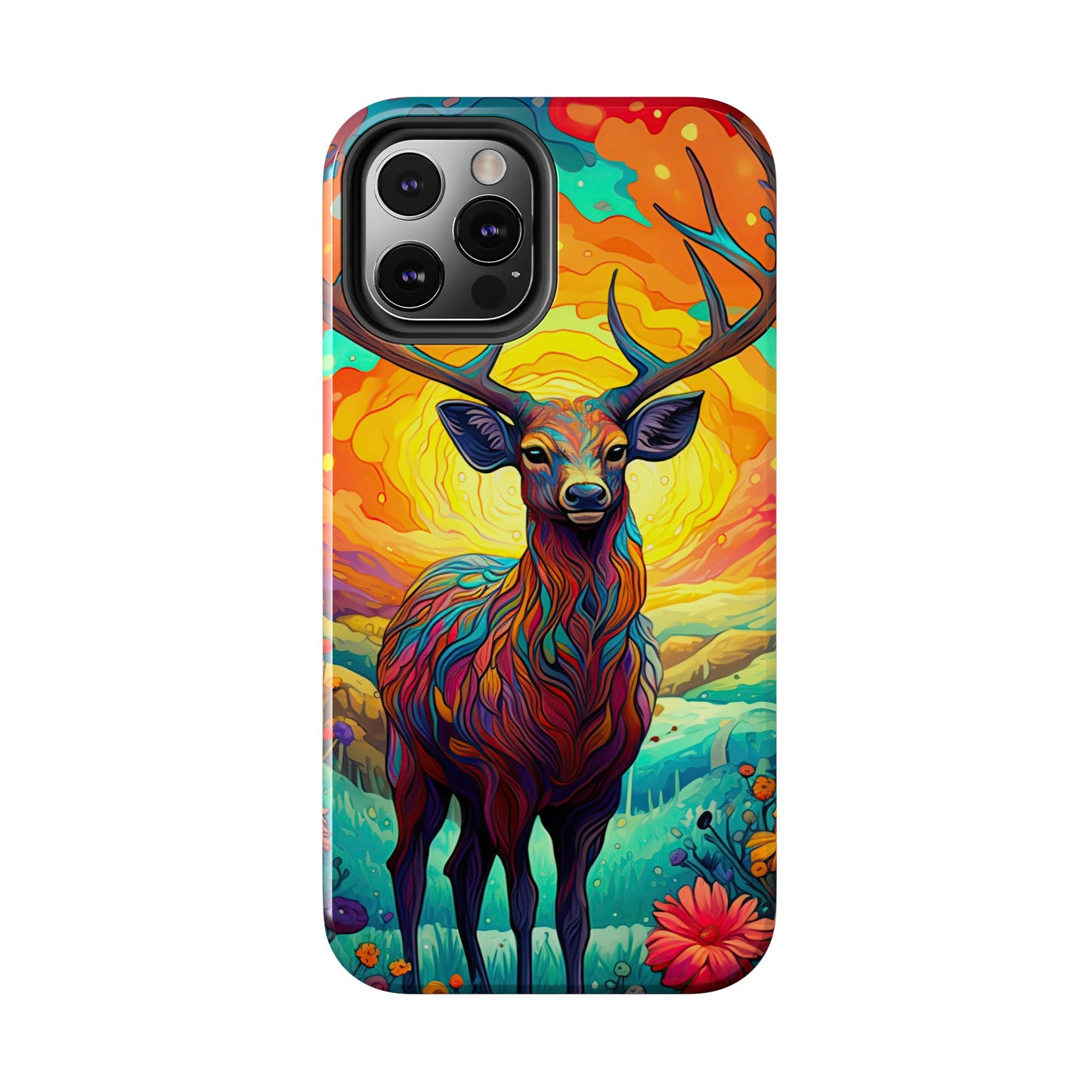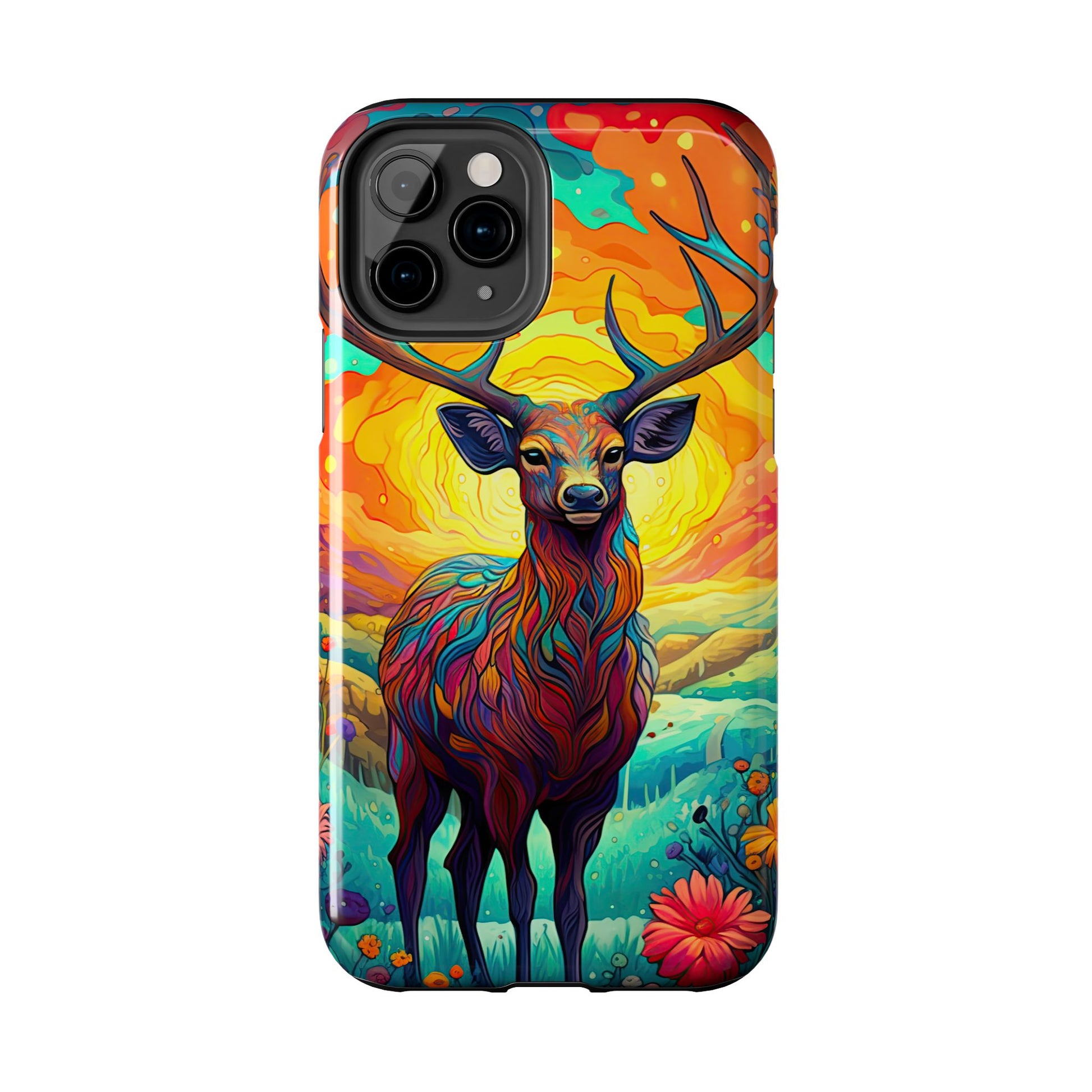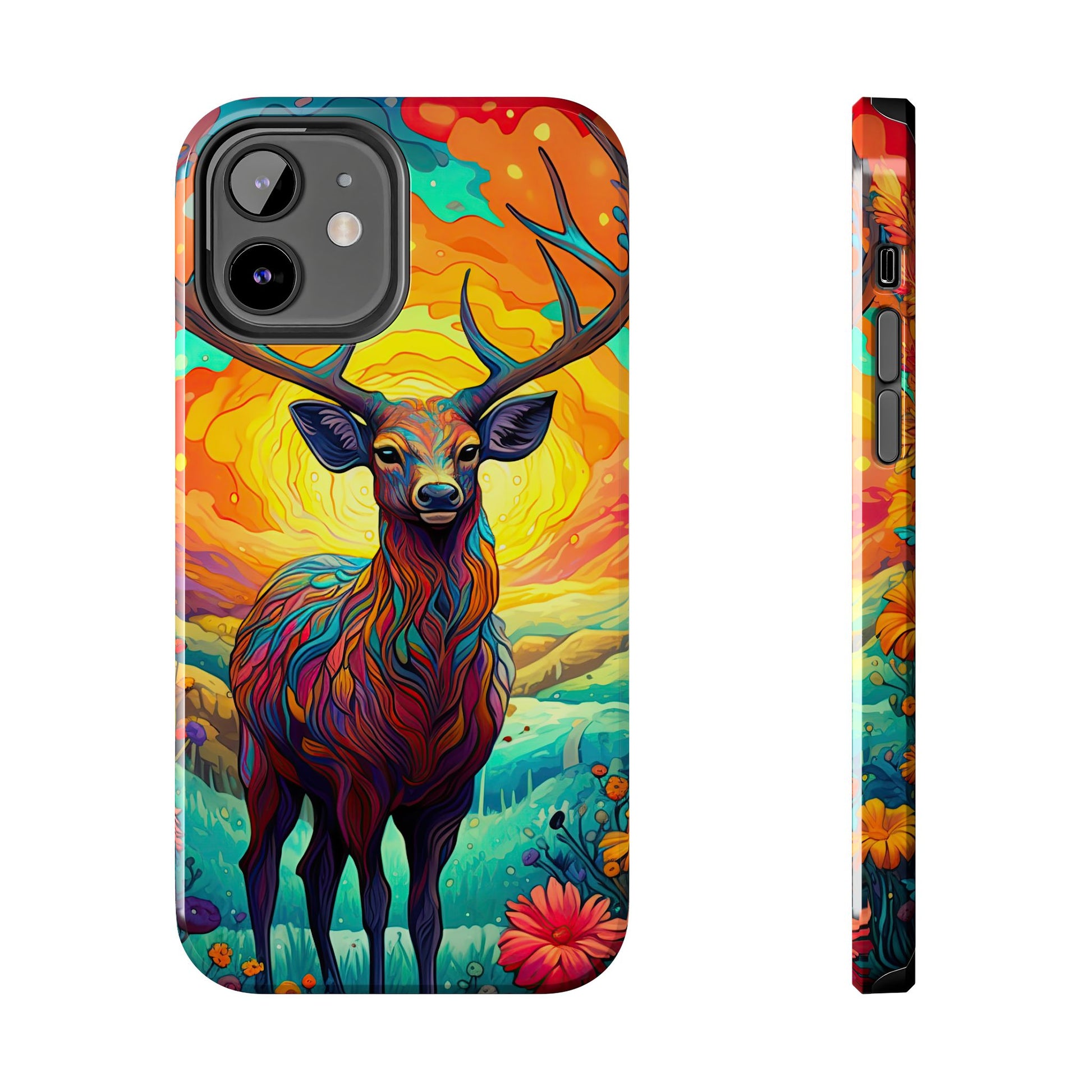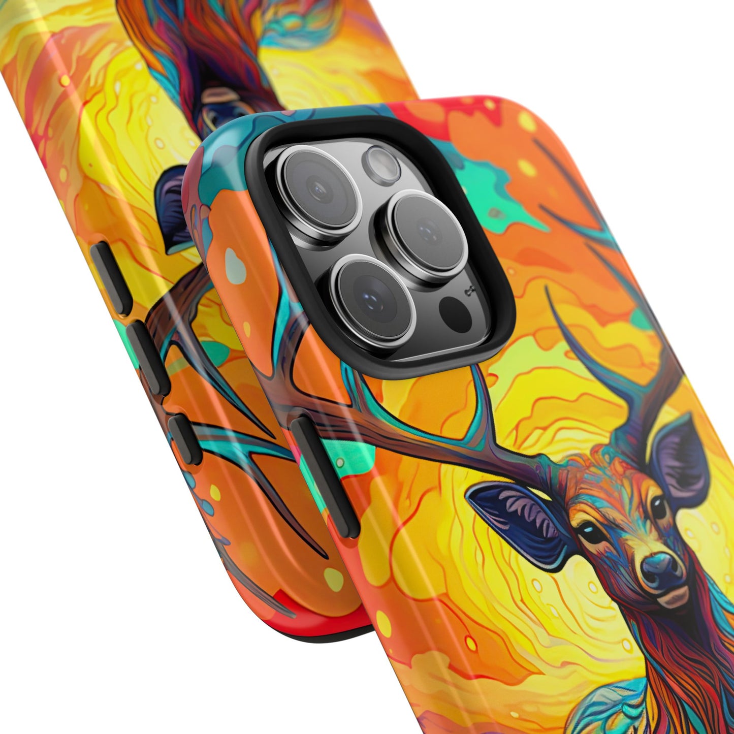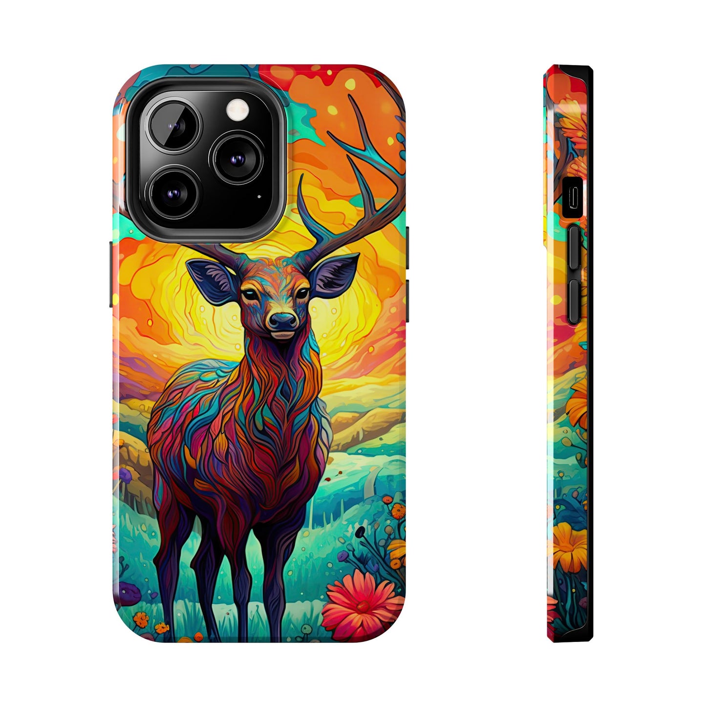 Show off your love for bold designs and nature with the Vibrant Stag in Bloom iPhone Case. This eye-catching artwork features a majestic deer surrounded by glowing wildflowers and a radiant sunset, all in a kaleidoscope of vivid colors. Perfect for combining artistry and practicality.