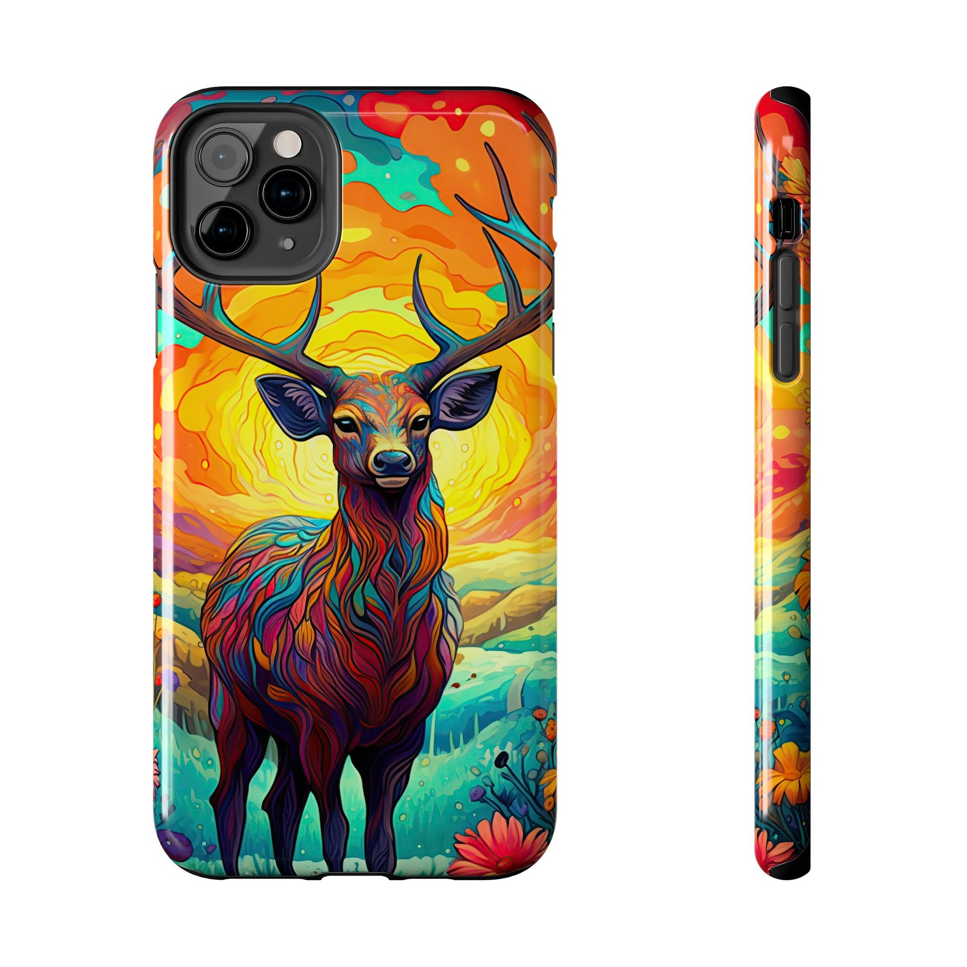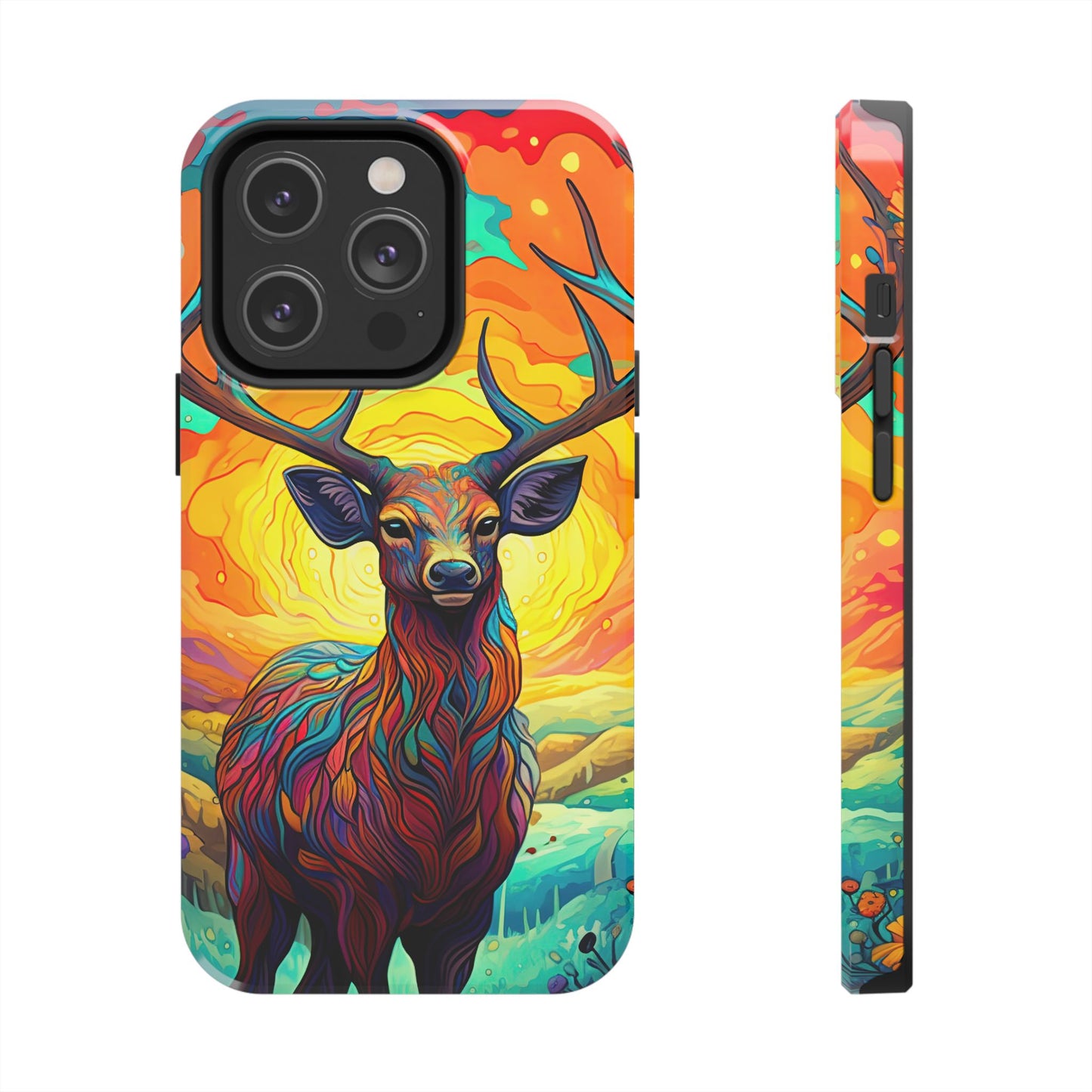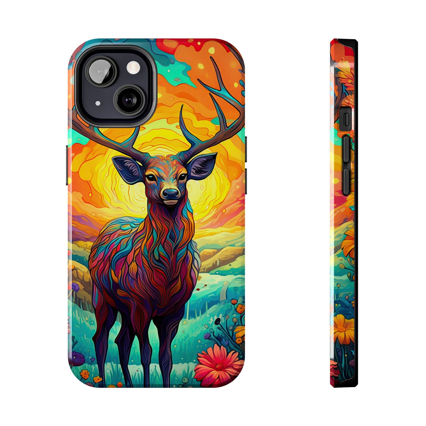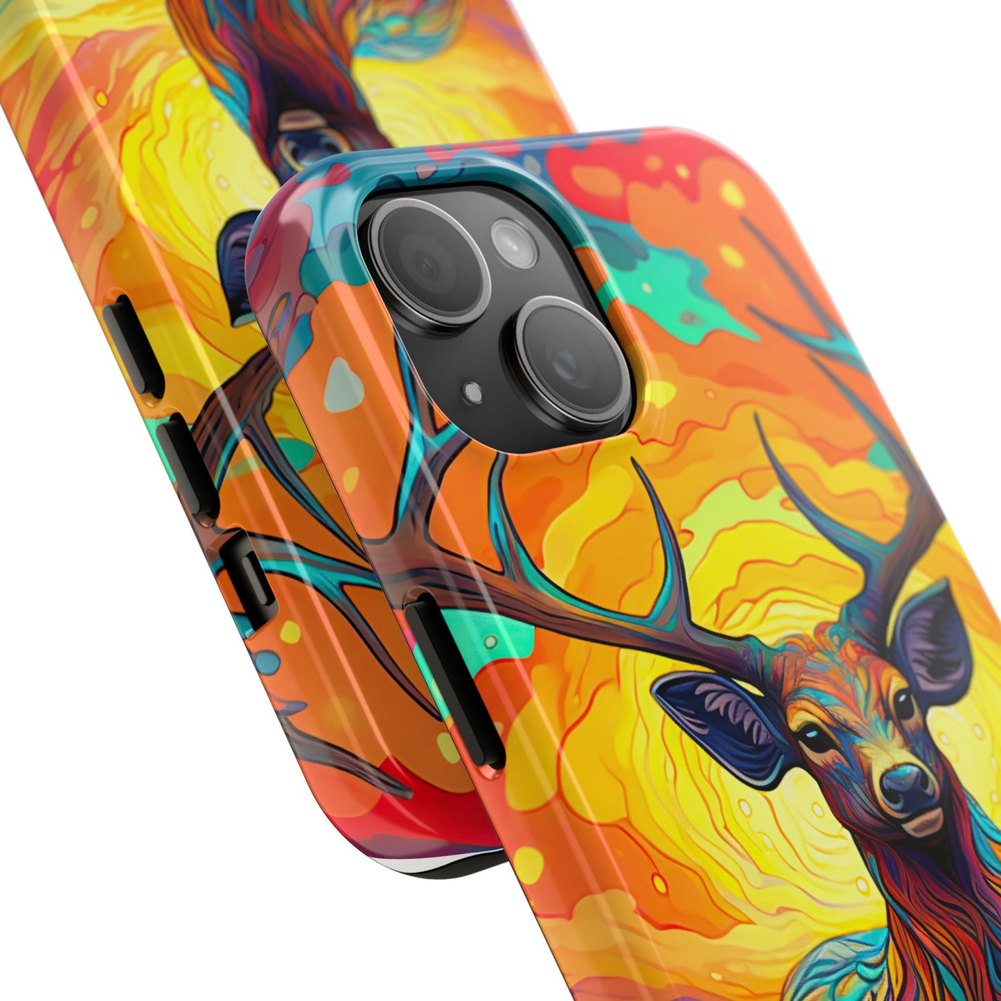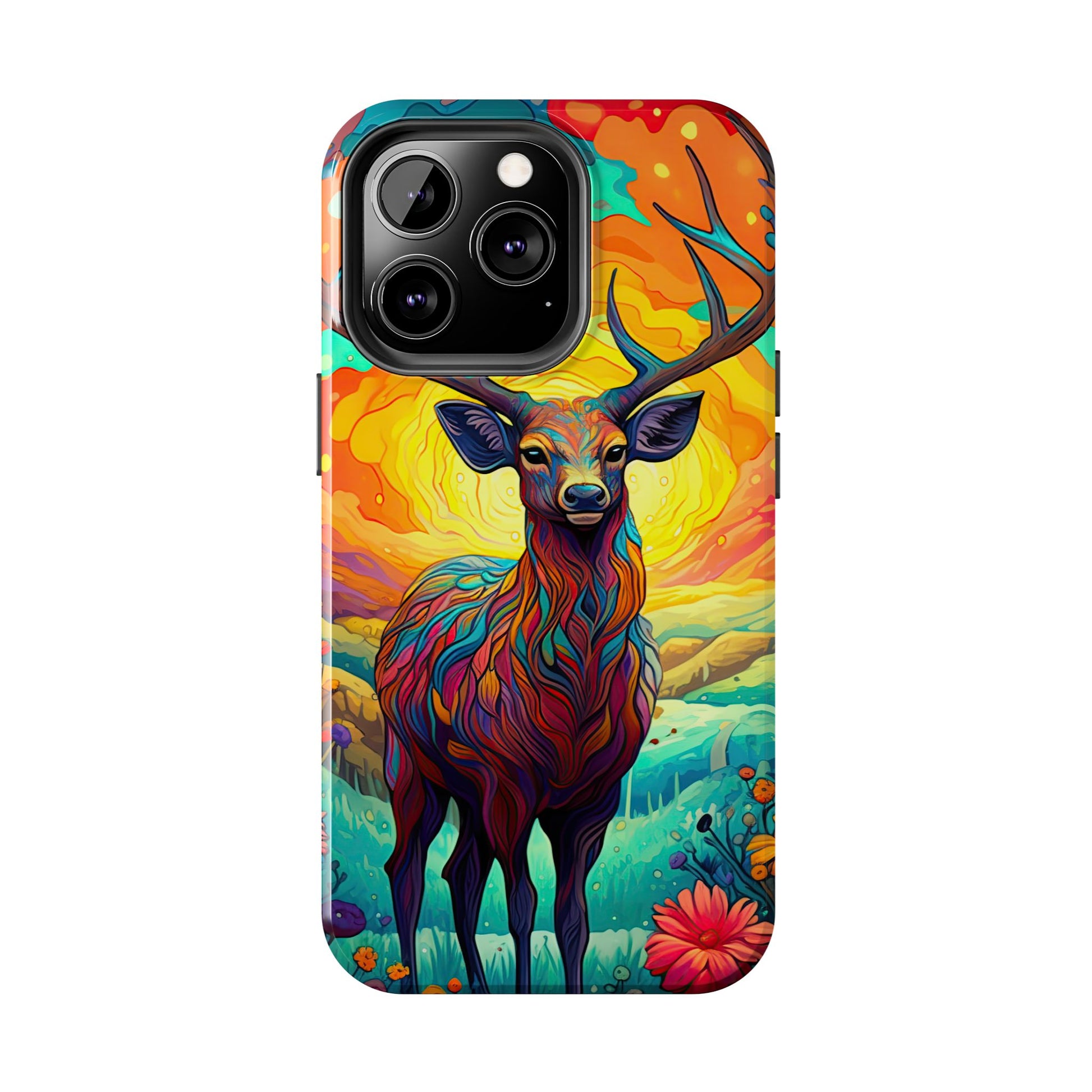 Show off your love for bold designs and nature with the Vibrant Stag in Bloom iPhone Case. This eye-catching artwork features a majestic deer surrounded by glowing wildflowers and a radiant sunset, all in a kaleidoscope of vivid colors. Perfect for combining artistry and practicality.