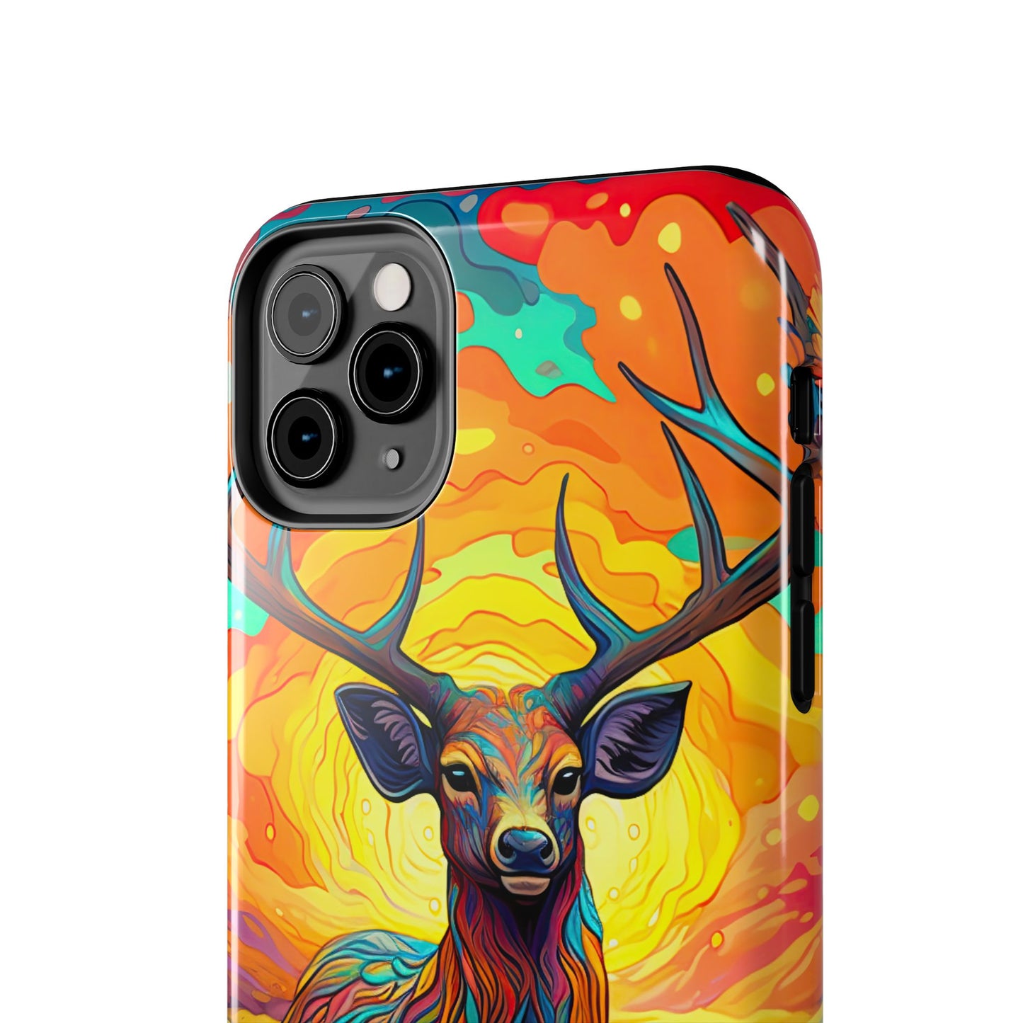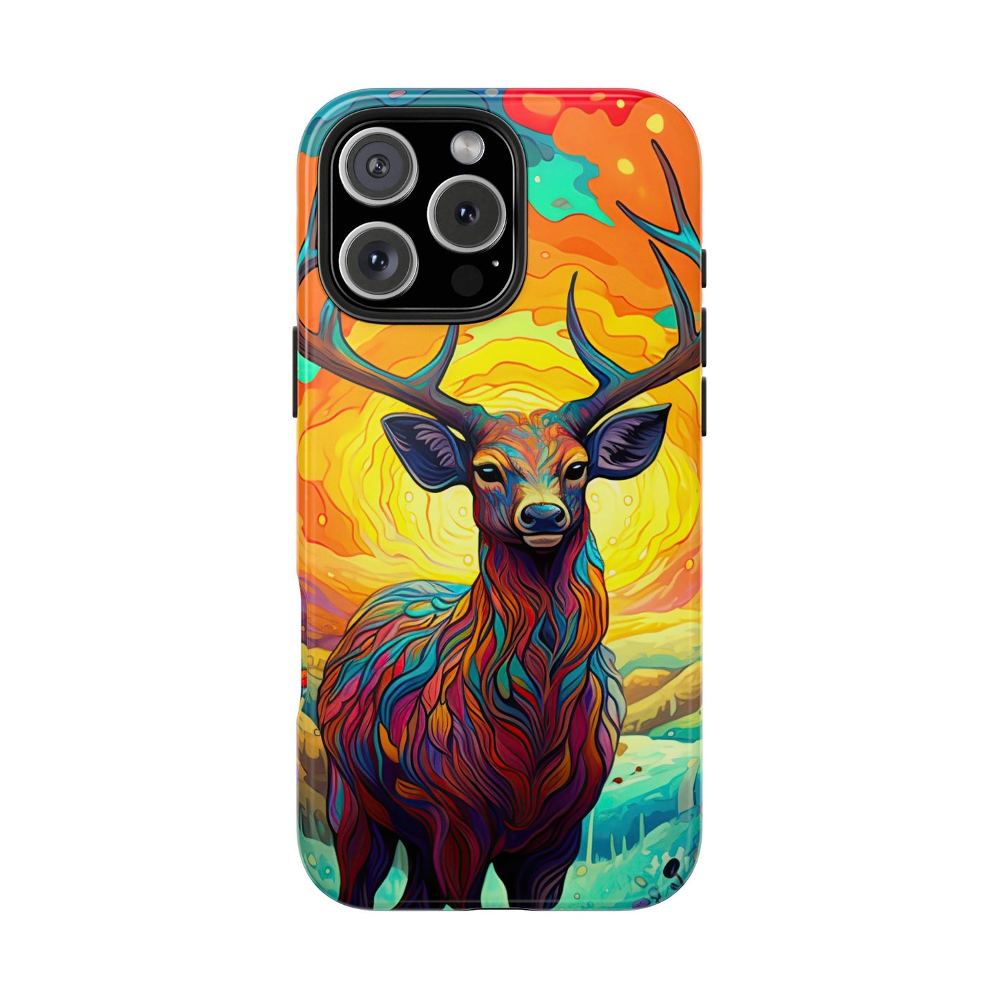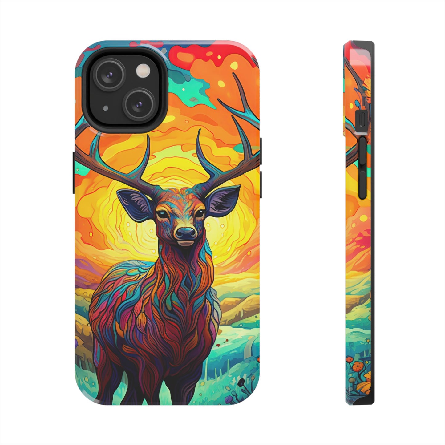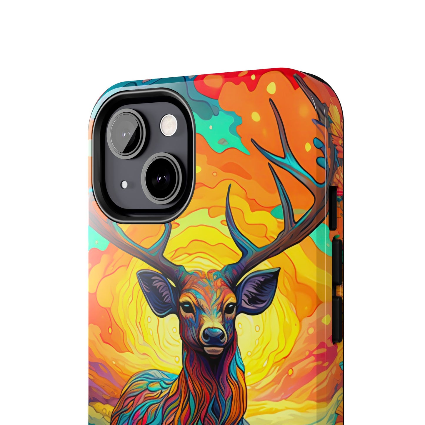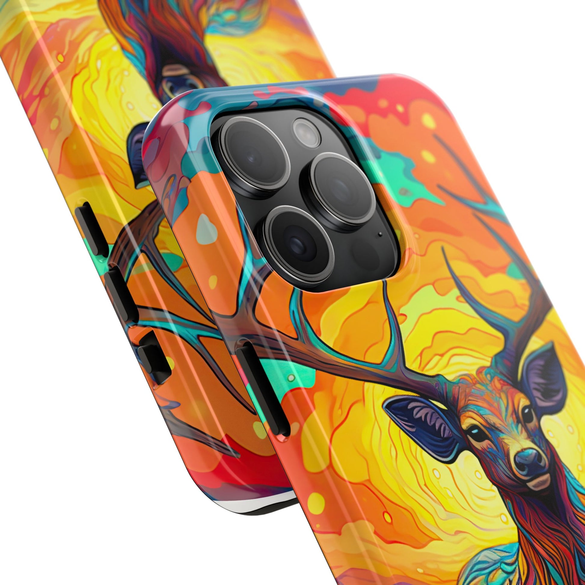 Show off your love for bold designs and nature with the Vibrant Stag in Bloom iPhone Case. This eye-catching artwork features a majestic deer surrounded by glowing wildflowers and a radiant sunset, all in a kaleidoscope of vivid colors. Perfect for combining artistry and practicality.