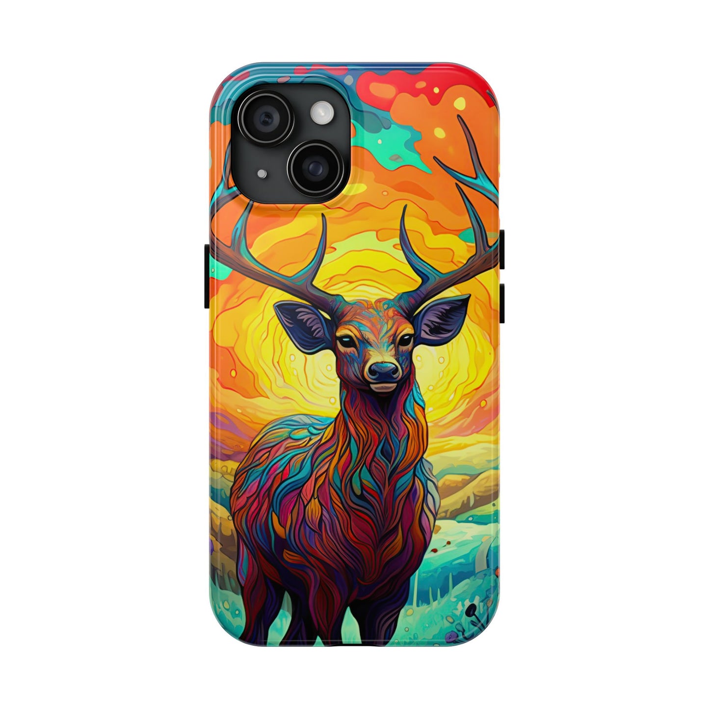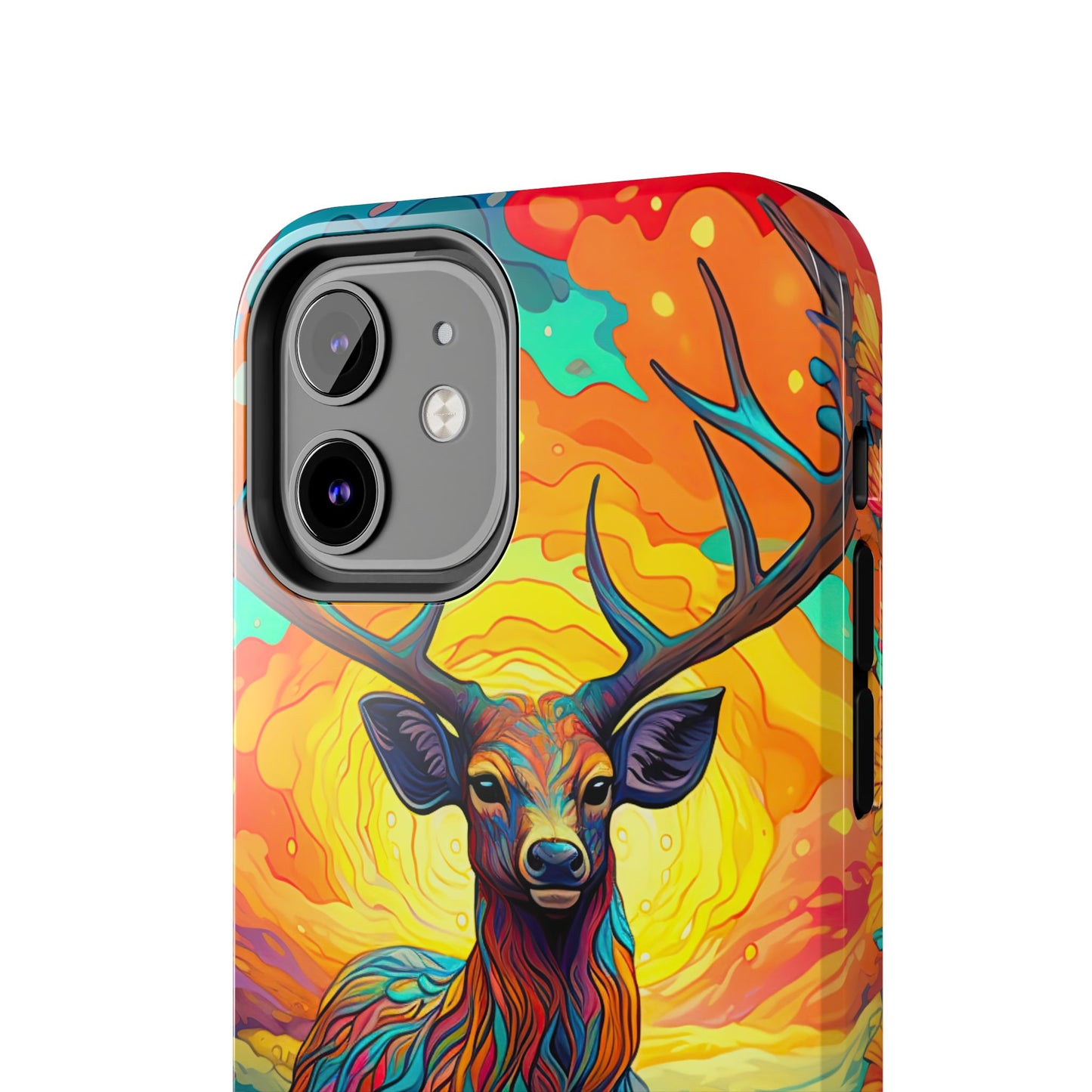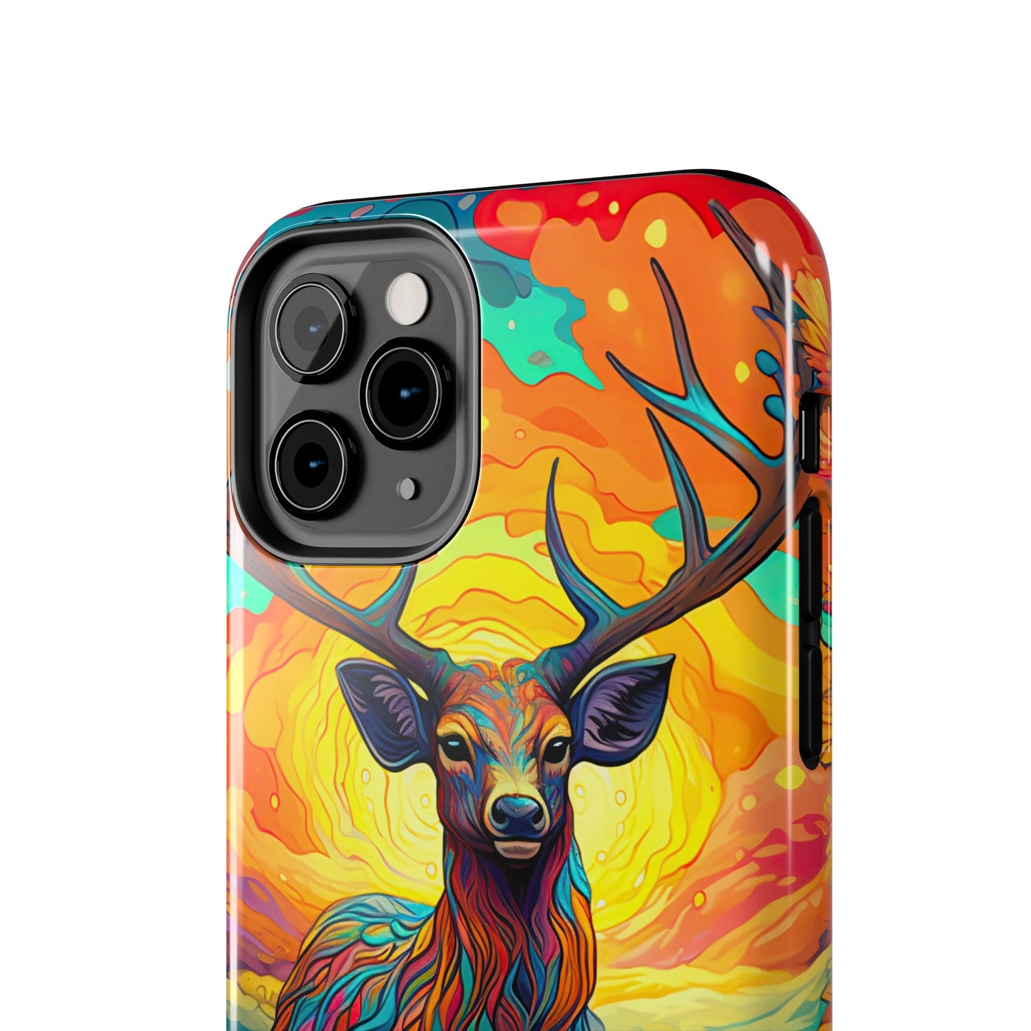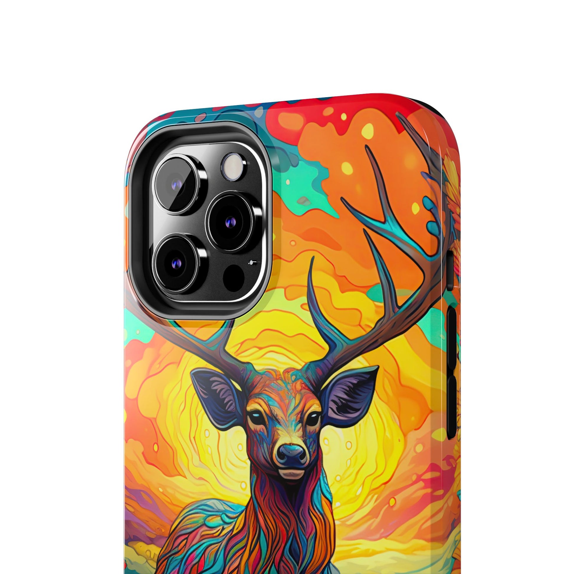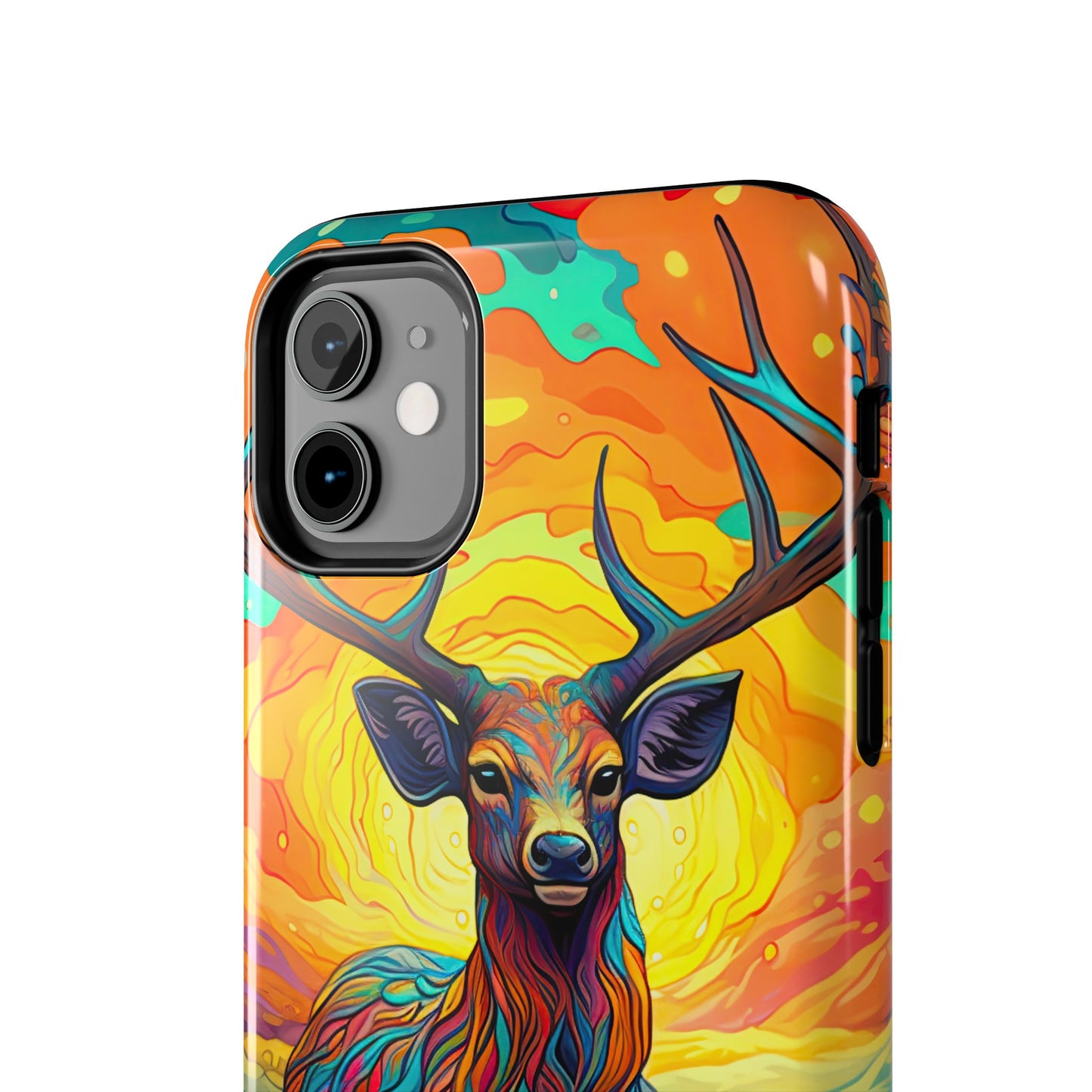 Show off your love for bold designs and nature with the Vibrant Stag in Bloom iPhone Case. This eye-catching artwork features a majestic deer surrounded by glowing wildflowers and a radiant sunset, all in a kaleidoscope of vivid colors. Perfect for combining artistry and practicality.