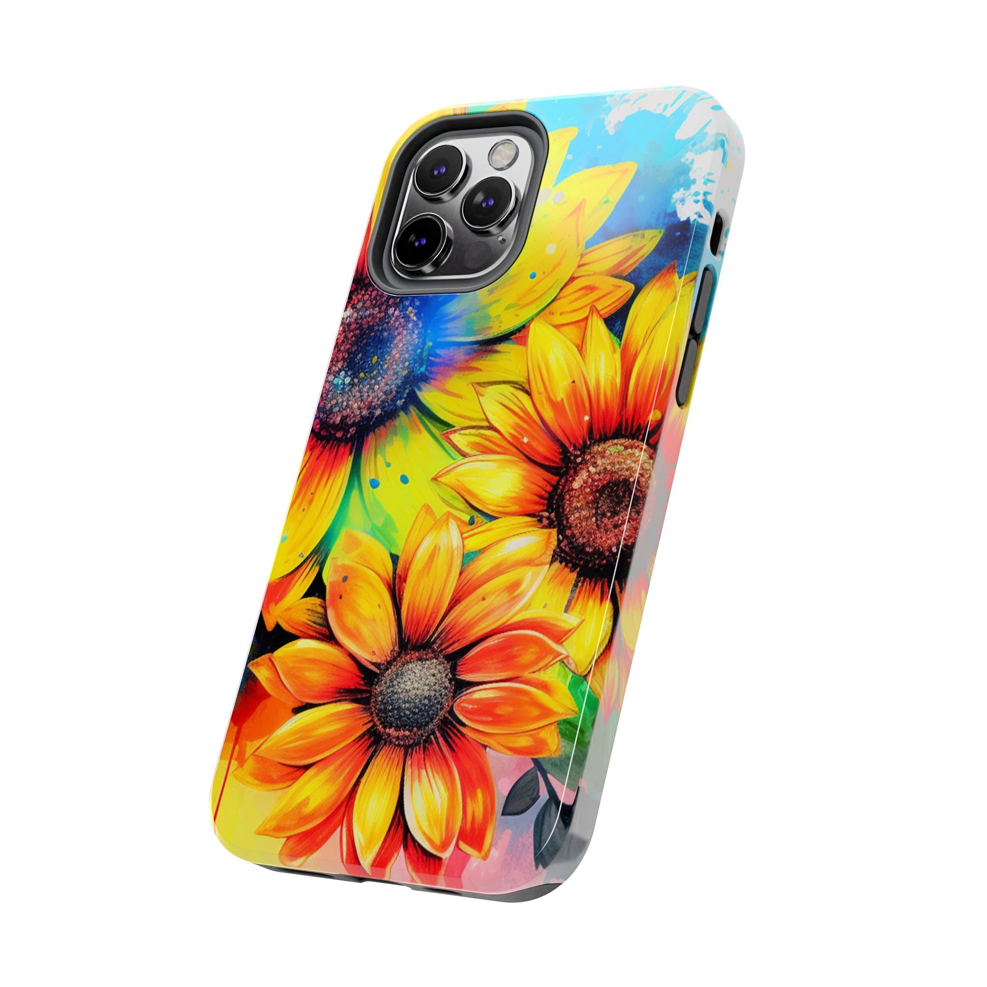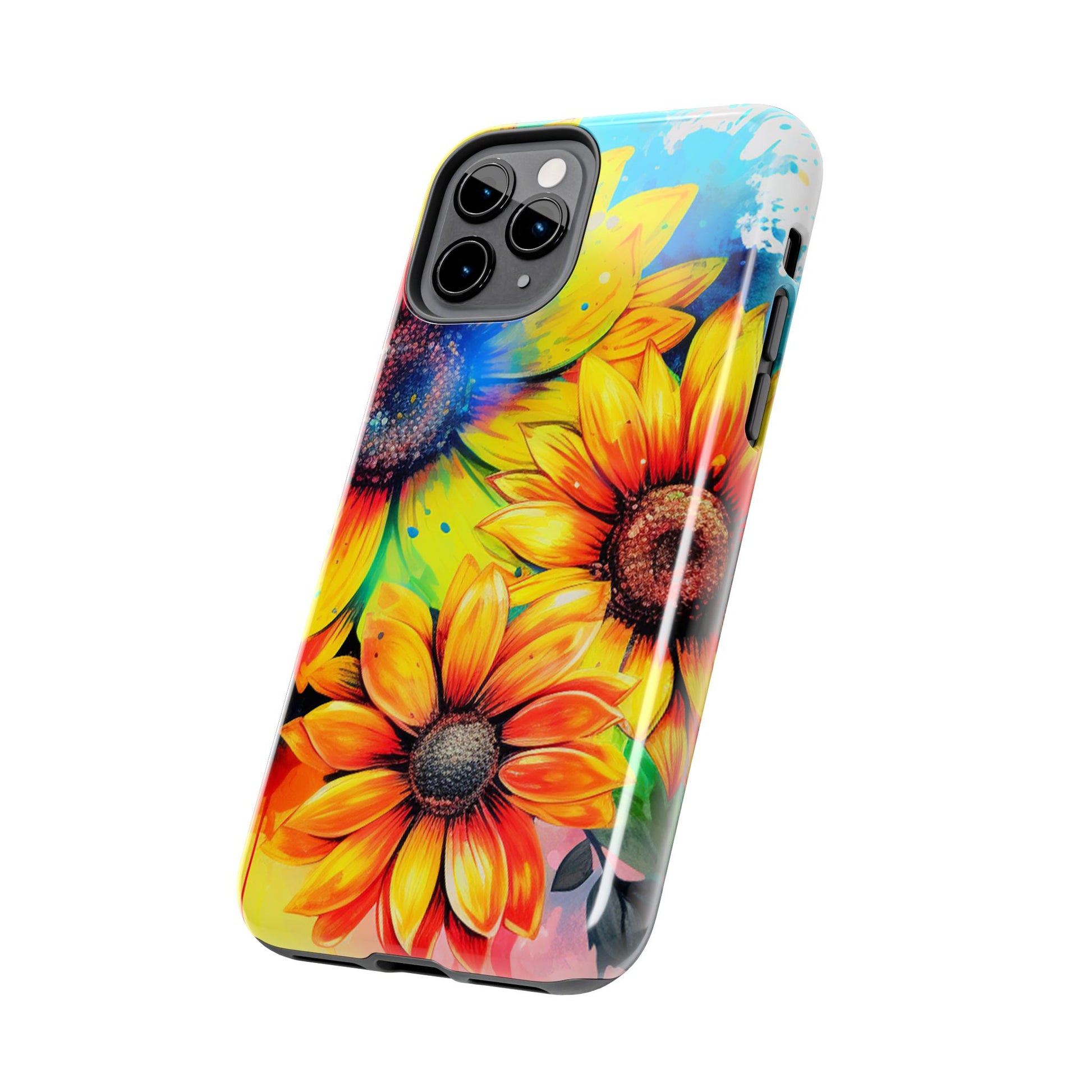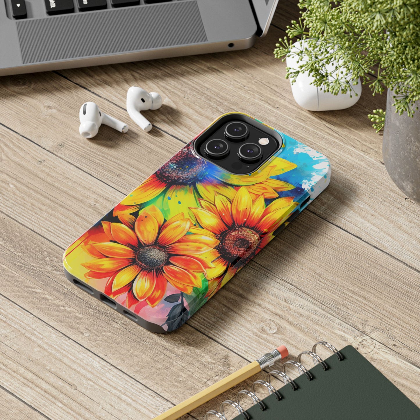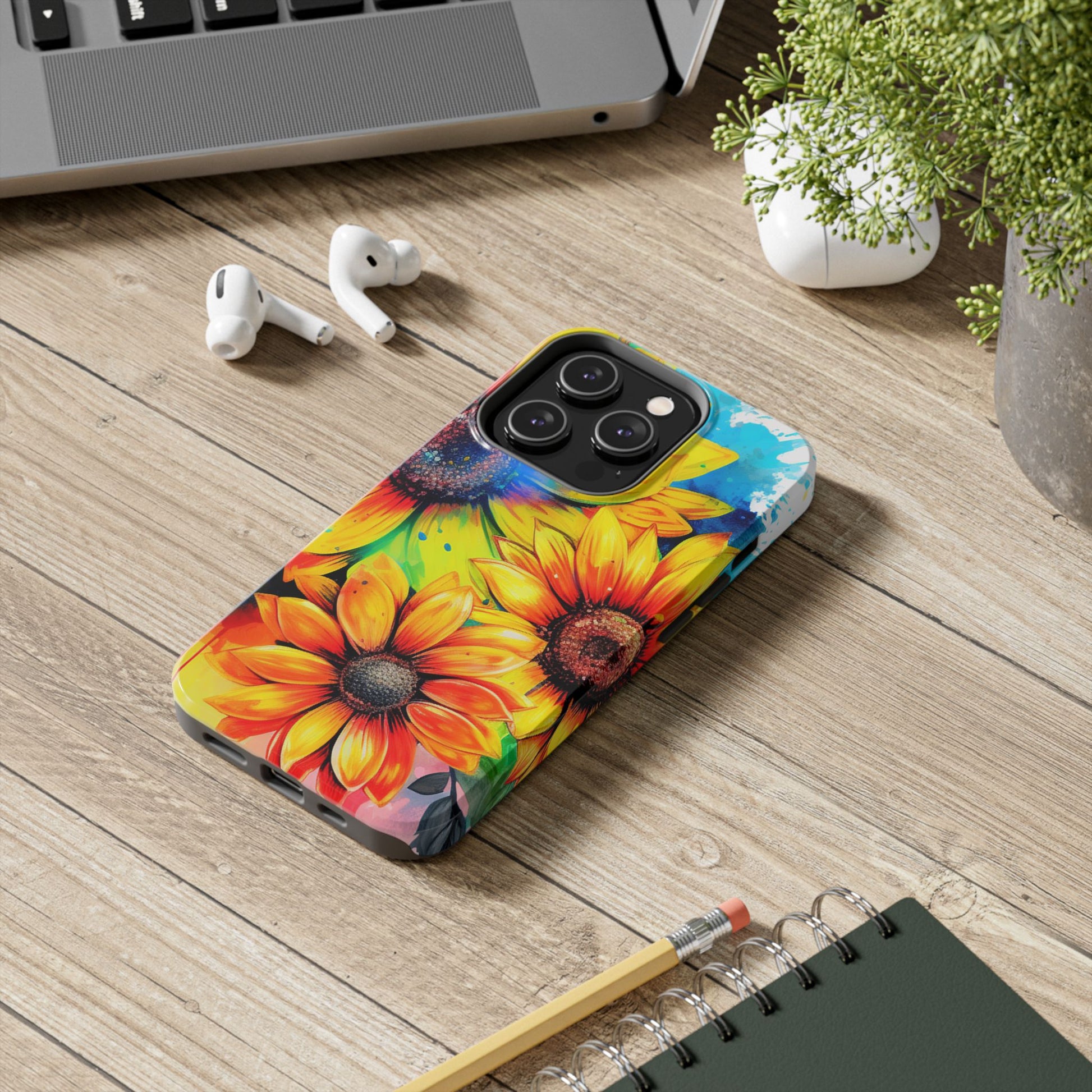 Brighten your day with our Vibrant Sunflower Splash iPhone Case! This stunning design features bold sunflowers in vivid yellow and orange hues, set against a colorful watercolor splash background. Perfect for nature lovers and those who adore a touch of art in their accessories, this case bri...