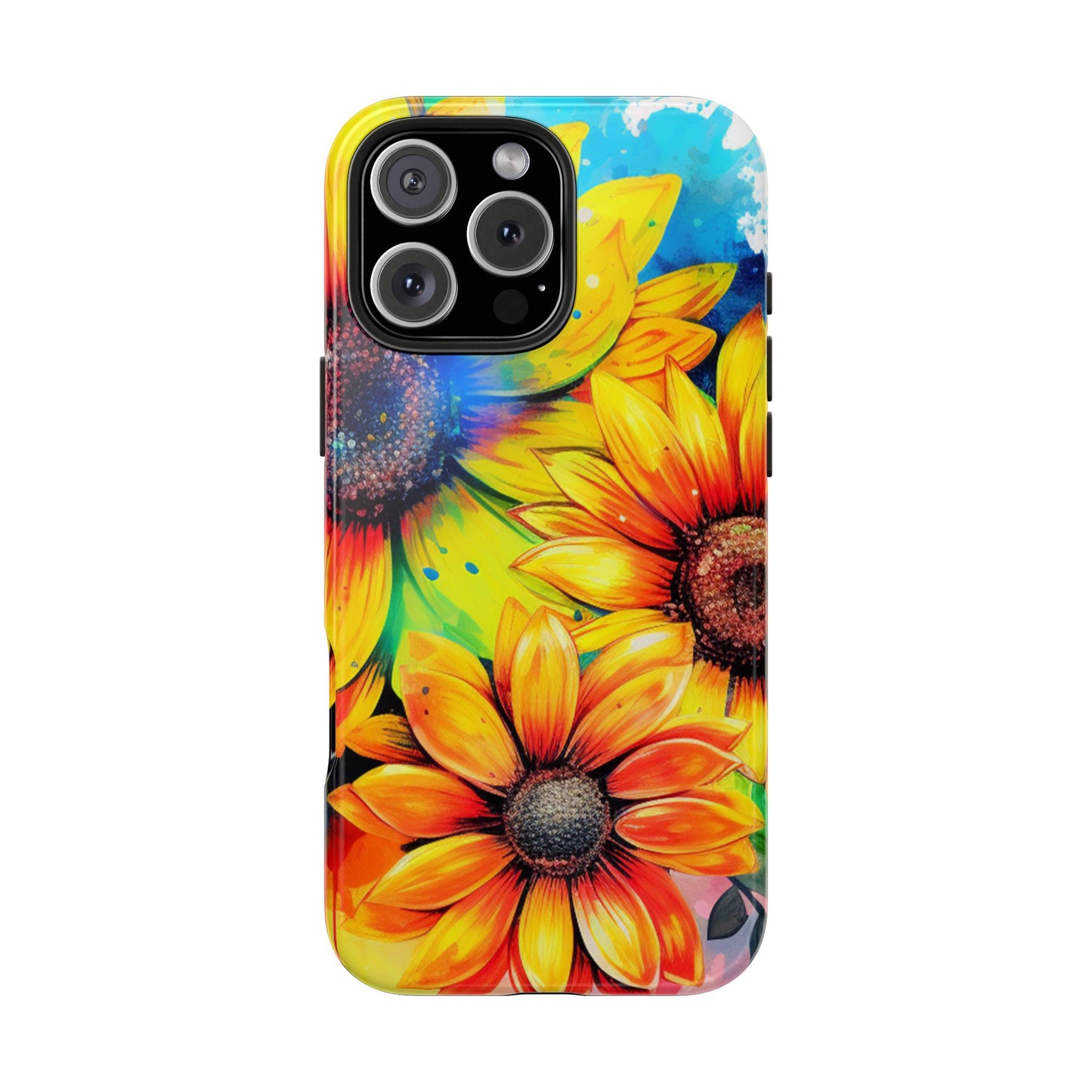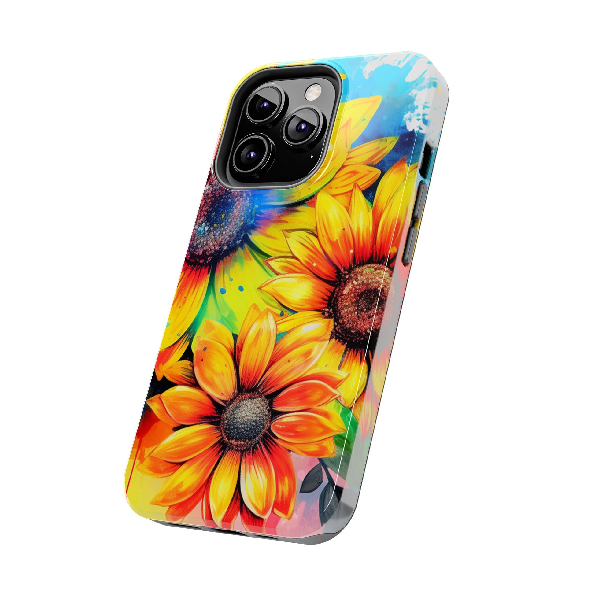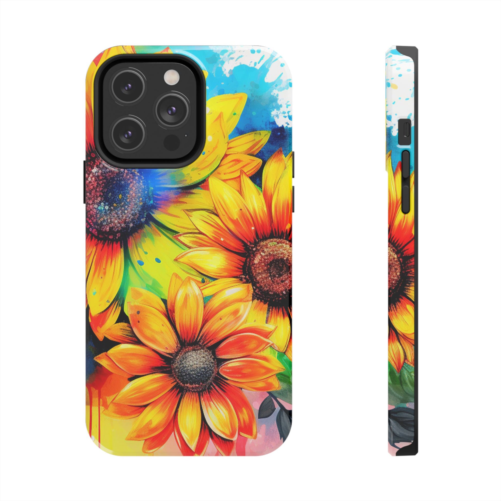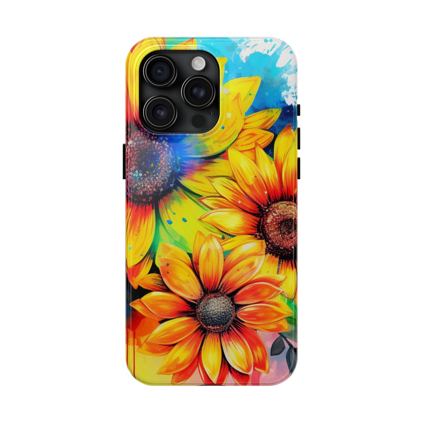 Brighten your day with our Vibrant Sunflower Splash iPhone Case! This stunning design features bold sunflowers in vivid yellow and orange hues, set against a colorful watercolor splash background. Perfect for nature lovers and those who adore a touch of art in their accessories, this case bri...