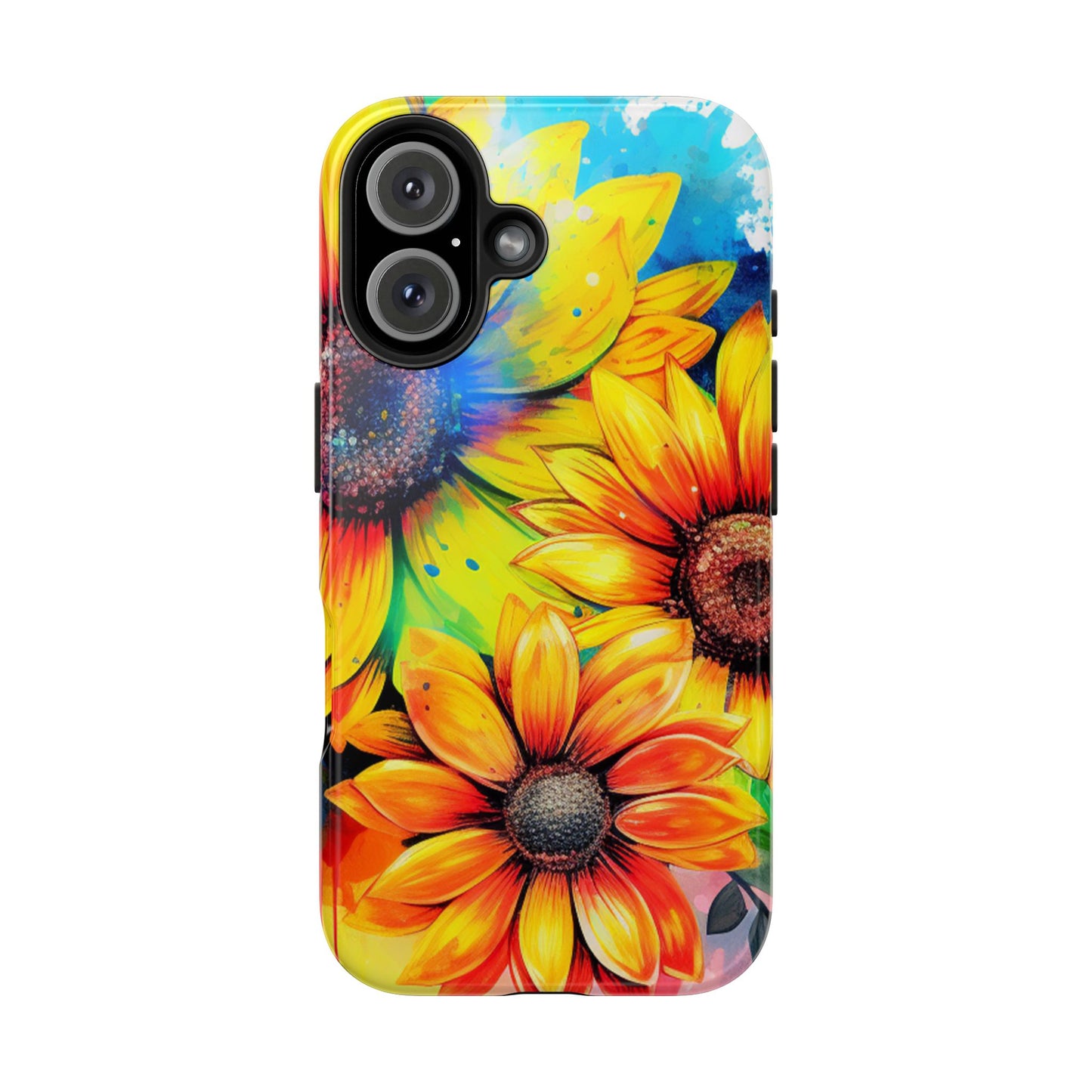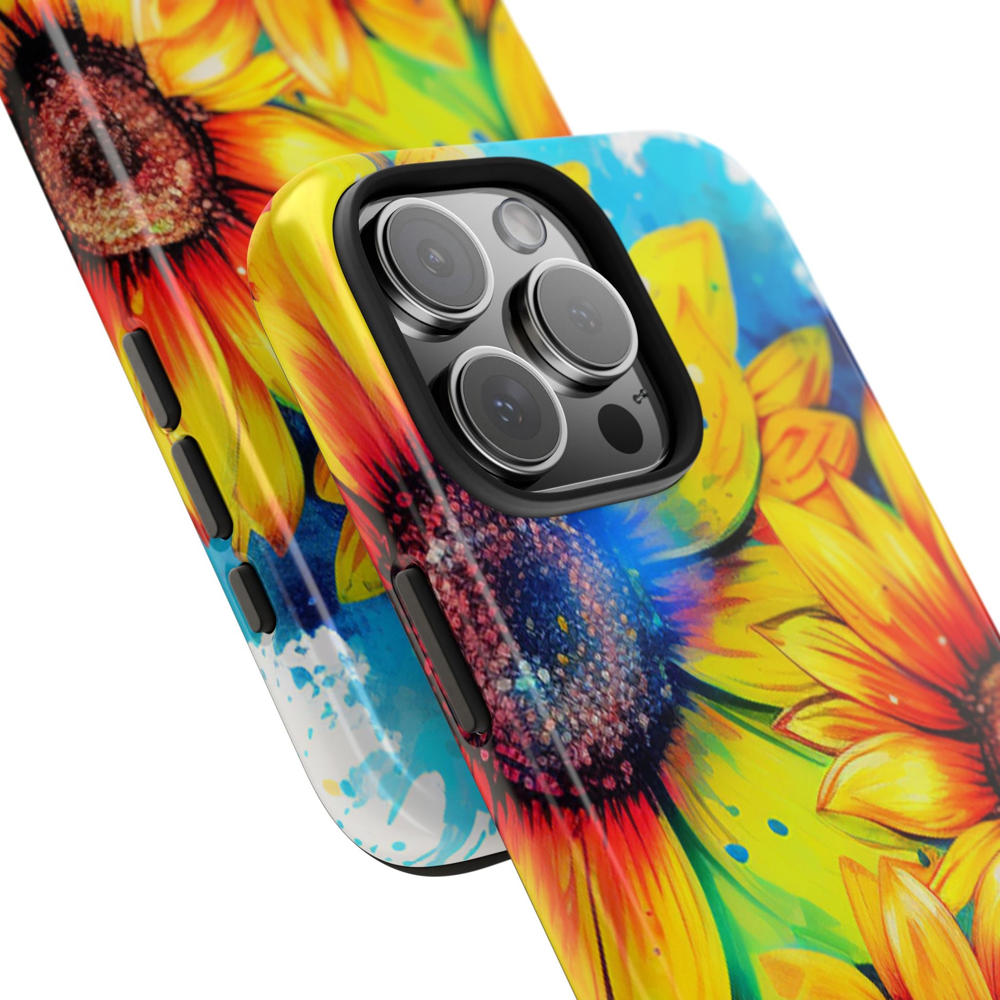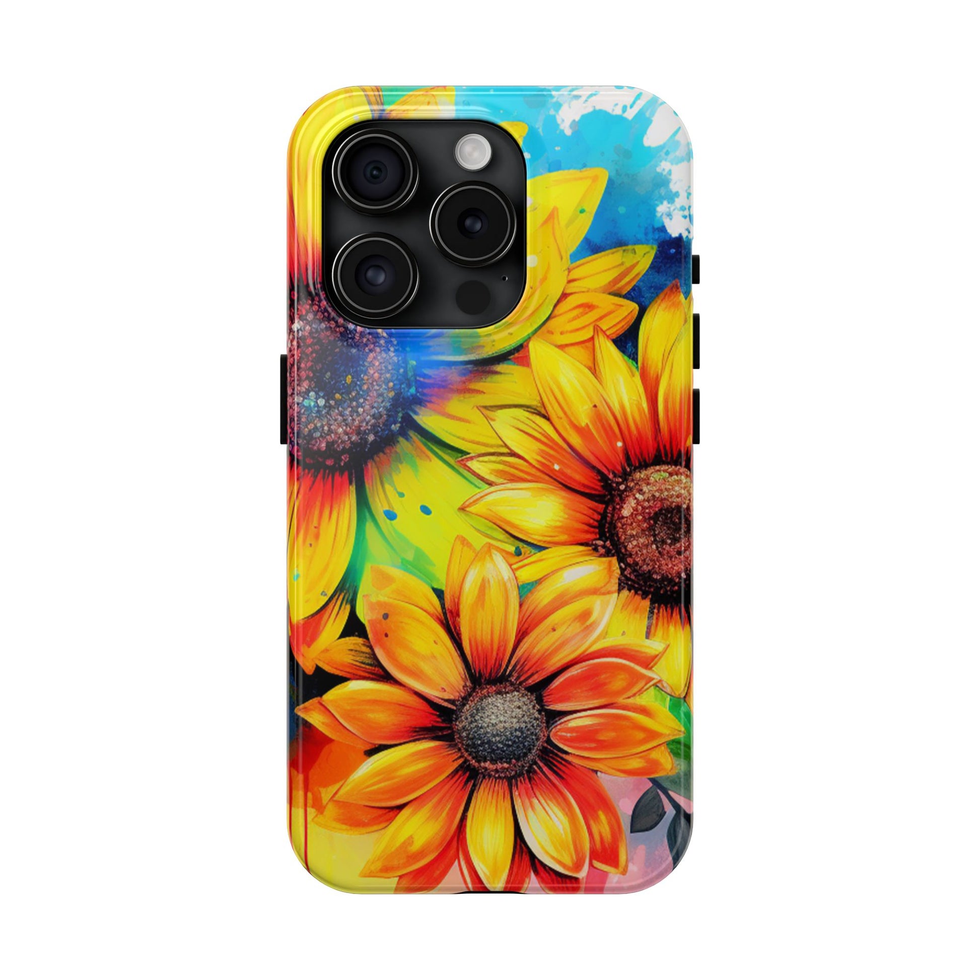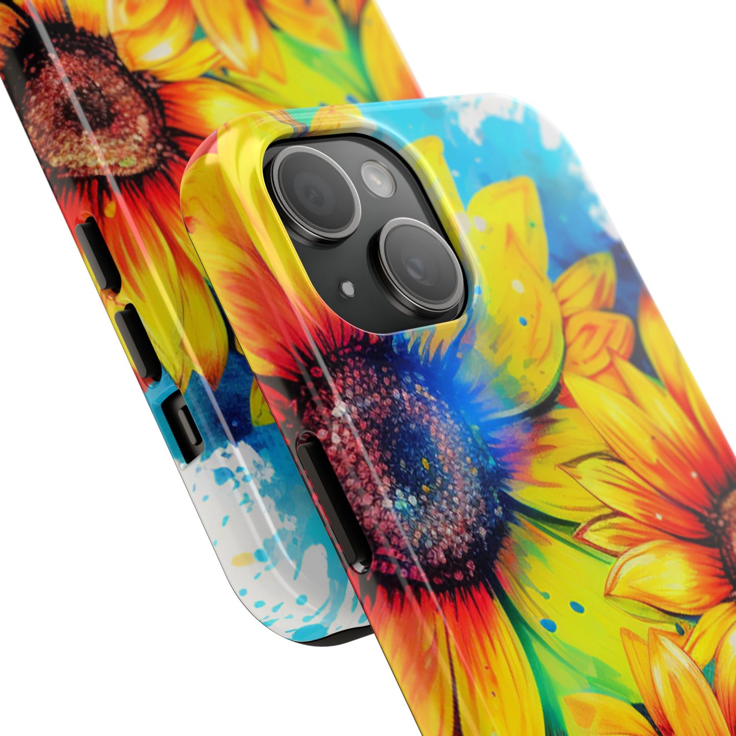 Brighten your day with our Vibrant Sunflower Splash iPhone Case! This stunning design features bold sunflowers in vivid yellow and orange hues, set against a colorful watercolor splash background. Perfect for nature lovers and those who adore a touch of art in their accessories, this case bri...