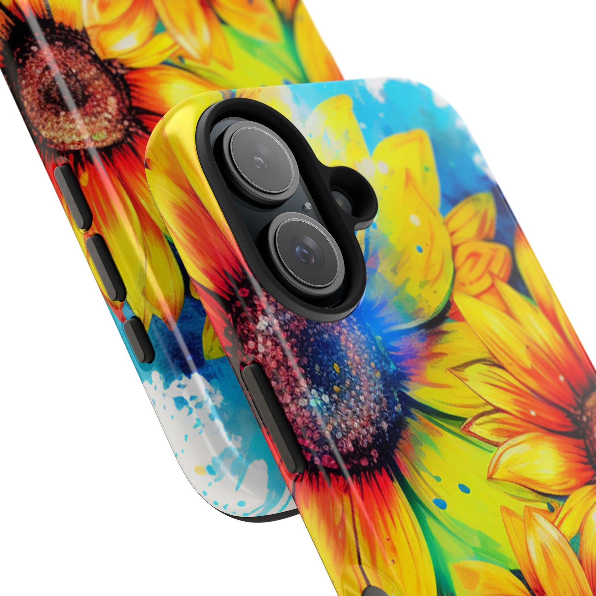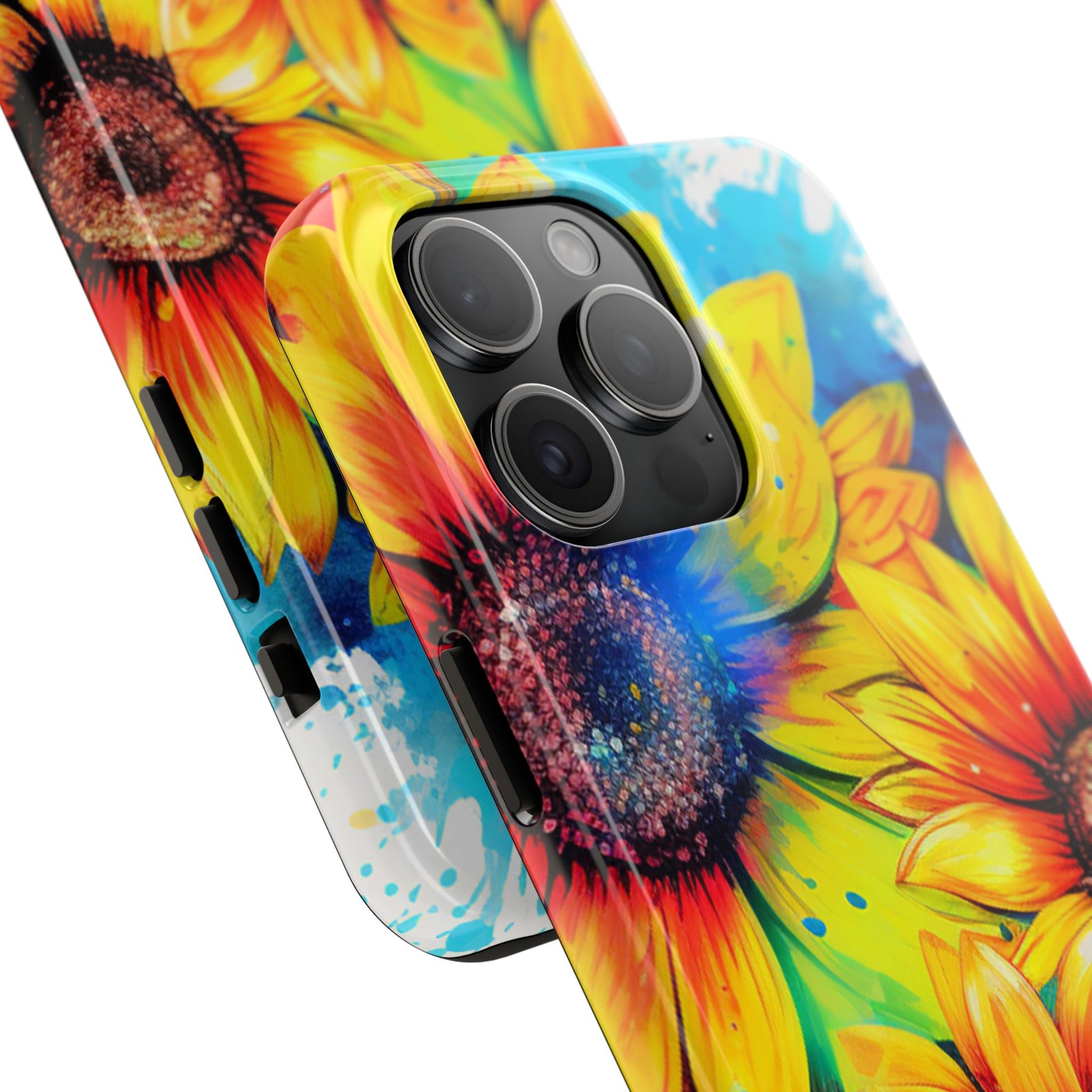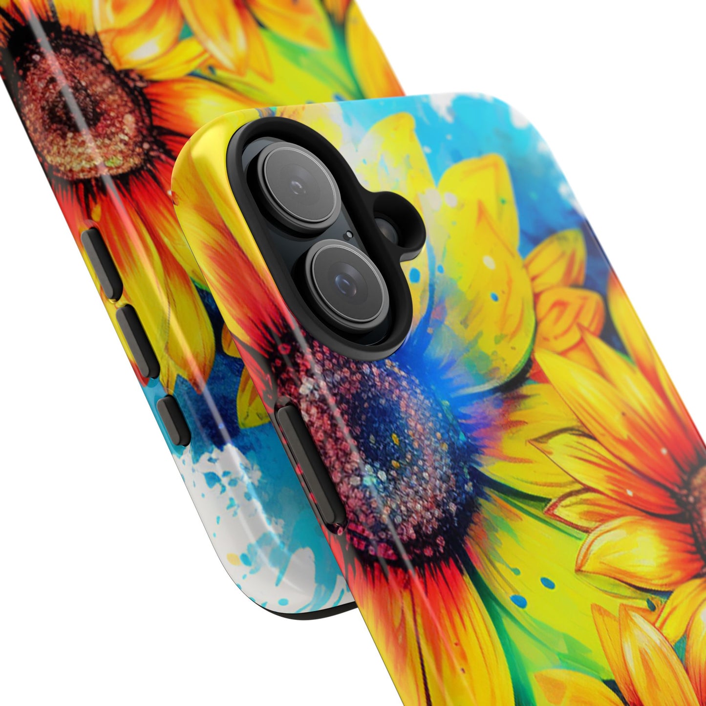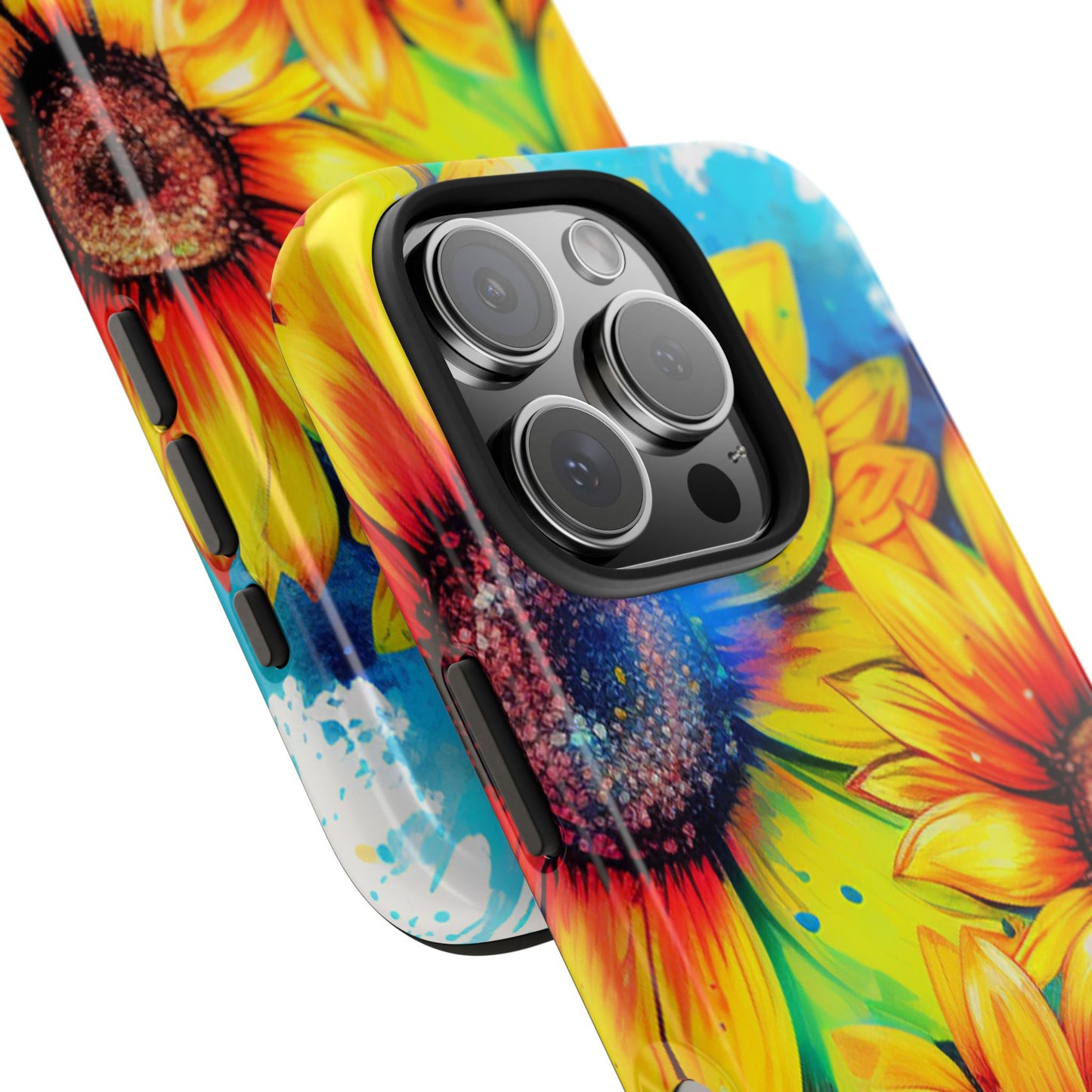 Brighten your day with our Vibrant Sunflower Splash iPhone Case! This stunning design features bold sunflowers in vivid yellow and orange hues, set against a colorful watercolor splash background. Perfect for nature lovers and those who adore a touch of art in their accessories, this case bri...