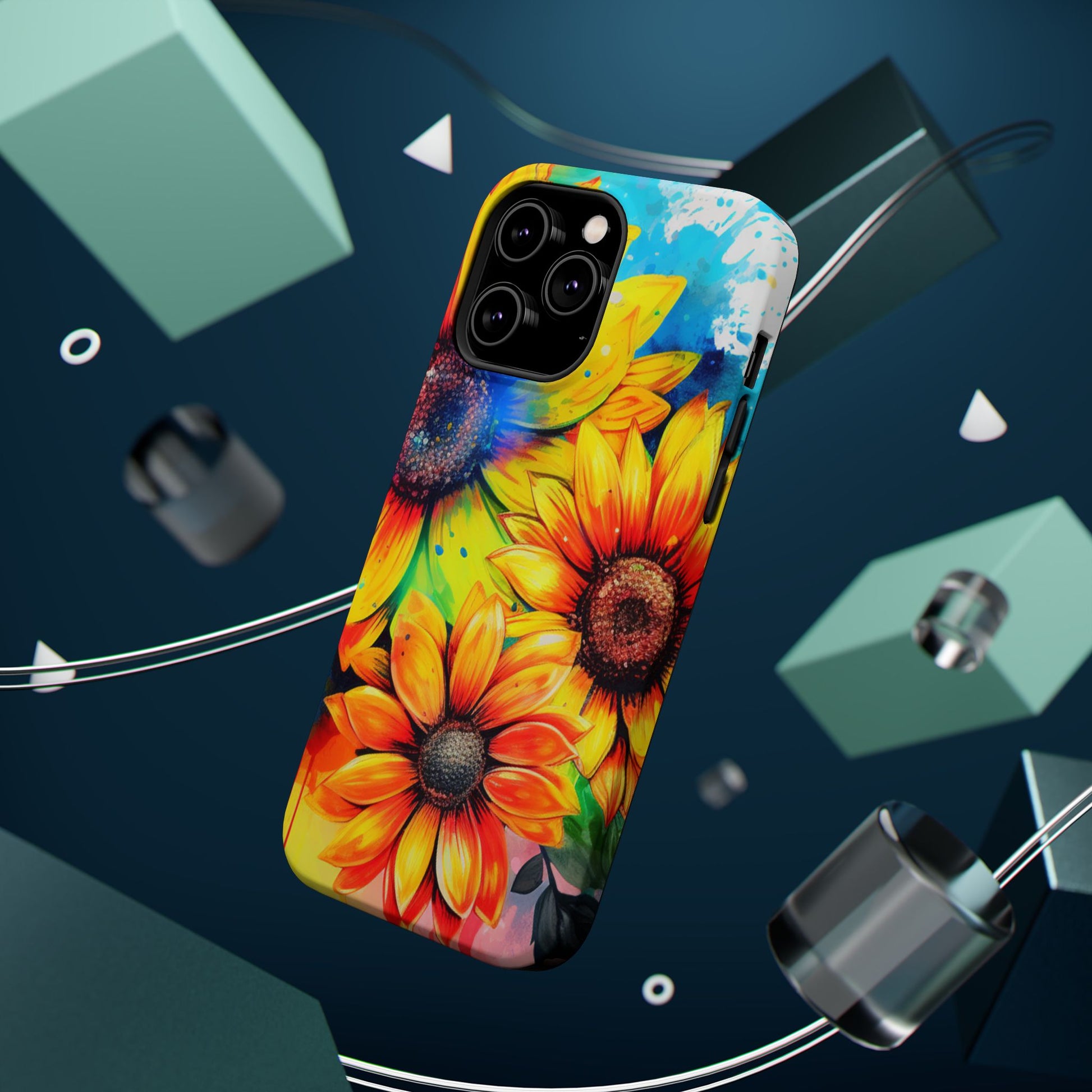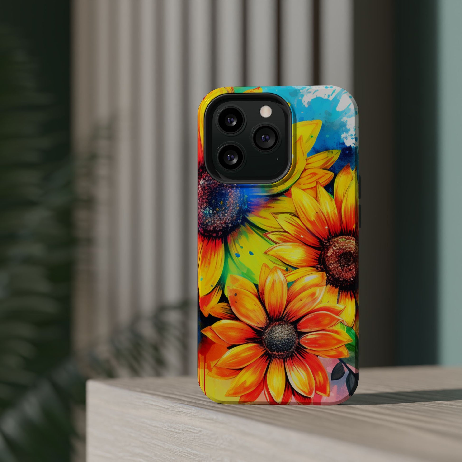 Brighten your day with our Vibrant Sunflower Splash MagSafe iPhone Case! This stunning design features bold sunflowers in vivid yellow and orange hues, set against a colorful watercolor splash background. Perfect for nature lovers and those who adore a touch of art in their accessories, this c...