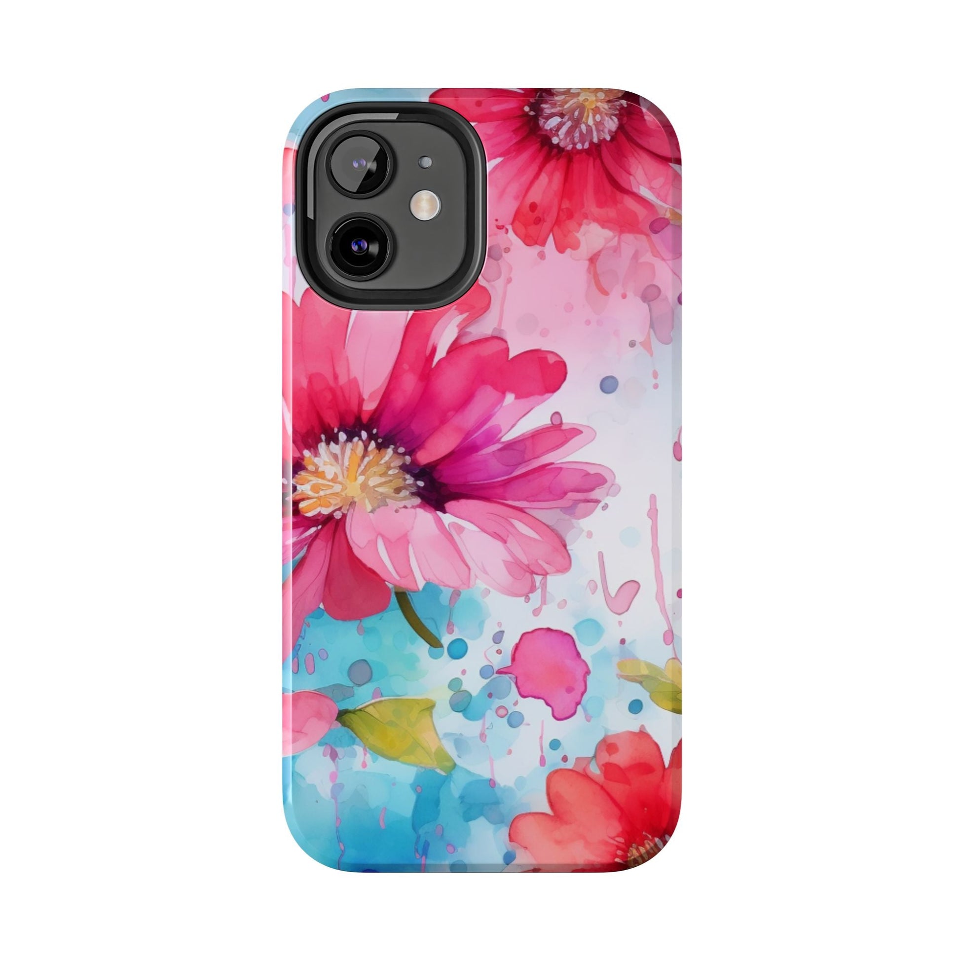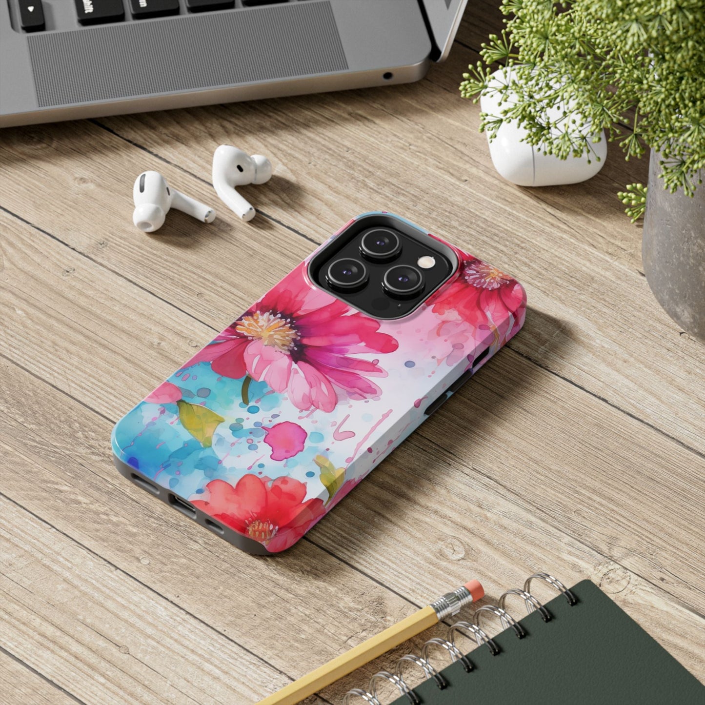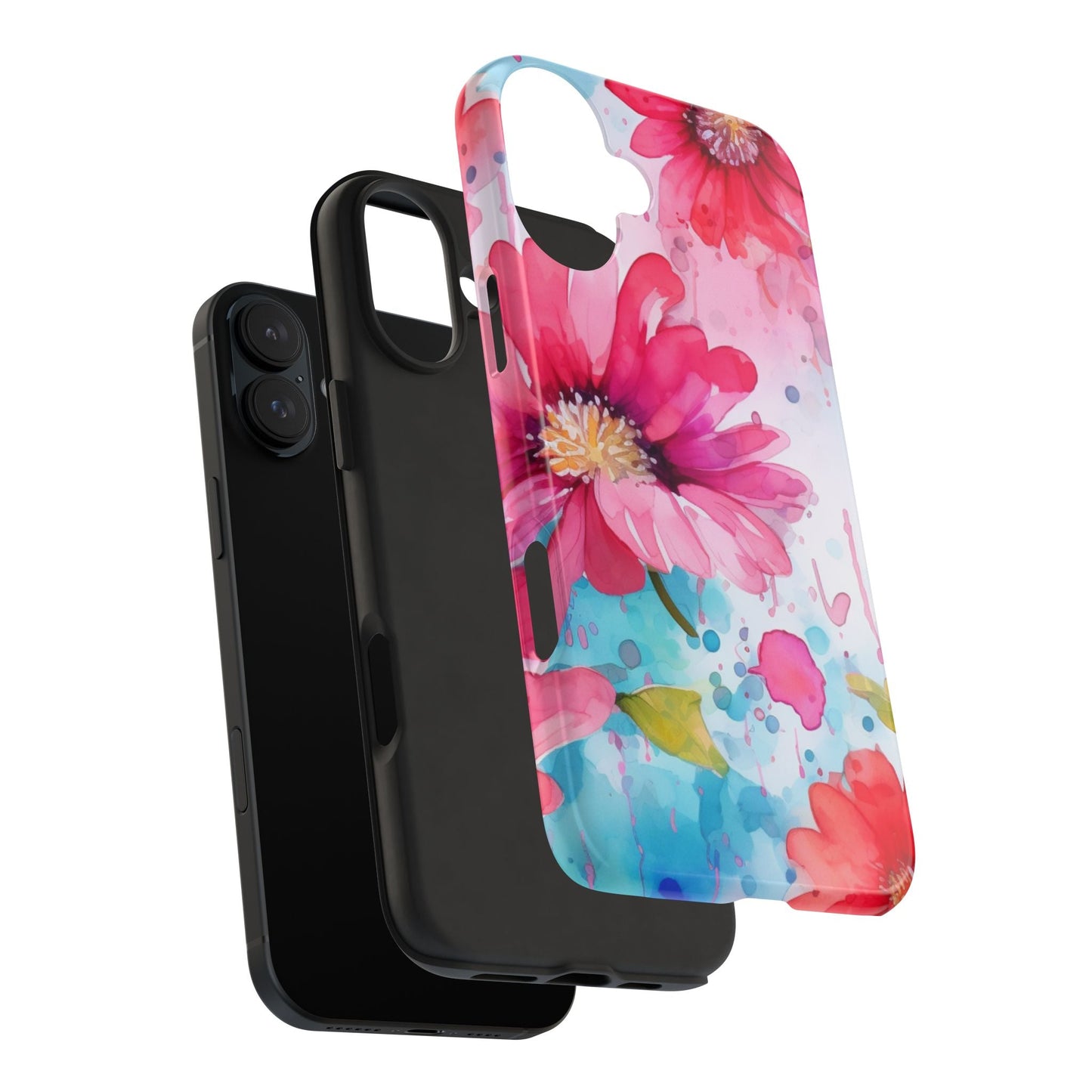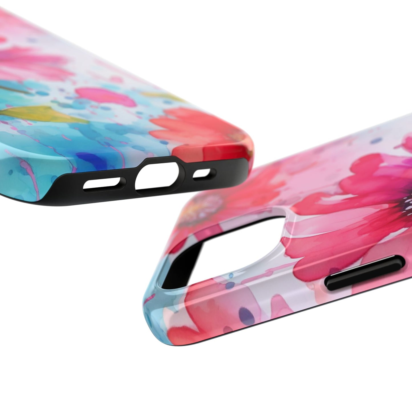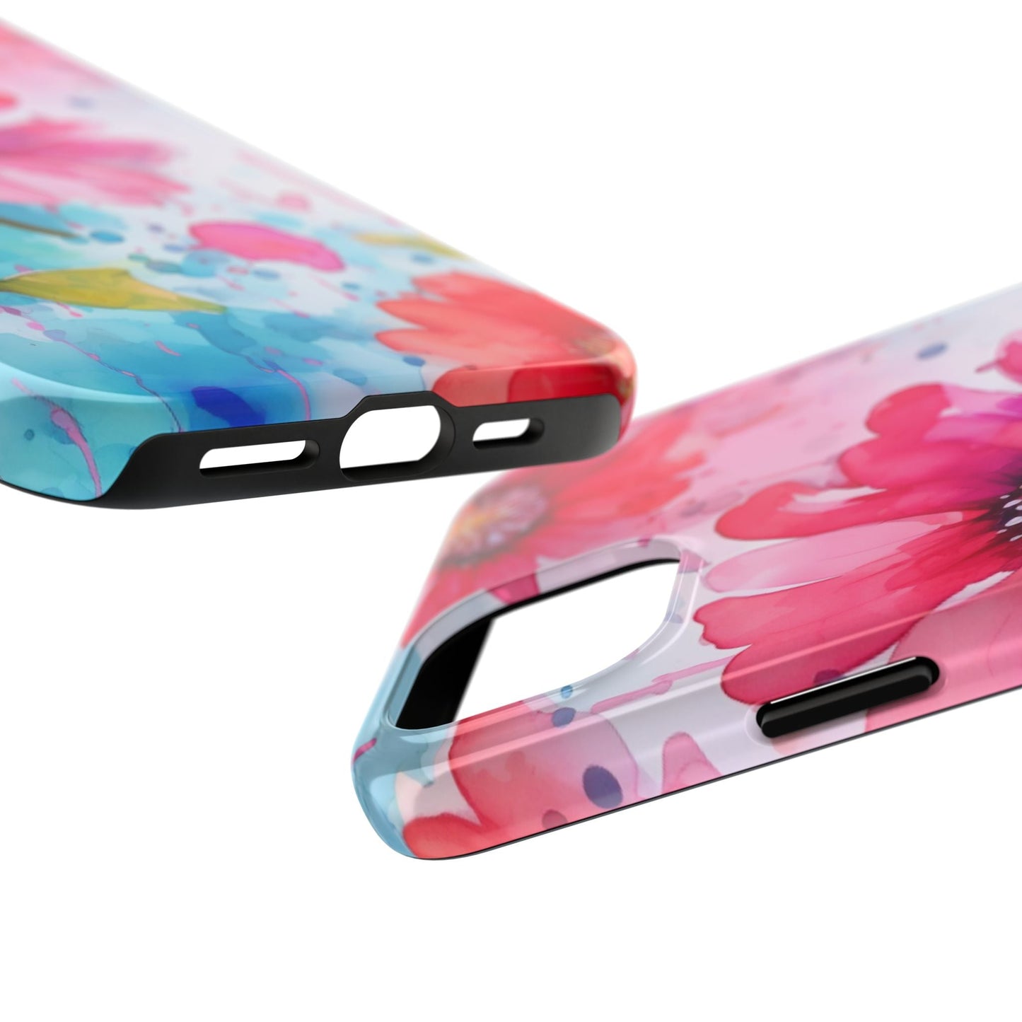 Transform your iPhone with our Vibrant Watercolor Red & Pink Floral case. This stunning design features vivid red and pink flowers set against a soft, artistic blue watercolor background, making it the perfect blend of bold and beautiful. With its durable build, your phone stays p...