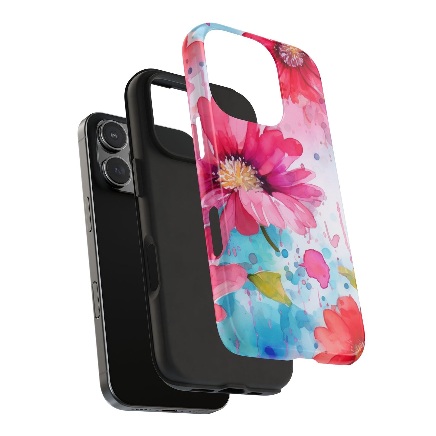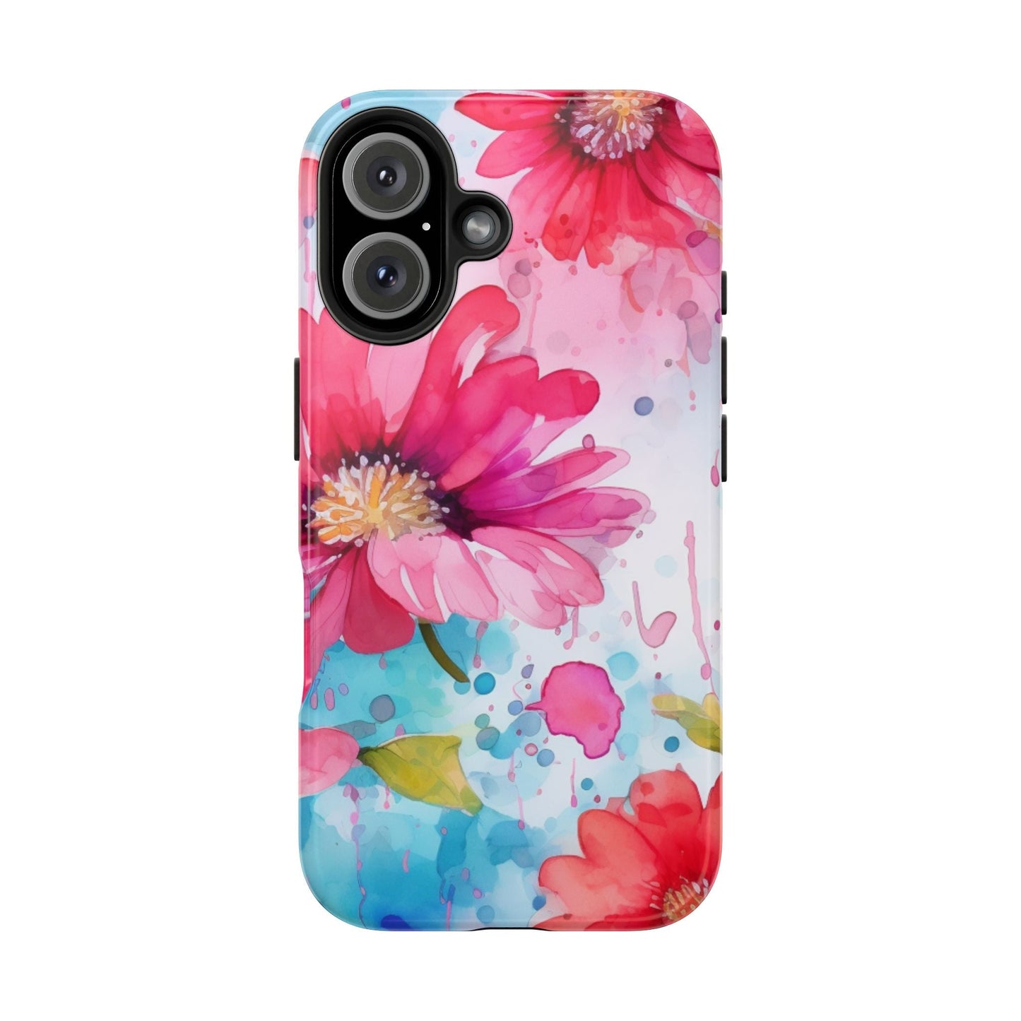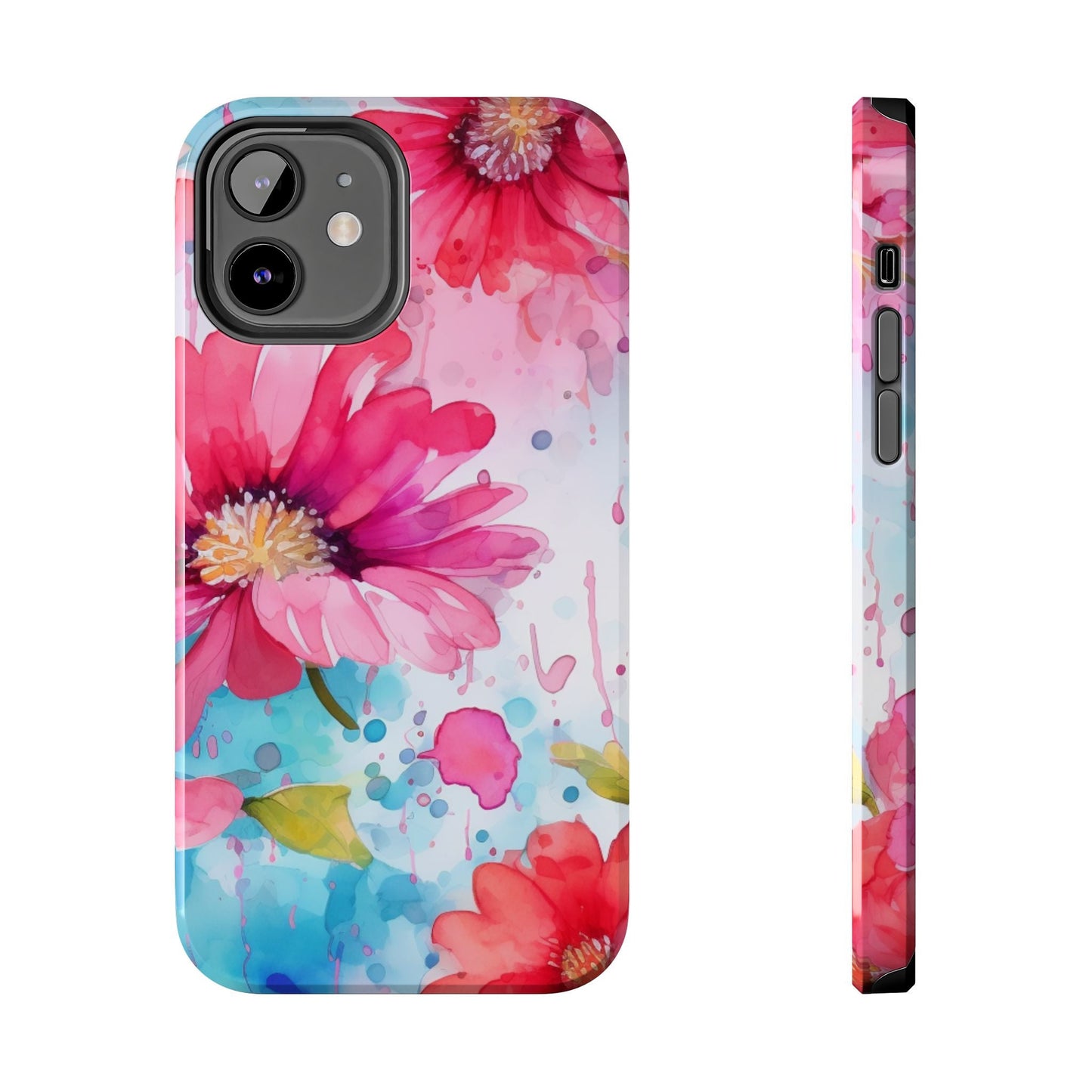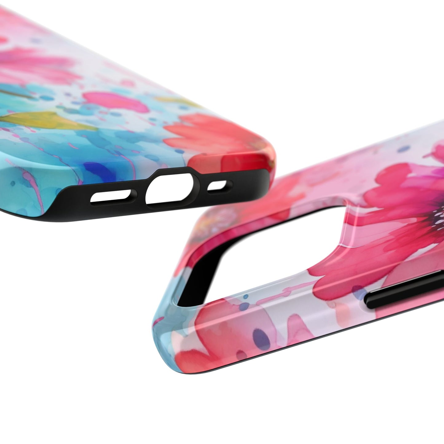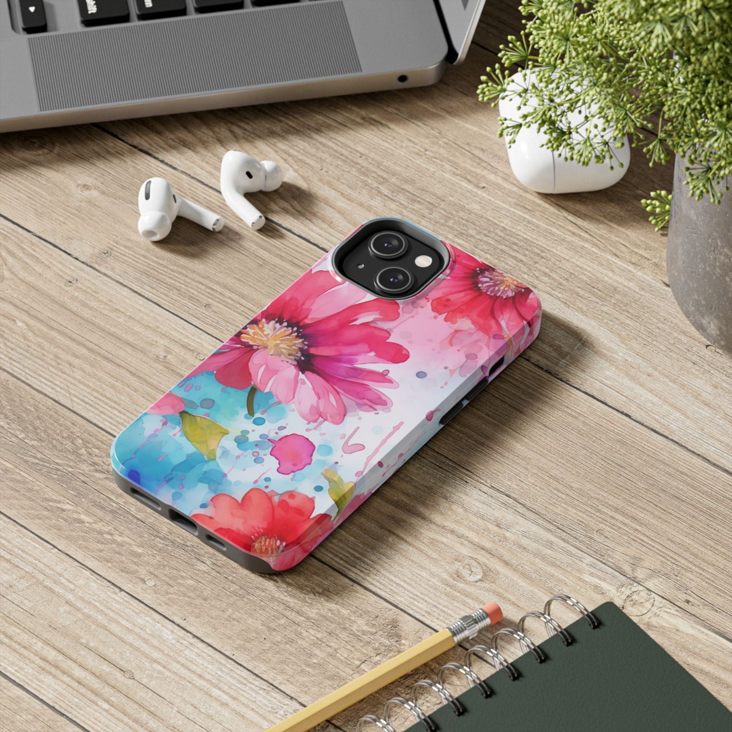 Transform your iPhone with our Vibrant Watercolor Red & Pink Floral case. This stunning design features vivid red and pink flowers set against a soft, artistic blue watercolor background, making it the perfect blend of bold and beautiful. With its durable build, your phone stays p...
