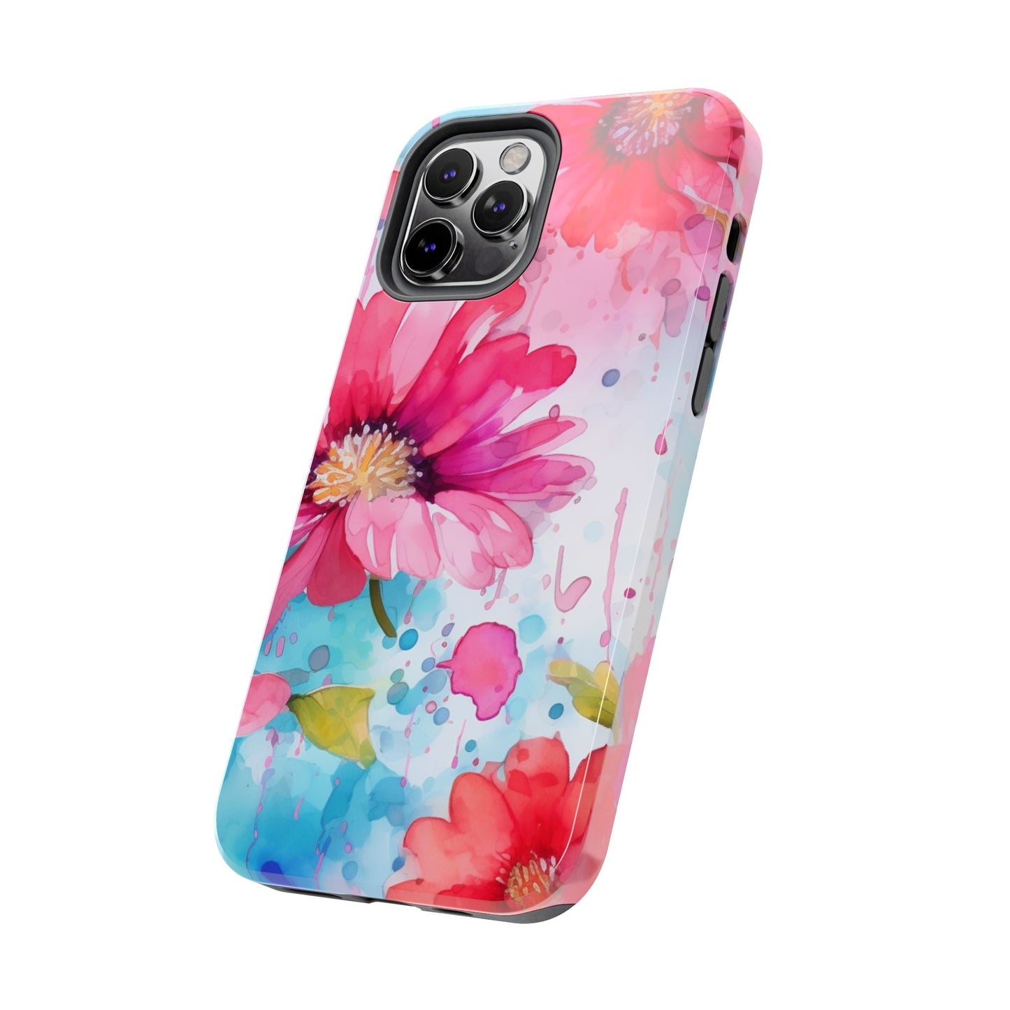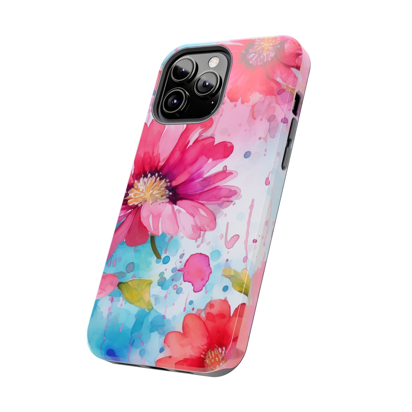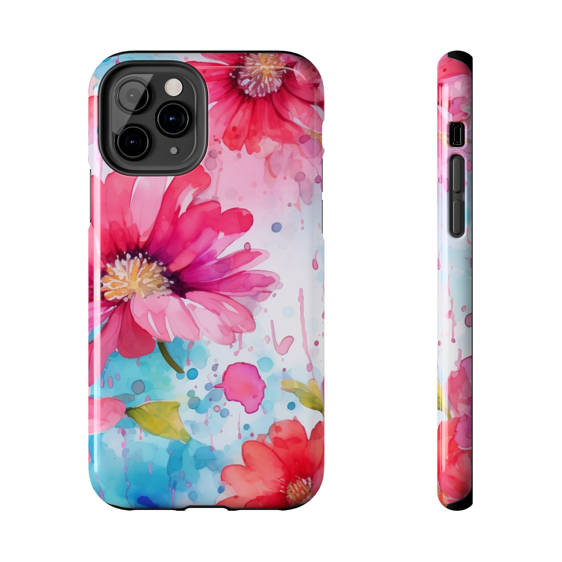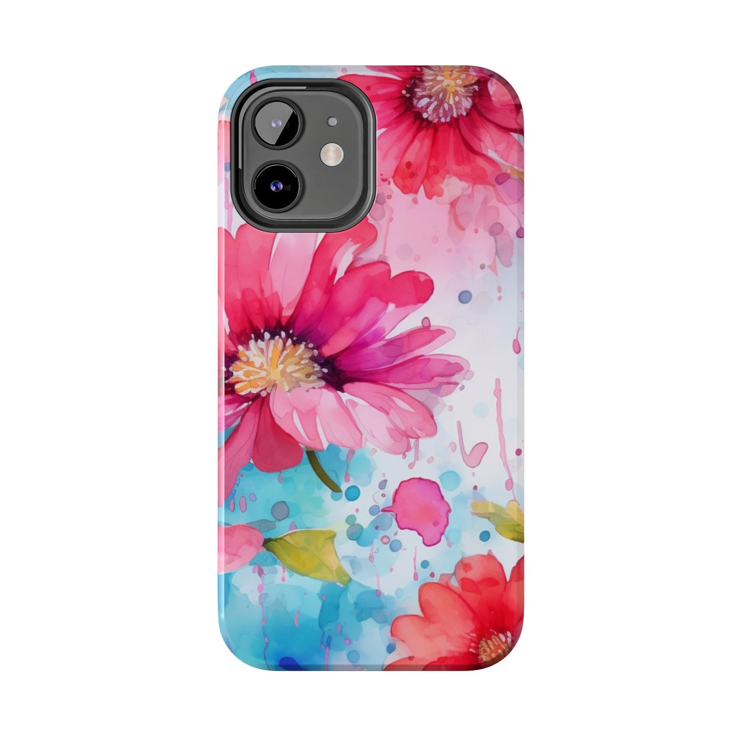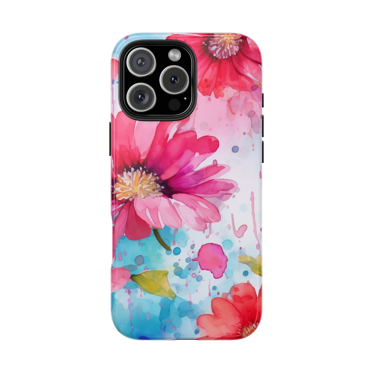 Transform your iPhone with our Vibrant Watercolor Red & Pink Floral case. This stunning design features vivid red and pink flowers set against a soft, artistic blue watercolor background, making it the perfect blend of bold and beautiful. With its durable build, your phone stays p...