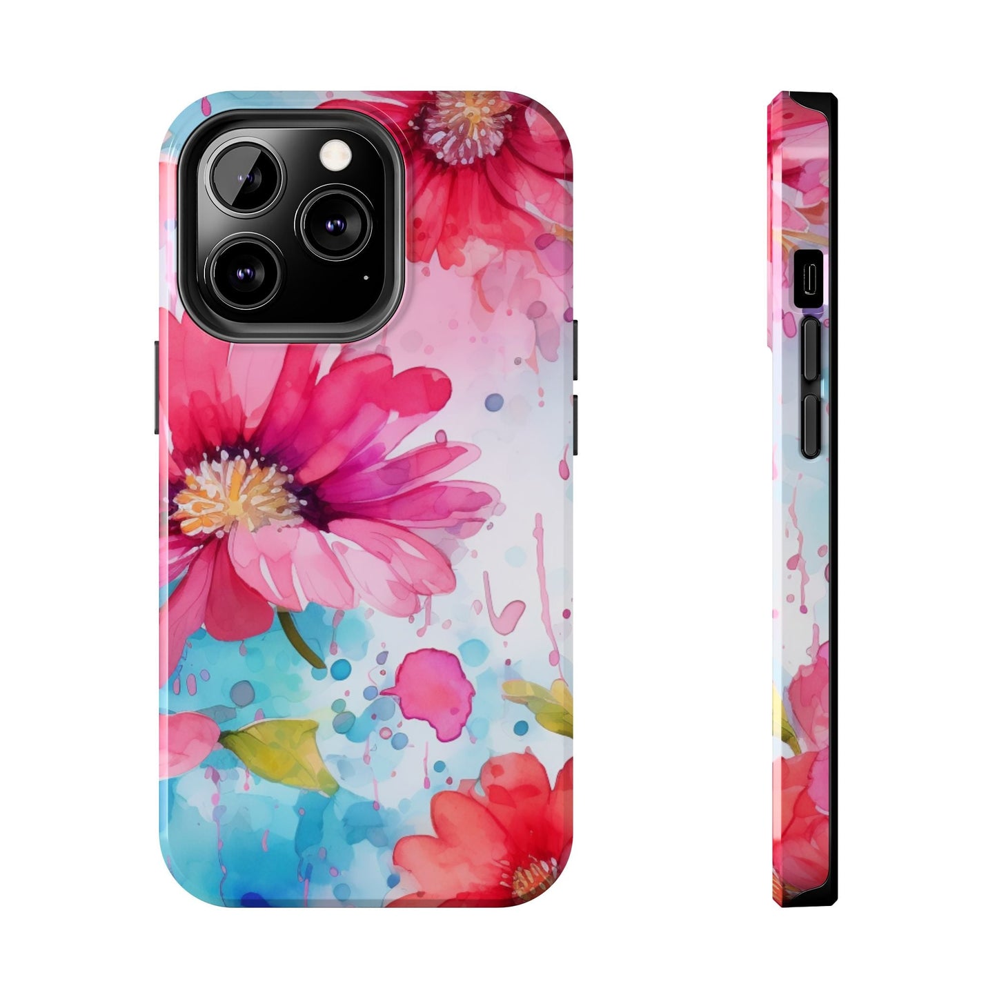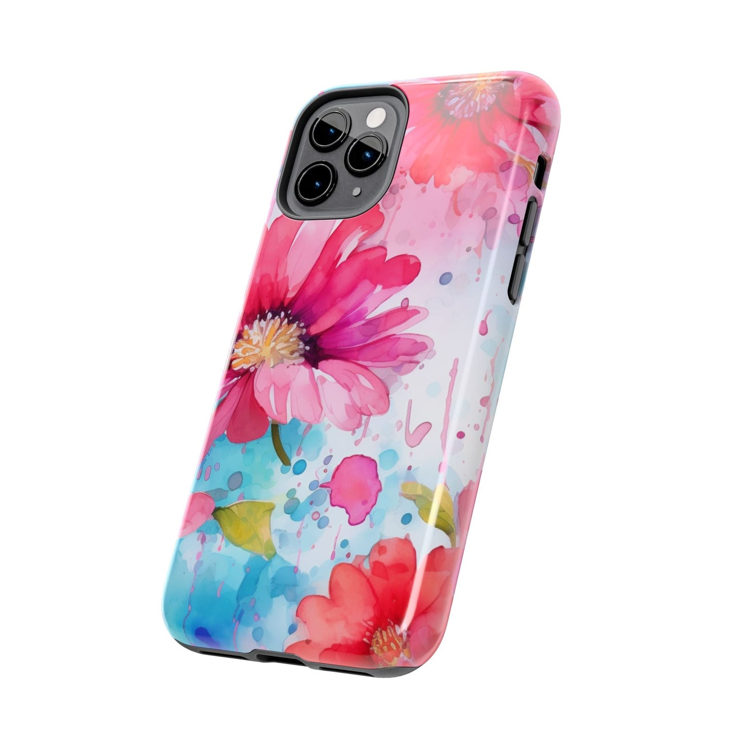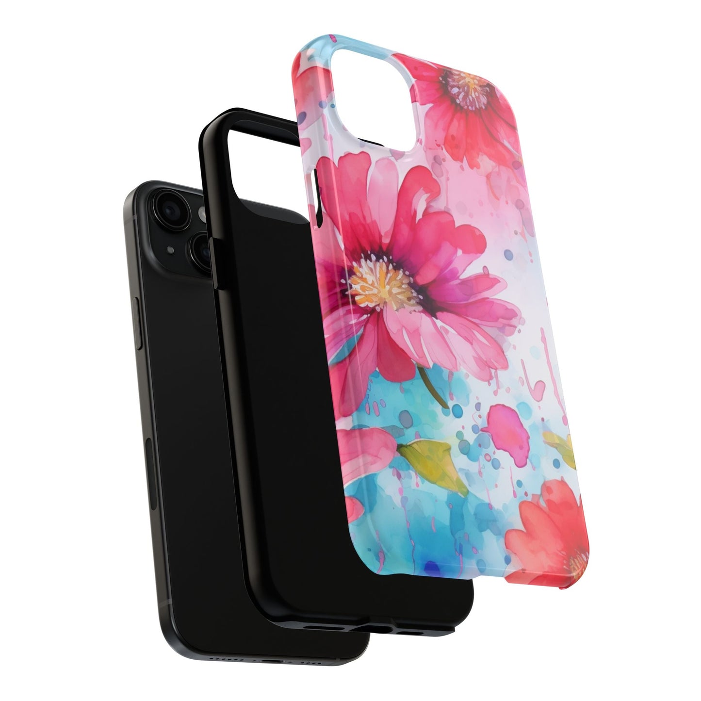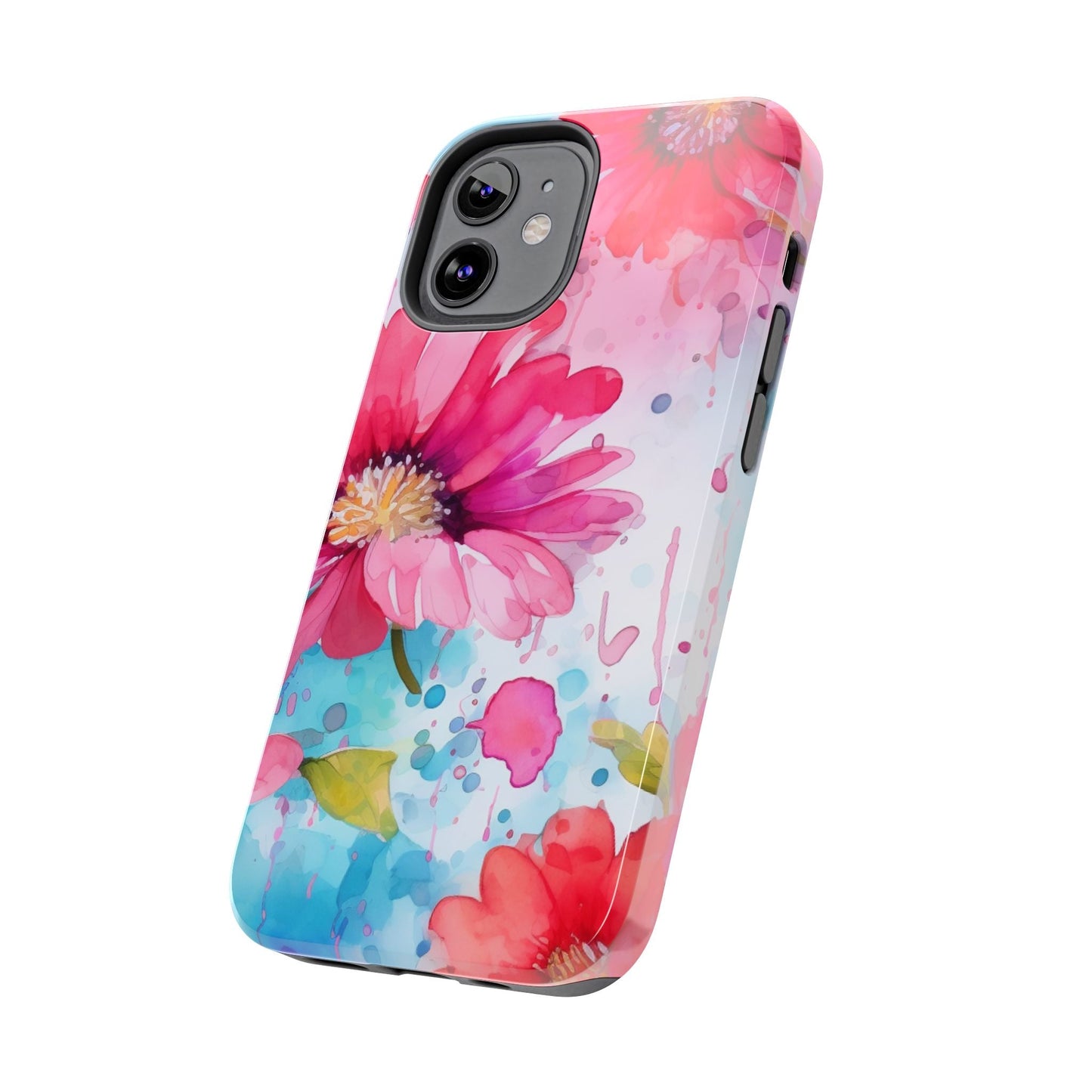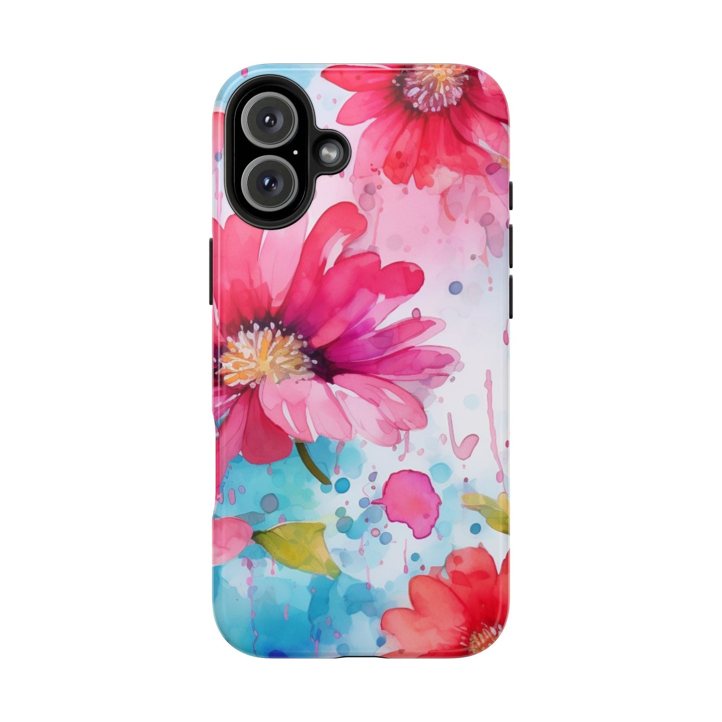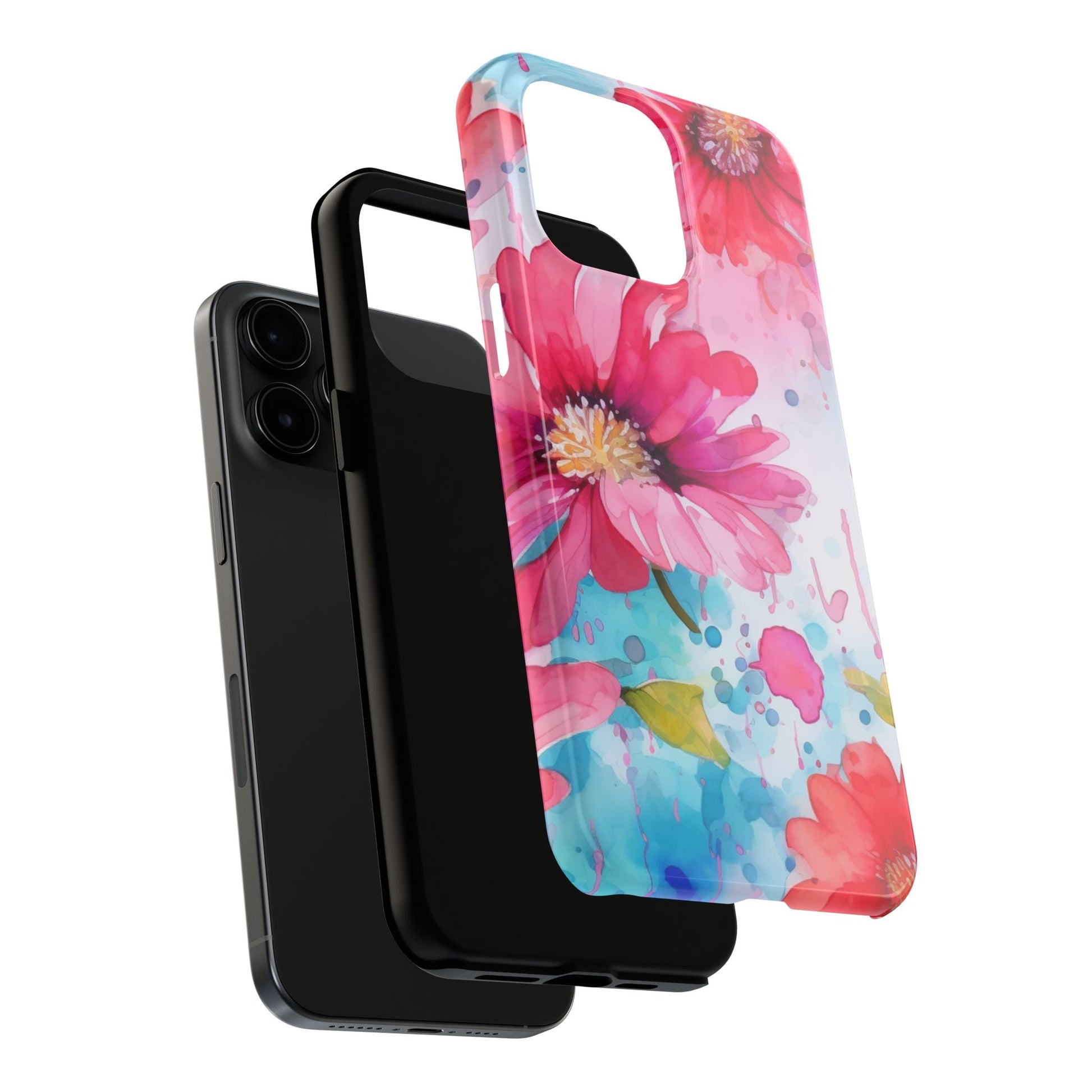 Transform your iPhone with our Vibrant Watercolor Red & Pink Floral case. This stunning design features vivid red and pink flowers set against a soft, artistic blue watercolor background, making it the perfect blend of bold and beautiful. With its durable build, your phone stays p...