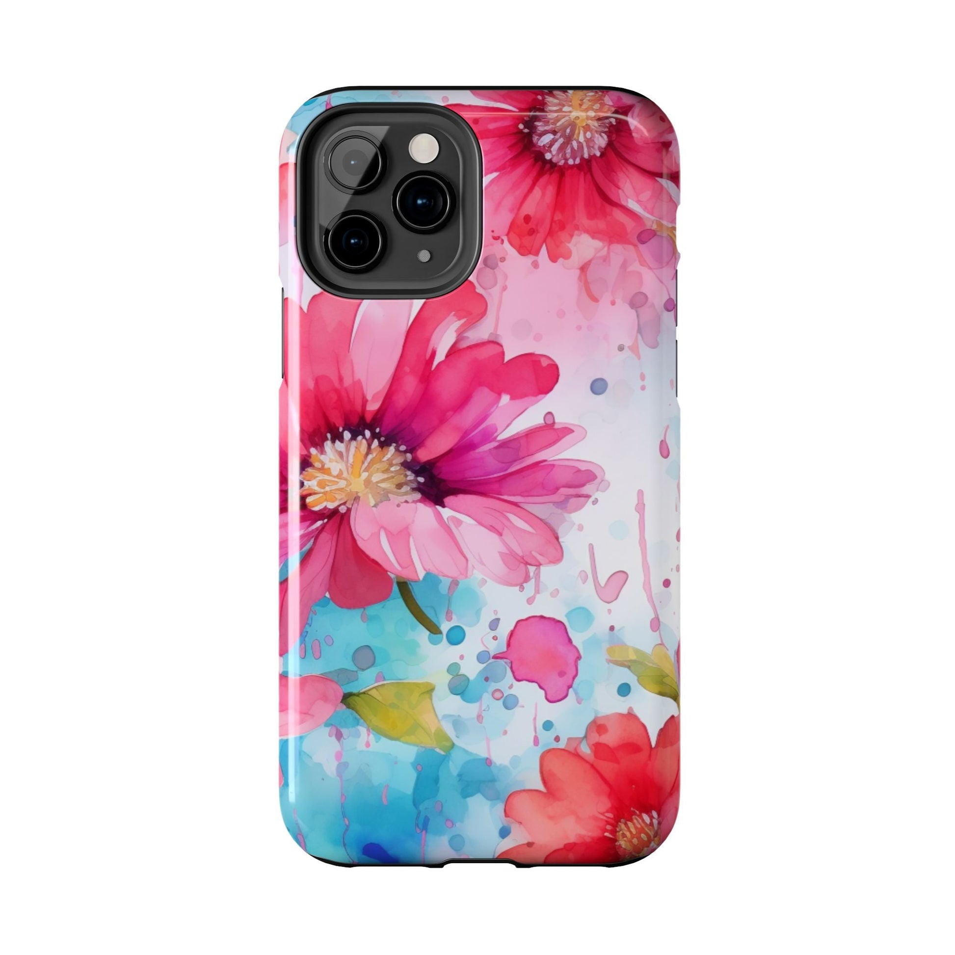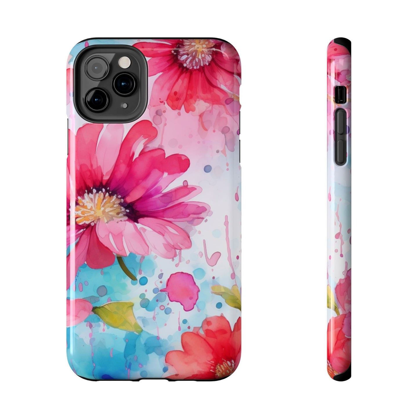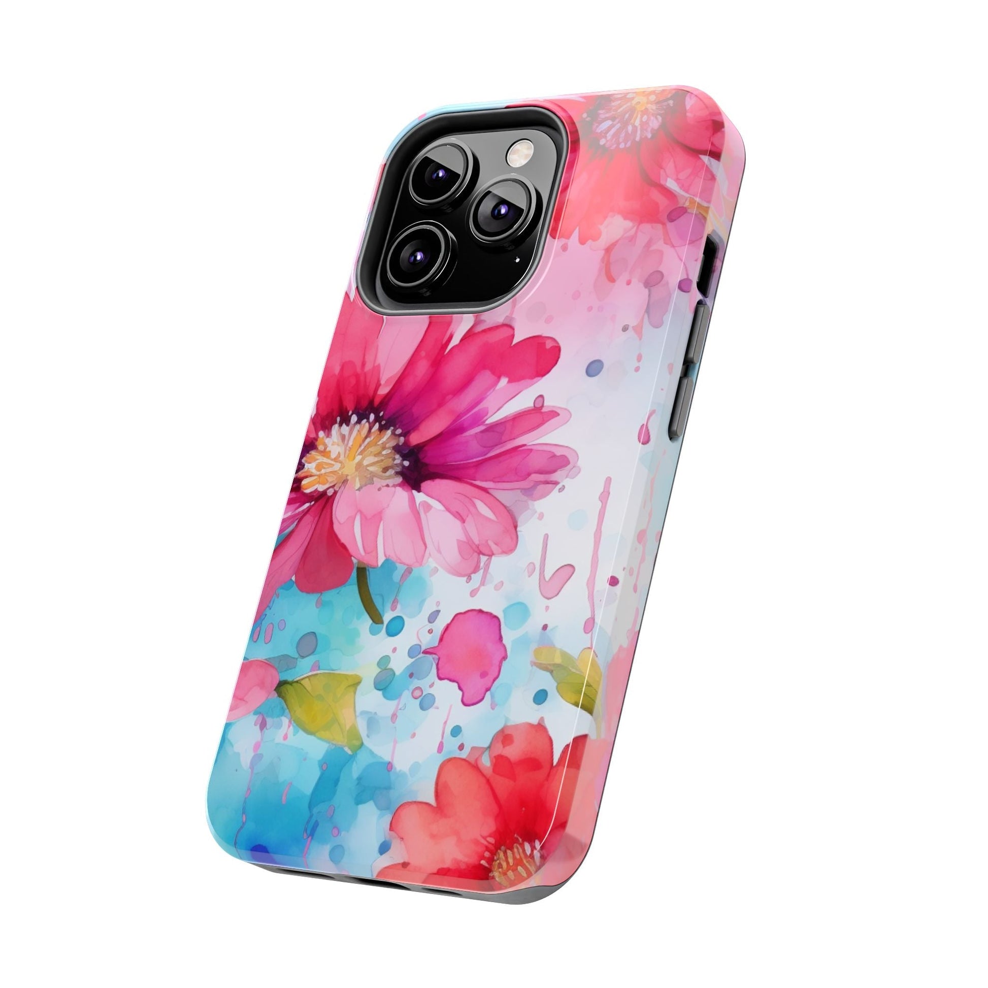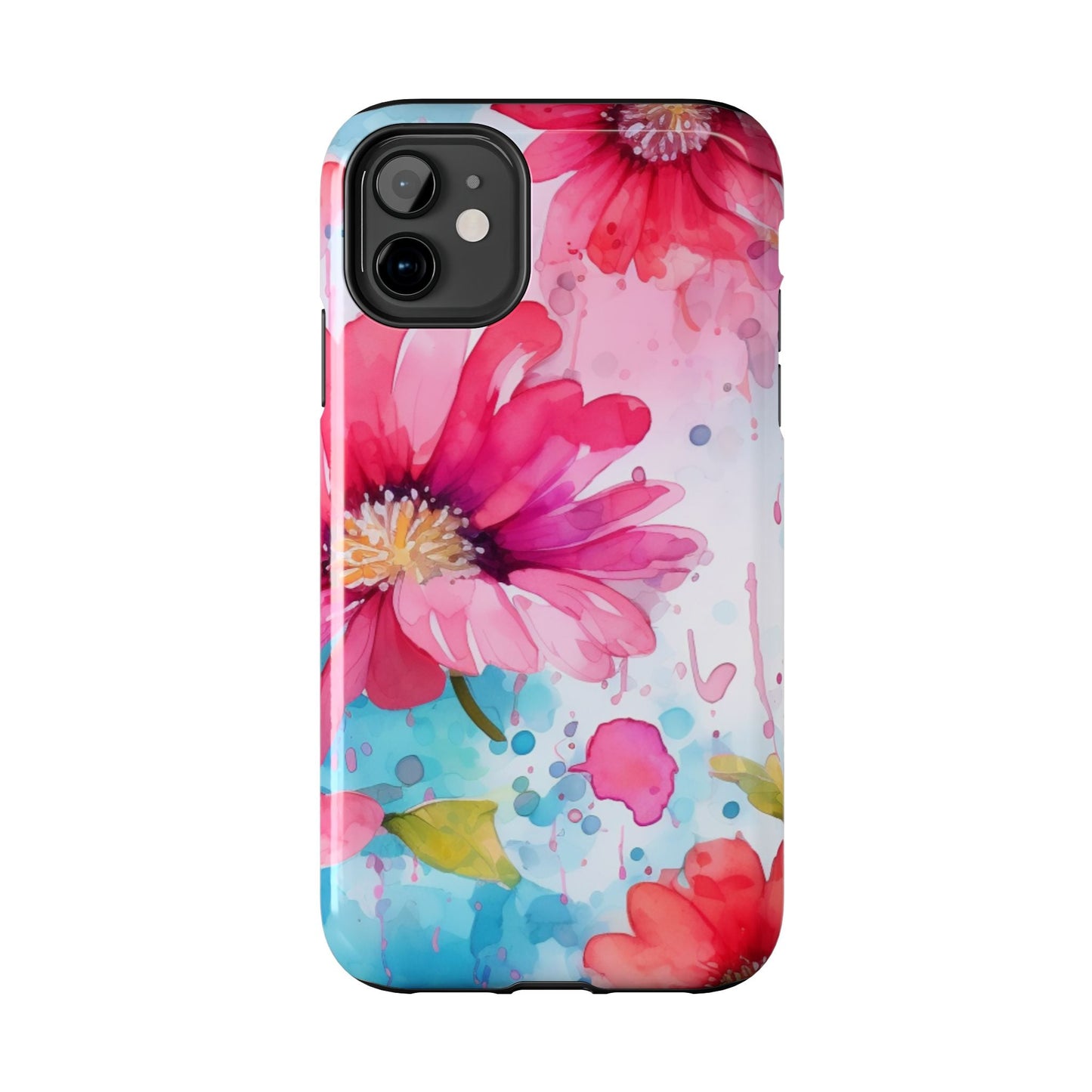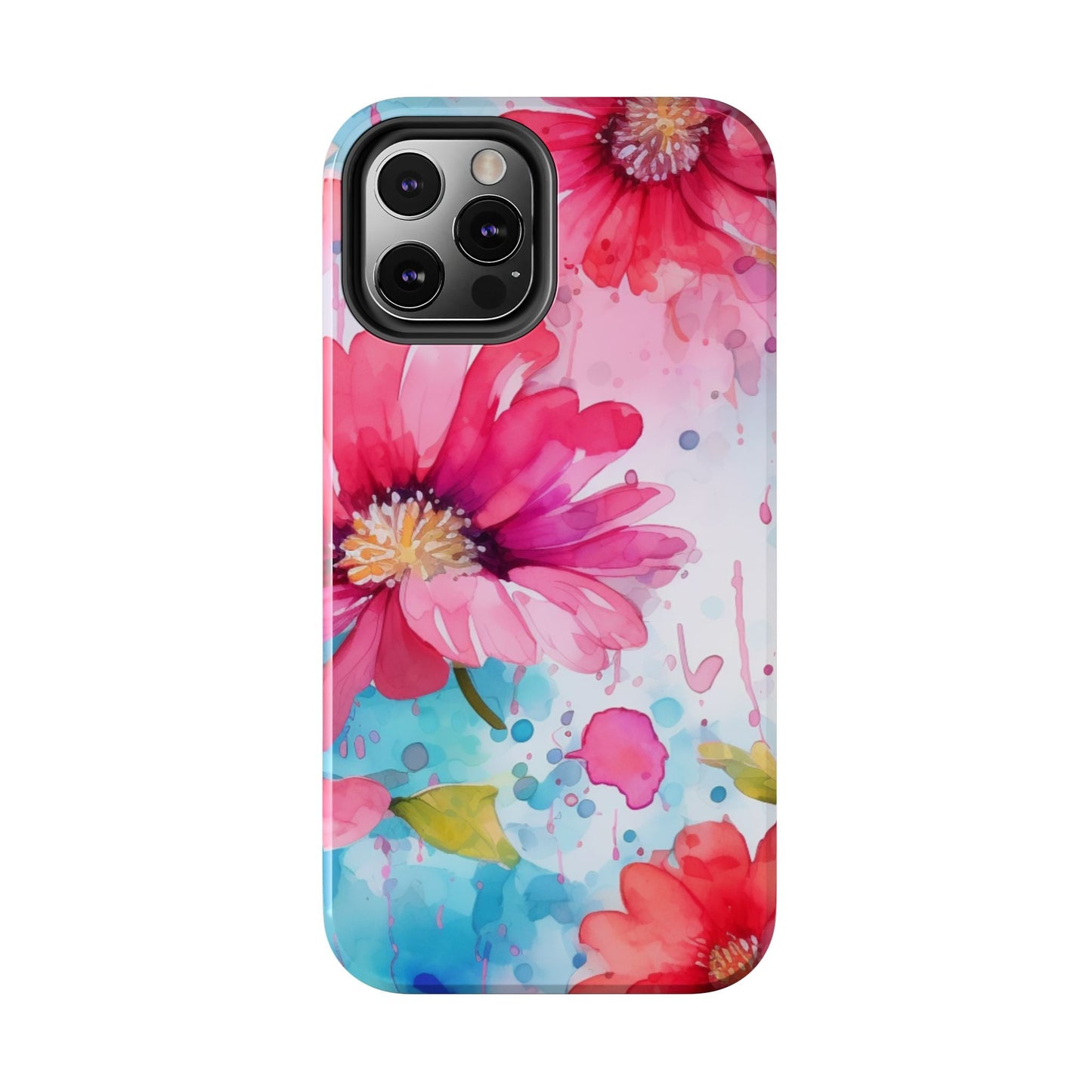 Transform your iPhone with our Vibrant Watercolor Red & Pink Floral case. This stunning design features vivid red and pink flowers set against a soft, artistic blue watercolor background, making it the perfect blend of bold and beautiful. With its durable build, your phone stays p...