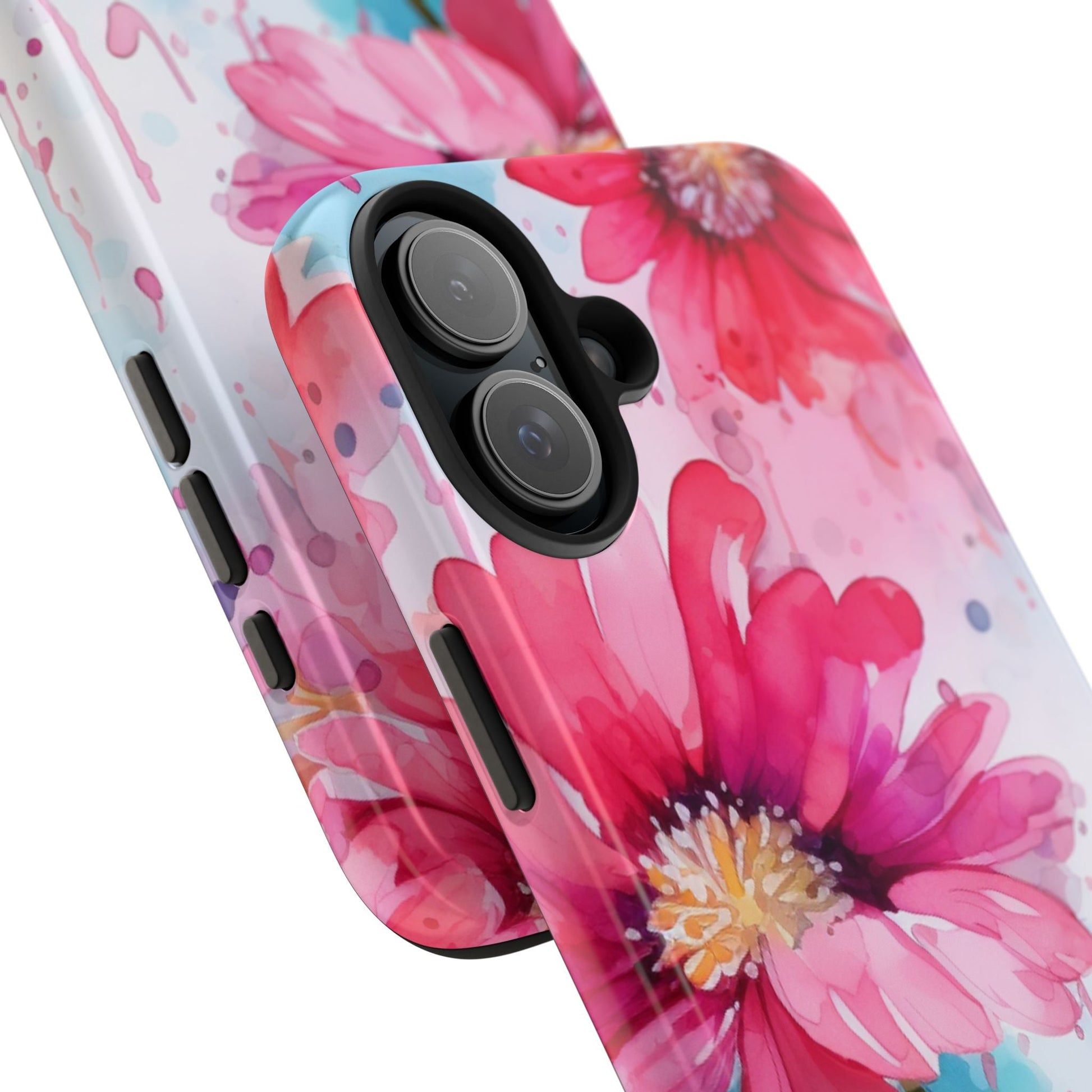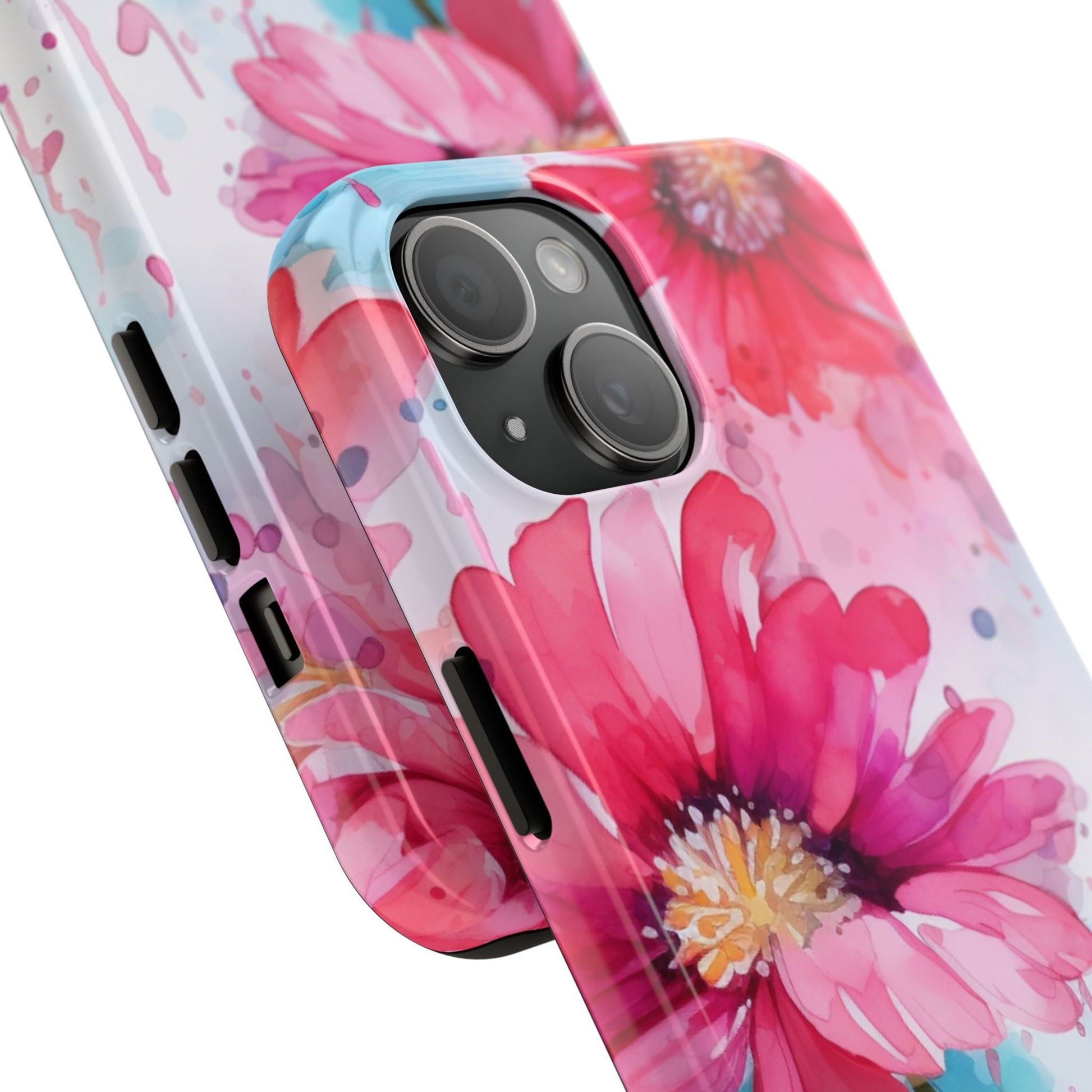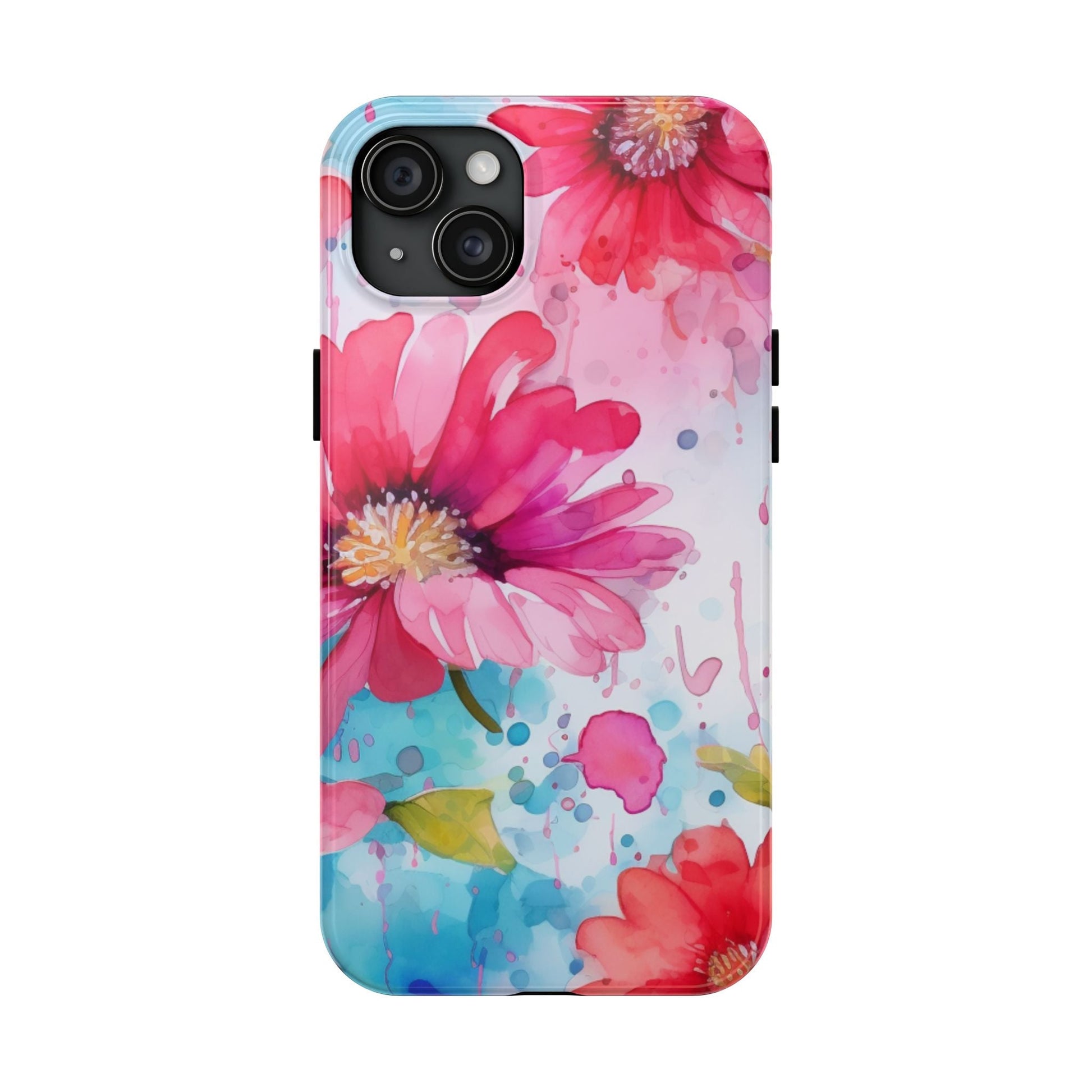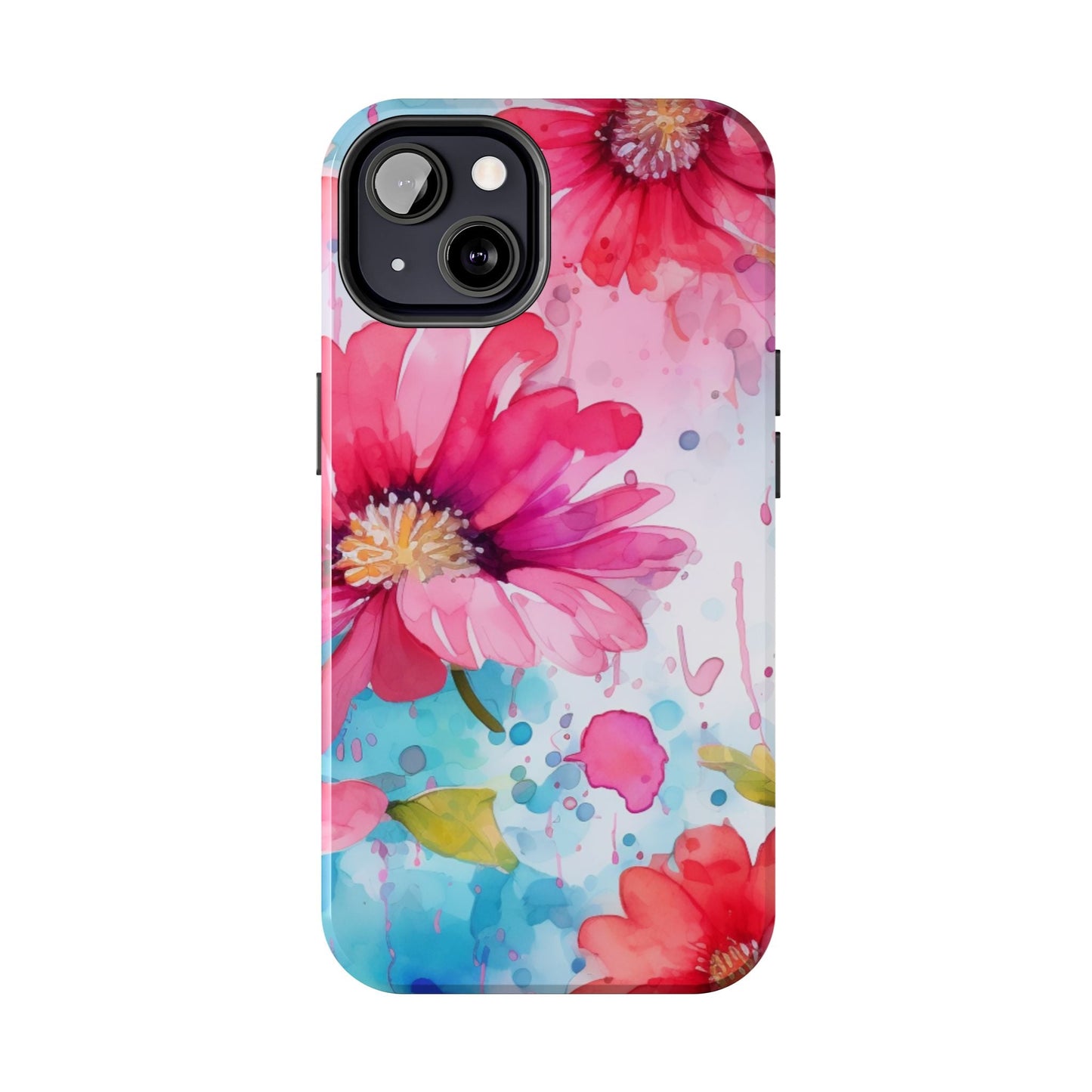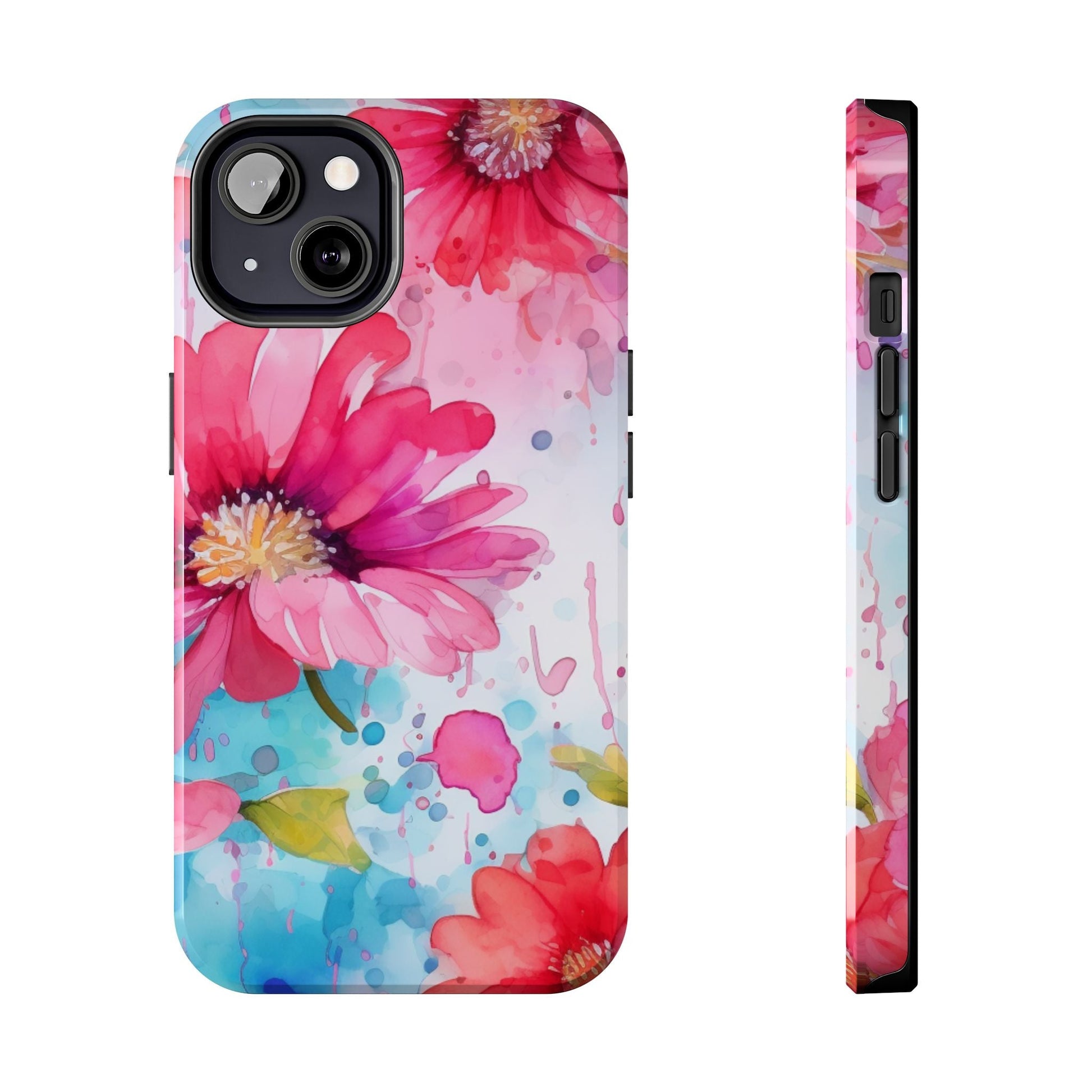 Transform your iPhone with our Vibrant Watercolor Red & Pink Floral case. This stunning design features vivid red and pink flowers set against a soft, artistic blue watercolor background, making it the perfect blend of bold and beautiful. With its durable build, your phone stays p...