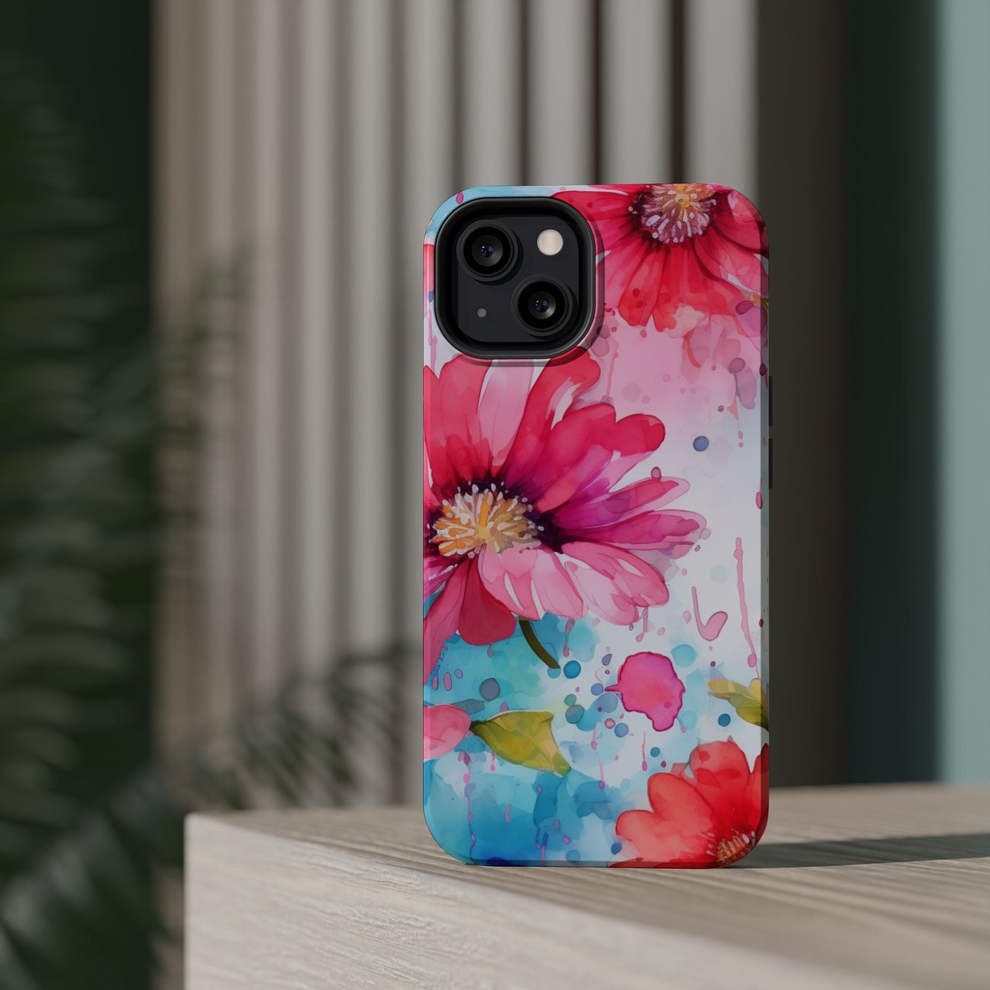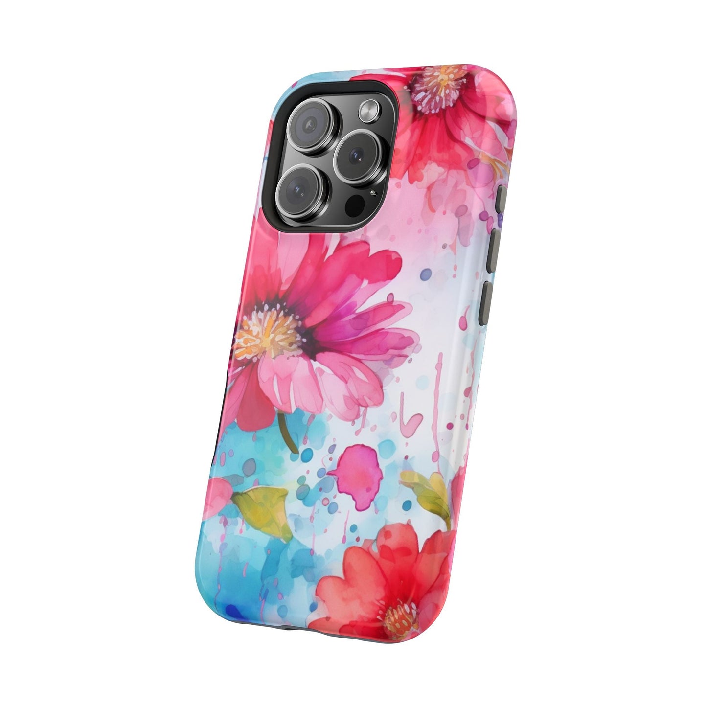 Enjoy both beauty and functionality with our Vibrant Watercolor Red & Pink Floral MagSafe iPhone case. Featuring stunning watercolor red and pink flowers against a dreamy blue backdrop, this case combines artistic elegance with MagSafe compatibility for wireless charging and accessories. The lightweight, durable design protects your phone from drops, scratches, and daily wear while maintaining a slim, seamless fit. Elevate your phone’s look with this bold and vibrant floral masterpiece!