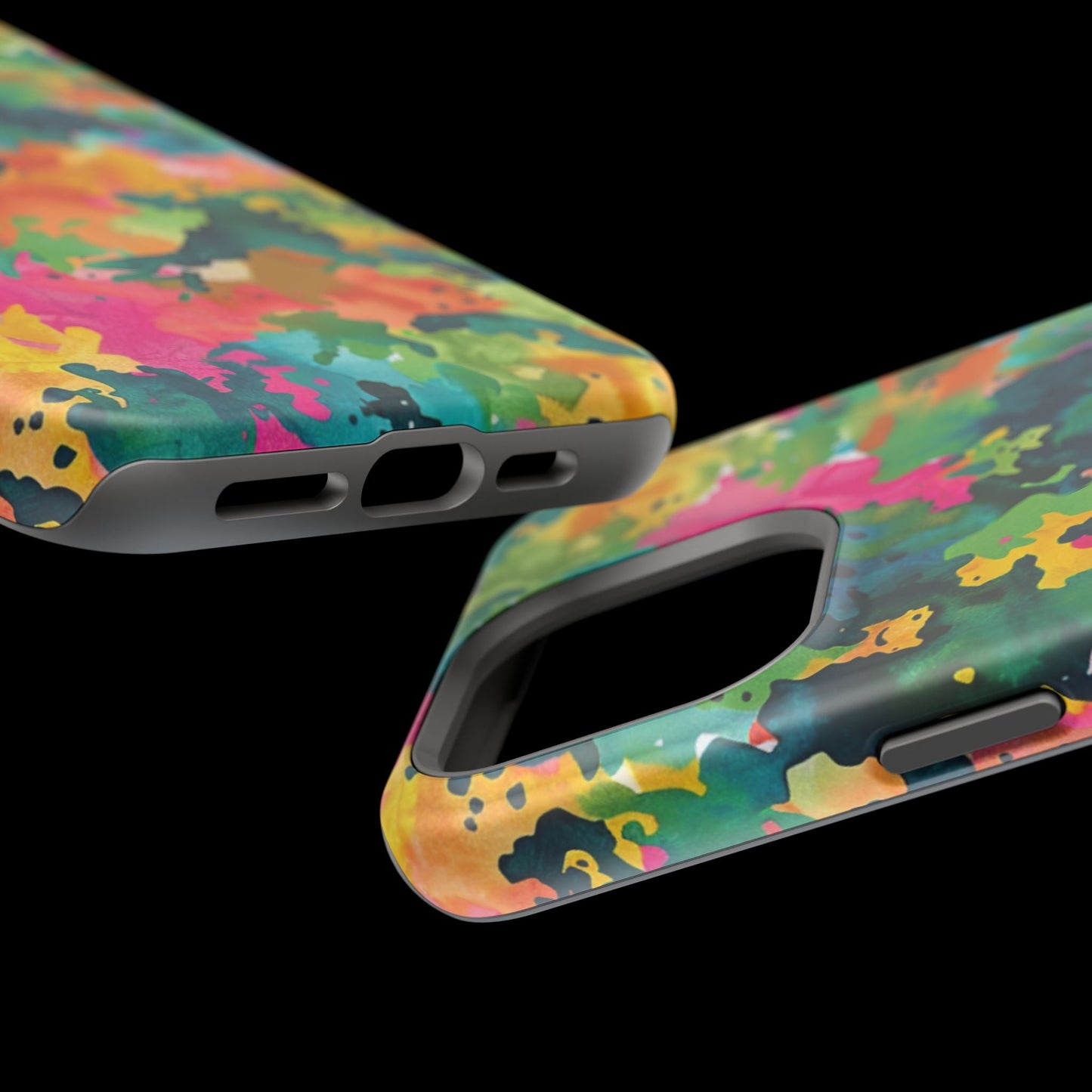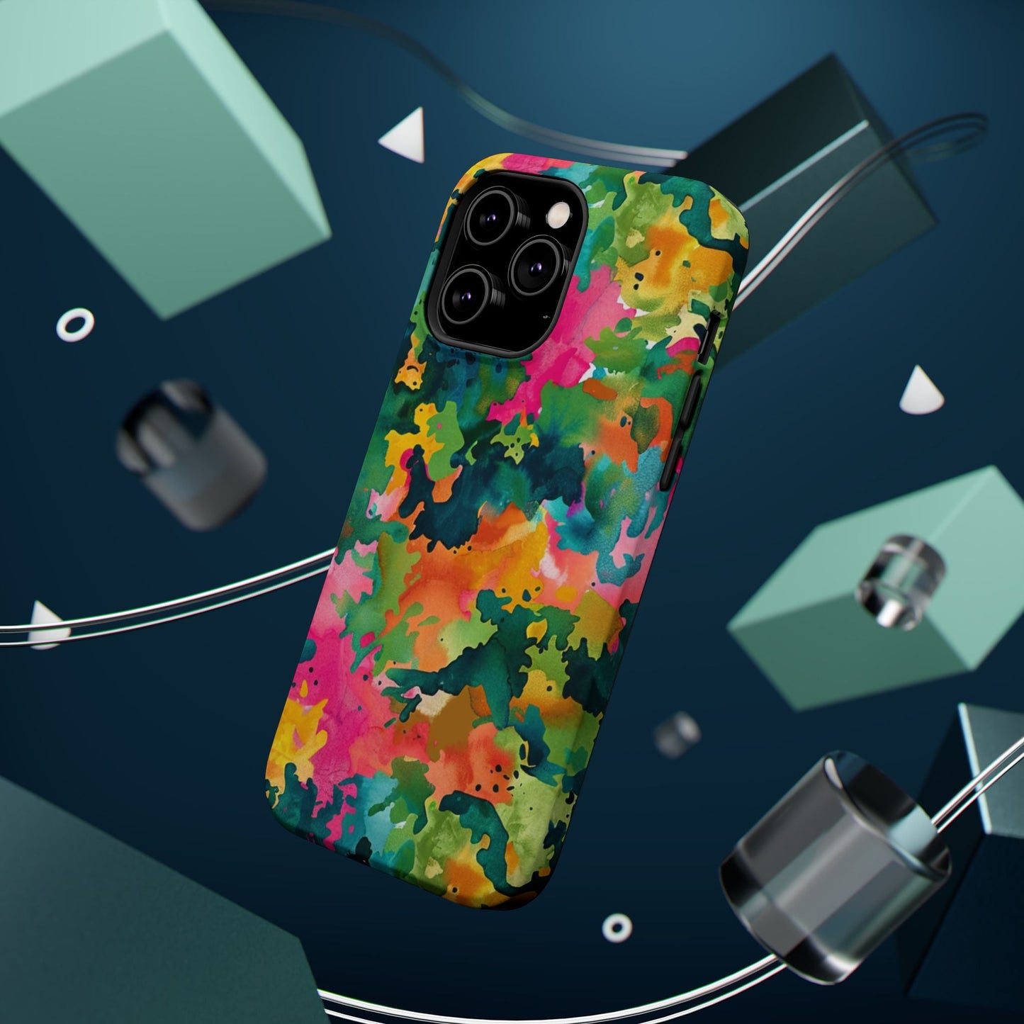 Description: Combine artistry and functionality with the Vibrant Watercolor Splash MagSafe Case. Designed for Apple MagSafe technology, this case features a striking multicolor abstract design that blends pink, orange, teal, and green for a dynamic look. Offering a secure magnetic alignment for effortless charging, it also provides robust protection for your iPhone.