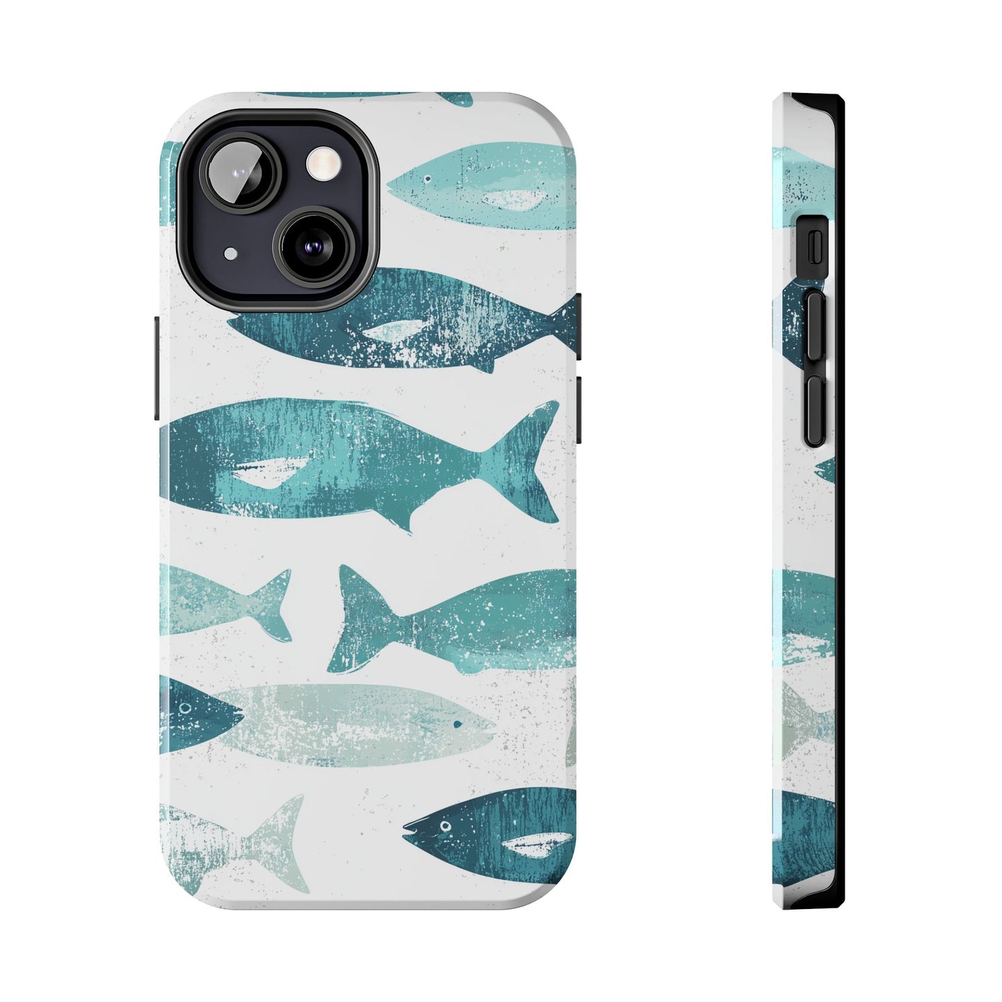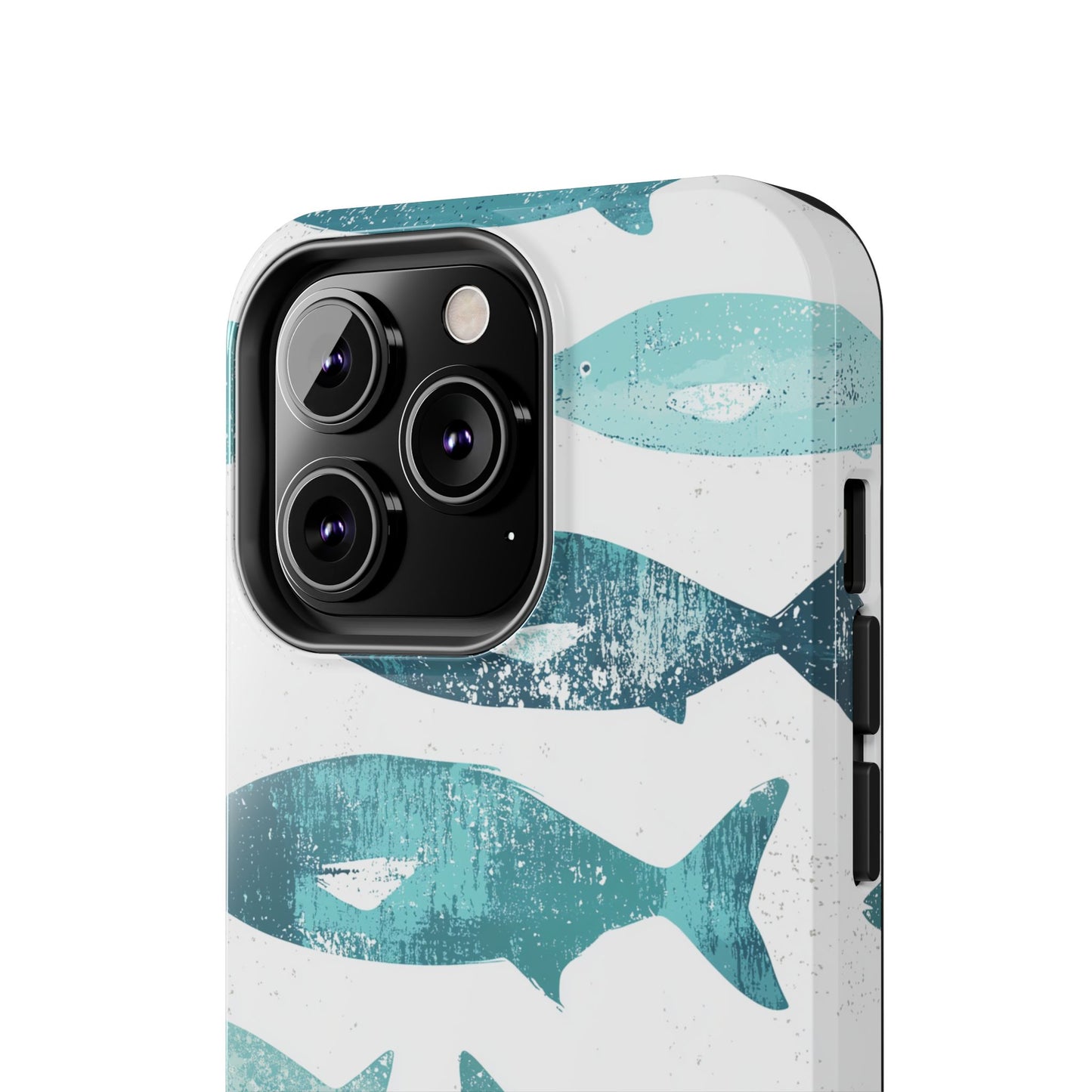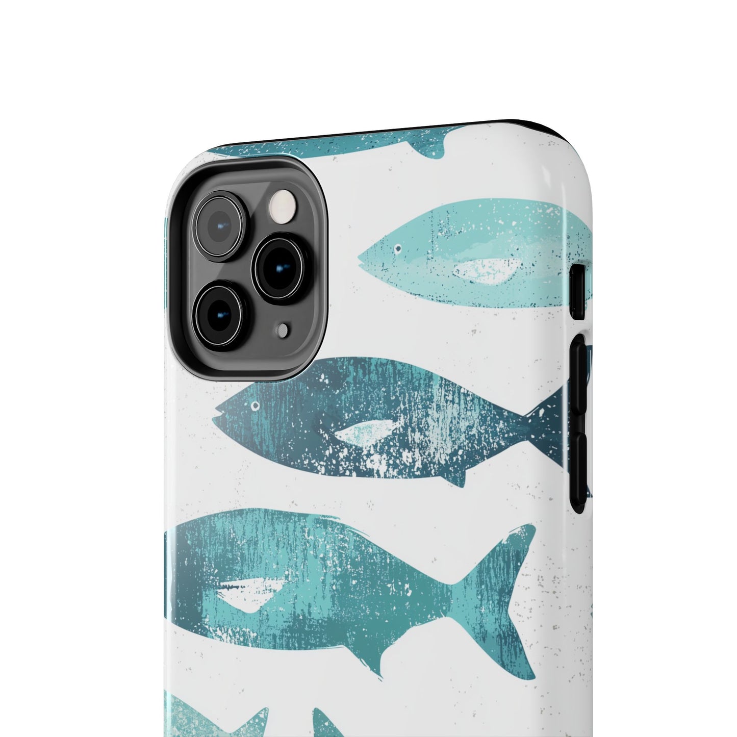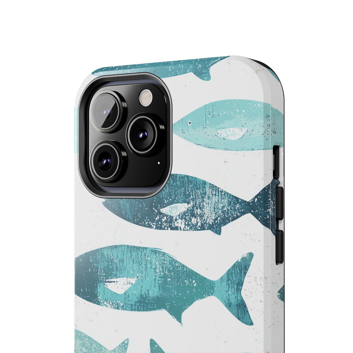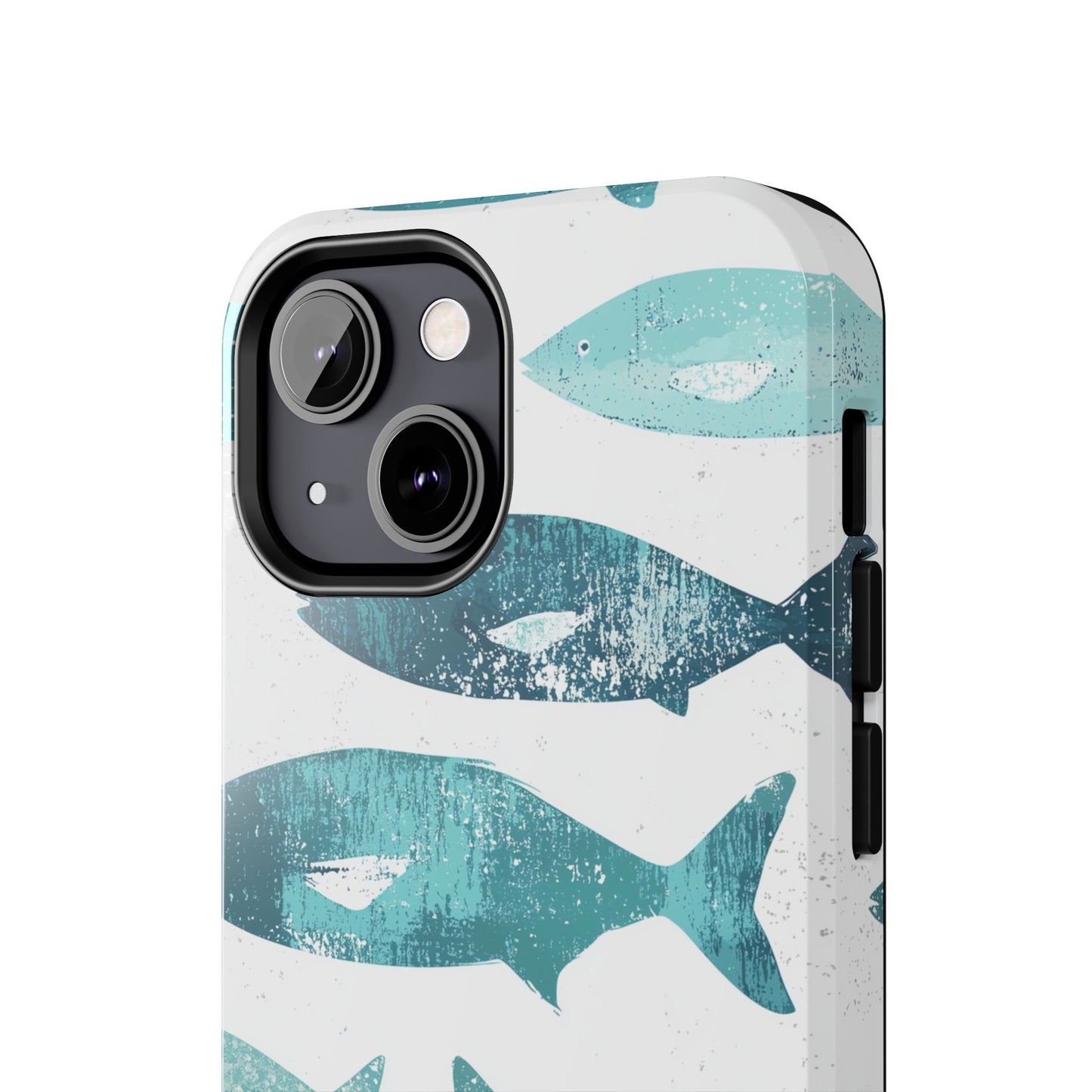 Make a splash with our Vintage Blue Fish Print iPhone Case, perfect for anyone who loves coastal charm and rustic vibes. This case features a unique fish pattern in weathered shades of teal, turquoise, and aqua, giving it a distressed, hand-painted look that feels both artistic and timeless. The faded texture adds a touch of vintage flair, making it an ideal accessory for beach lovers and ocean enthusiasts. Built to protect your phone from drops and scratches, this case blends style with durability.