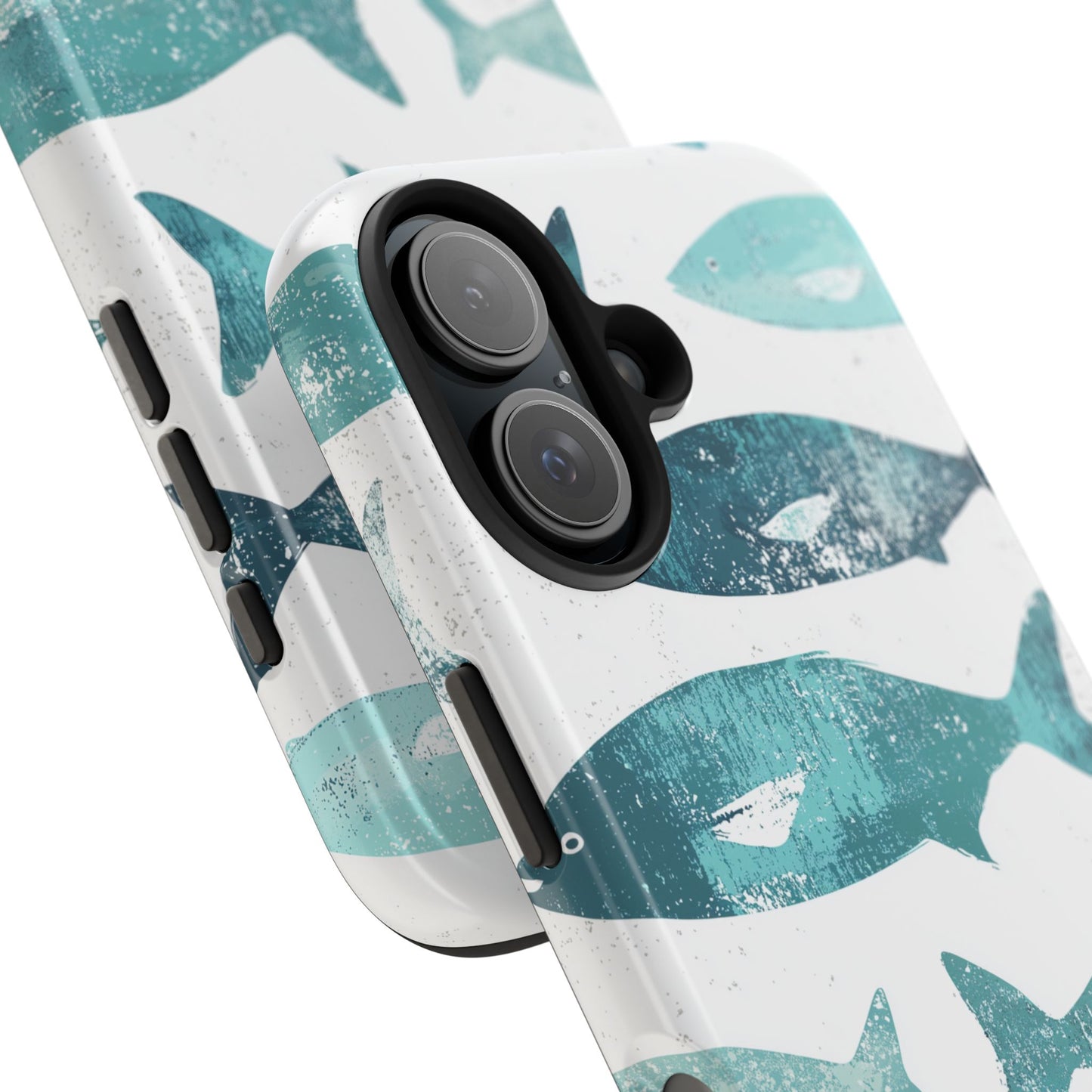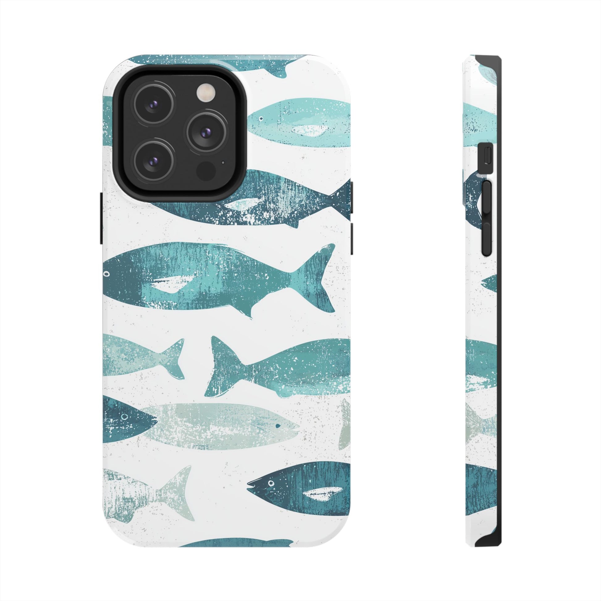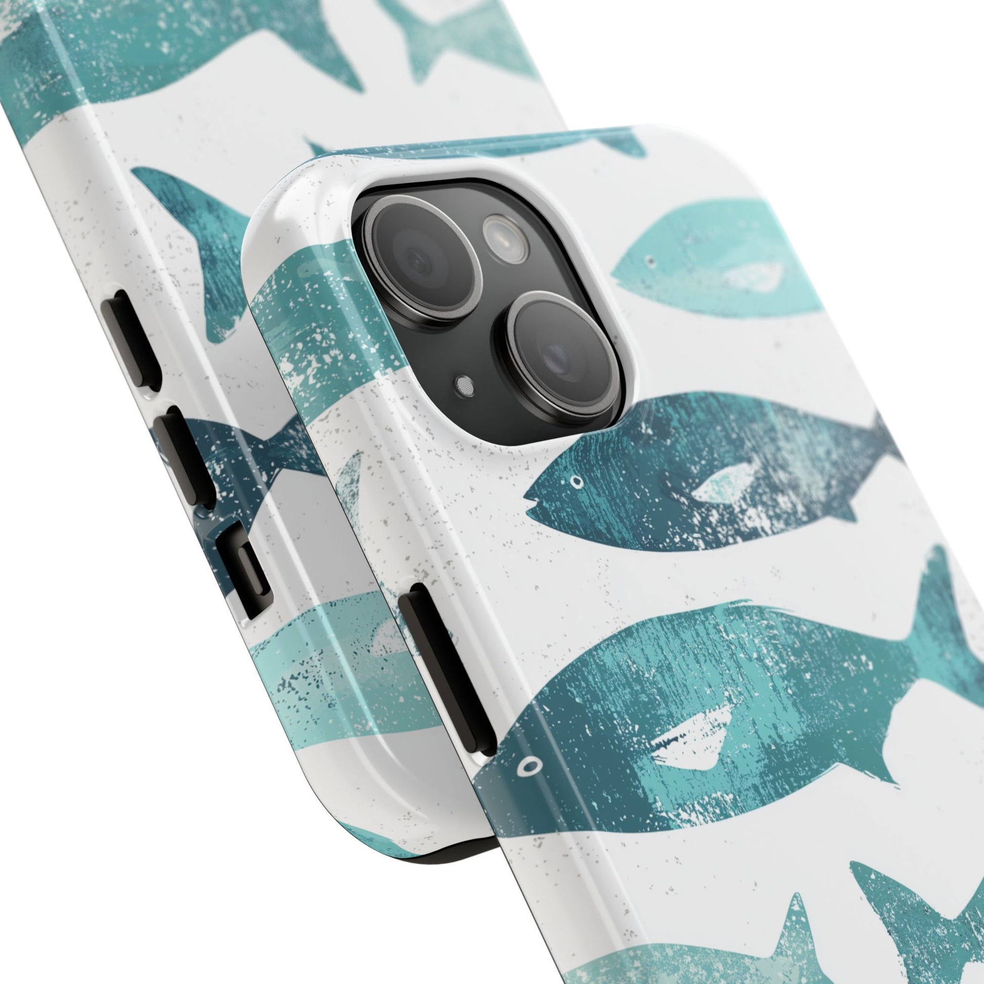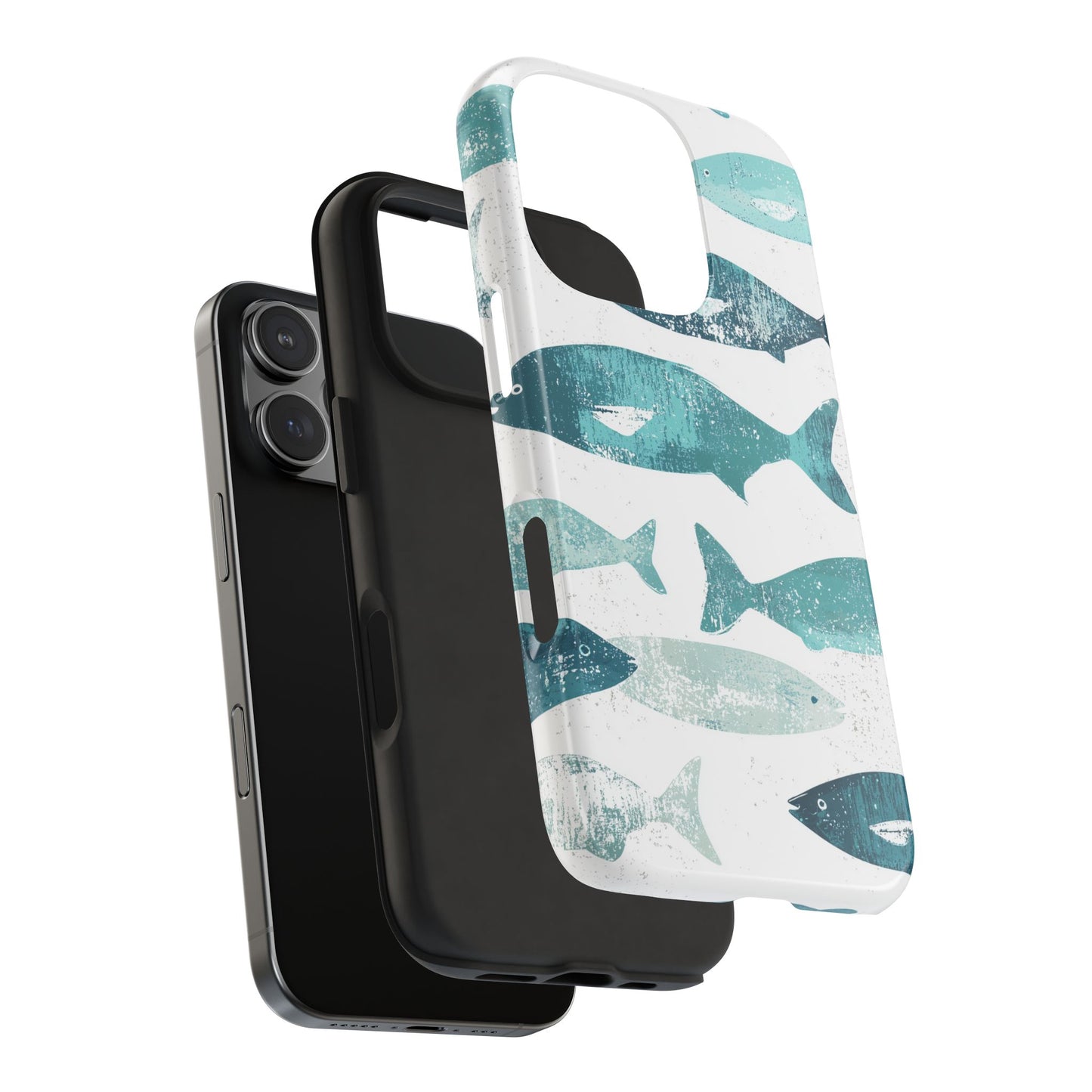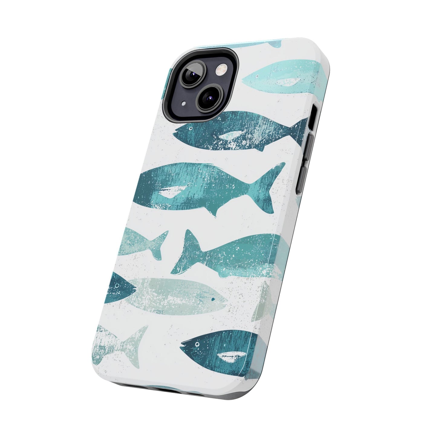 Make a splash with our Vintage Blue Fish Print iPhone Case, perfect for anyone who loves coastal charm and rustic vibes. This case features a unique fish pattern in weathered shades of teal, turquoise, and aqua, giving it a distressed, hand-painted look that feels both artistic and timeless. The faded texture adds a touch of vintage flair, making it an ideal accessory for beach lovers and ocean enthusiasts. Built to protect your phone from drops and scratches, this case blends style with durability.