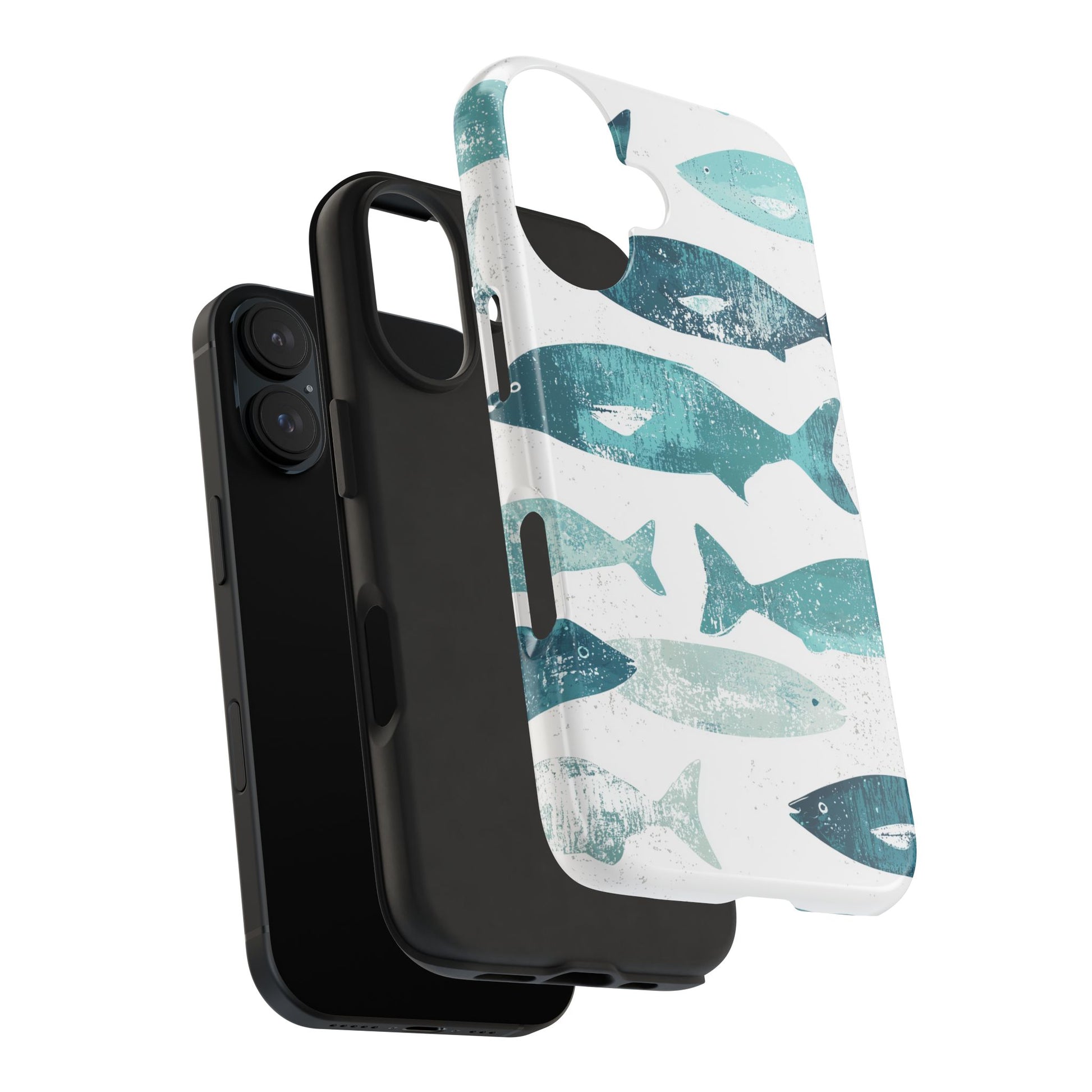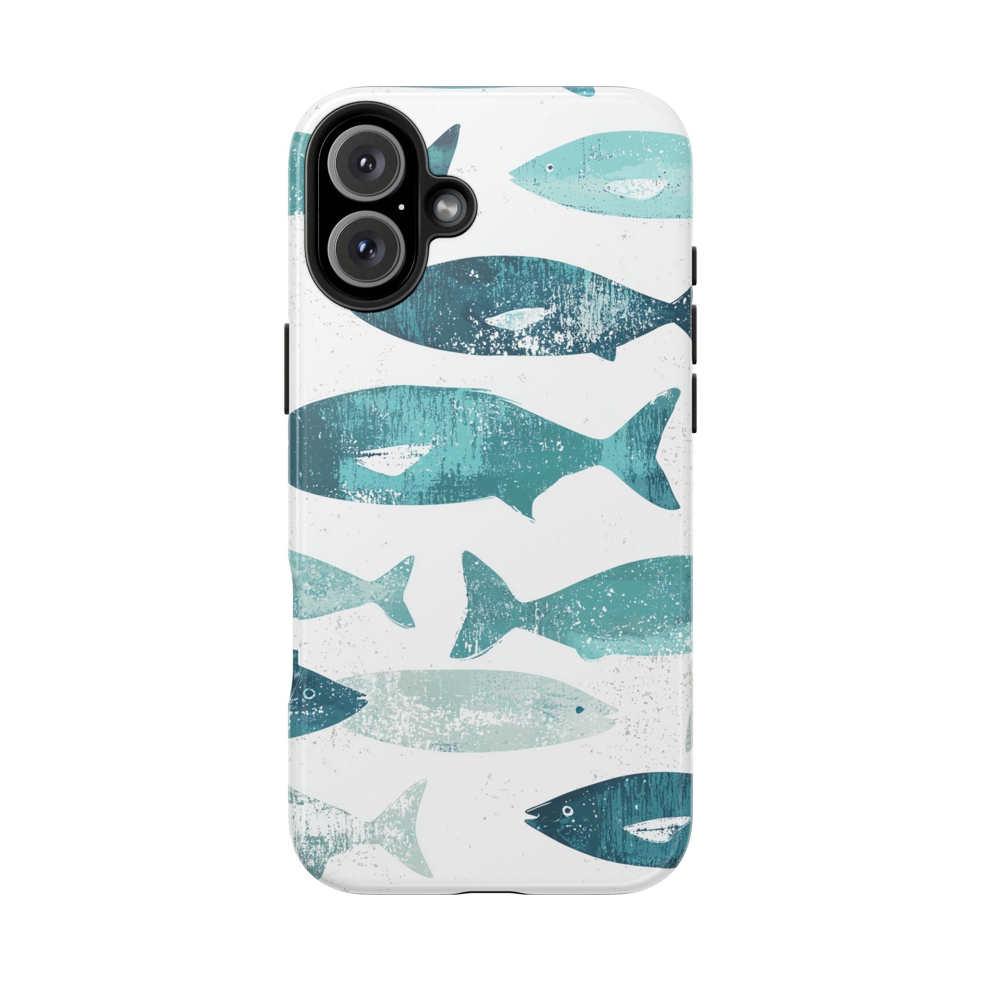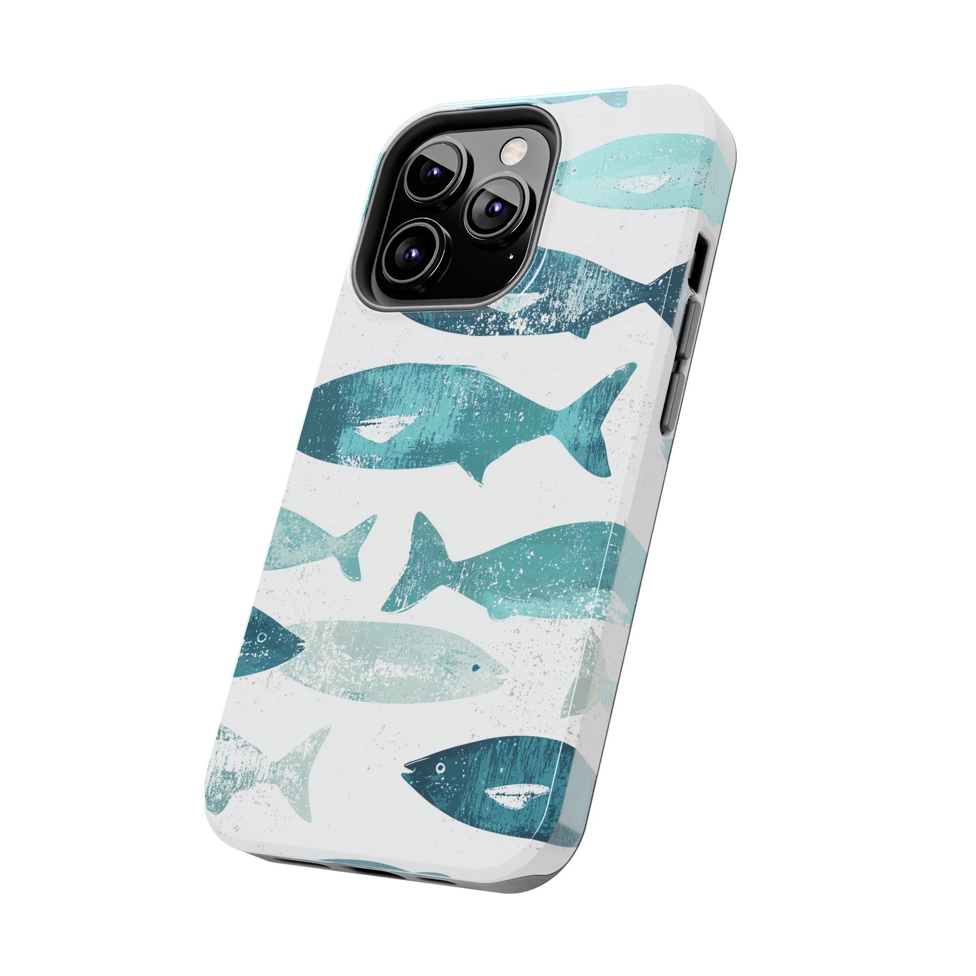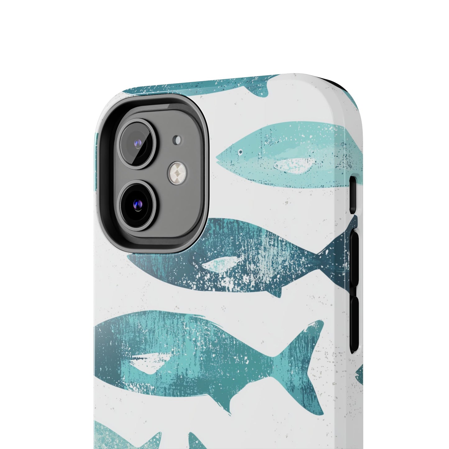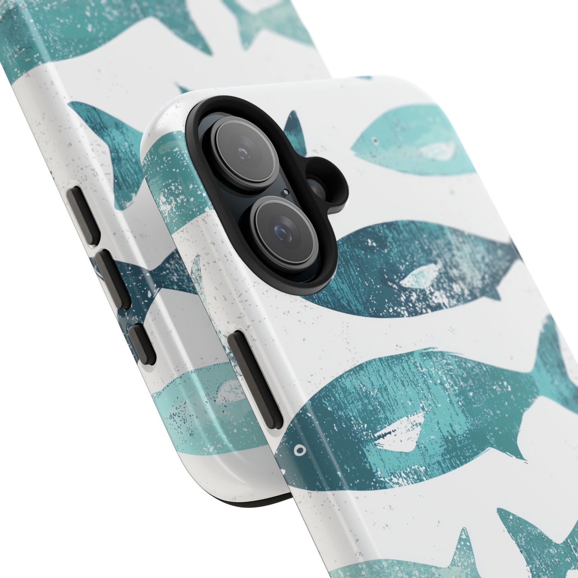 Make a splash with our Vintage Blue Fish Print iPhone Case, perfect for anyone who loves coastal charm and rustic vibes. This case features a unique fish pattern in weathered shades of teal, turquoise, and aqua, giving it a distressed, hand-painted look that feels both artistic and timeless. The faded texture adds a touch of vintage flair, making it an ideal accessory for beach lovers and ocean enthusiasts. Built to protect your phone from drops and scratches, this case blends style with durability.