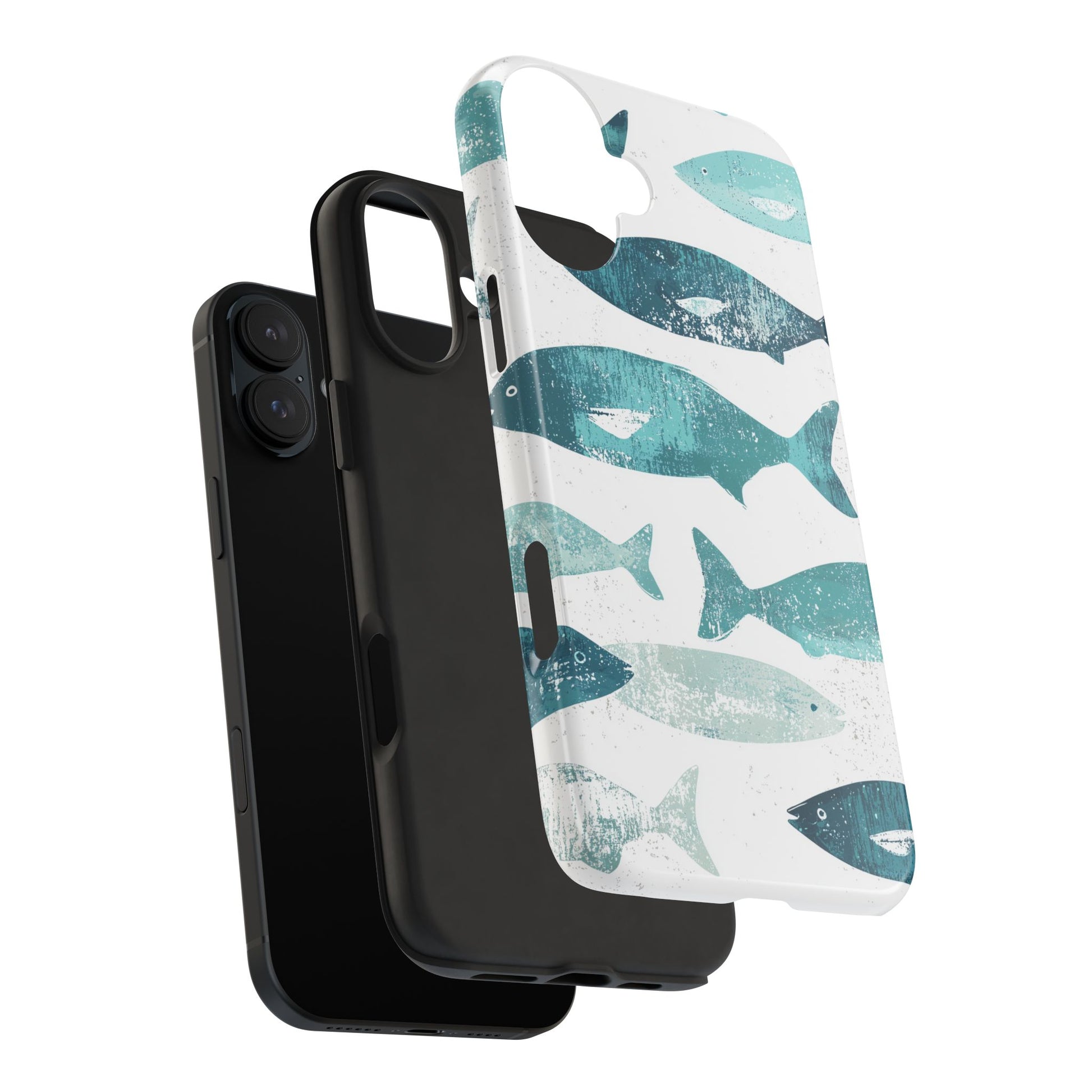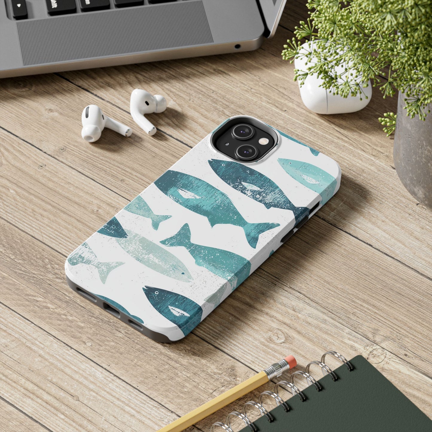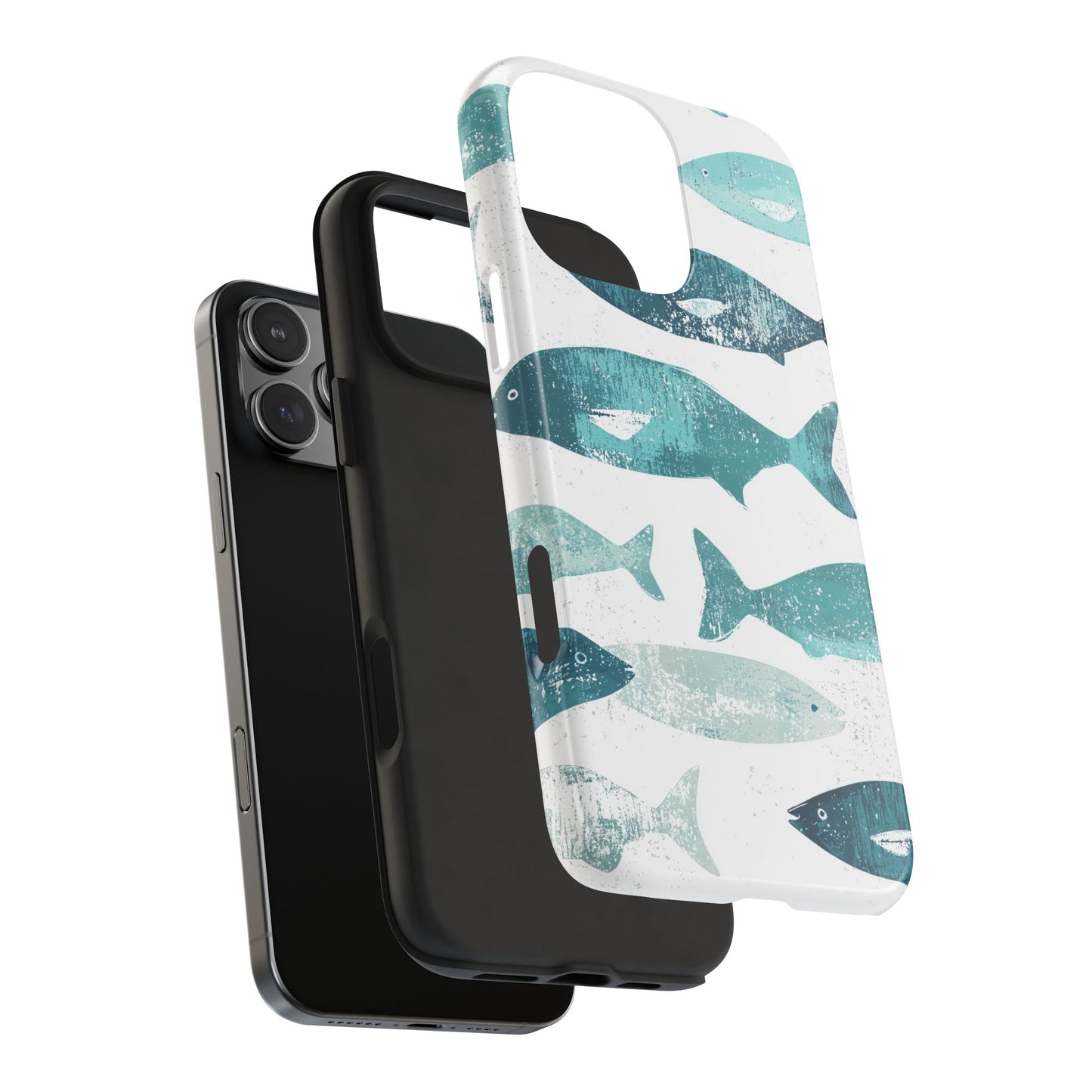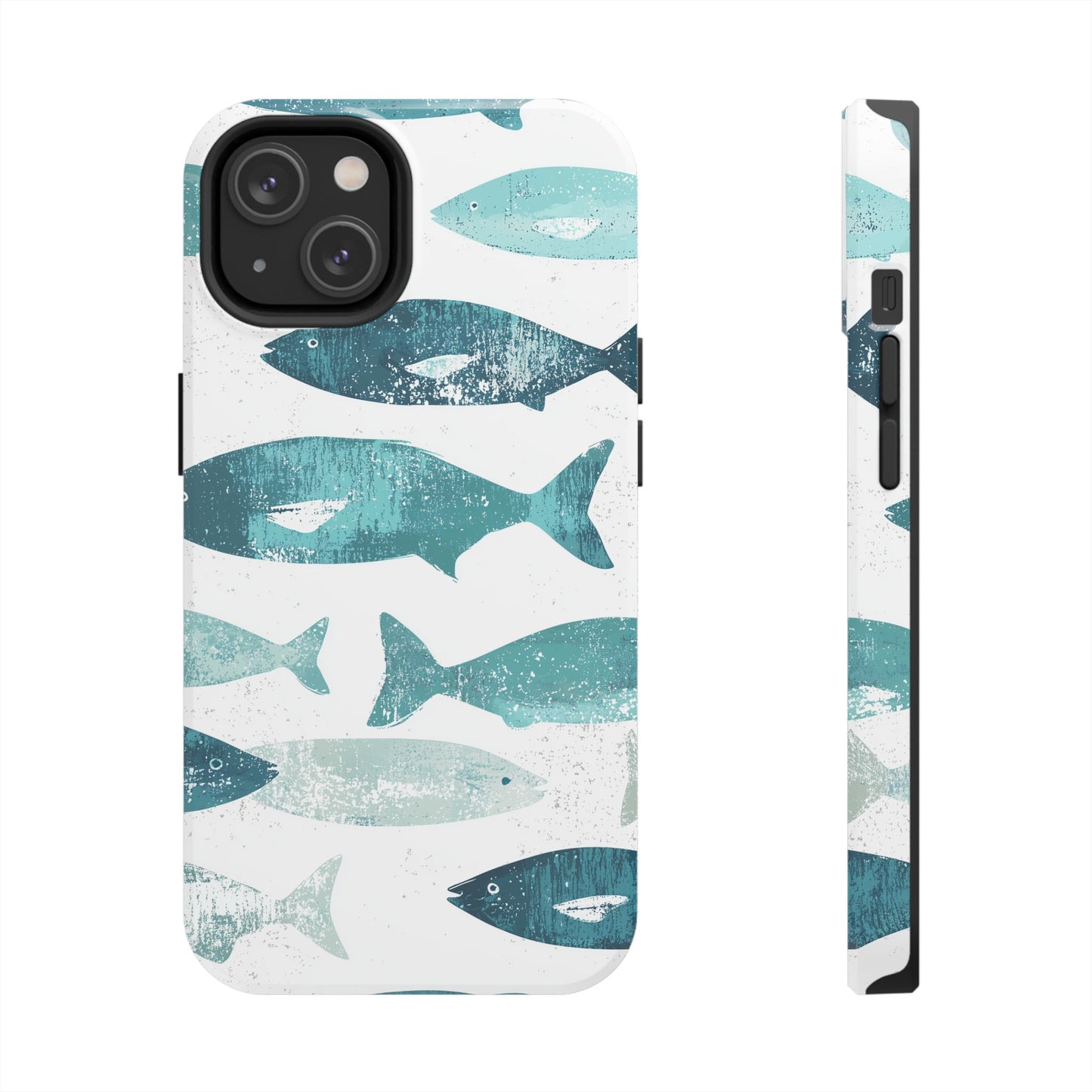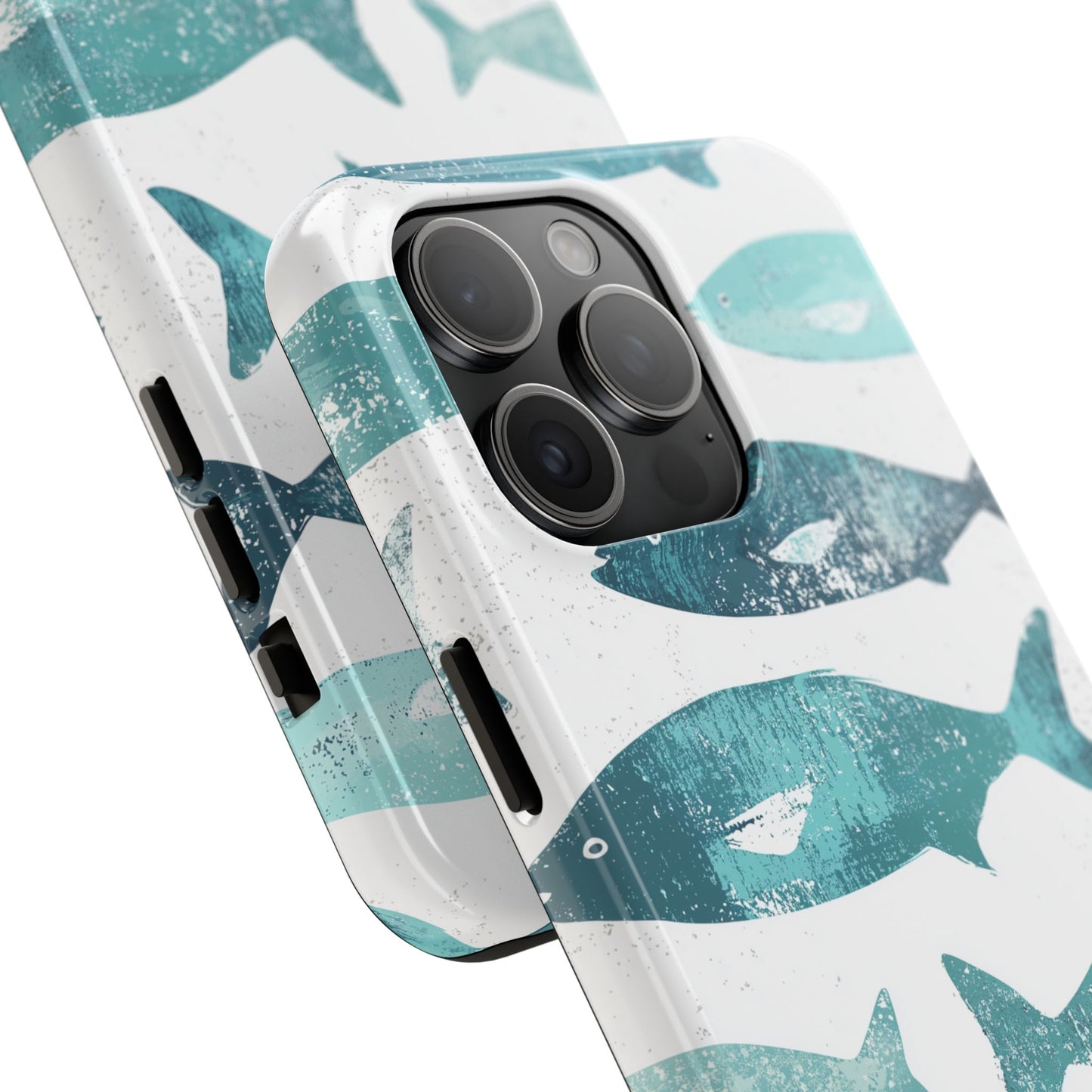 Make a splash with our Vintage Blue Fish Print iPhone Case, perfect for anyone who loves coastal charm and rustic vibes. This case features a unique fish pattern in weathered shades of teal, turquoise, and aqua, giving it a distressed, hand-painted look that feels both artistic and timeless. The faded texture adds a touch of vintage flair, making it an ideal accessory for beach lovers and ocean enthusiasts. Built to protect your phone from drops and scratches, this case blends style with durability.