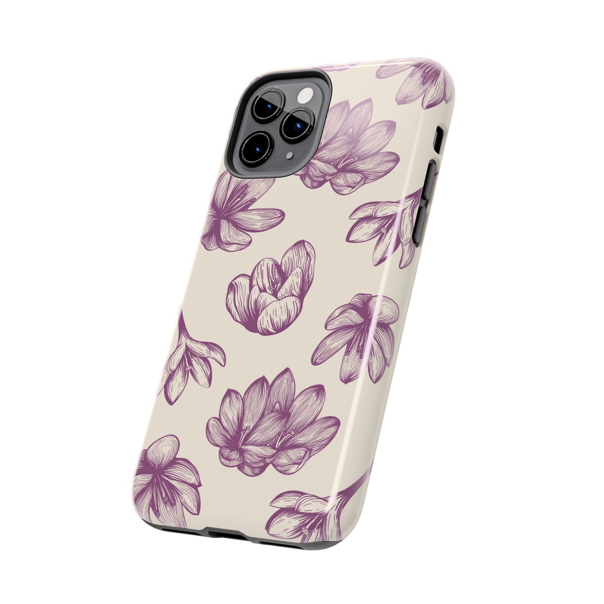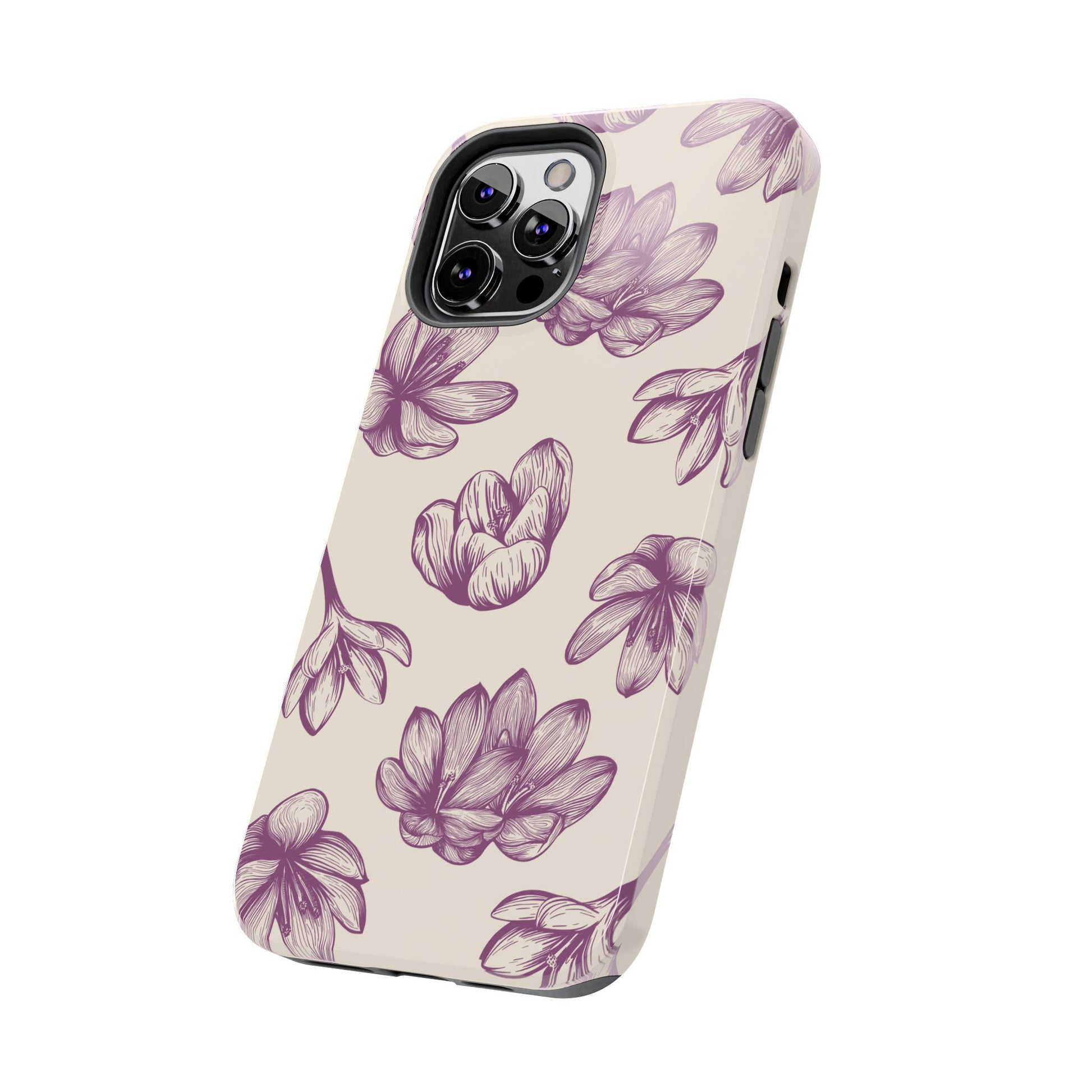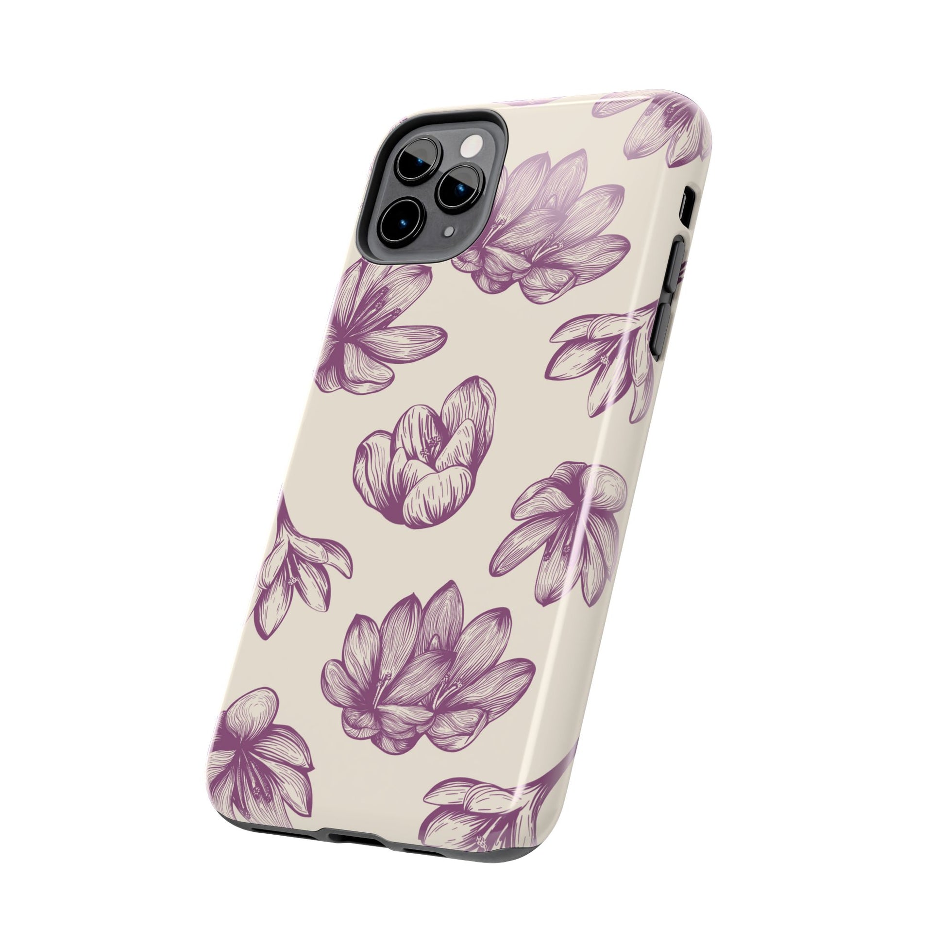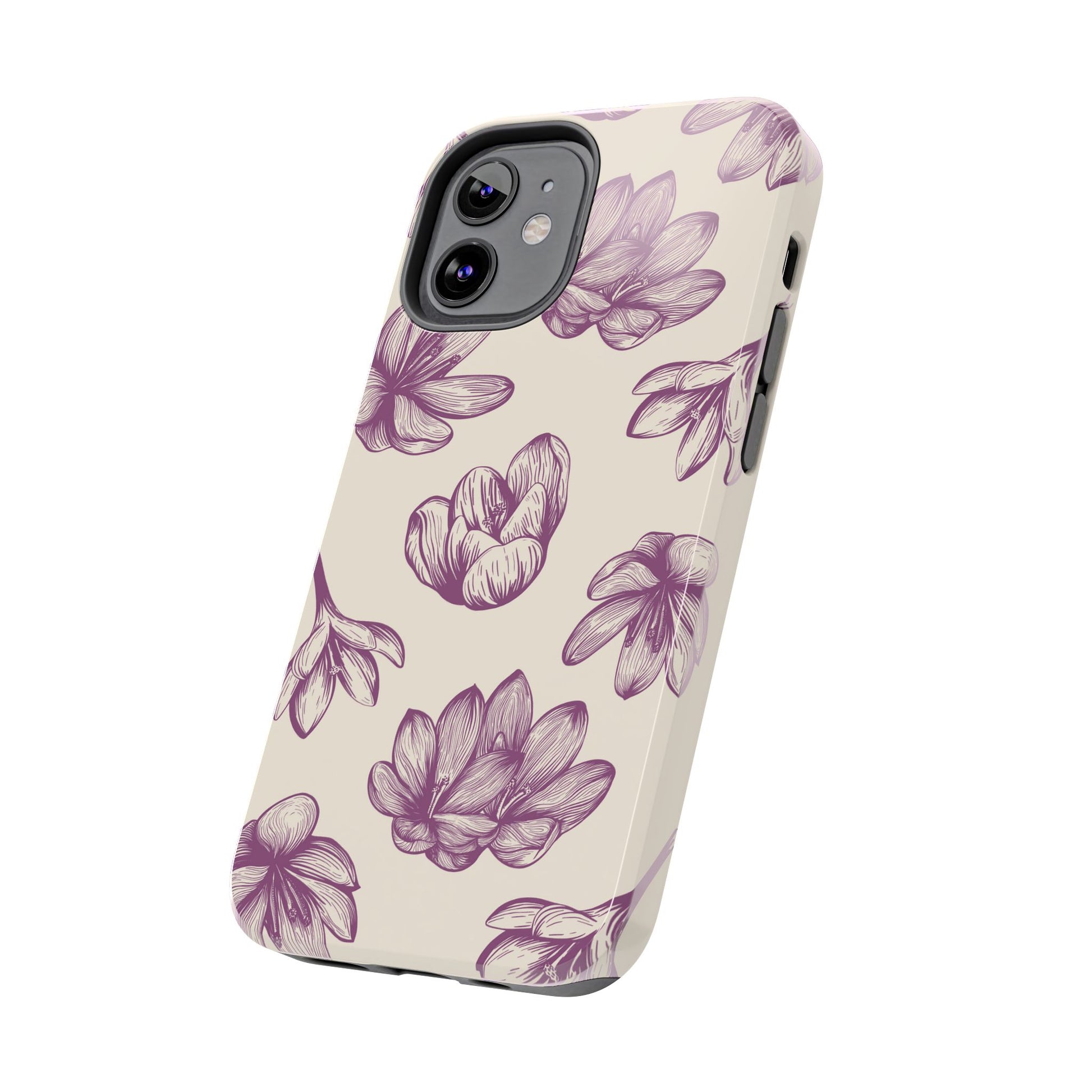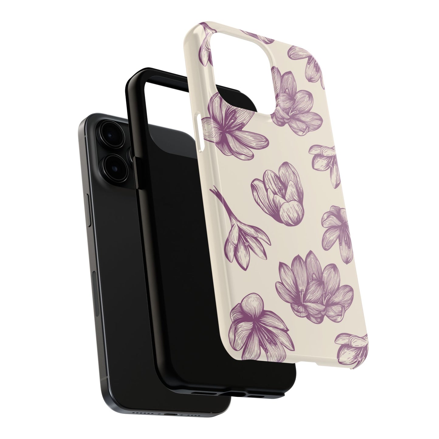 Embrace timeless elegance with our Vintage Botanical Floral Tough iPhone Case. Featuring intricately hand-drawn purple flowers on a soft beige background, this design brings a sophisticated, vintage-inspired feel to your phone. Made with dual-layer protection, the hard polycarbonate shell defends against scratches, while the shock-absorbing interior keeps your phone safe from drops. This case offers durability without compromising on style, making it the perfect blend of classic beauty and modern protection.