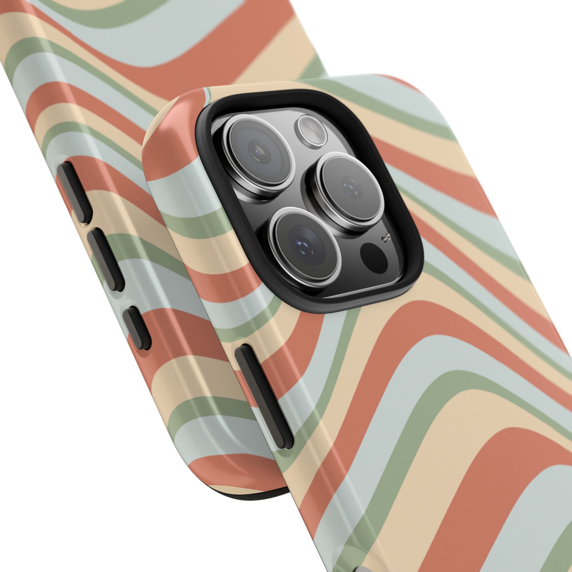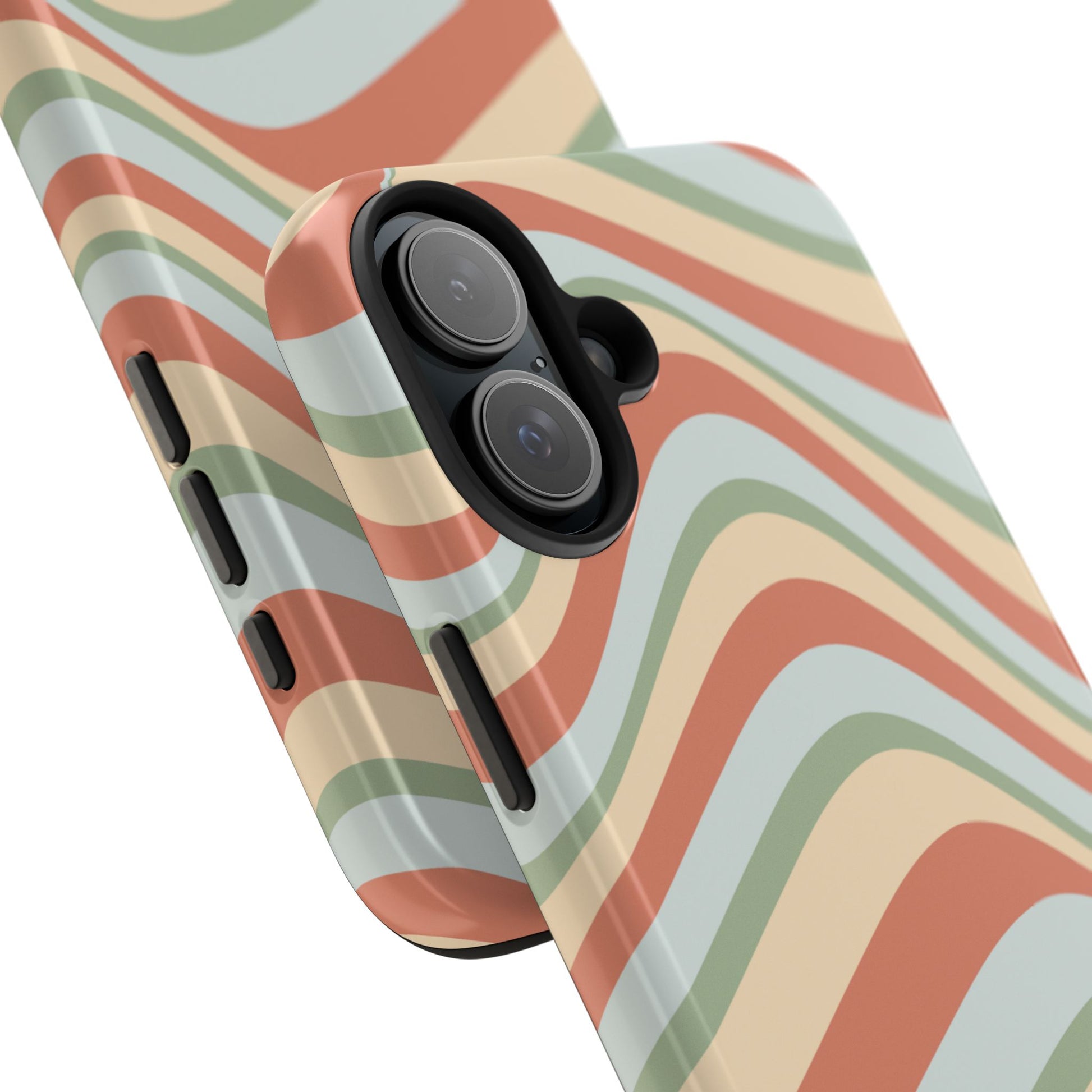 Vintage Earthy Waves iPhone Case – Retro 70s-Inspired in Warm Green, Cream, and Rust