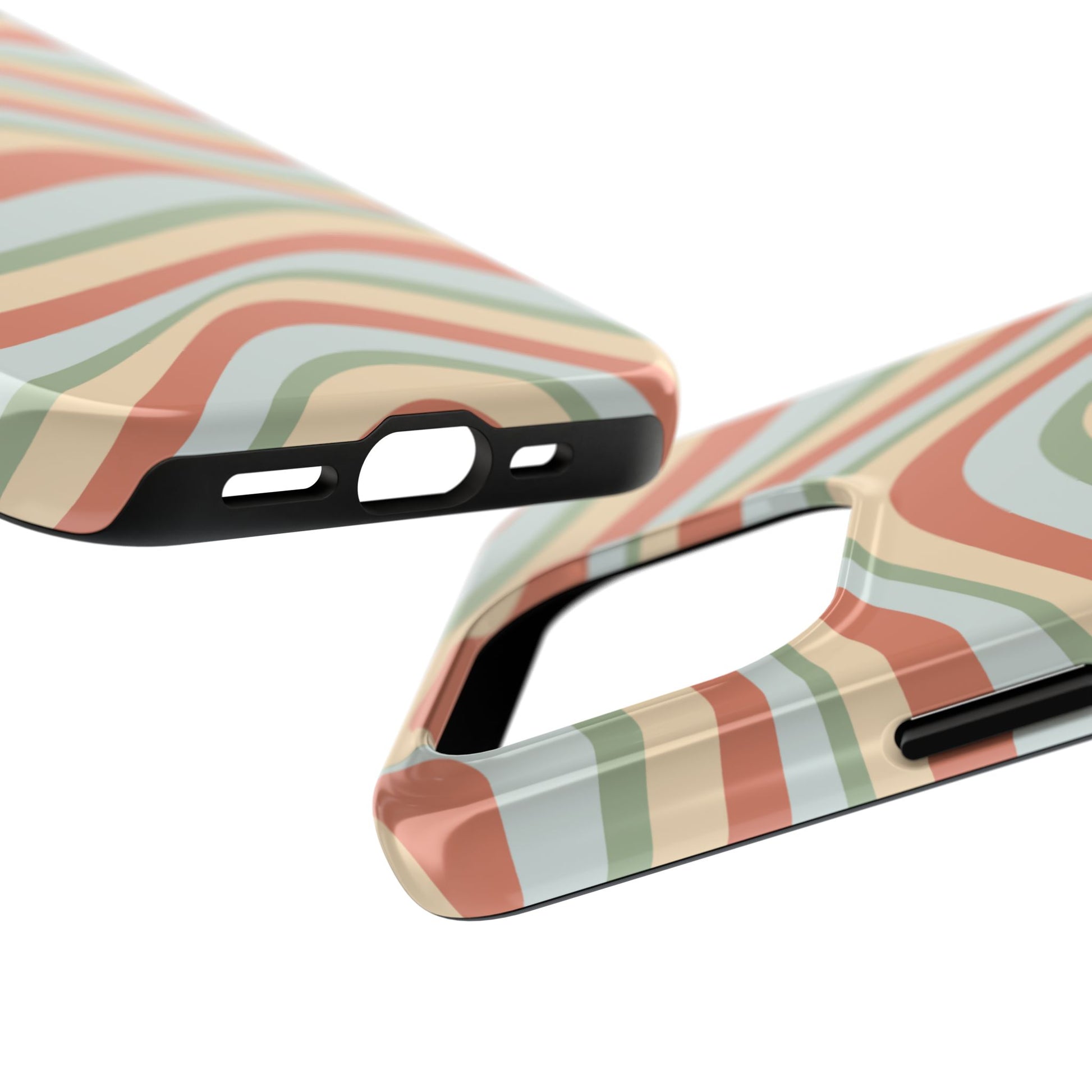 Embrace the retro vibe with our Vintage Earthy Waves iPhone Case, featuring a soothing, wavy stripe pattern in soft green, cream, and rust hues. This design brings a laid-back, earthy feel, reminiscent of the 70s, perfect for those who love a nostalgic yet modern aesthetic. The tough polycarbo...