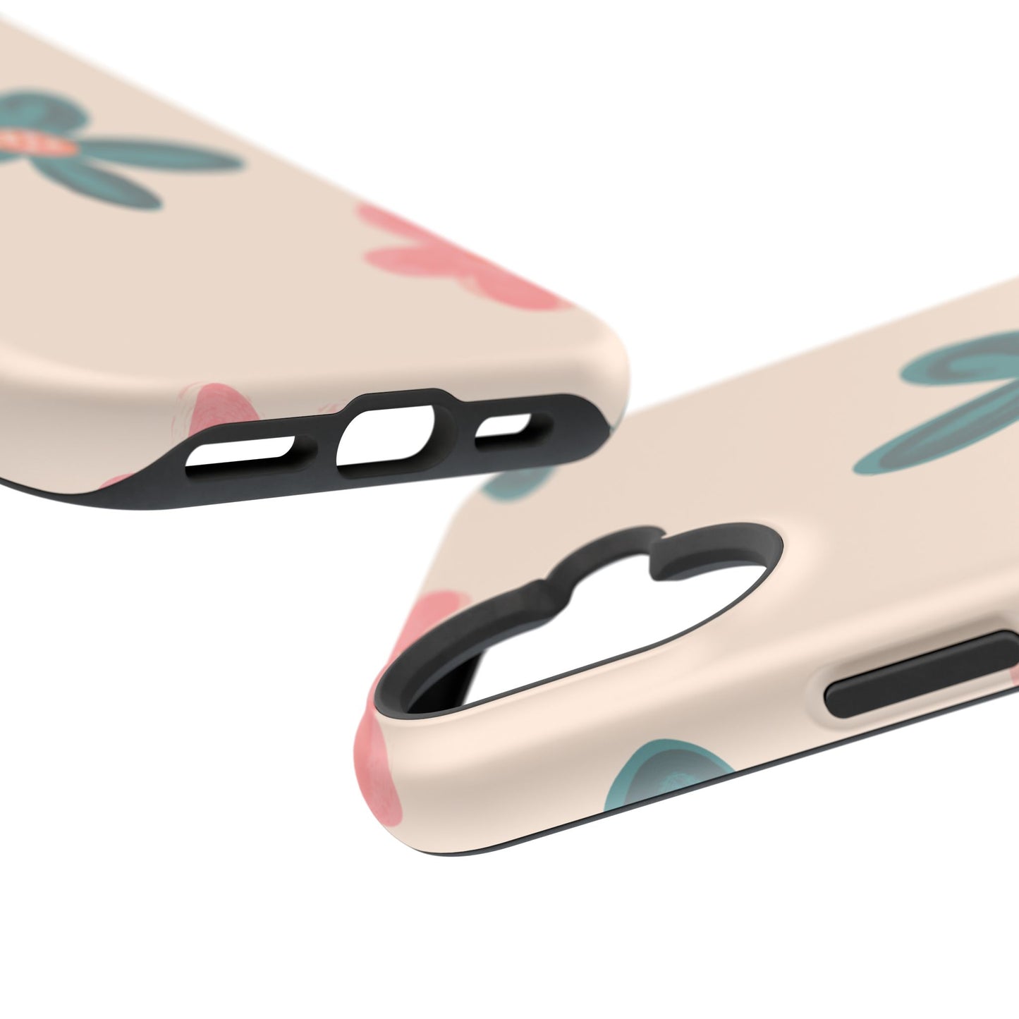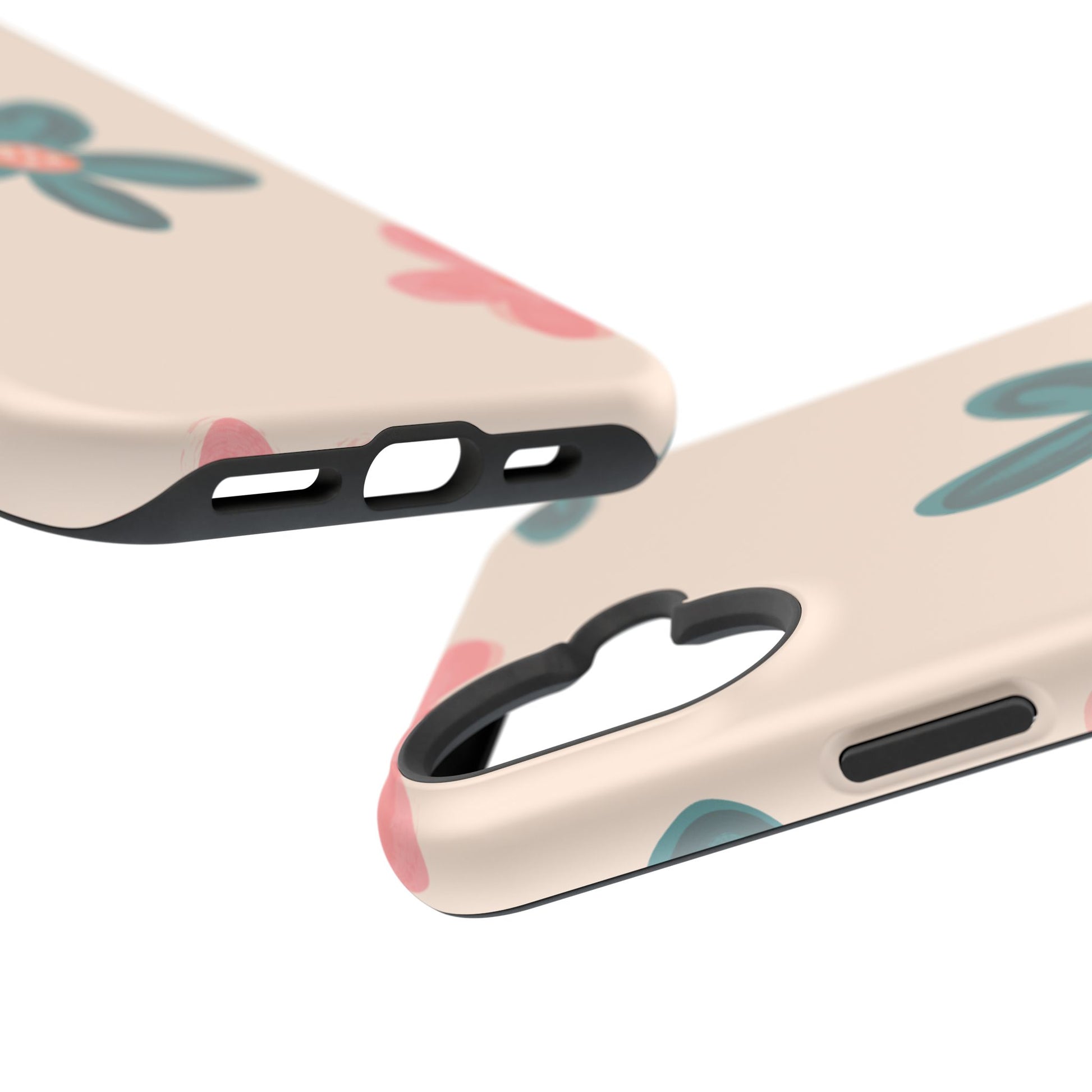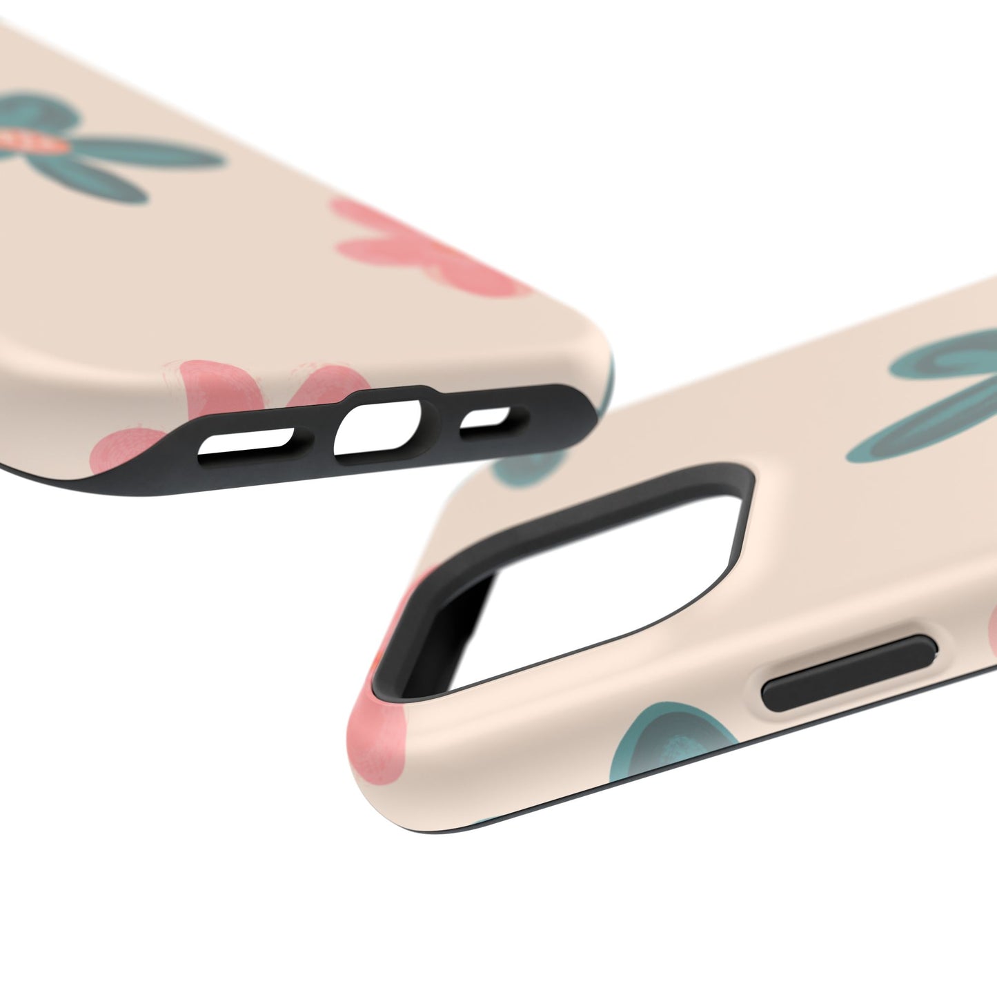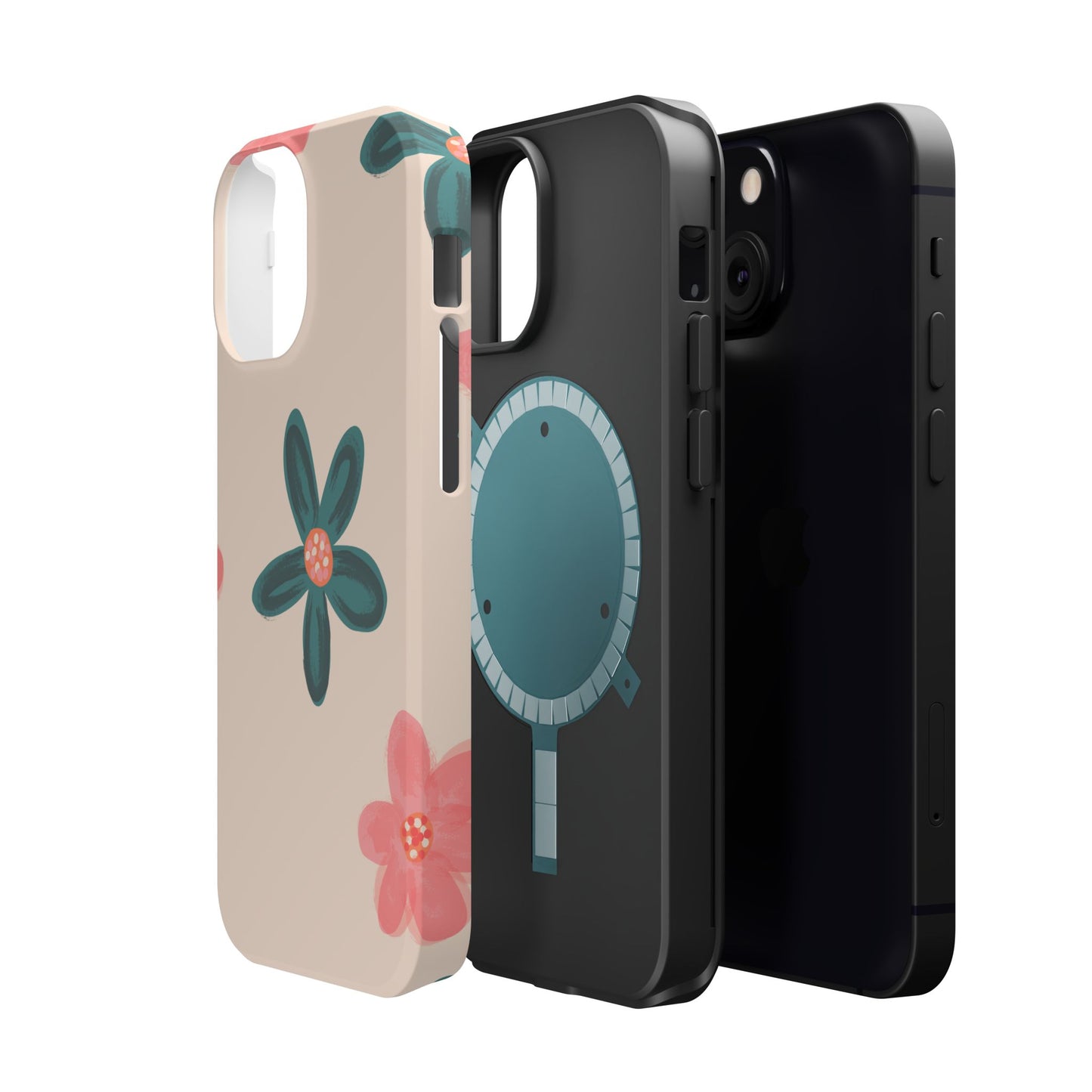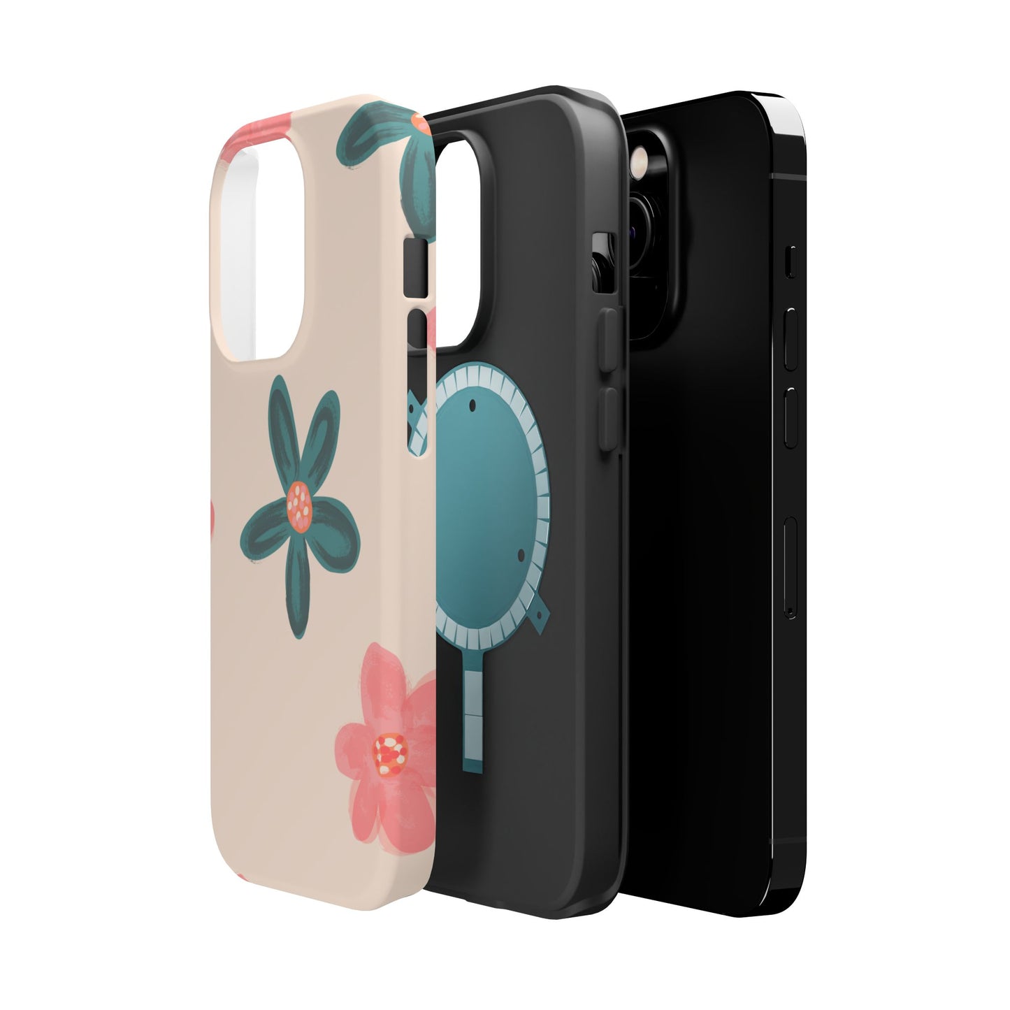 Elevate your phone’s style with our Vintage Floral Tough MagSafe  iPhone Case, featuring a charming hand-painted pattern of blush pink and deep teal flowers set against a creamy beige background. The blend of soft pastel hues and playful brushstroke texture creates a nostalgic, boho-inspired vibe, perfect for those who love a touch of vintage charm. Built for durability, this case combines a rugged polycarbonate outer shell with a shock-absorbing TPU liner to protect your phone from everyday bumps and drops. The smooth matte finish adds to its elegance while providing a secure, non-slip grip.