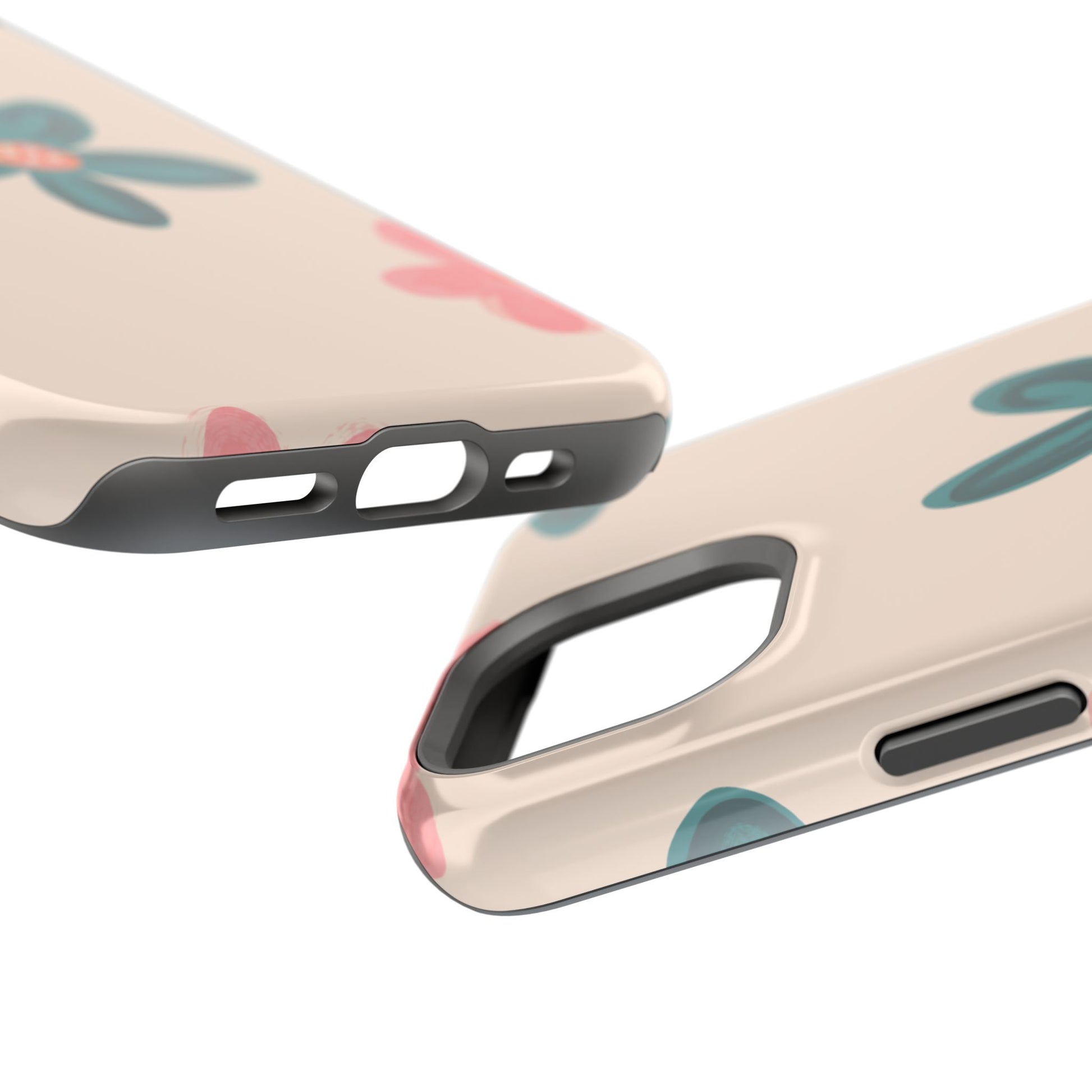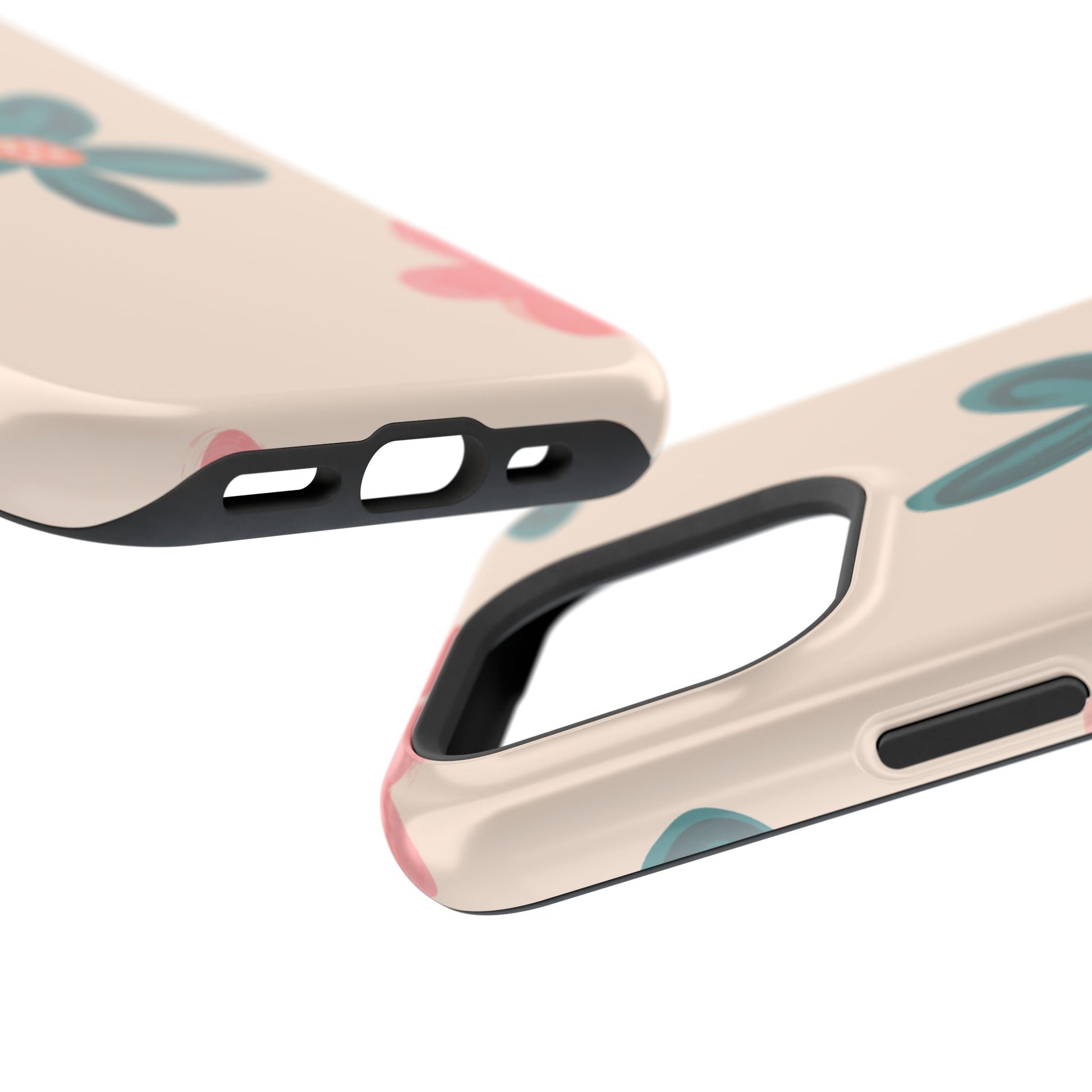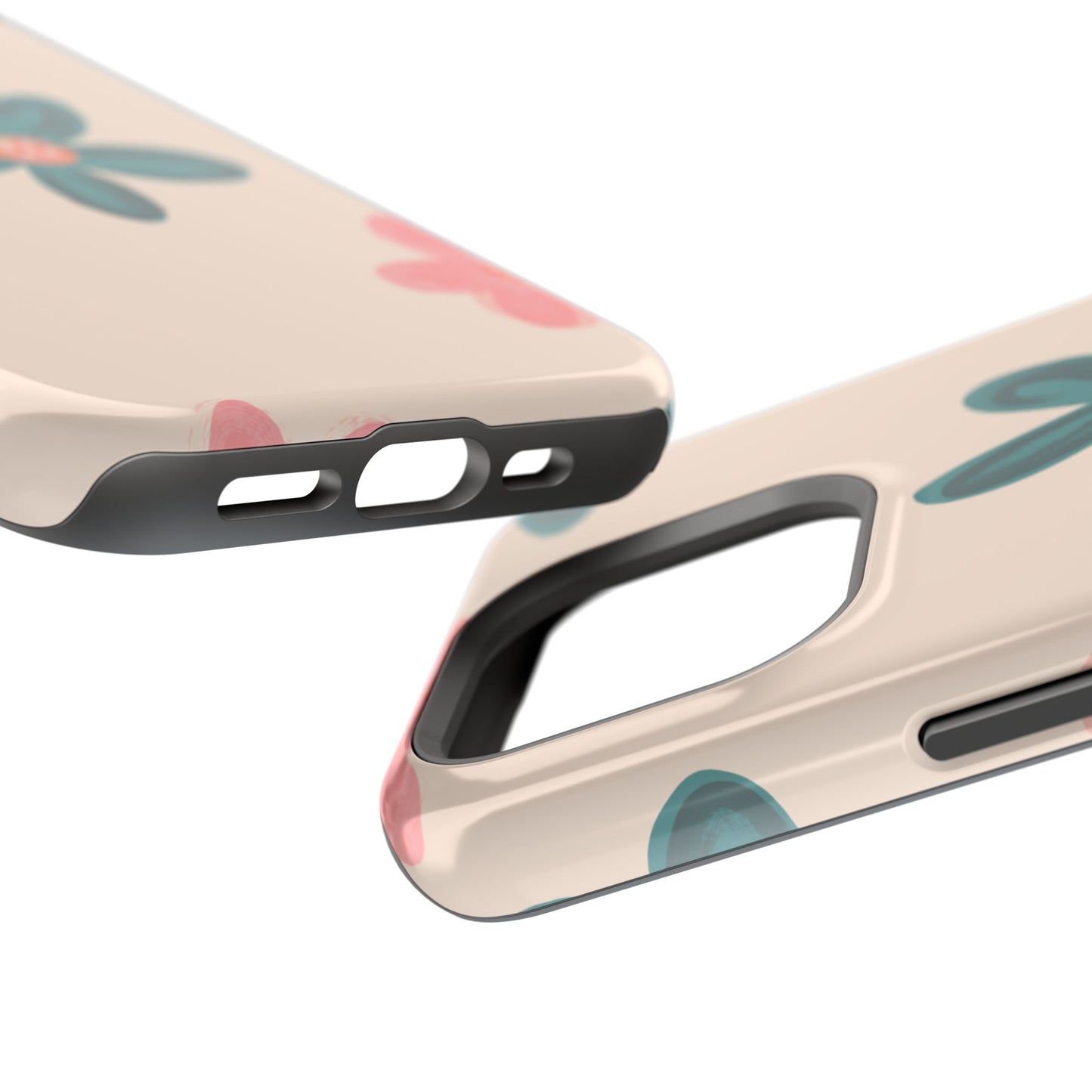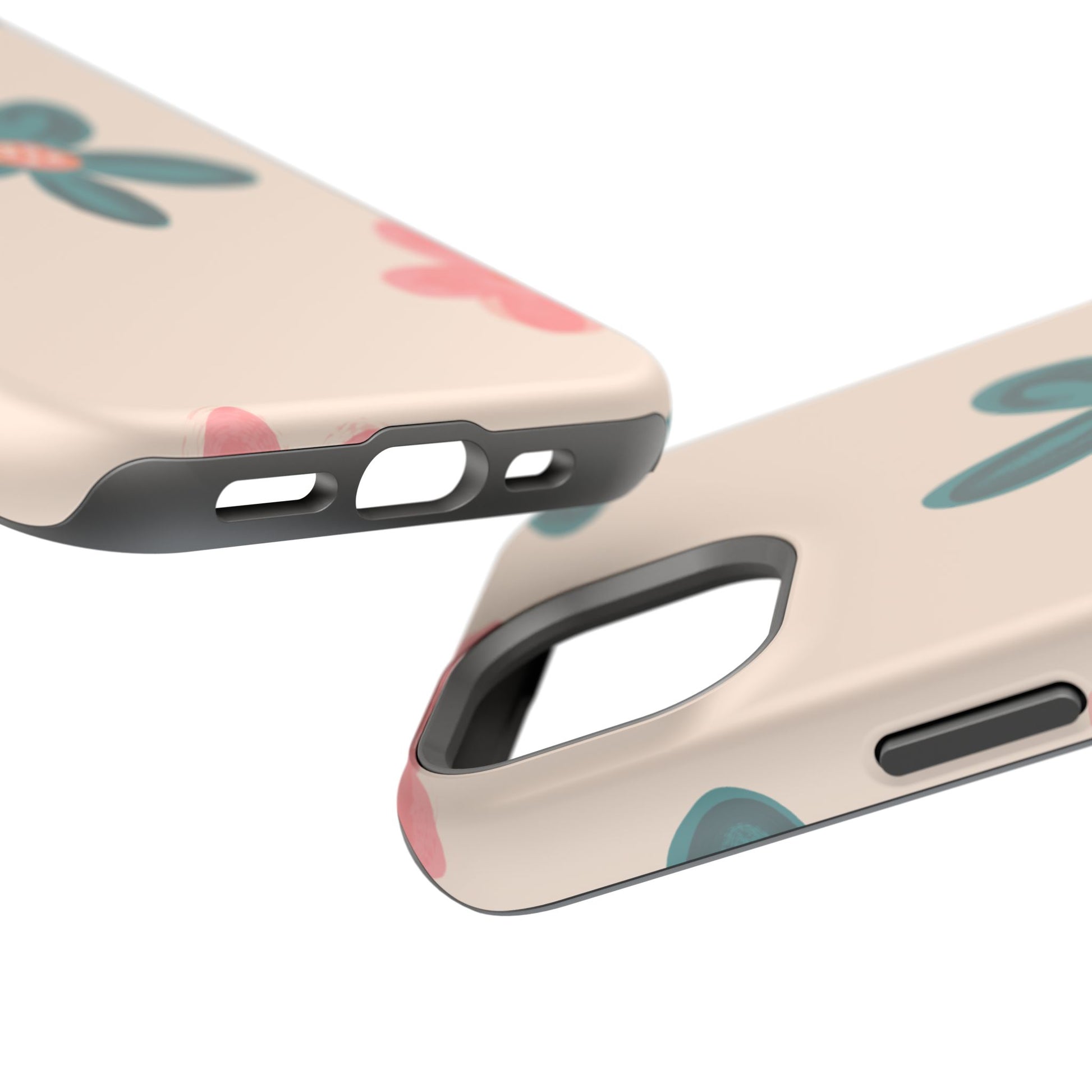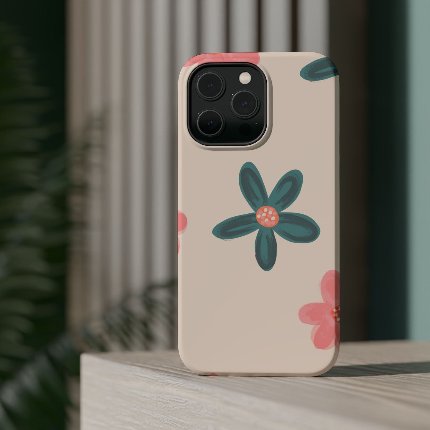 Elevate your phone’s style with our Vintage Floral Tough MagSafe  iPhone Case, featuring a charming hand-painted pattern of blush pink and deep teal flowers set against a creamy beige background. The blend of soft pastel hues and playful brushstroke texture creates a nostalgic, boho-inspired vibe, perfect for those who love a touch of vintage charm. Built for durability, this case combines a rugged polycarbonate outer shell with a shock-absorbing TPU liner to protect your phone from everyday bumps and drops. The smooth matte finish adds to its elegance while providing a secure, non-slip grip.