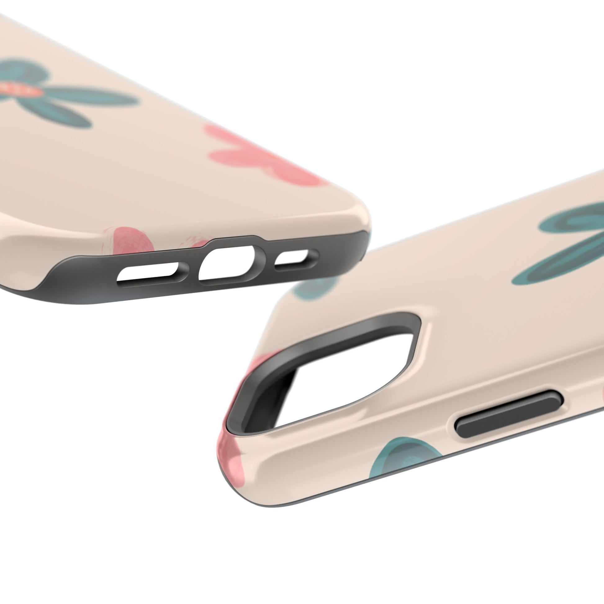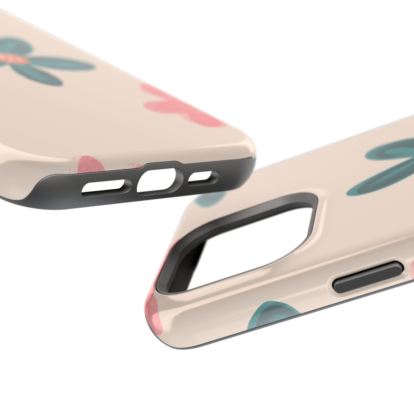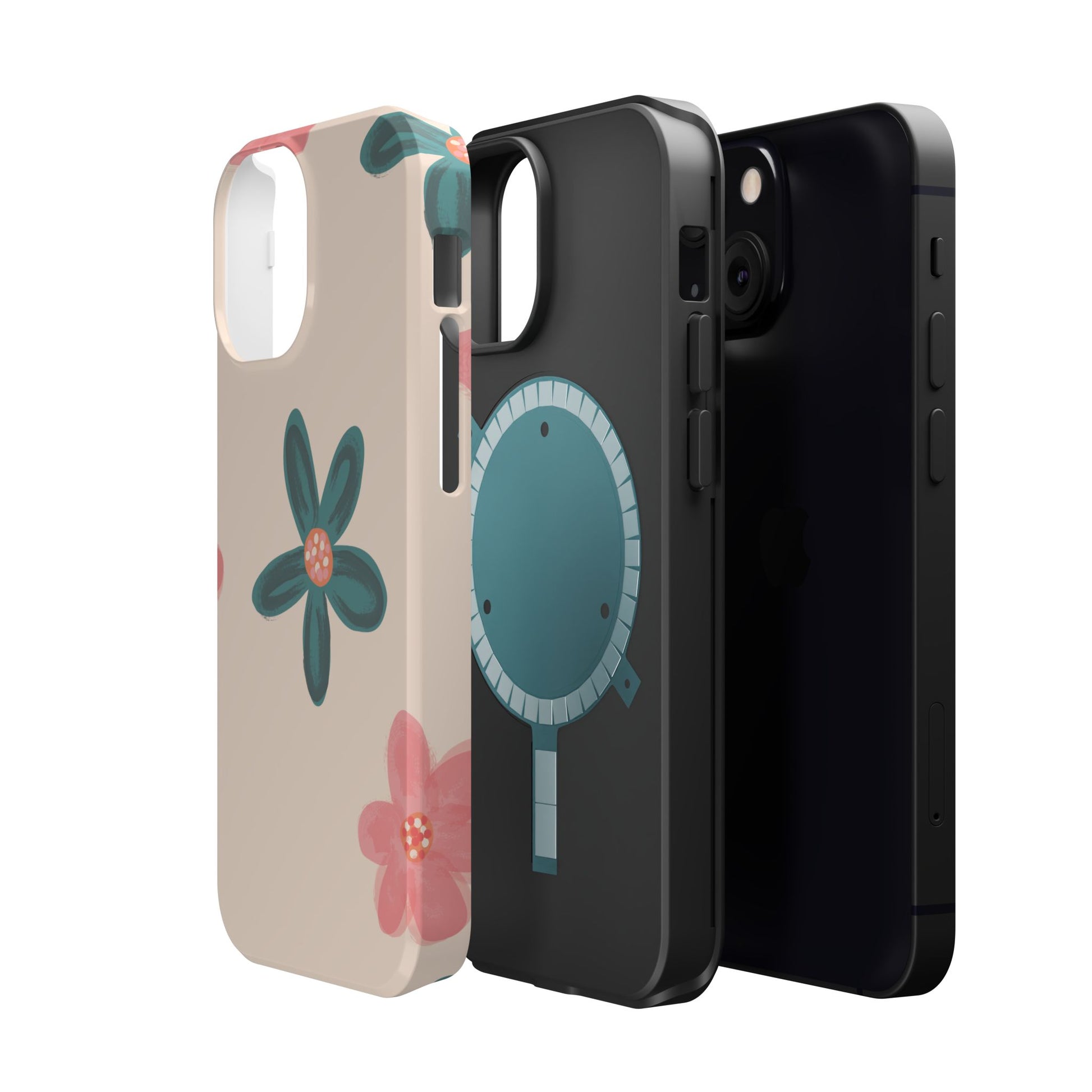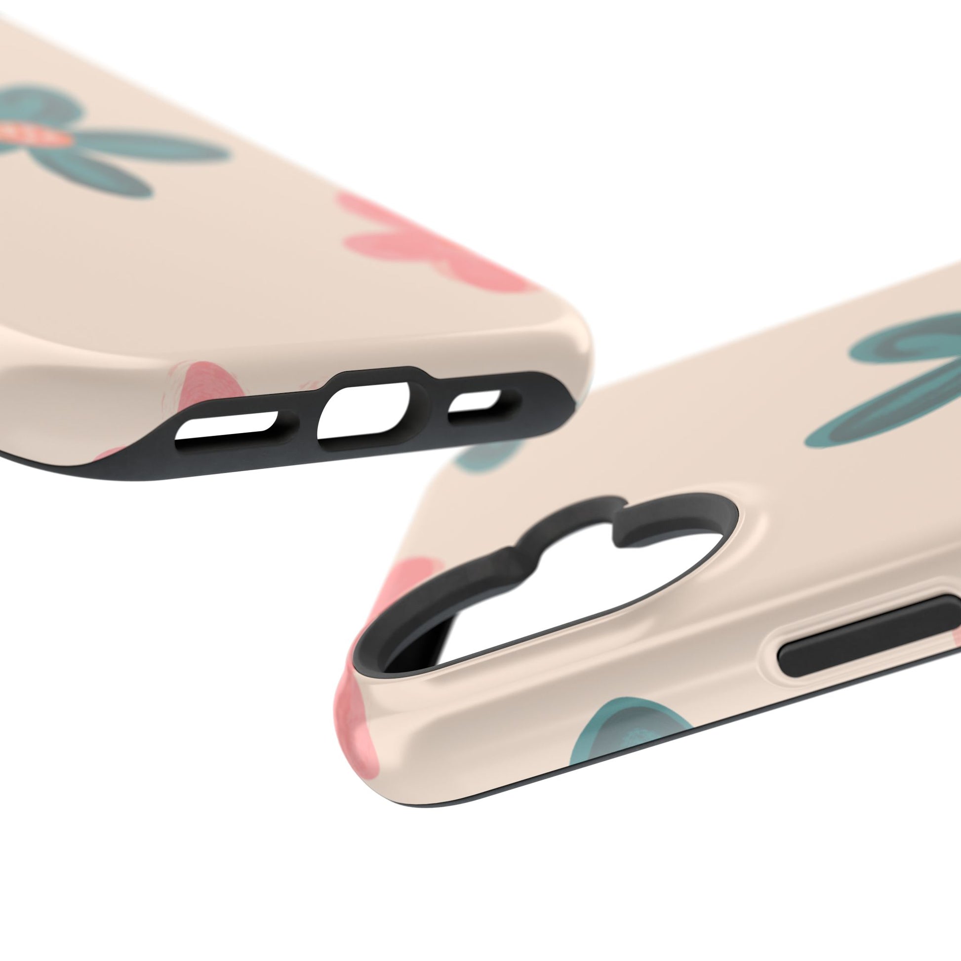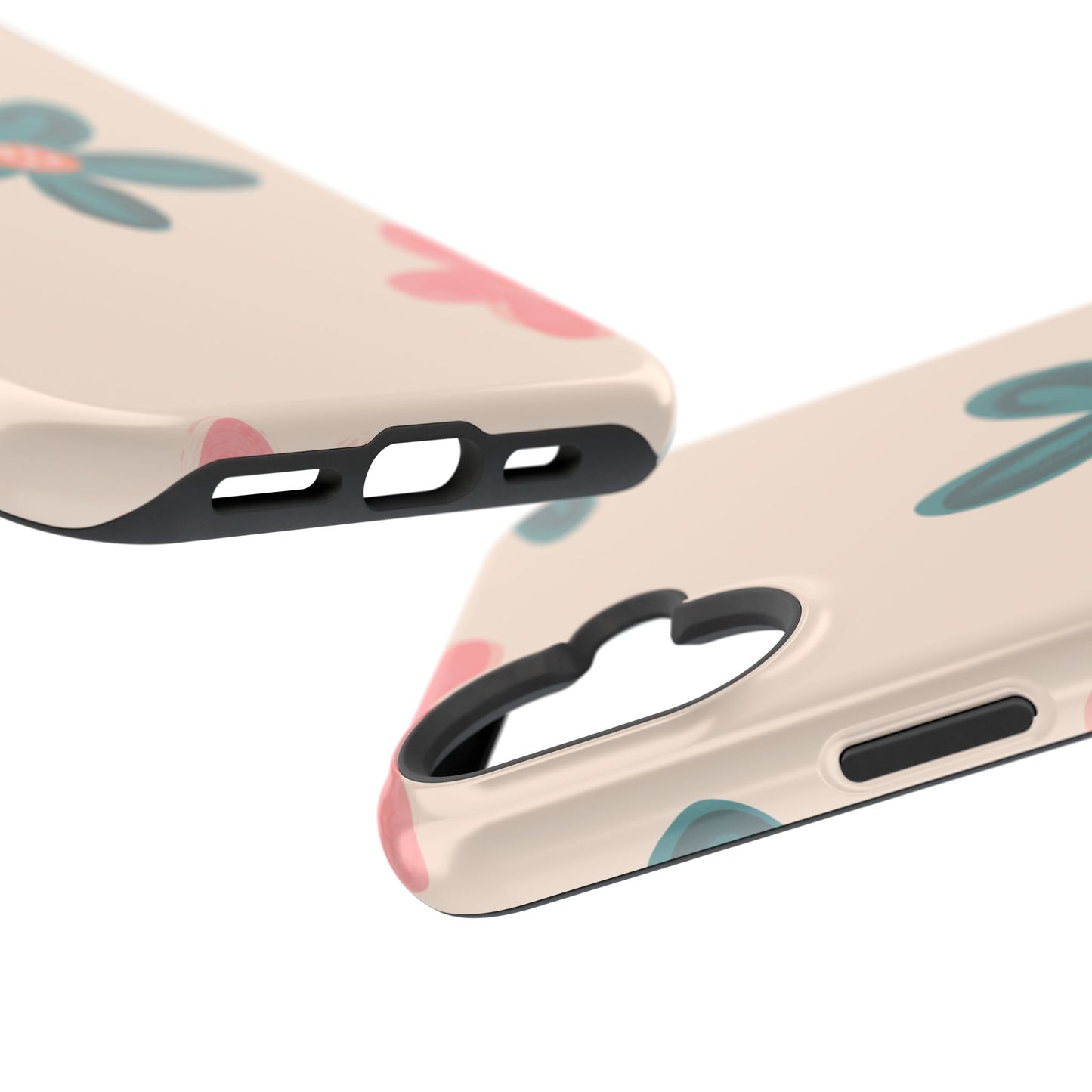 Elevate your phone’s style with our Vintage Floral Tough MagSafe  iPhone Case, featuring a charming hand-painted pattern of blush pink and deep teal flowers set against a creamy beige background. The blend of soft pastel hues and playful brushstroke texture creates a nostalgic, boho-inspired vibe, perfect for those who love a touch of vintage charm. Built for durability, this case combines a rugged polycarbonate outer shell with a shock-absorbing TPU liner to protect your phone from everyday bumps and drops. The smooth matte finish adds to its elegance while providing a secure, non-slip grip.
