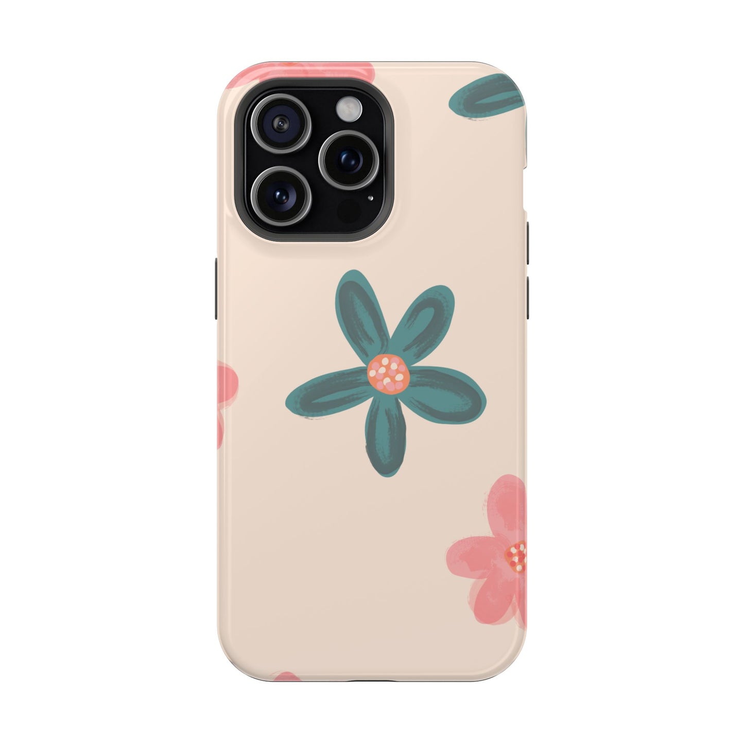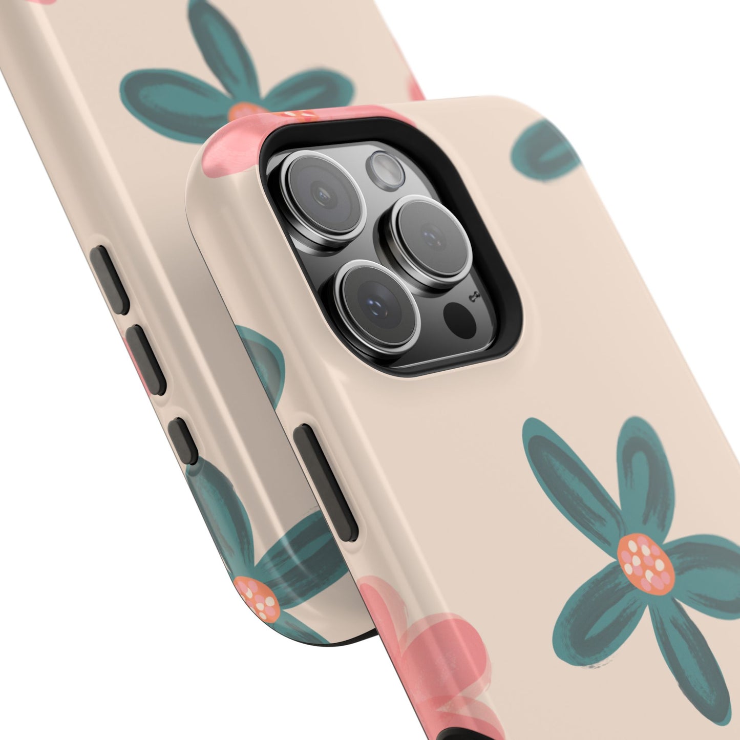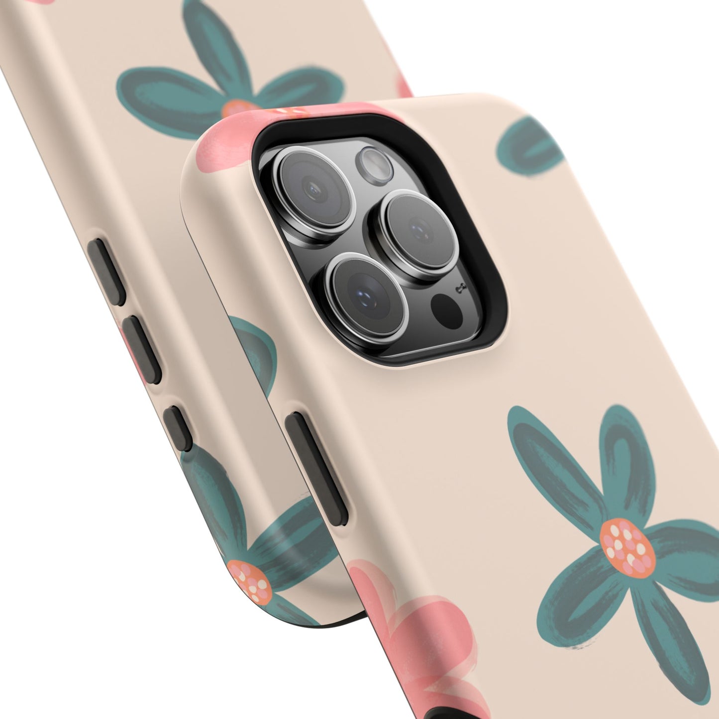 Elevate your phone’s style with our Vintage Floral Tough MagSafe  iPhone Case, featuring a charming hand-painted pattern of blush pink and deep teal flowers set against a creamy beige background. The blend of soft pastel hues and playful brushstroke texture creates a nostalgic, boho-inspired v...