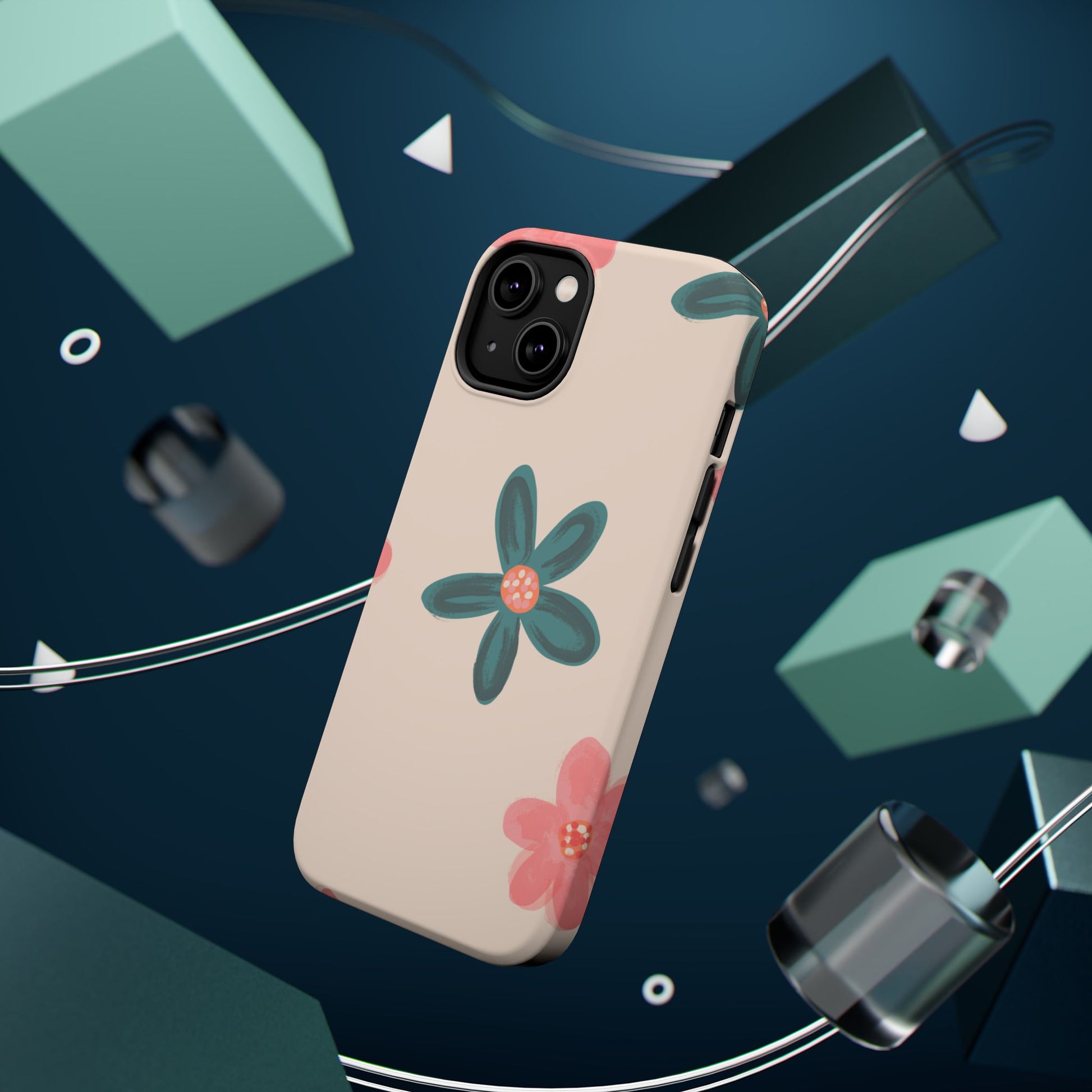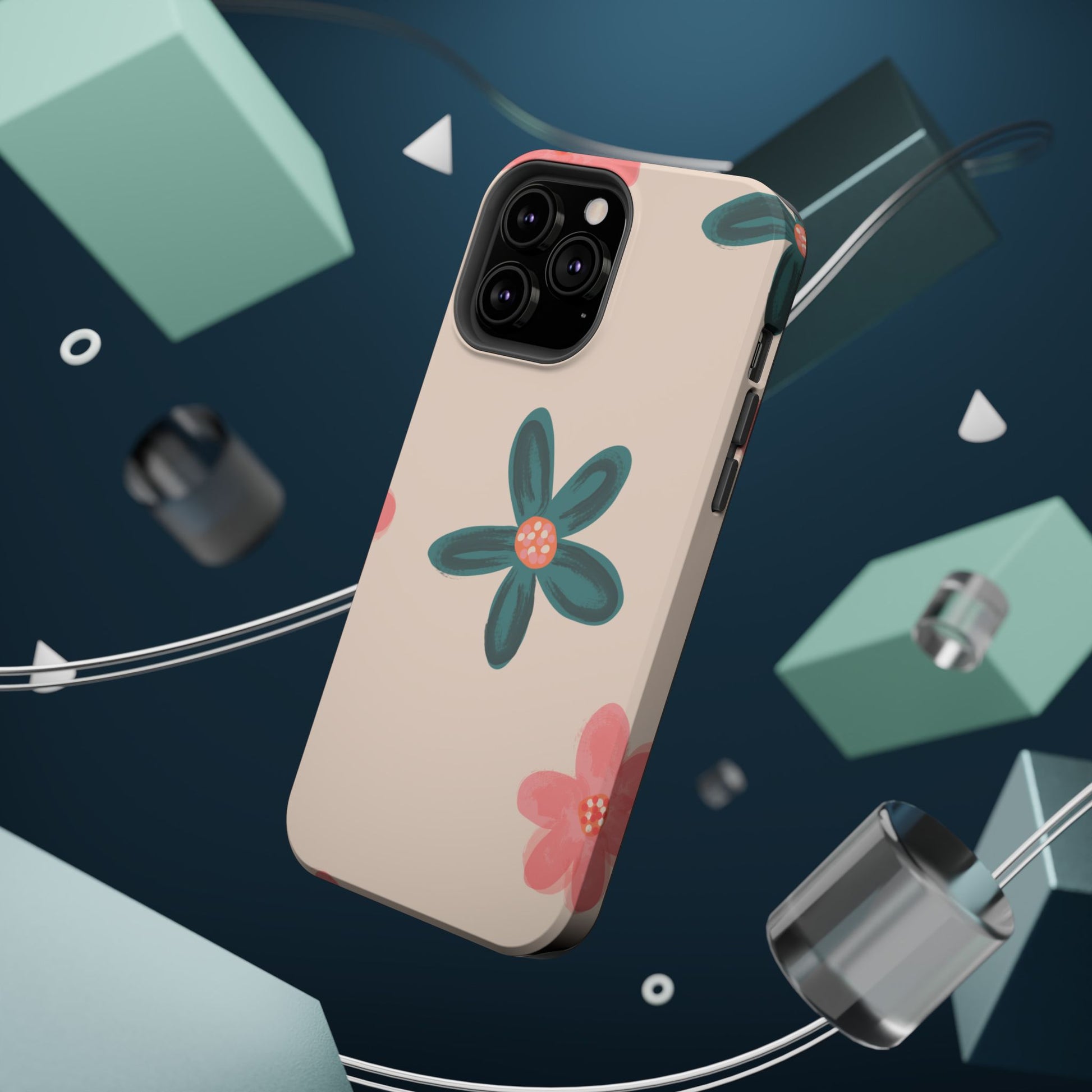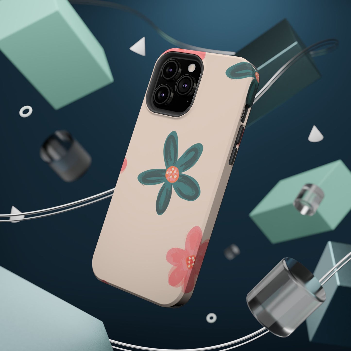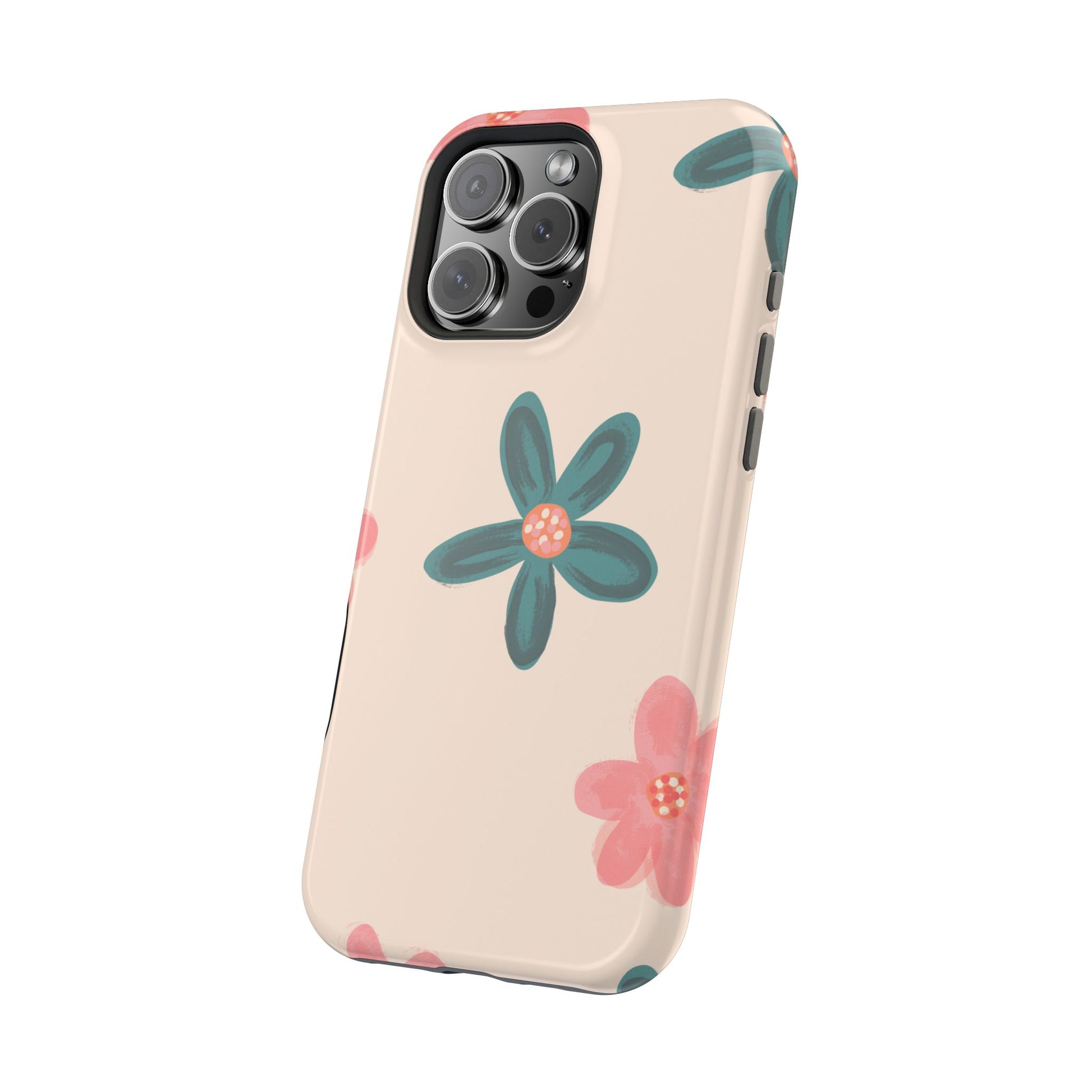 Elevate your phone’s style with our Vintage Floral Tough MagSafe  iPhone Case, featuring a charming hand-painted pattern of blush pink and deep teal flowers set against a creamy beige background. The blend of soft pastel hues and playful brushstroke texture creates a nostalgic, boho-inspired v...