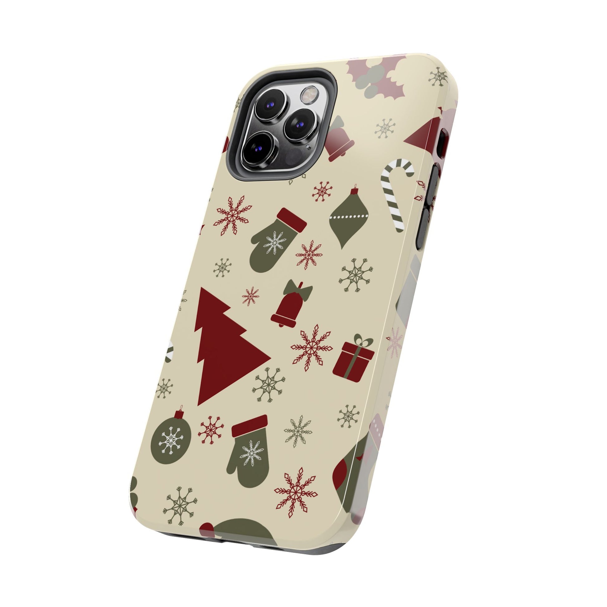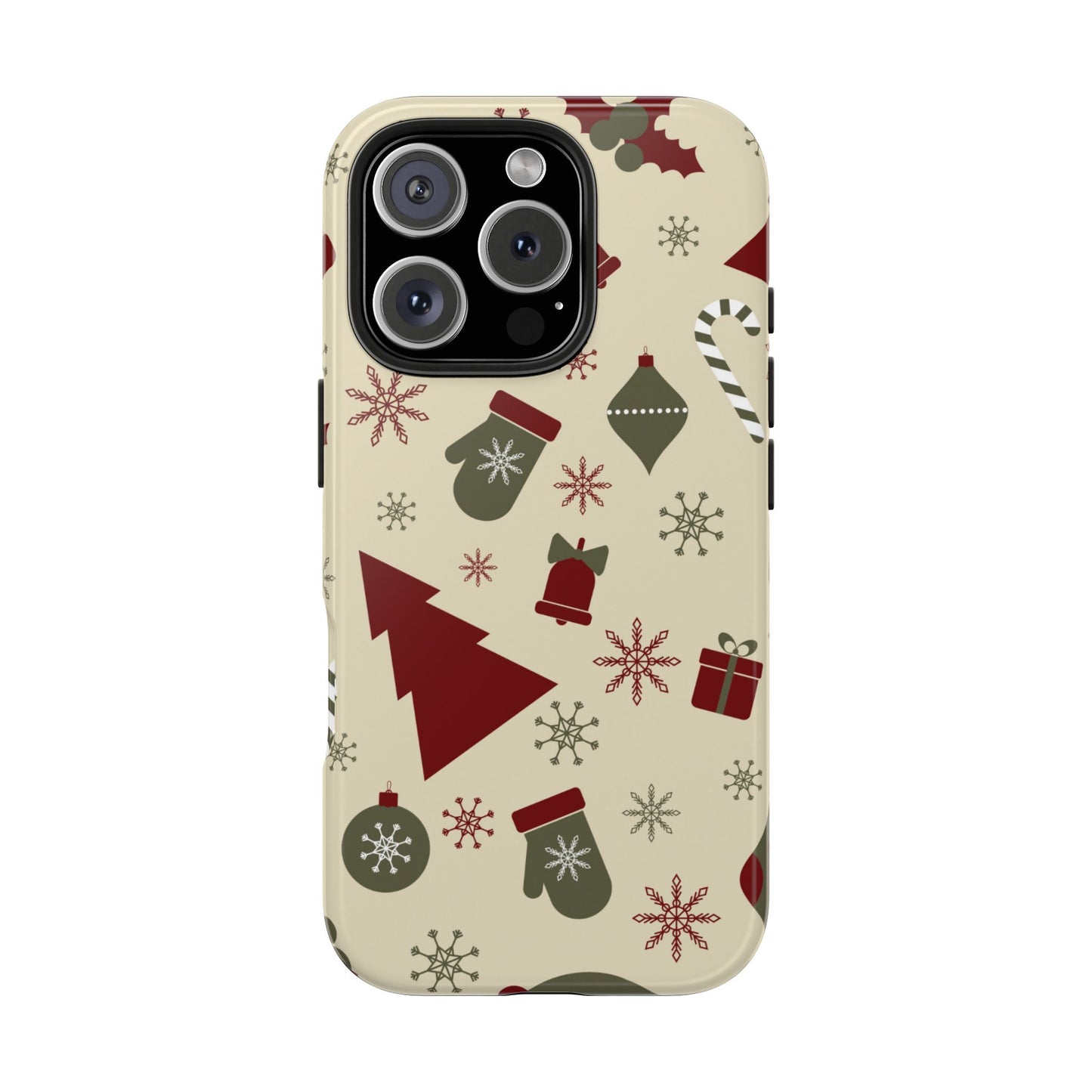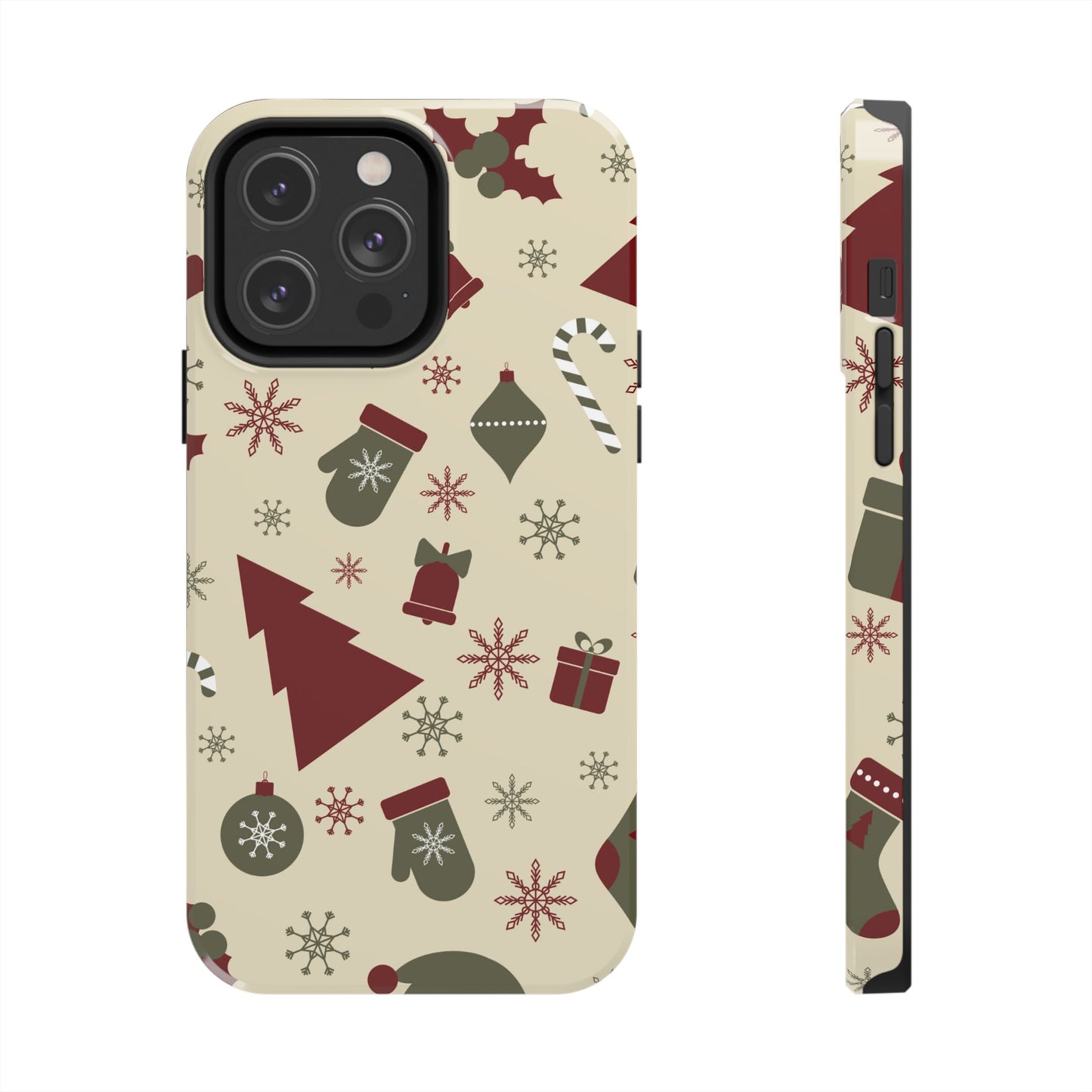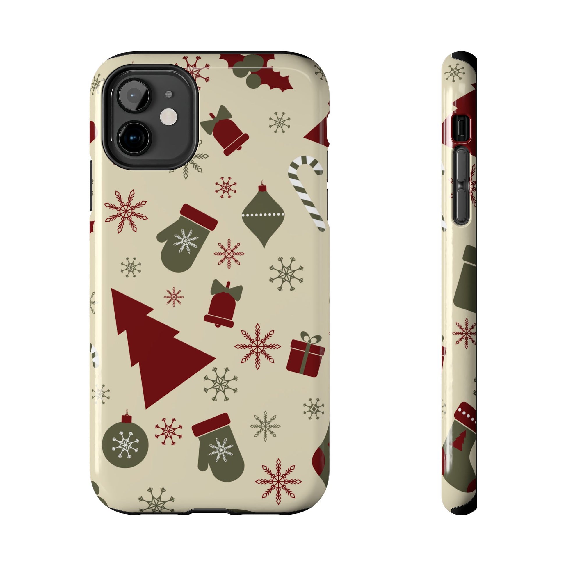 Embrace the spirit of the season with our Vintage Holiday Cheer iPhone Case! This charming design showcases festive icons in classic red, green, and cream tones, including snowflakes, Christmas trees, candy canes, and gift boxes, all set on a warm, beige background. Perfect for adding a touch of retro holiday style to your phone, this case brings nostalgic holiday vibes wherever you go. Crafted from durable materials, it provides reliable protection against everyday bumps and scratches while keeping your phone lightweight and sleek. Celebrate the holidays in style with this festive, functional case!