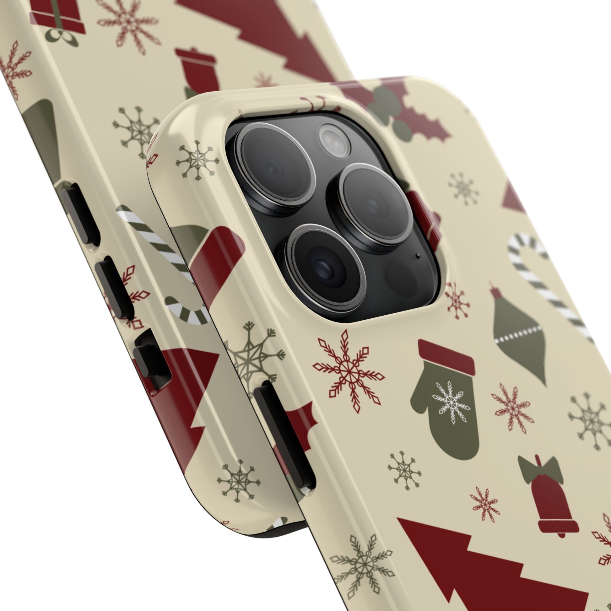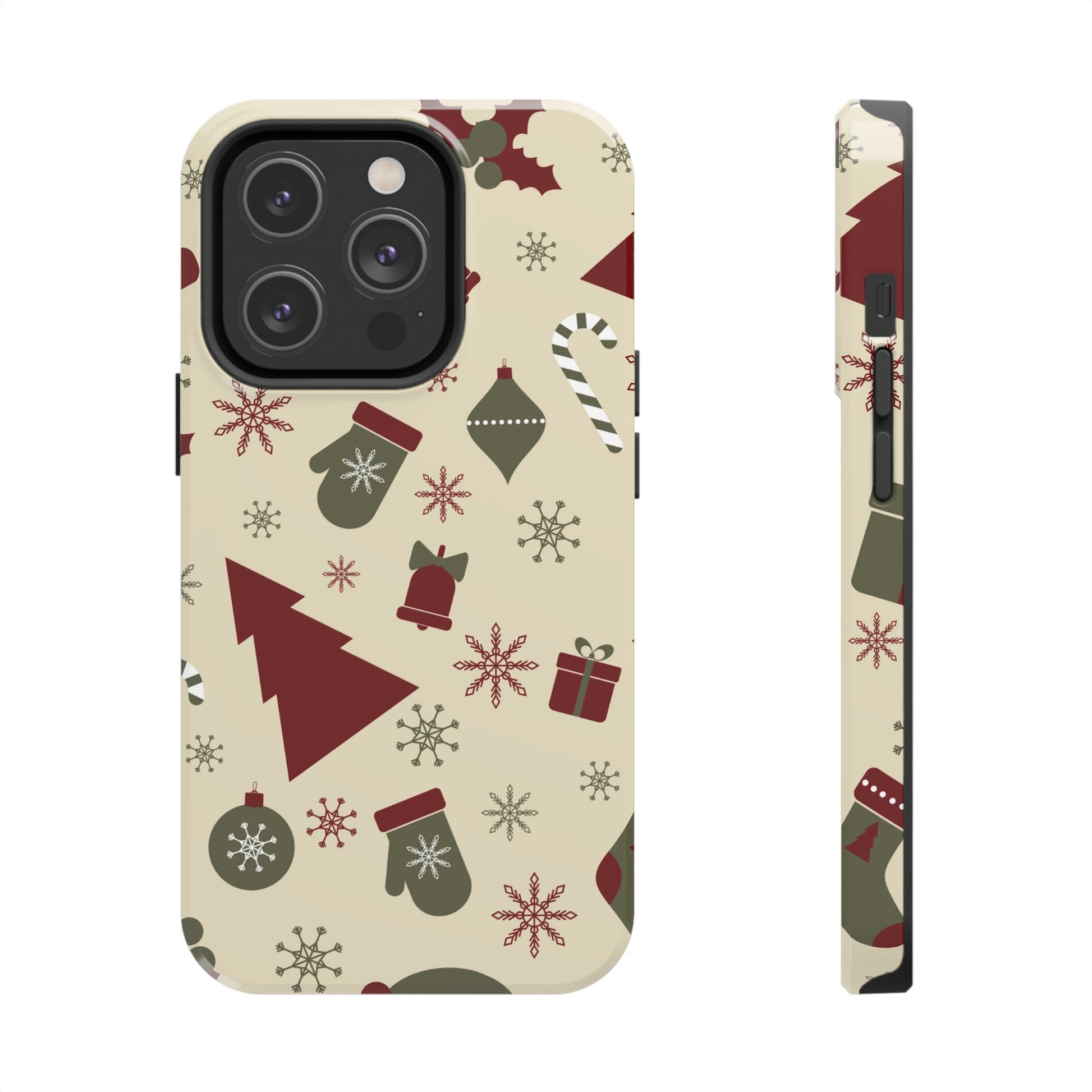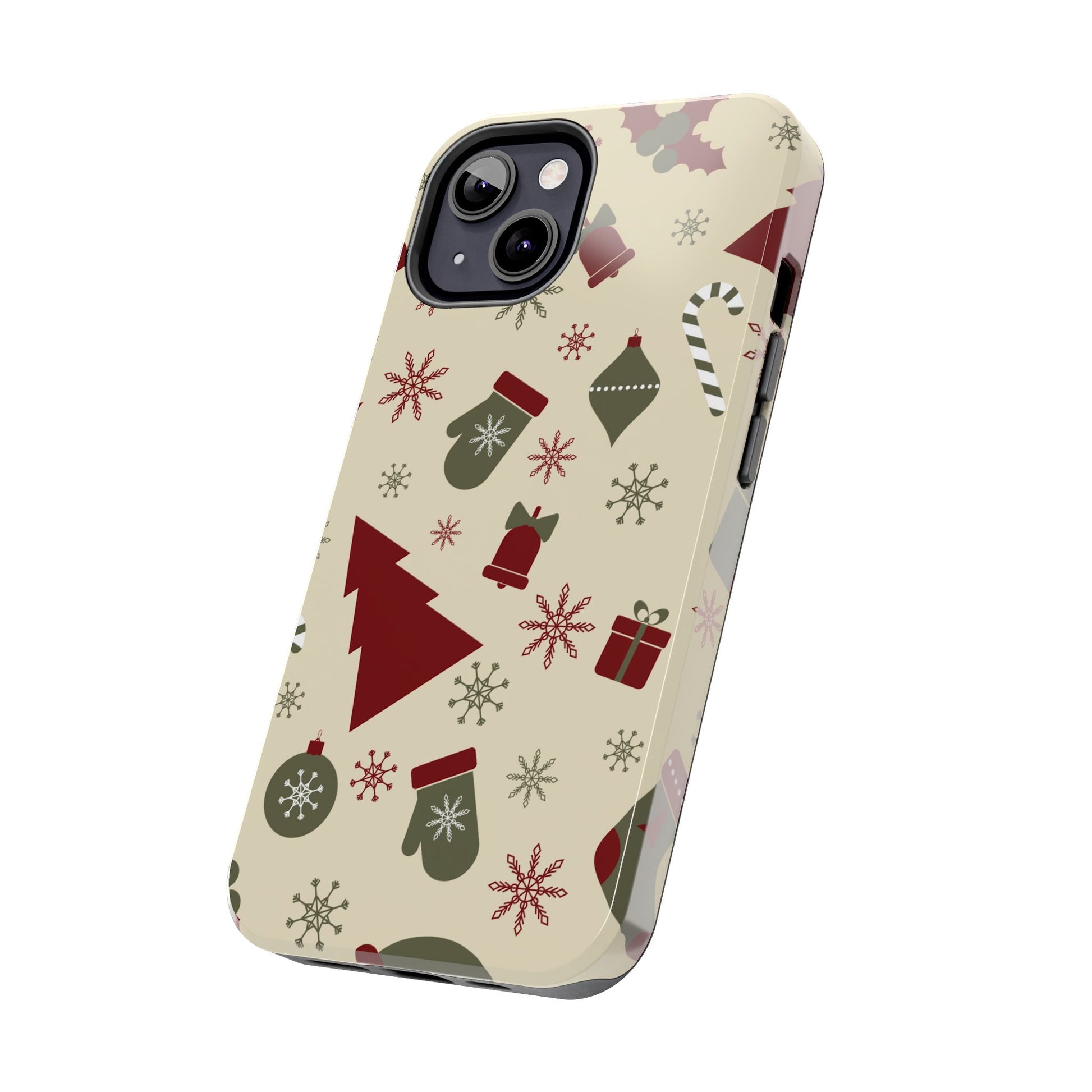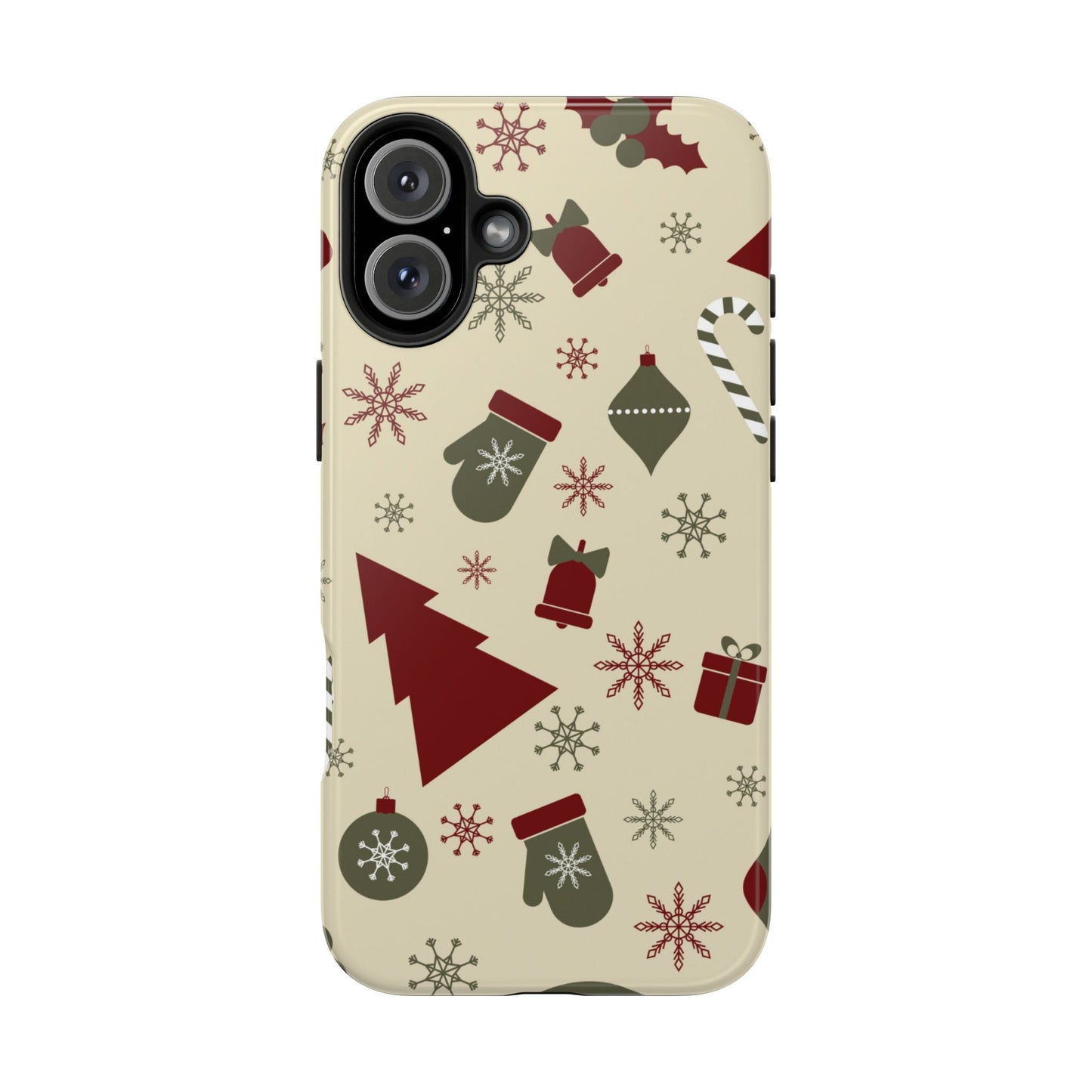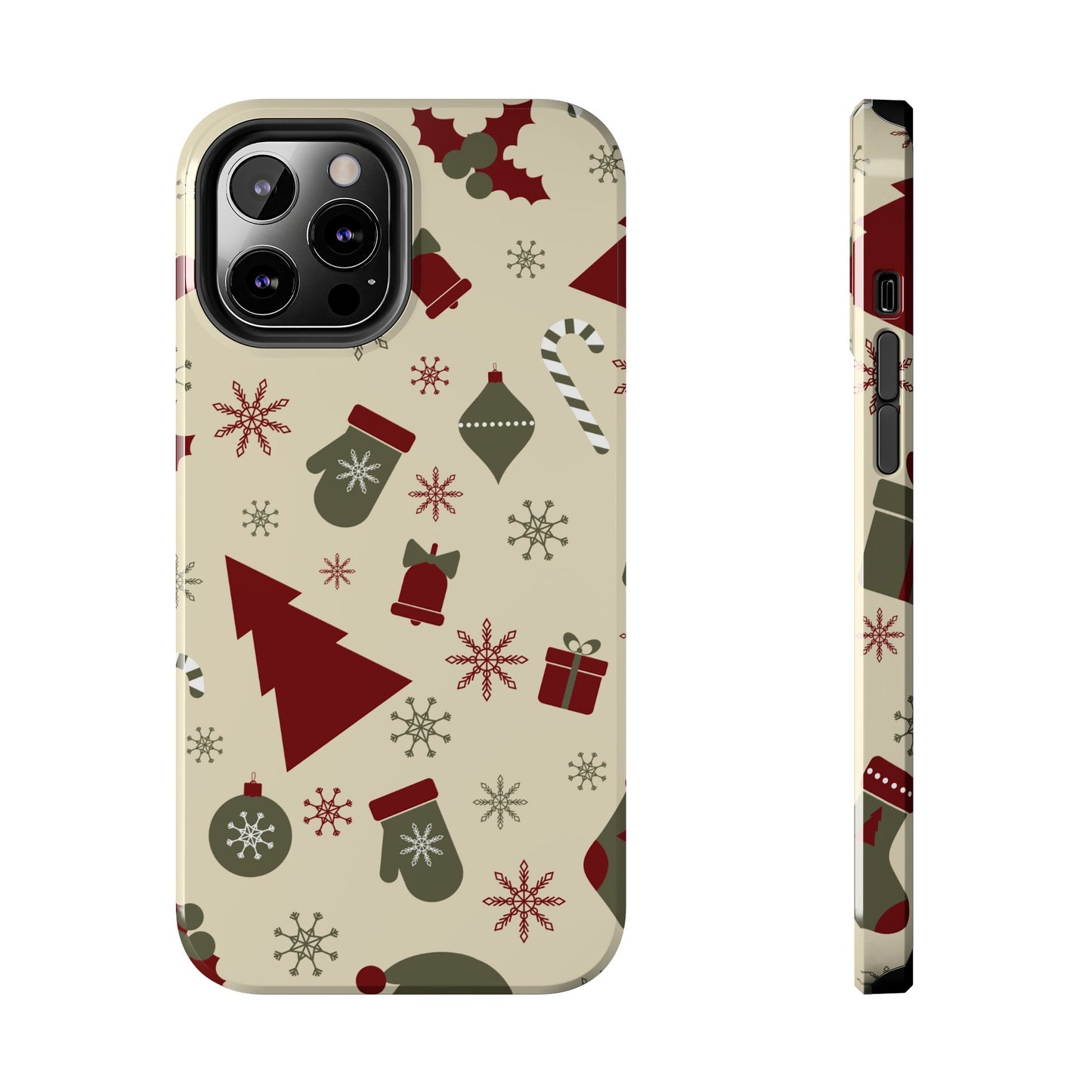 Embrace the spirit of the season with our Vintage Holiday Cheer iPhone Case! This charming design showcases festive icons in classic red, green, and cream tones, including snowflakes, Christmas trees, candy canes, and gift boxes, all set on a warm, beige background. Perfect for adding a touch of retro holiday style to your phone, this case brings nostalgic holiday vibes wherever you go. Crafted from durable materials, it provides reliable protection against everyday bumps and scratches while keeping your phone lightweight and sleek. Celebrate the holidays in style with this festive, functional case!