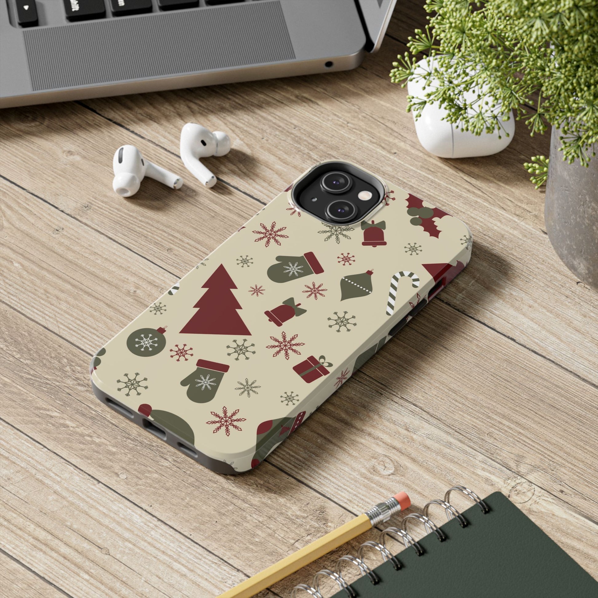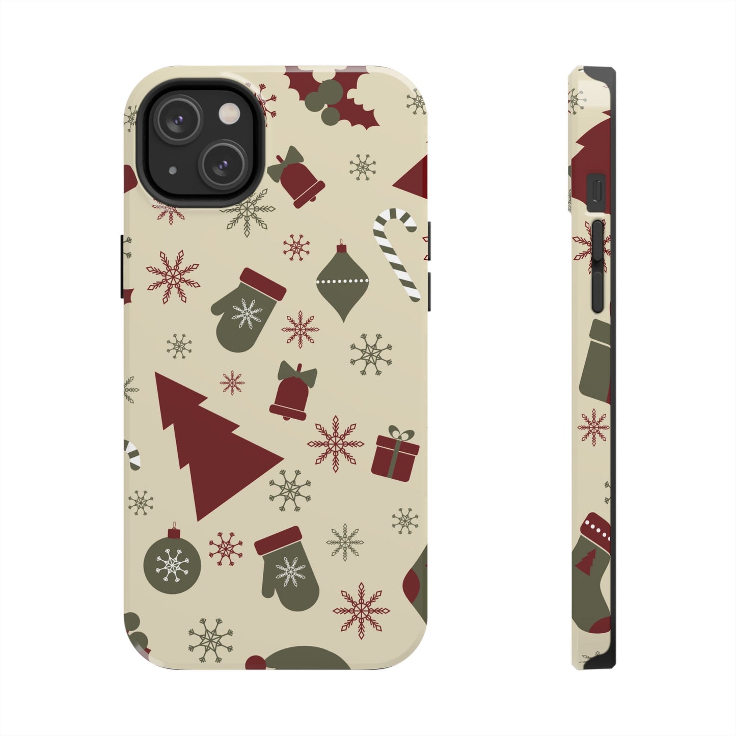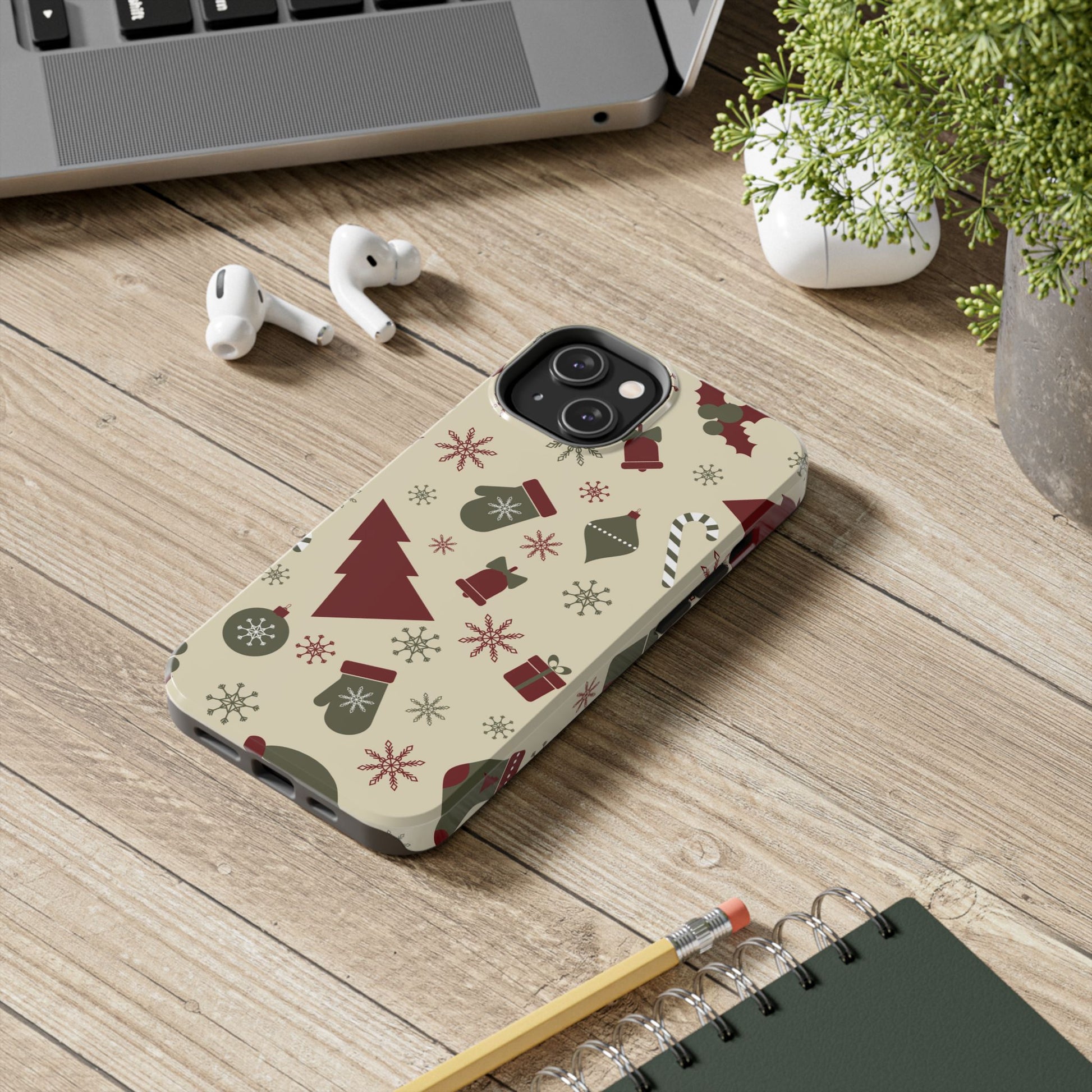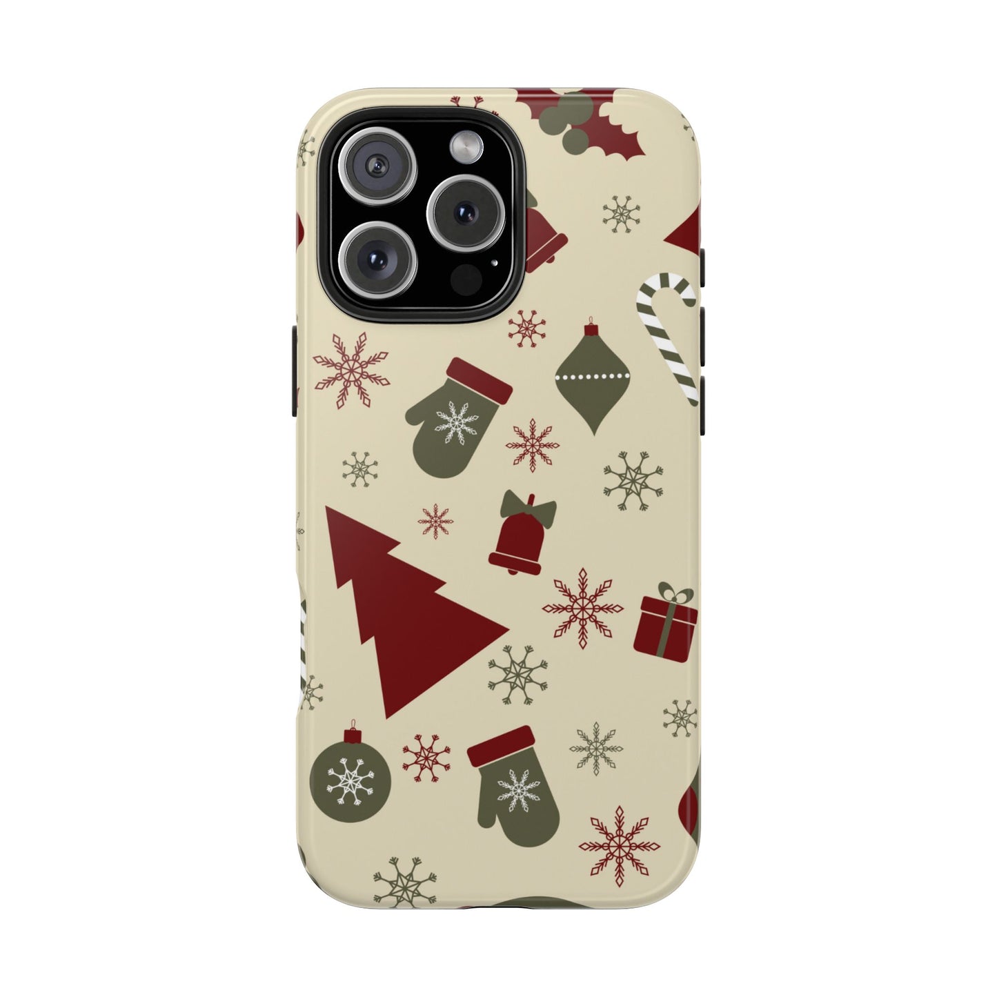 Embrace the spirit of the season with our Vintage Holiday Cheer iPhone Case! This charming design showcases festive icons in classic red, green, and cream tones, including snowflakes, Christmas trees, candy canes, and gift boxes, all set on a warm, beige background. Perfect for adding a touch of retro holiday style to your phone, this case brings nostalgic holiday vibes wherever you go. Crafted from durable materials, it provides reliable protection against everyday bumps and scratches while keeping your phone lightweight and sleek. Celebrate the holidays in style with this festive, functional case!