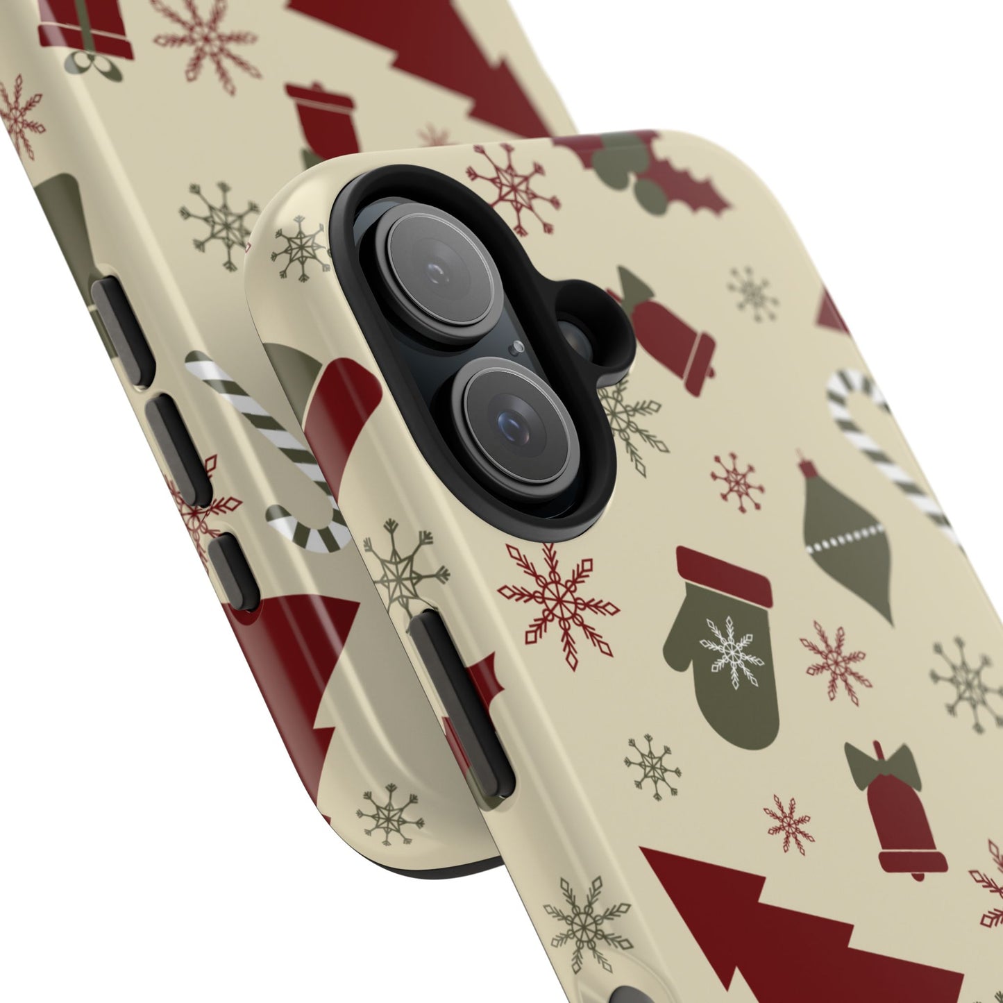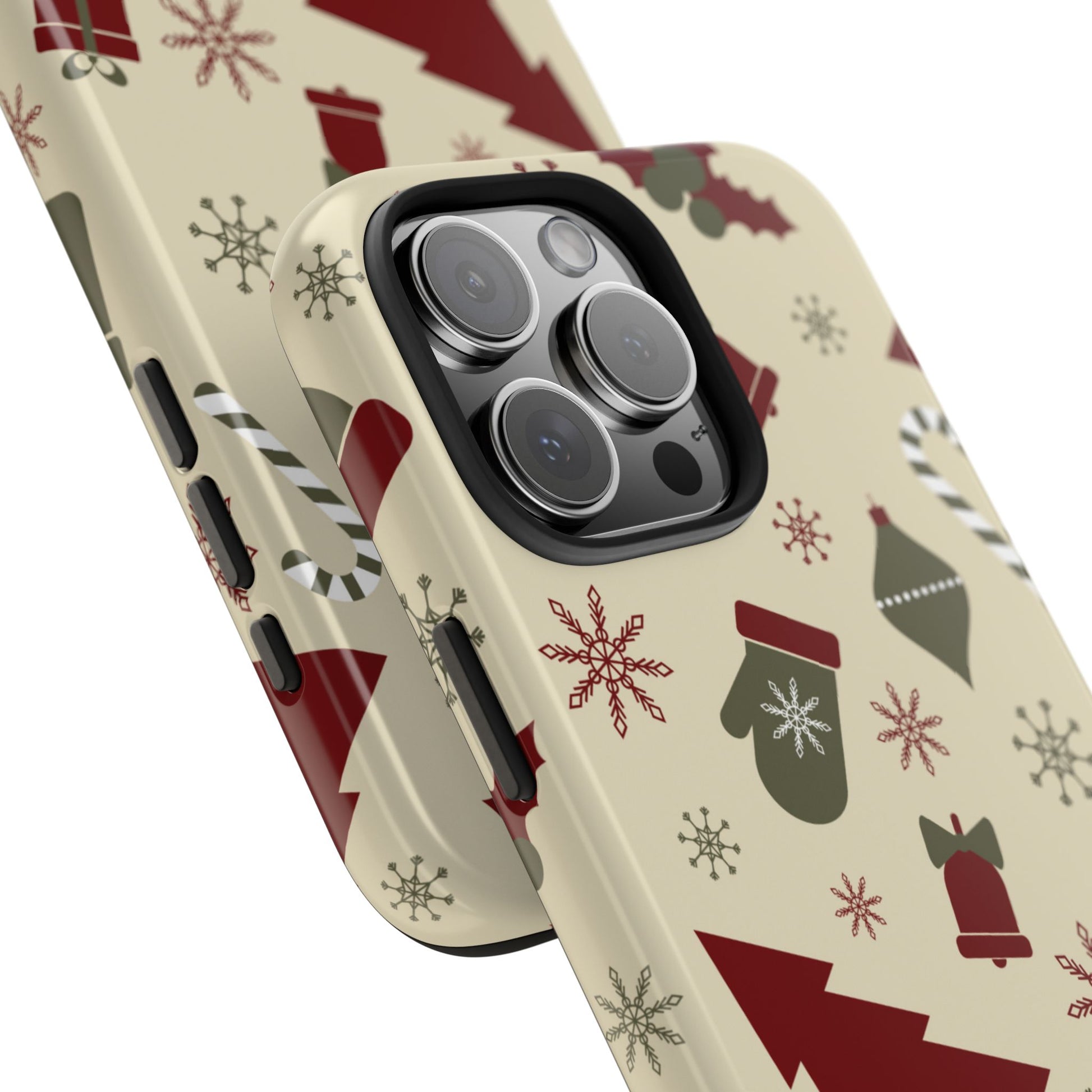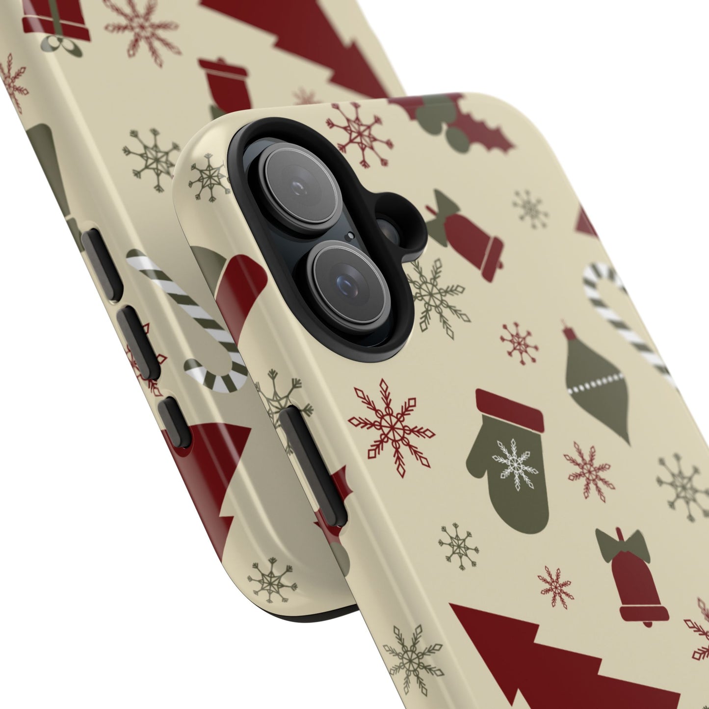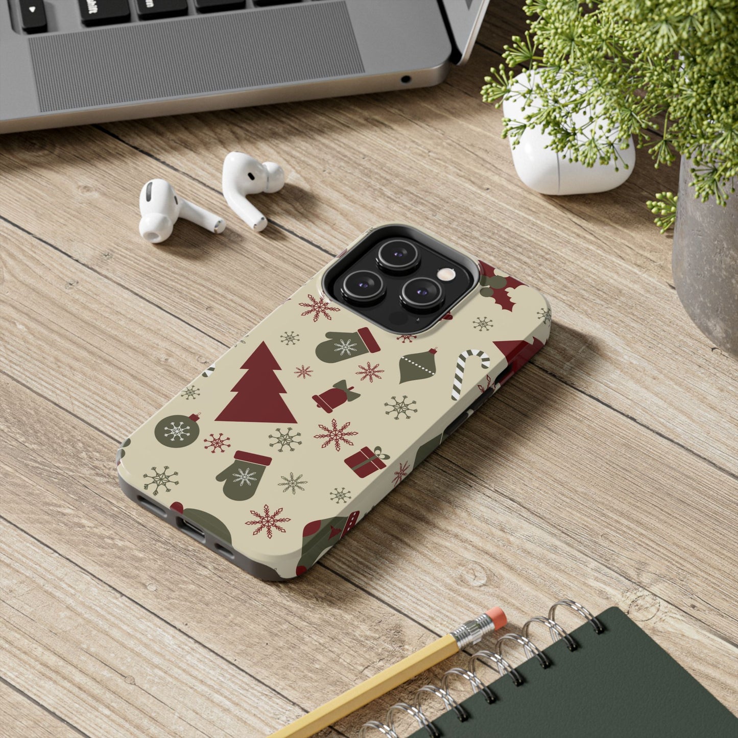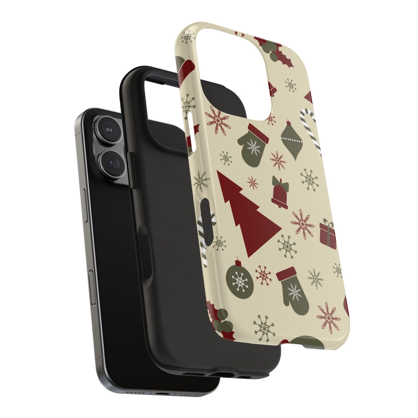 Embrace the spirit of the season with our Vintage Holiday Cheer iPhone Case! This charming design showcases festive icons in classic red, green, and cream tones, including snowflakes, Christmas trees, candy canes, and gift boxes, all set on a warm, beige background. Perfect for adding a touch of retro holiday style to your phone, this case brings nostalgic holiday vibes wherever you go. Crafted from durable materials, it provides reliable protection against everyday bumps and scratches while keeping your phone lightweight and sleek. Celebrate the holidays in style with this festive, functional case!