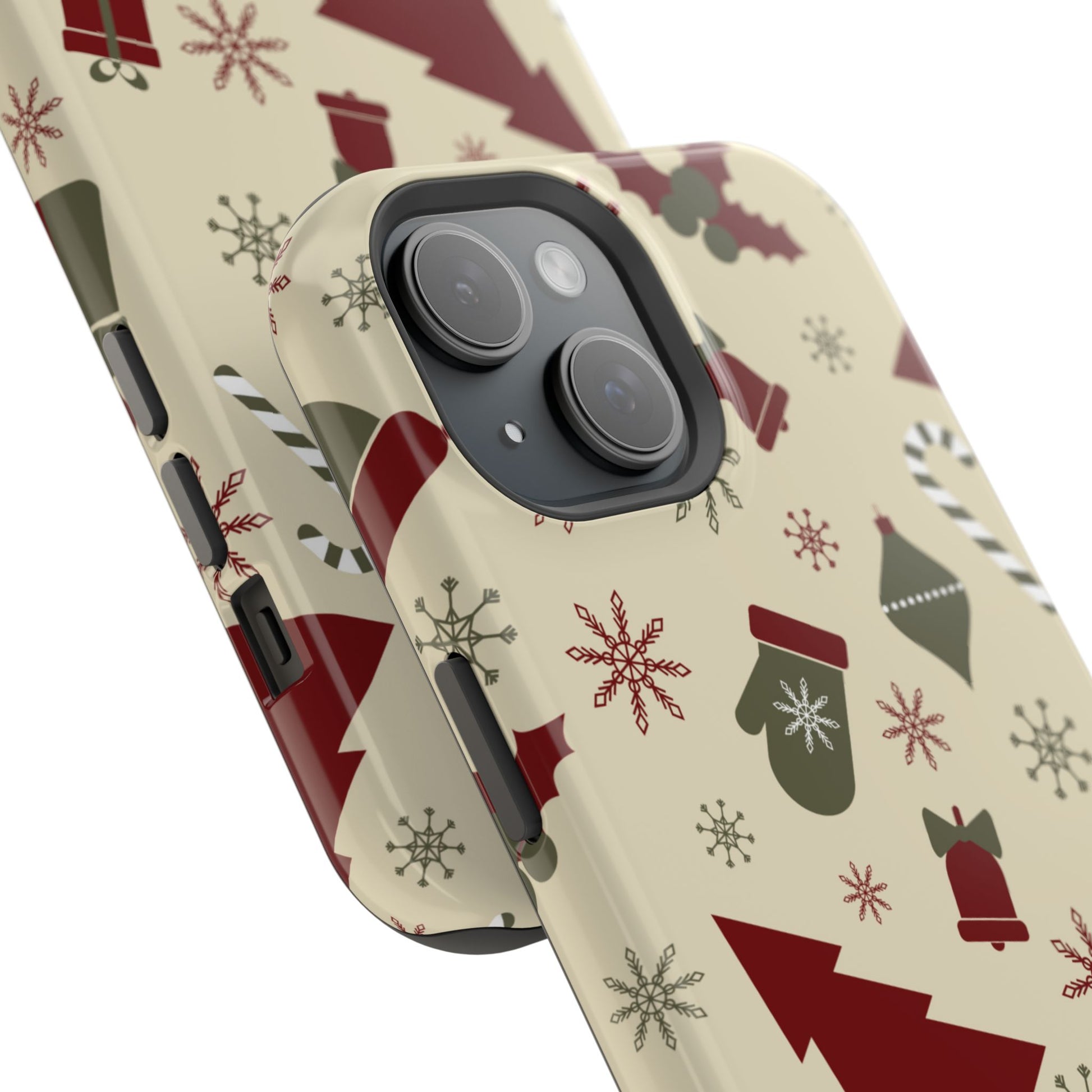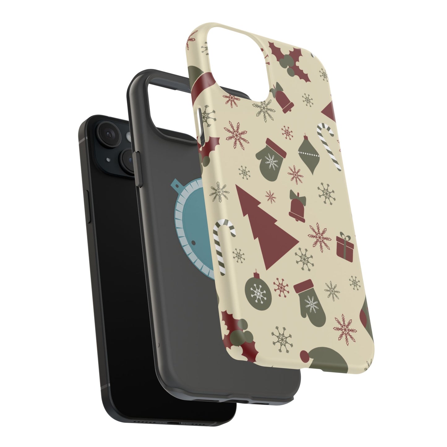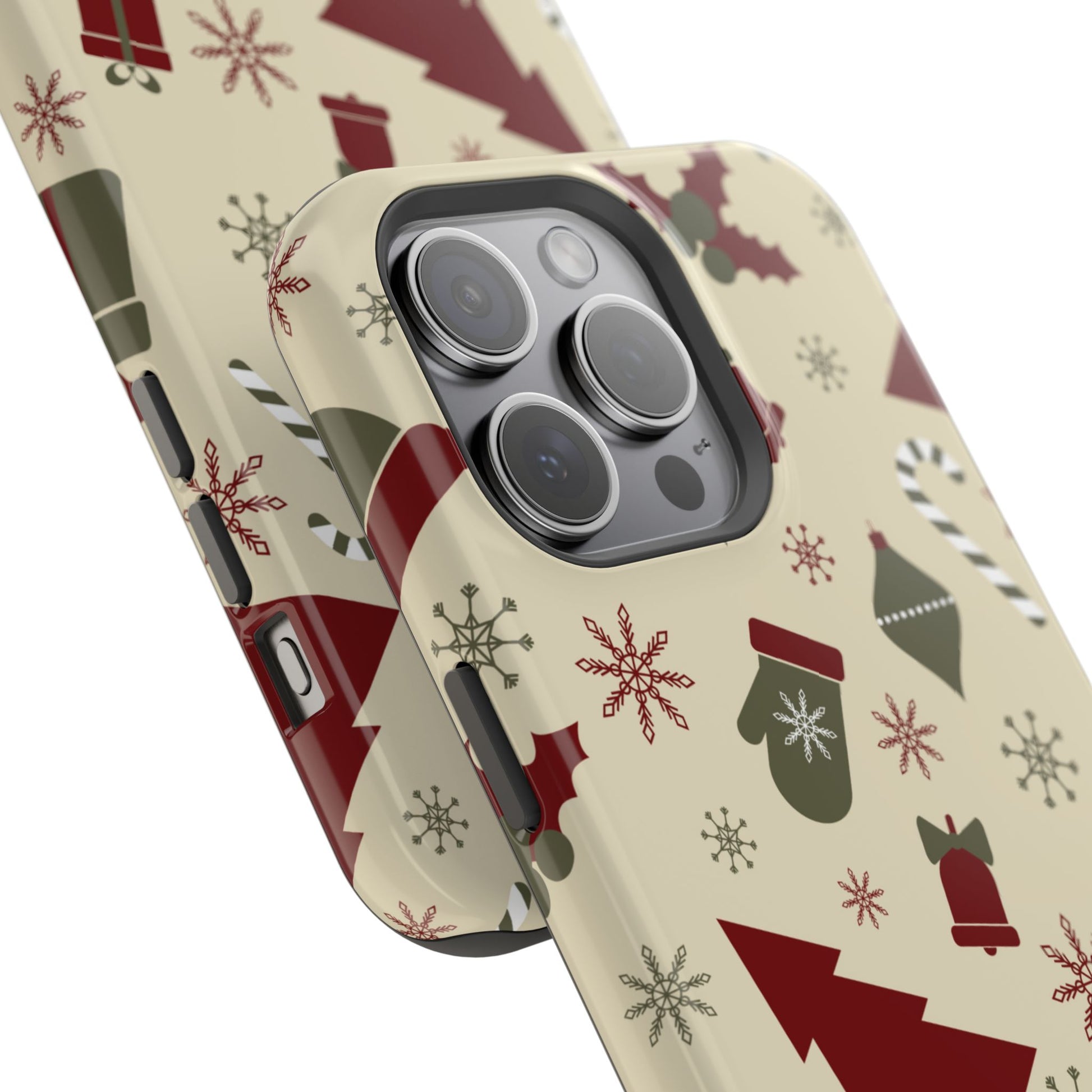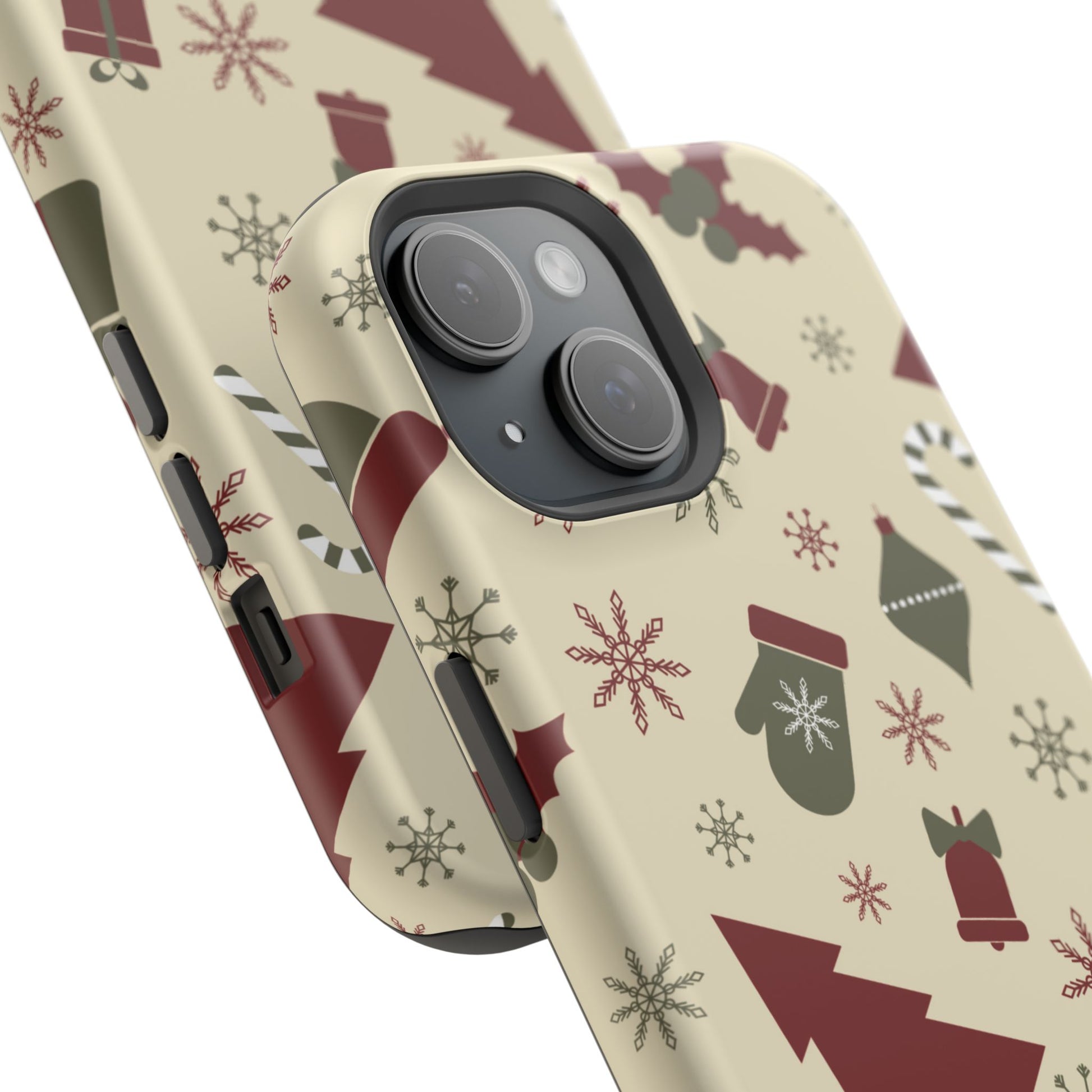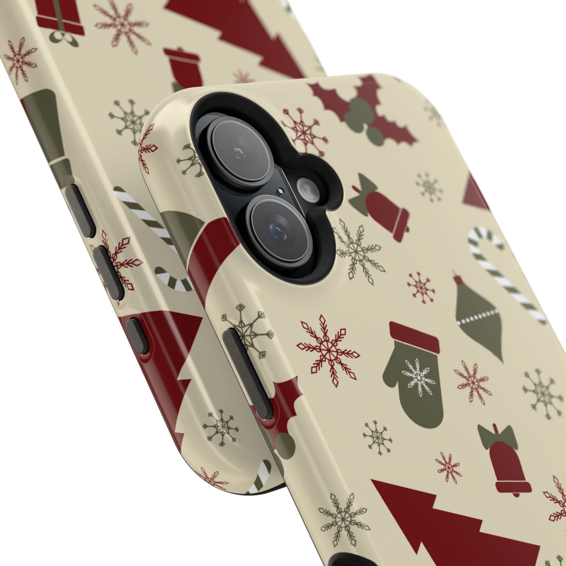 Embrace the spirit of the season with our Vintage Holiday Cheer MagSafe iPhone Case! This charming design showcases festive icons in classic red, green, and cream tones, including snowflakes, Christmas trees, candy canes, and gift boxes, all set on a warm, beige background. Perfect for adding a touch of retro holiday style to your phone, this case brings nostalgic holiday vibes wherever you go. Crafted from durable materials, it provides reliable protection against everyday bumps and scratches while keeping your phone lightweight and sleek. Celebrate the holidays in style with this festive, functional case!