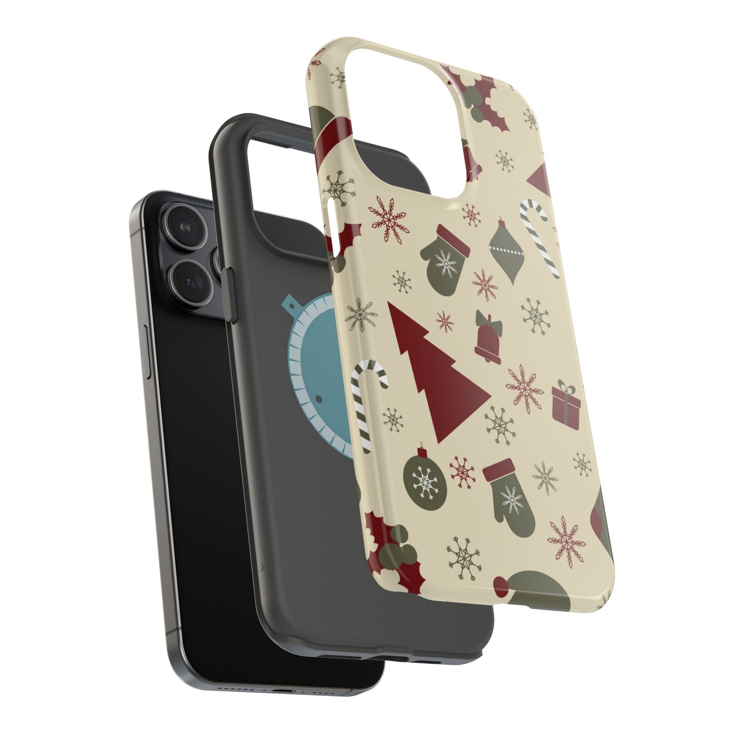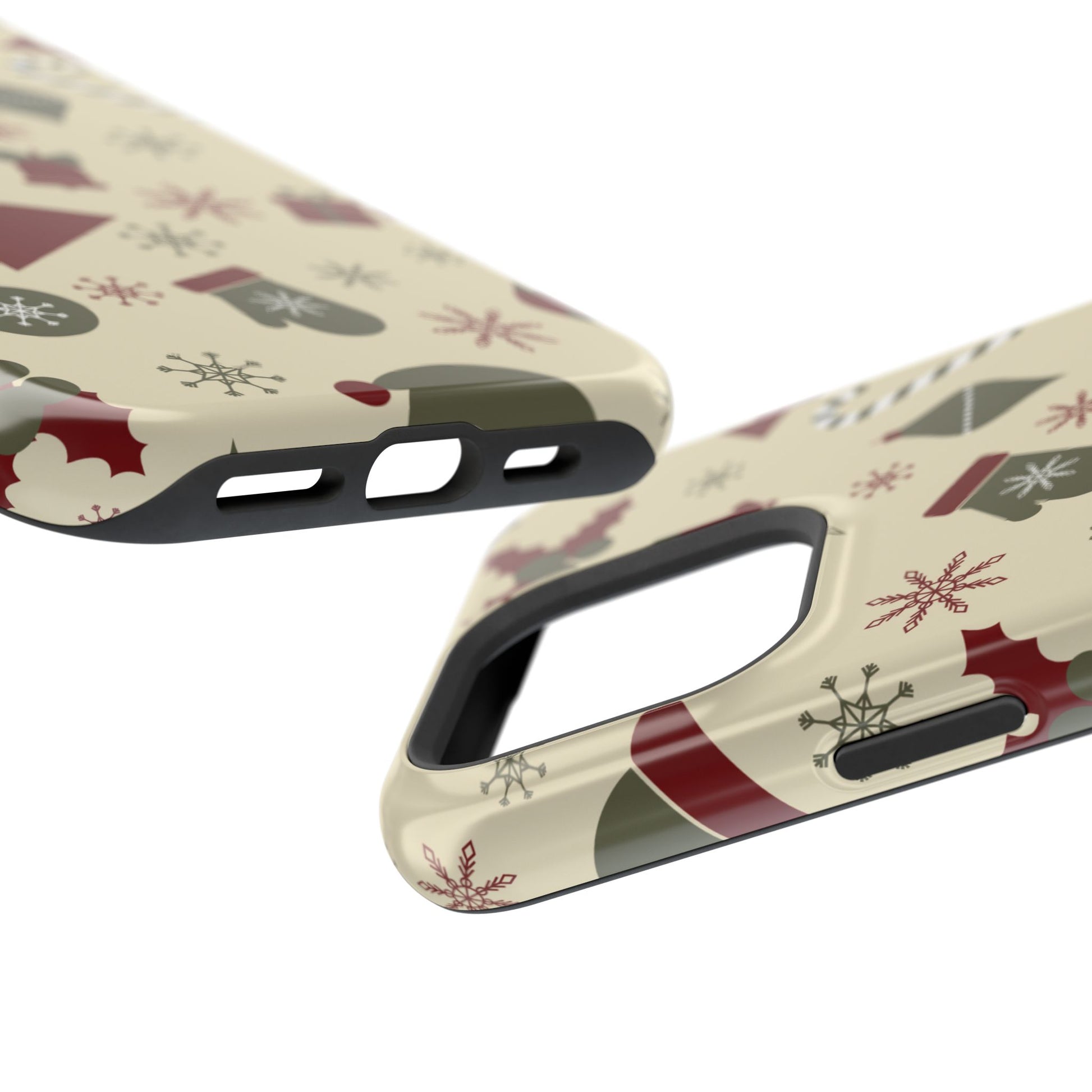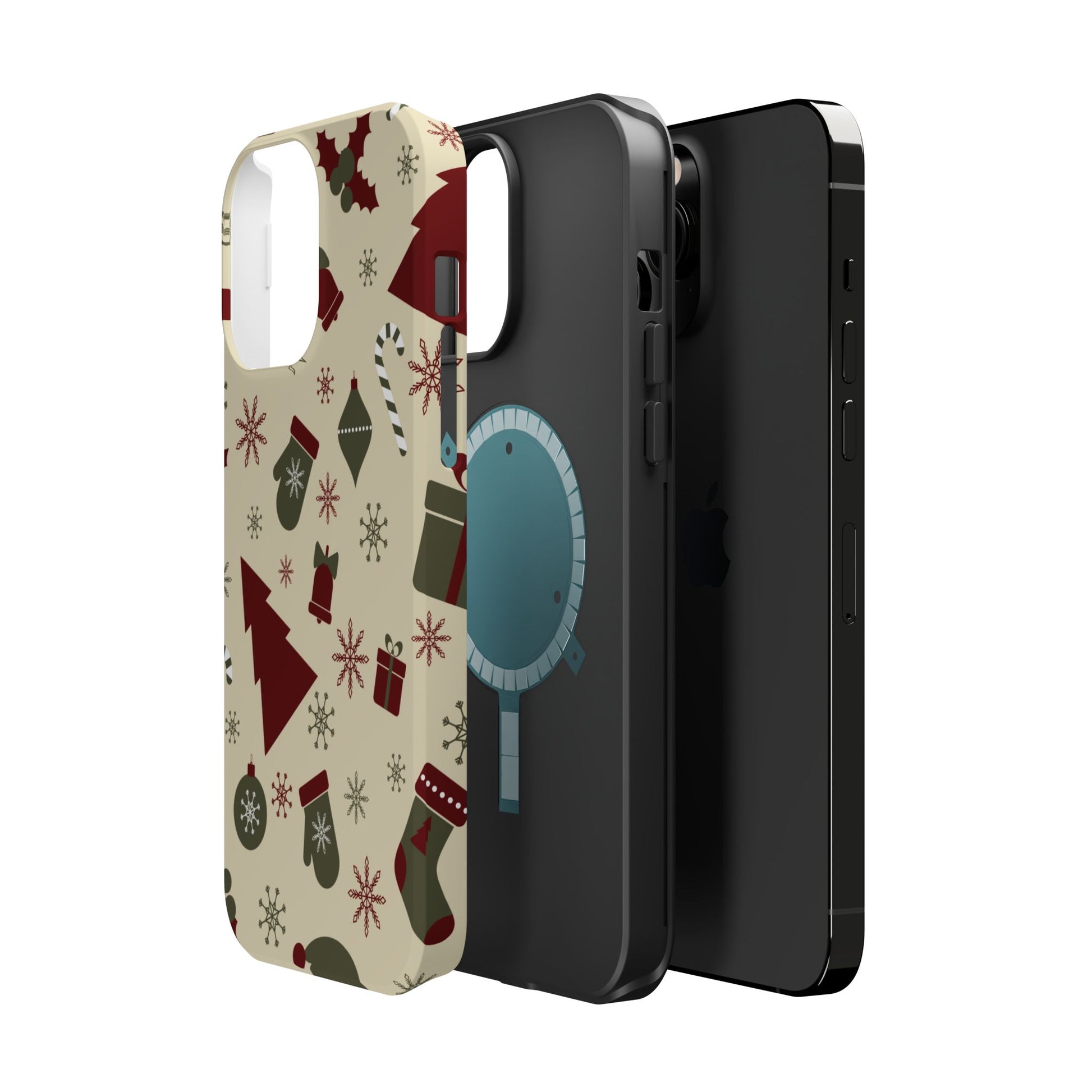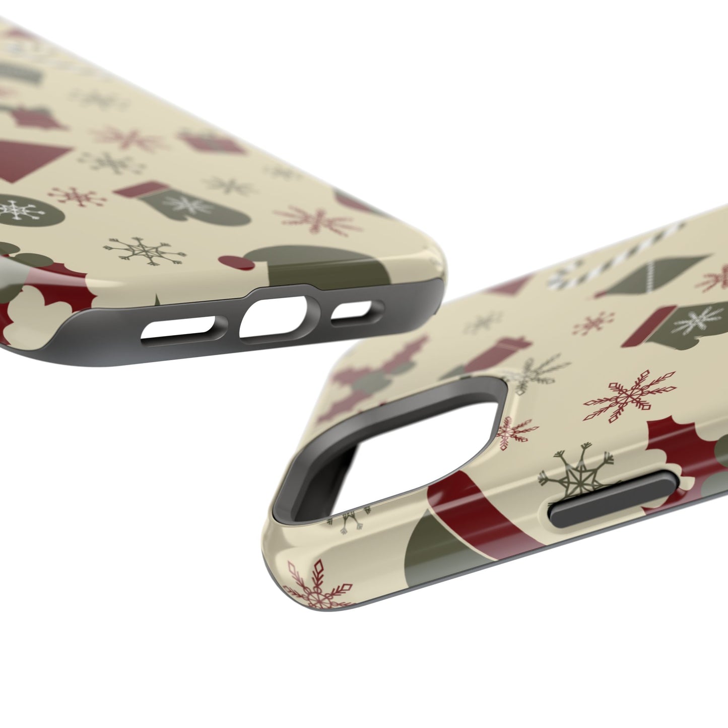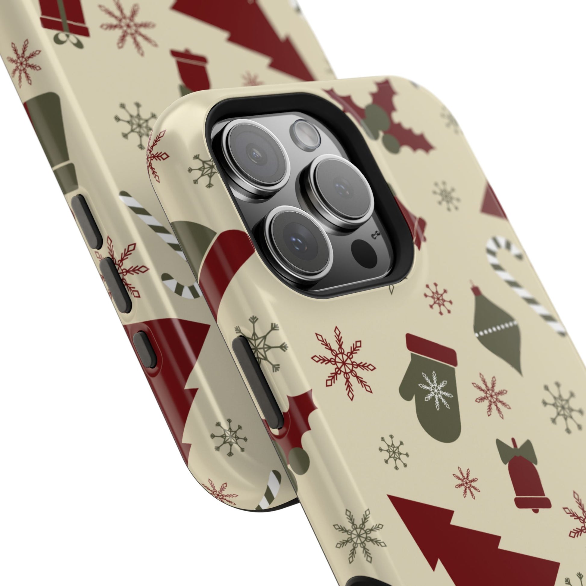 Embrace the spirit of the season with our Vintage Holiday Cheer MagSafe iPhone Case! This charming design showcases festive icons in classic red, green, and cream tones, including snowflakes, Christmas trees, candy canes, and gift boxes, all set on a warm, beige background. Perfect for adding a touch of retro holiday style to your phone, this case brings nostalgic holiday vibes wherever you go. Crafted from durable materials, it provides reliable protection against everyday bumps and scratches while keeping your phone lightweight and sleek. Celebrate the holidays in style with this festive, functional case!