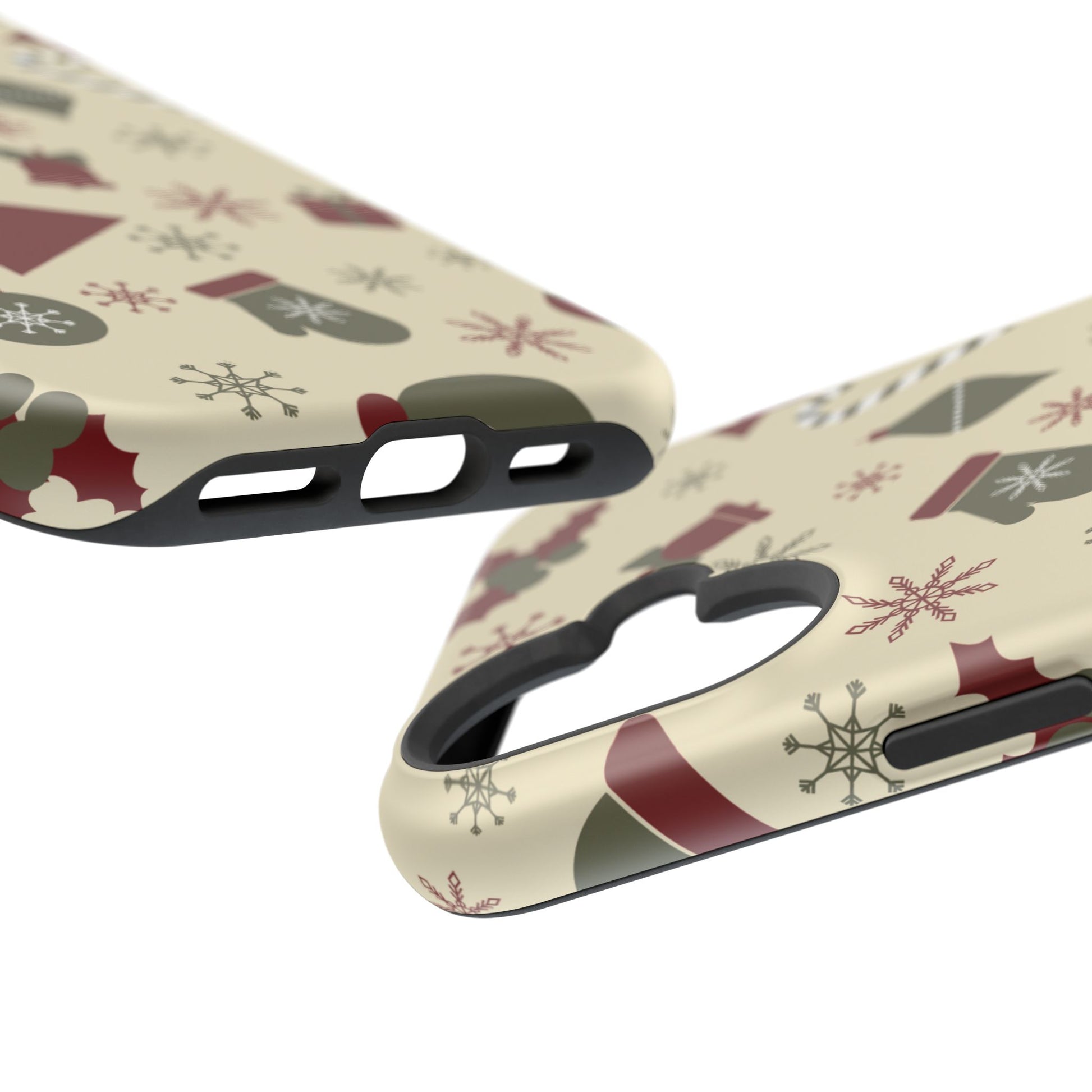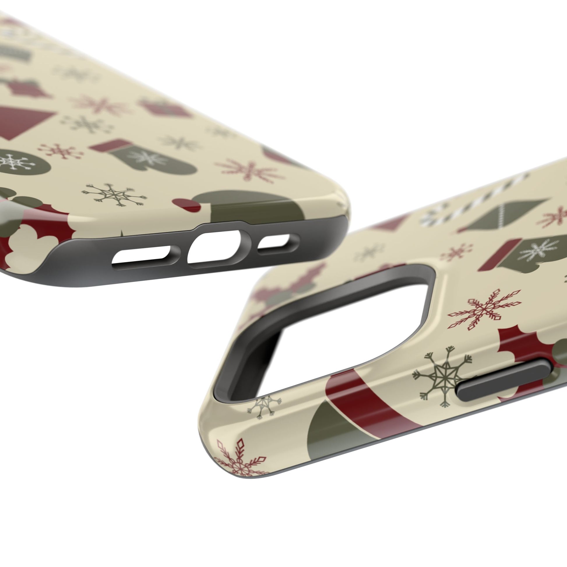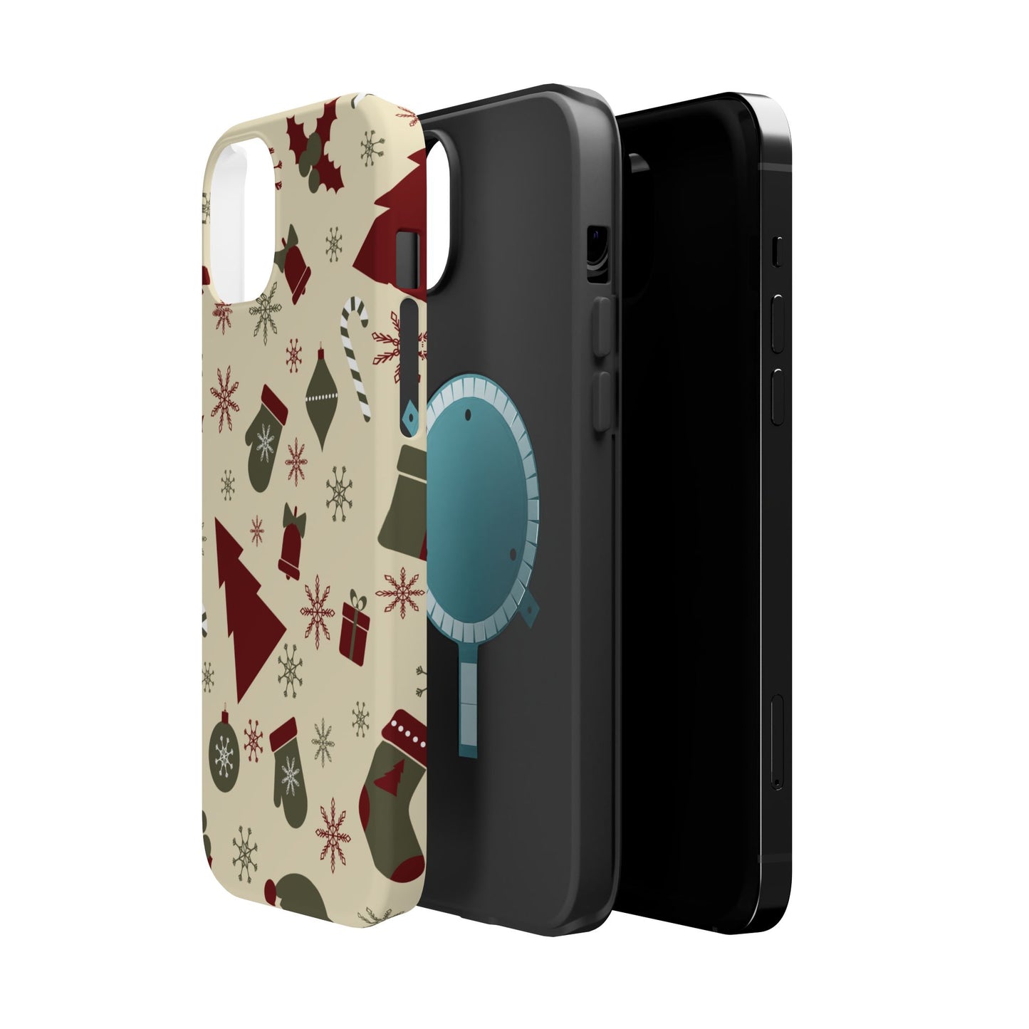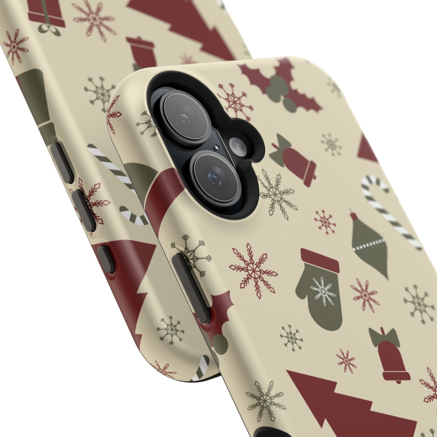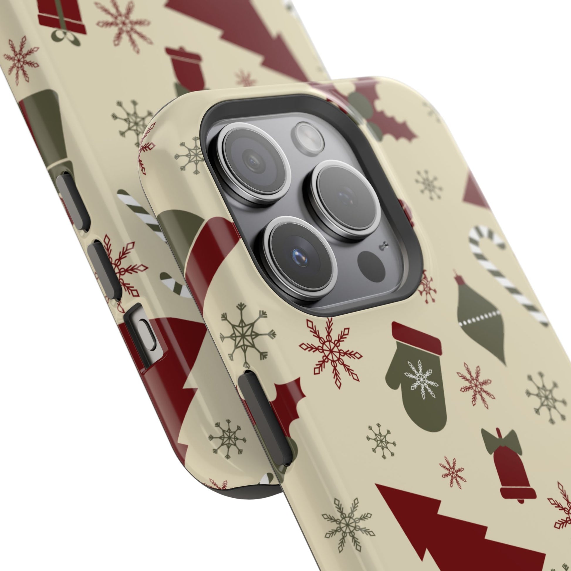 Embrace the spirit of the season with our Vintage Holiday Cheer MagSafe iPhone Case! This charming design showcases festive icons in classic red, green, and cream tones, including snowflakes, Christmas trees, candy canes, and gift boxes, all set on a warm, beige background. Perfect for adding a touch of retro holiday style to your phone, this case brings nostalgic holiday vibes wherever you go. Crafted from durable materials, it provides reliable protection against everyday bumps and scratches while keeping your phone lightweight and sleek. Celebrate the holidays in style with this festive, functional case!