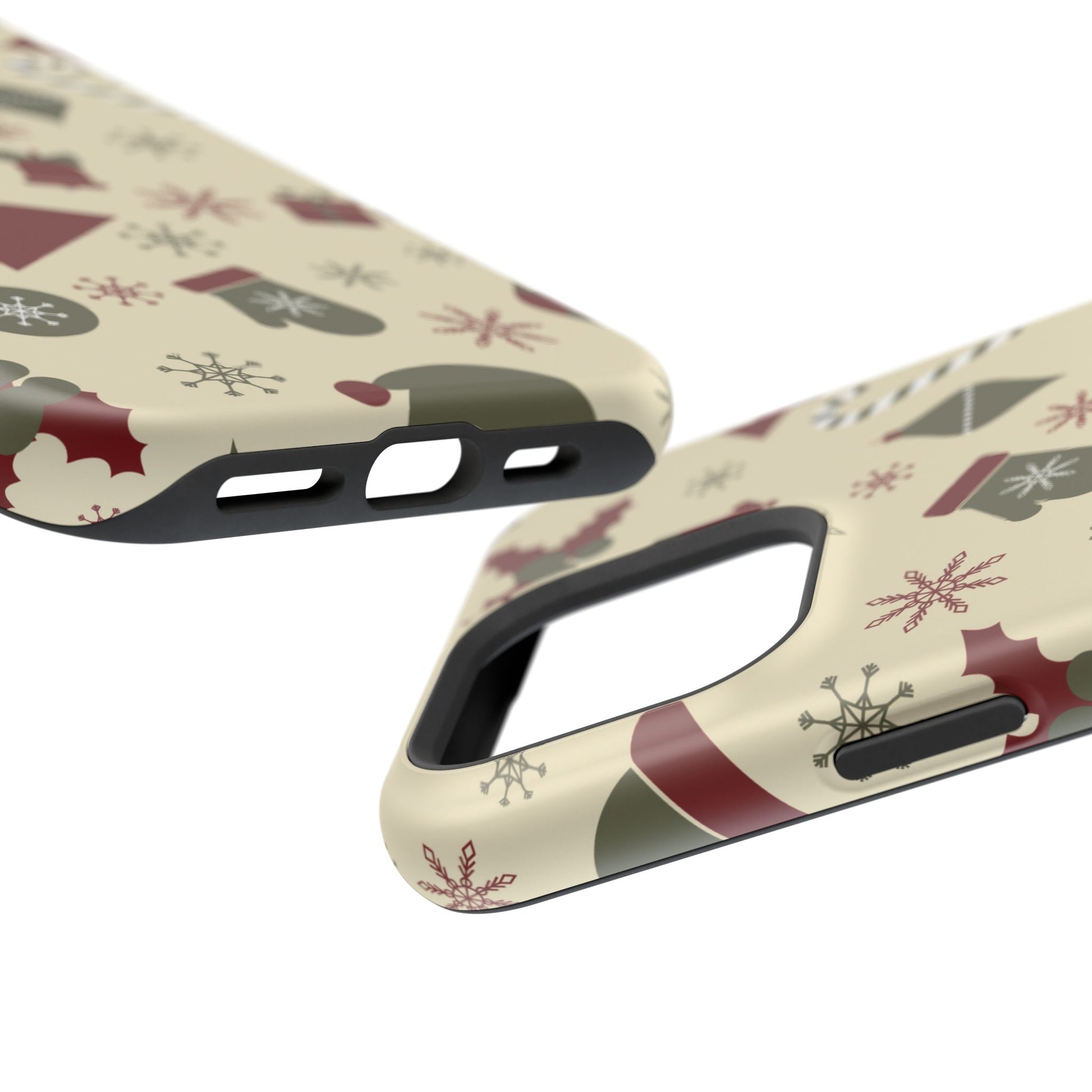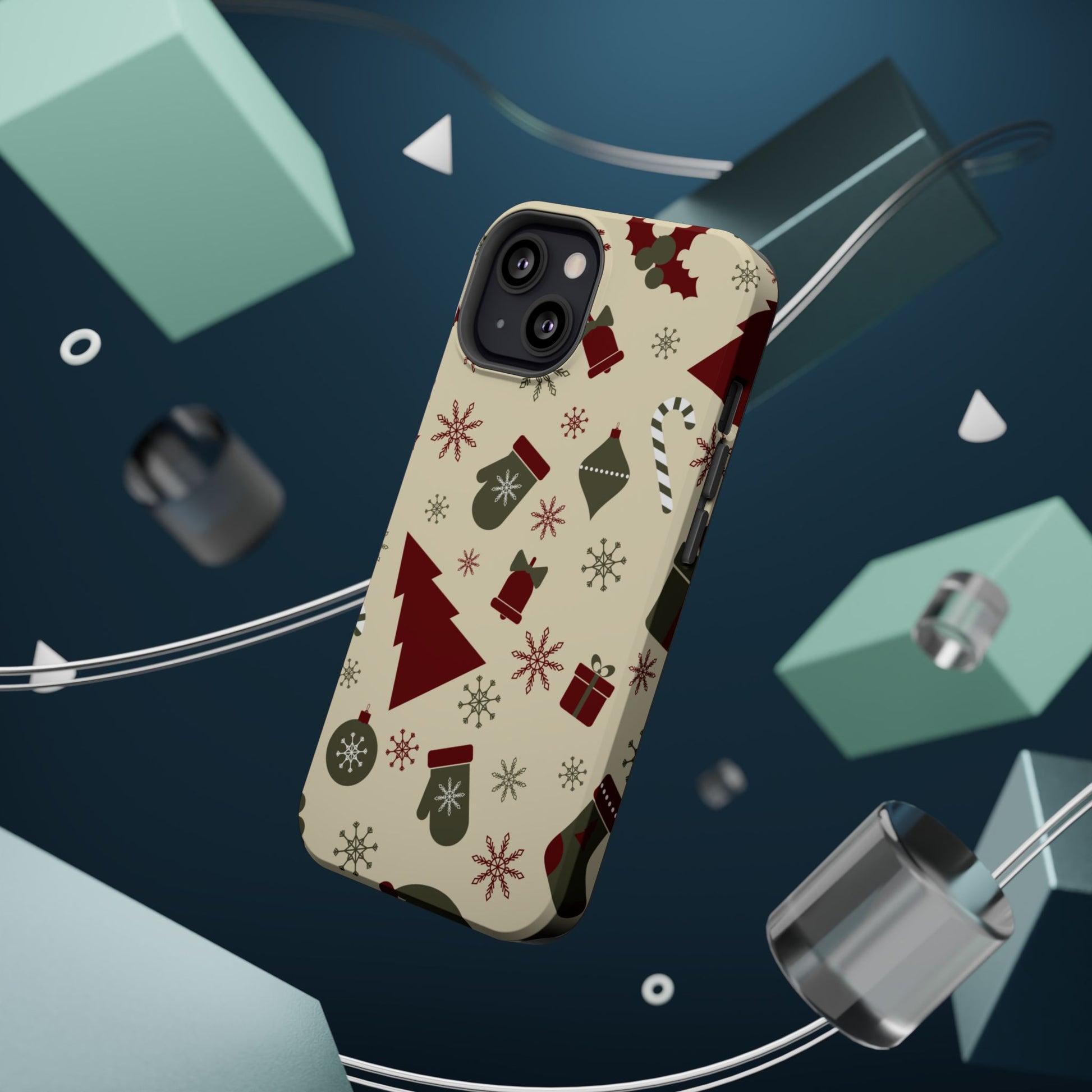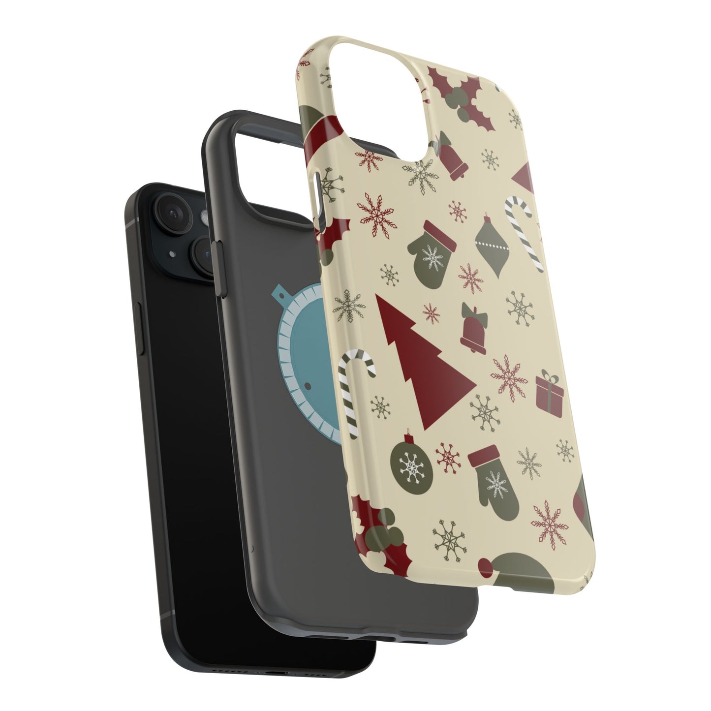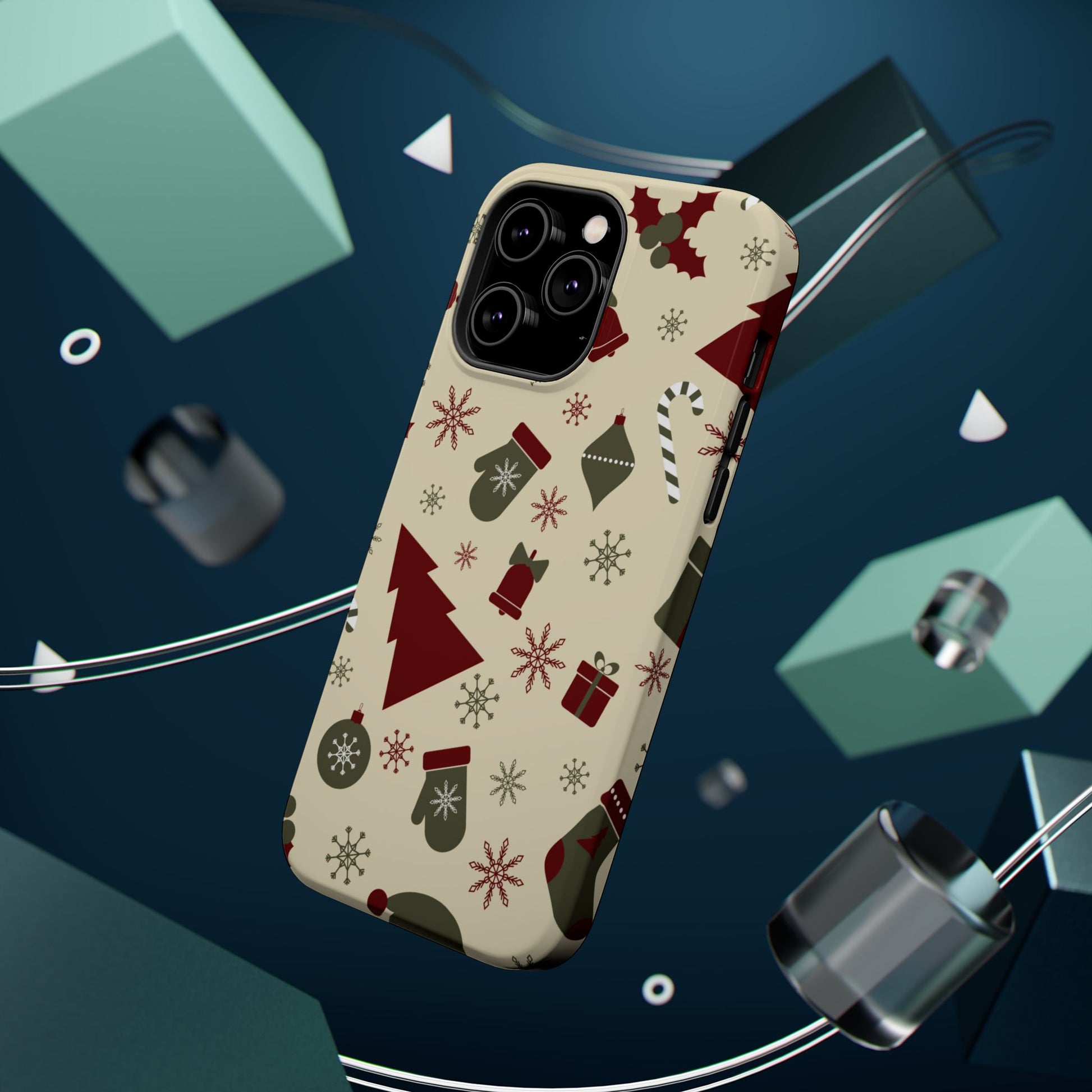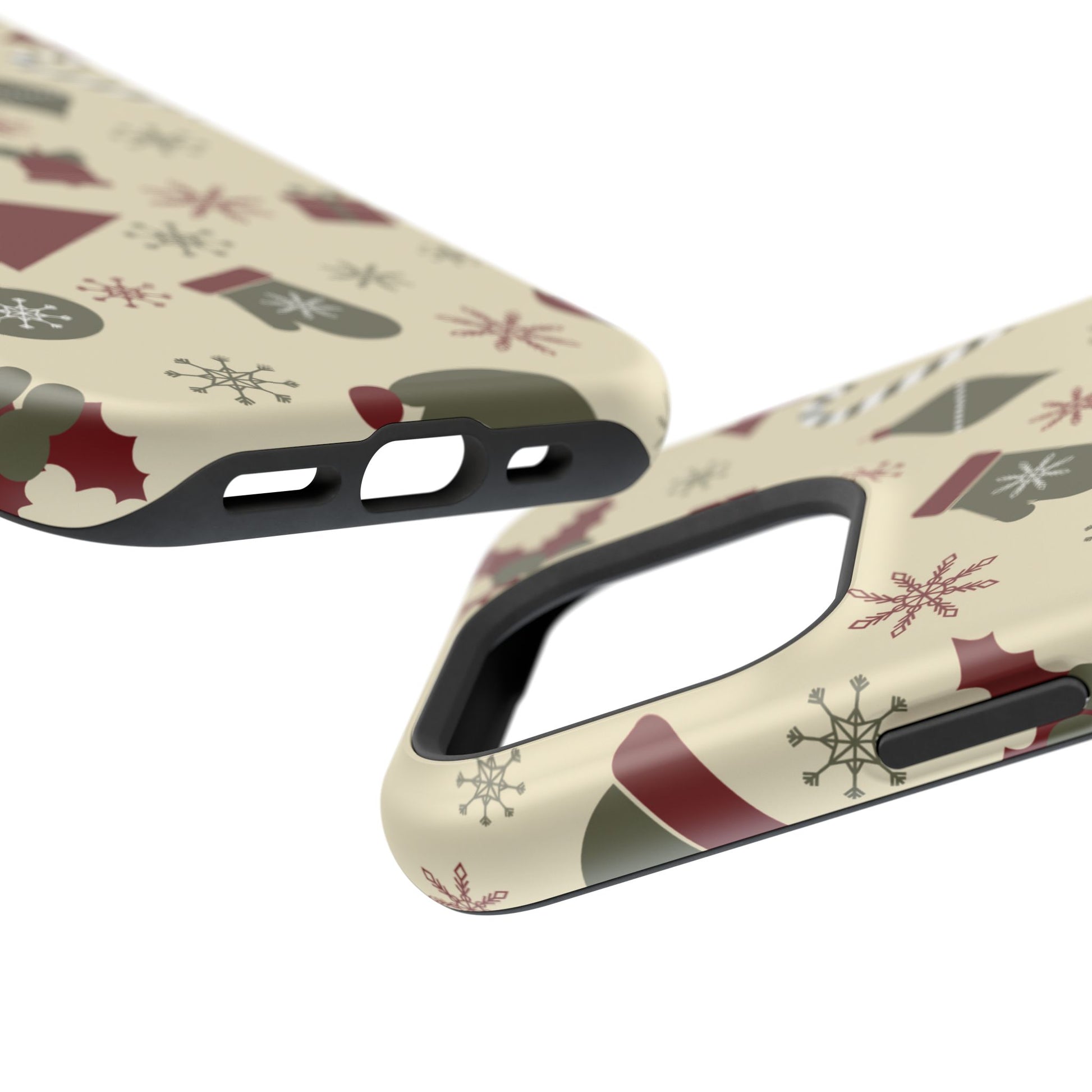 Embrace the spirit of the season with our Vintage Holiday Cheer MagSafe iPhone Case! This charming design showcases festive icons in classic red, green, and cream tones, including snowflakes, Christmas trees, candy canes, and gift boxes, all set on a warm, beige background. Perfect for adding a touch of retro holiday style to your phone, this case brings nostalgic holiday vibes wherever you go. Crafted from durable materials, it provides reliable protection against everyday bumps and scratches while keeping your phone lightweight and sleek. Celebrate the holidays in style with this festive, functional case!