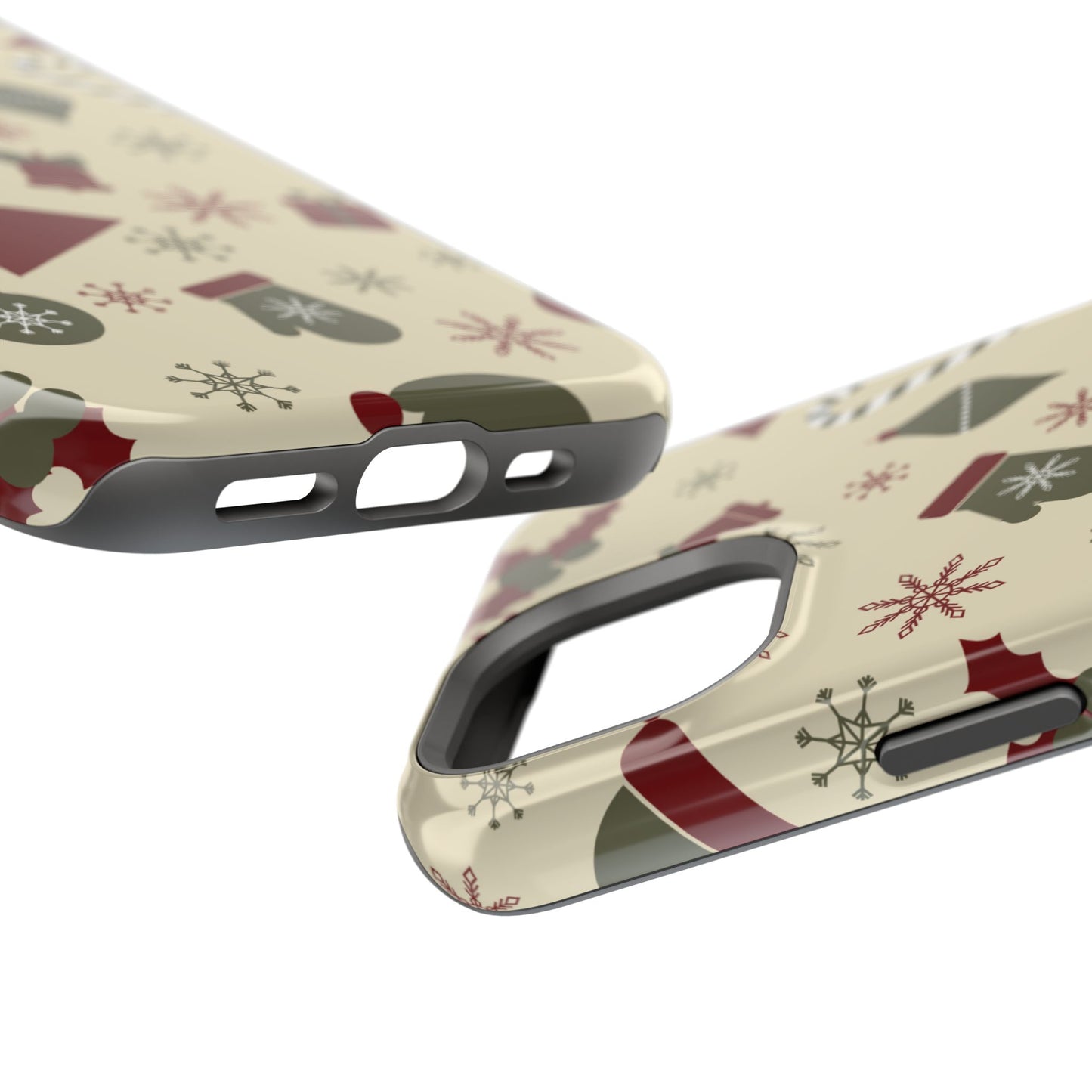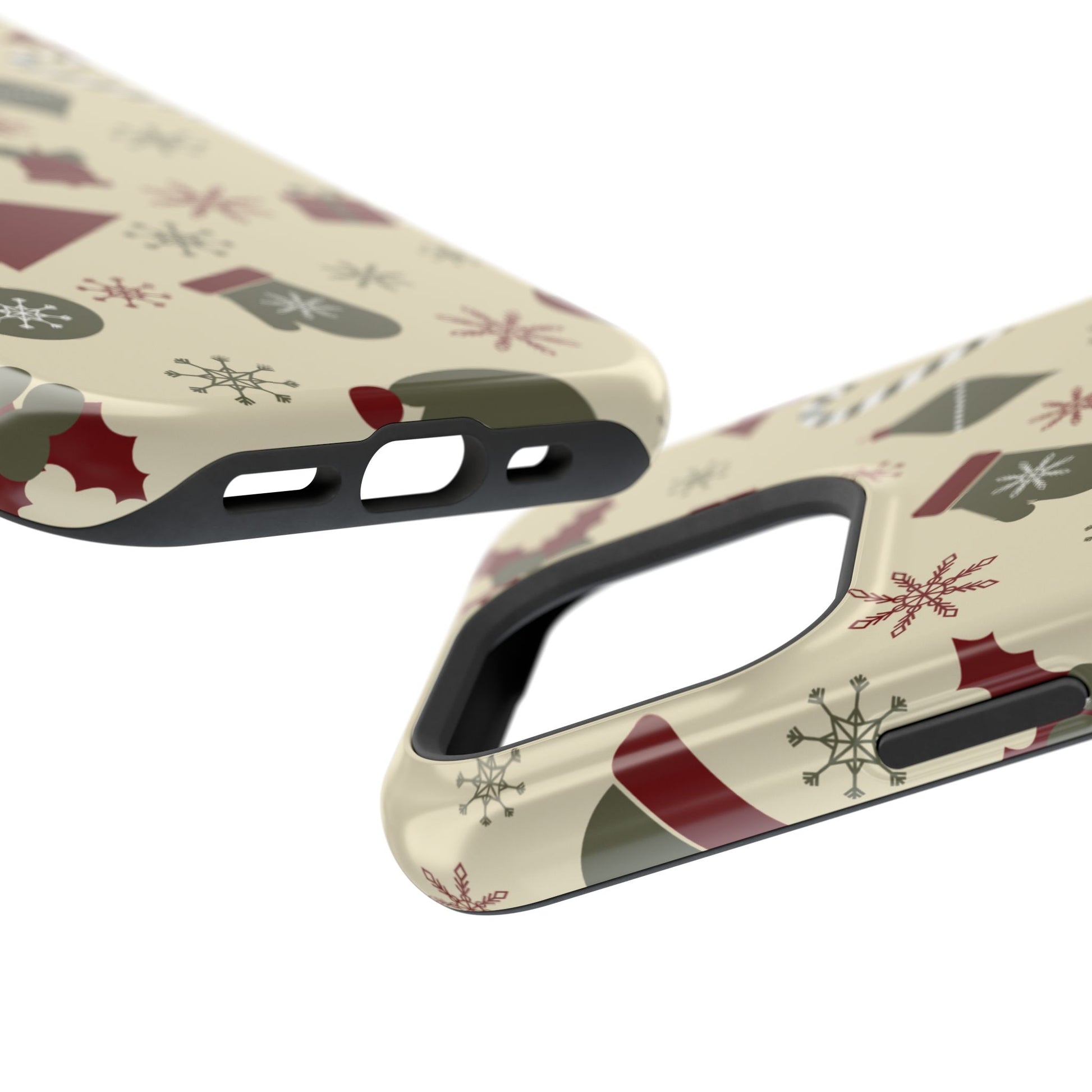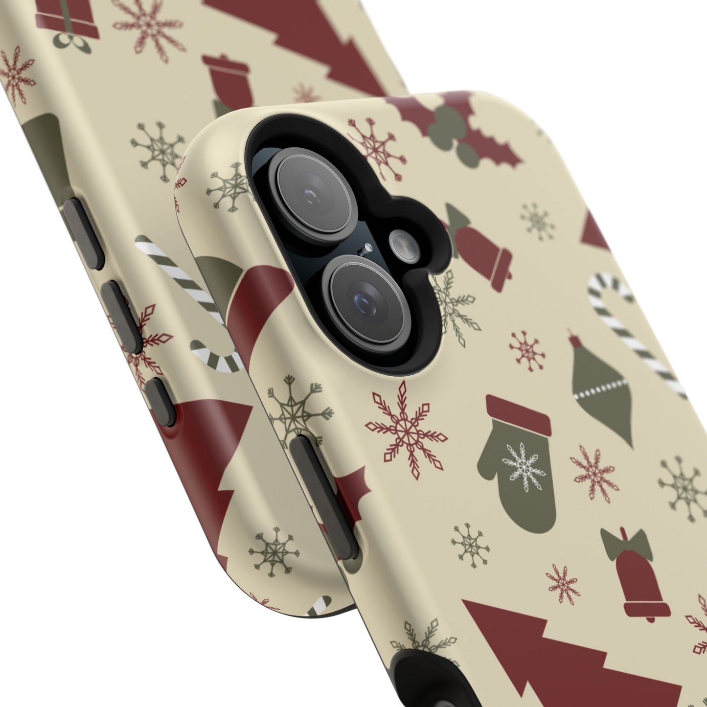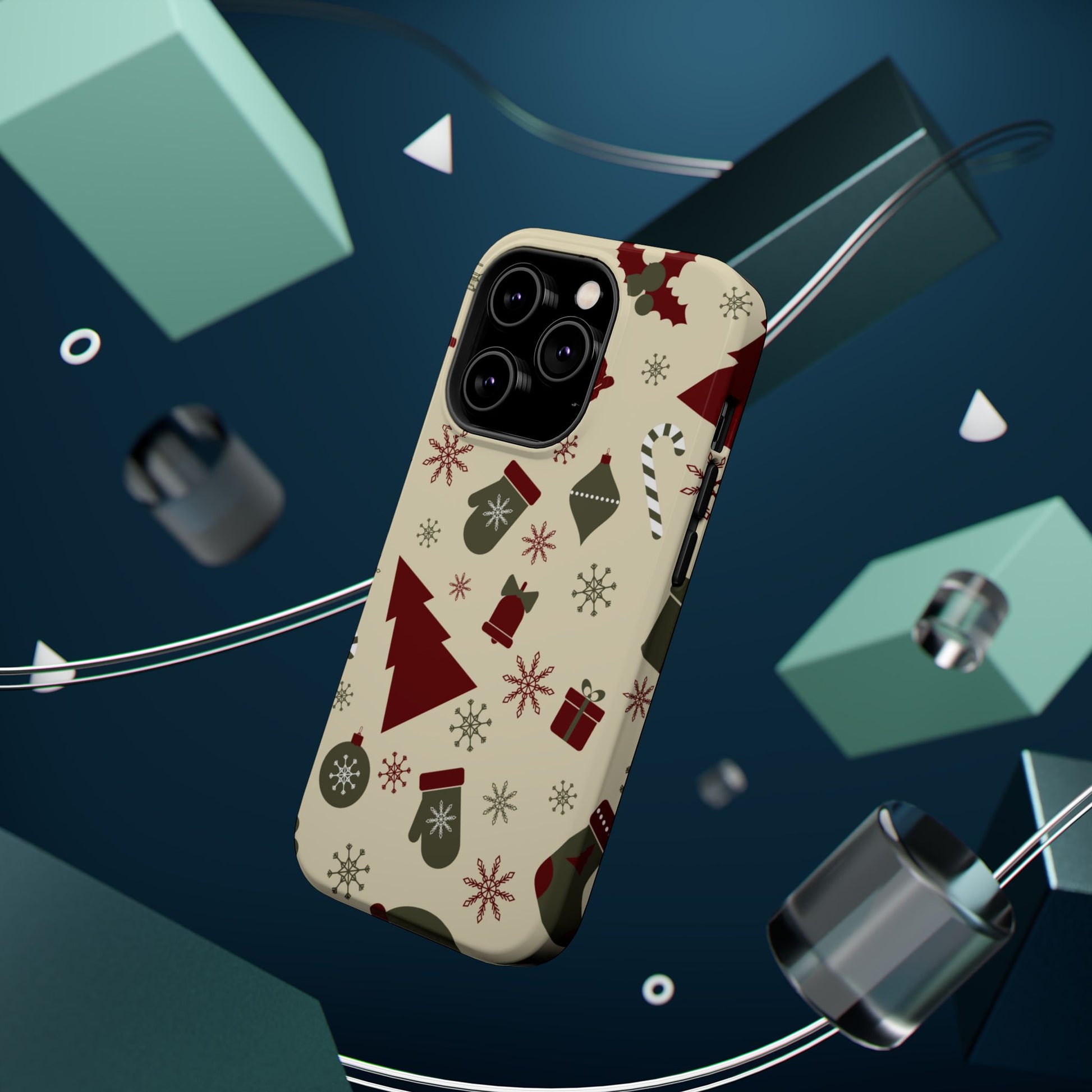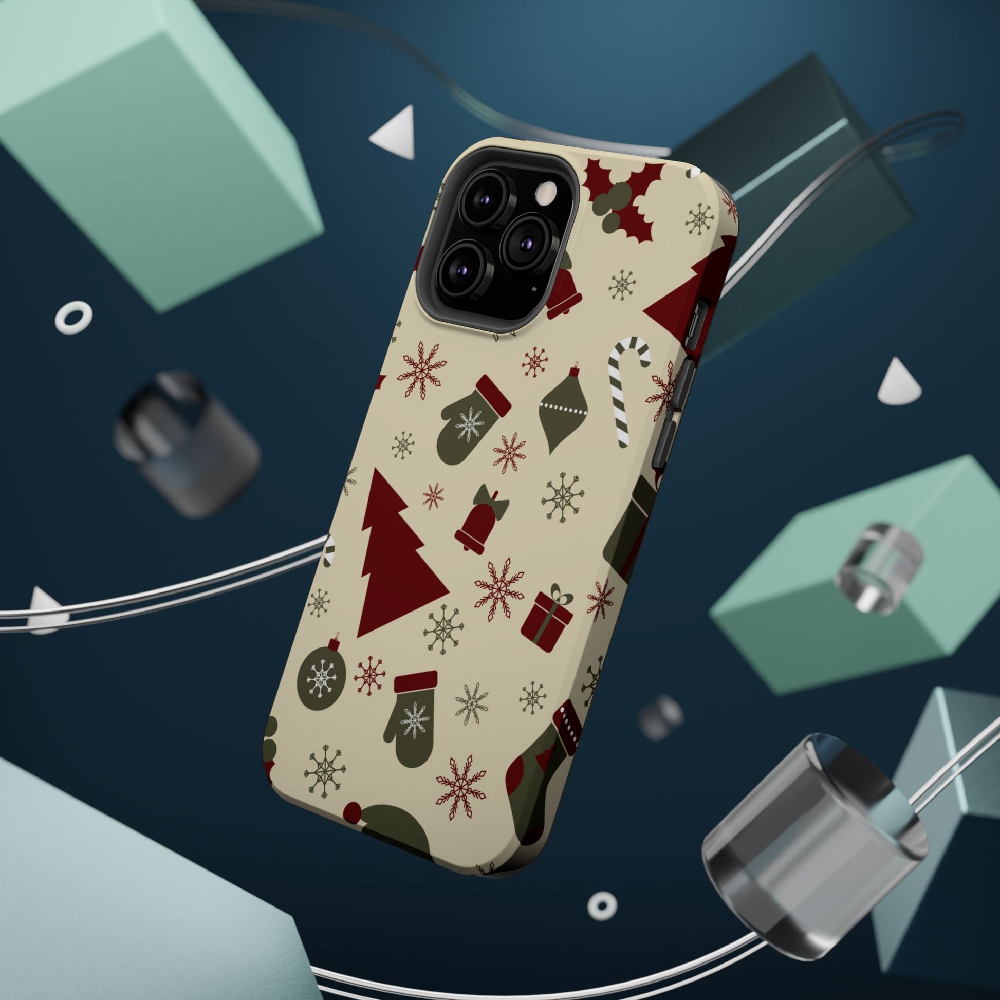 Embrace the spirit of the season with our Vintage Holiday Cheer MagSafe iPhone Case! This charming design showcases festive icons in classic red, green, and cream tones, including snowflakes, Christmas trees, candy canes, and gift boxes, all set on a warm, beige background. Perfect for adding a touch of retro holiday style to your phone, this case brings nostalgic holiday vibes wherever you go. Crafted from durable materials, it provides reliable protection against everyday bumps and scratches while keeping your phone lightweight and sleek. Celebrate the holidays in style with this festive, functional case!