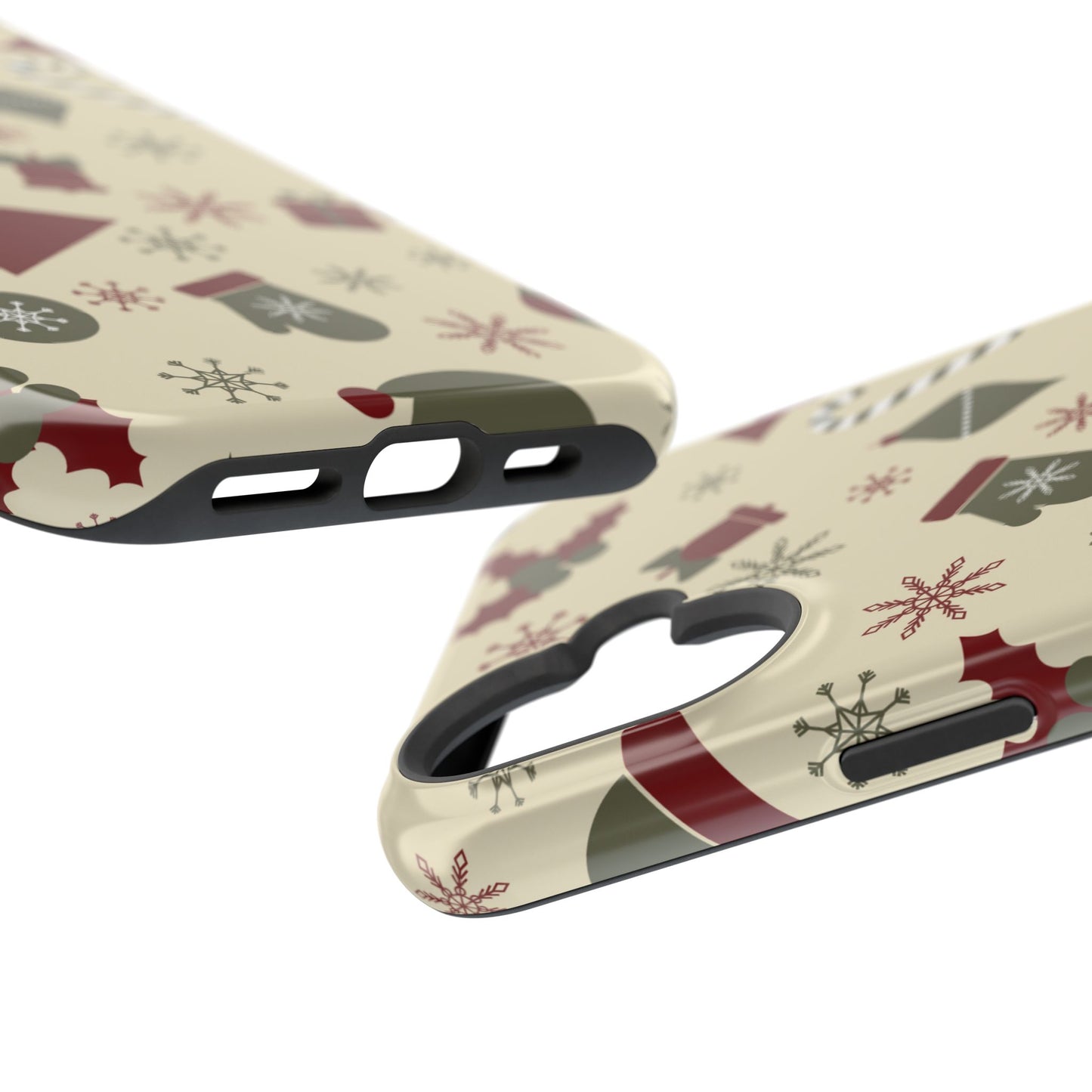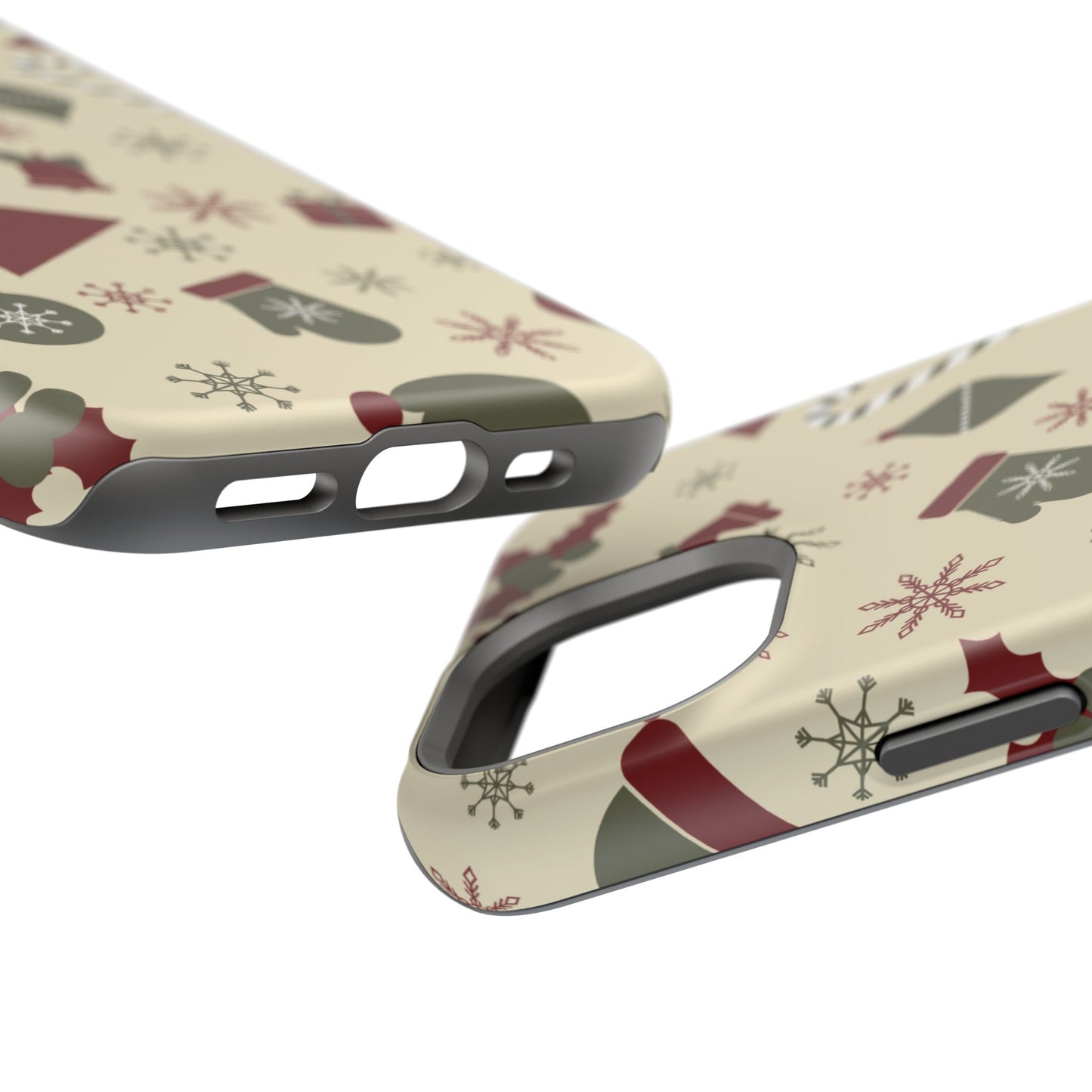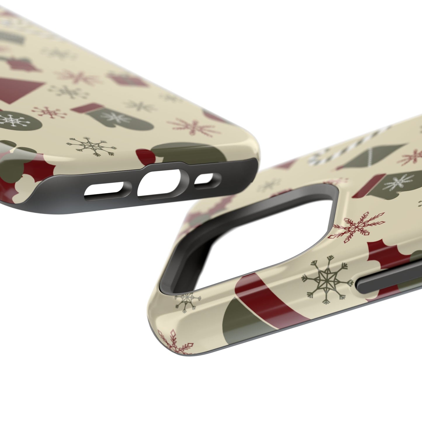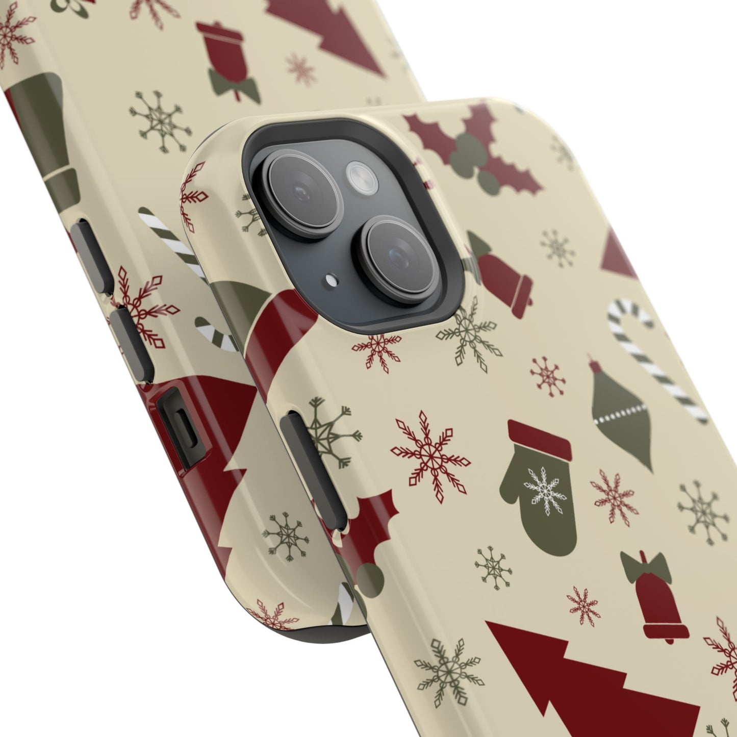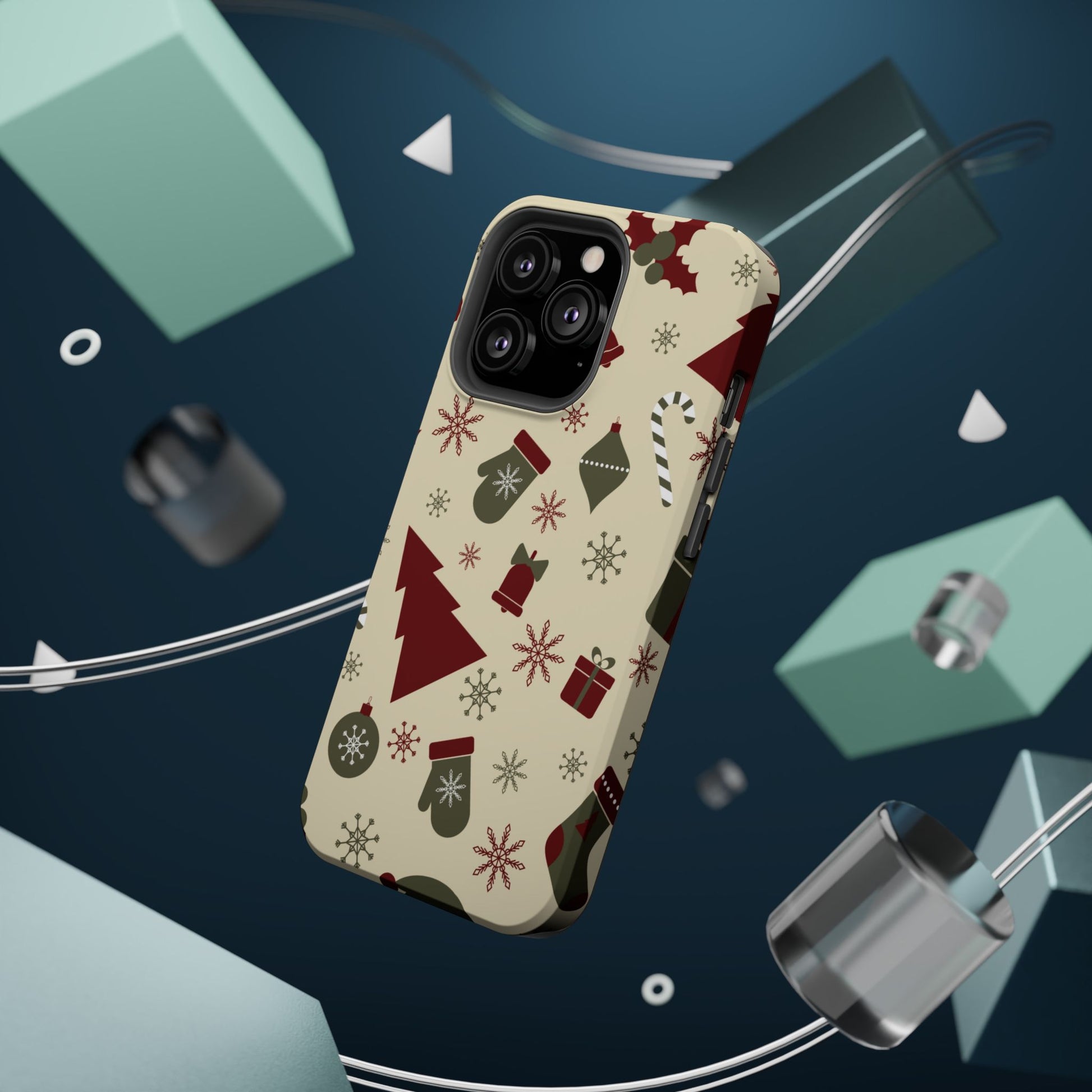 Embrace the spirit of the season with our Vintage Holiday Cheer MagSafe iPhone Case! This charming design showcases festive icons in classic red, green, and cream tones, including snowflakes, Christmas trees, candy canes, and gift boxes, all set on a warm, beige background. Perfect for adding a touch of retro holiday style to your phone, this case brings nostalgic holiday vibes wherever you go. Crafted from durable materials, it provides reliable protection against everyday bumps and scratches while keeping your phone lightweight and sleek. Celebrate the holidays in style with this festive, functional case!