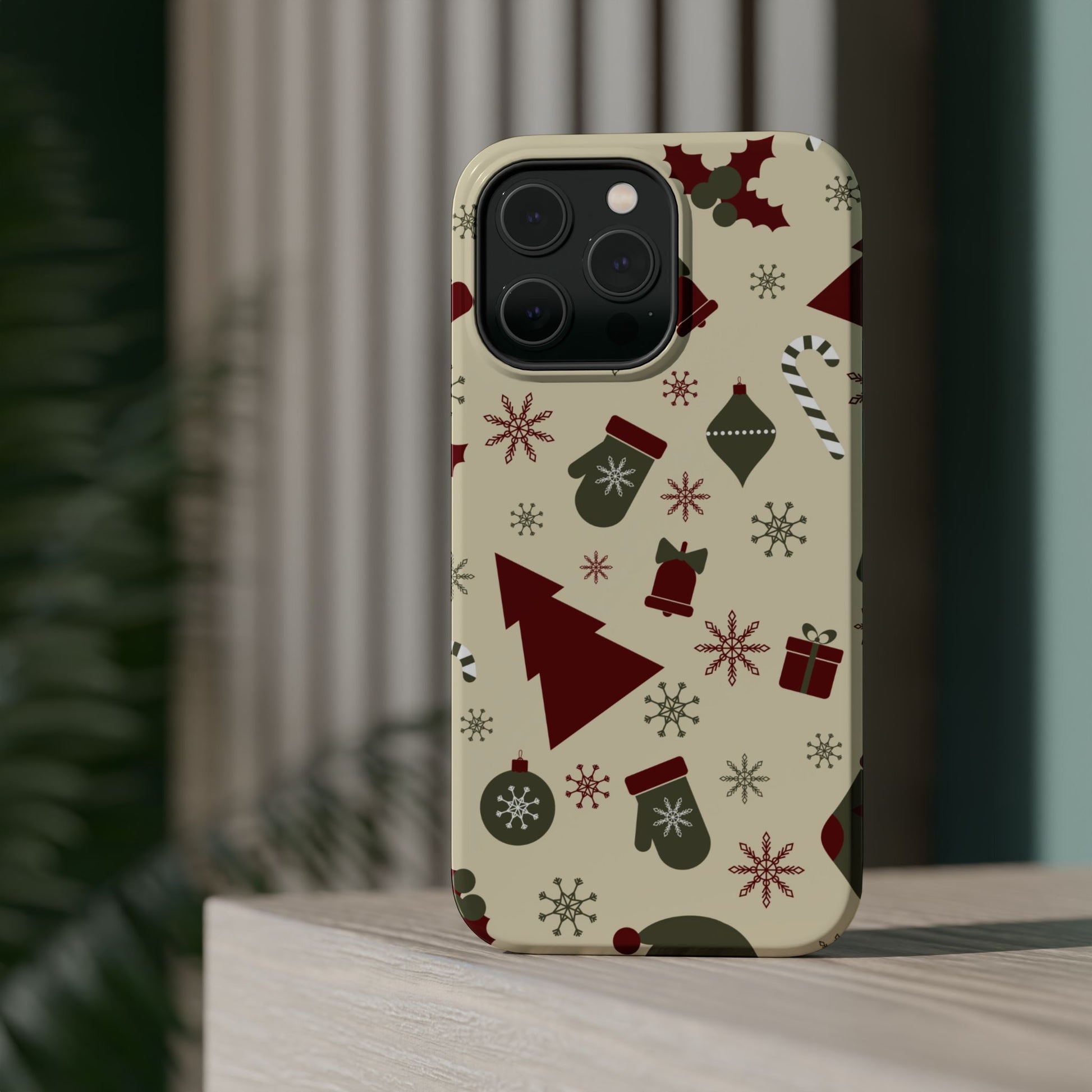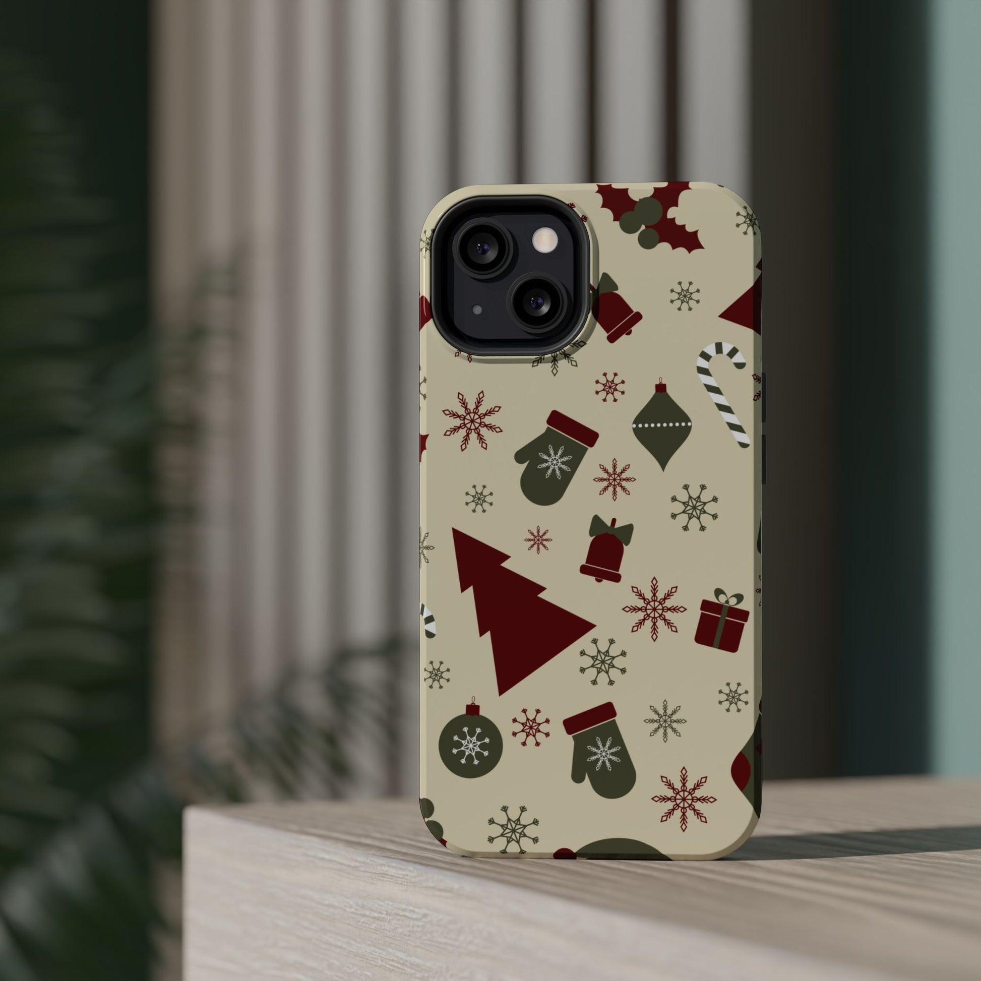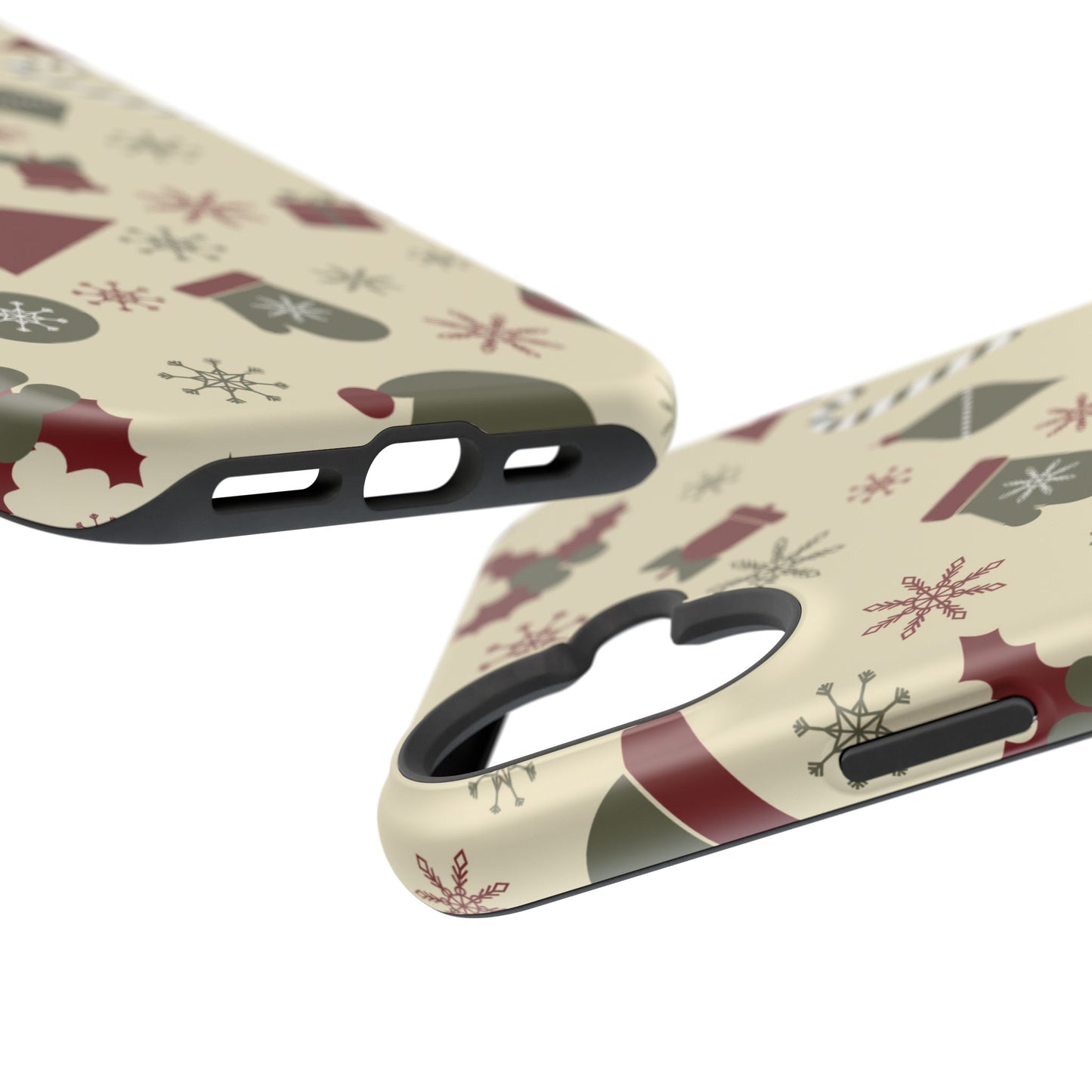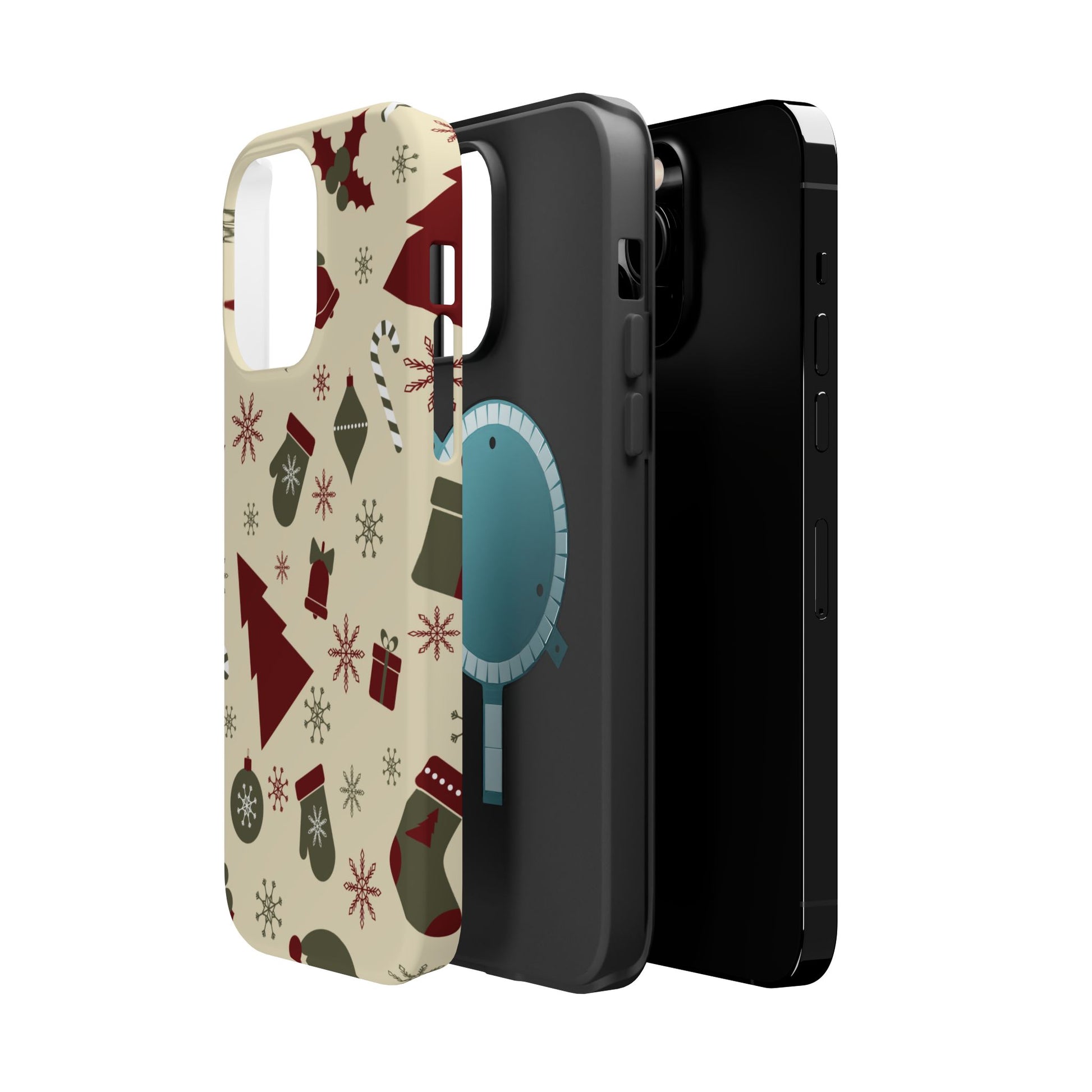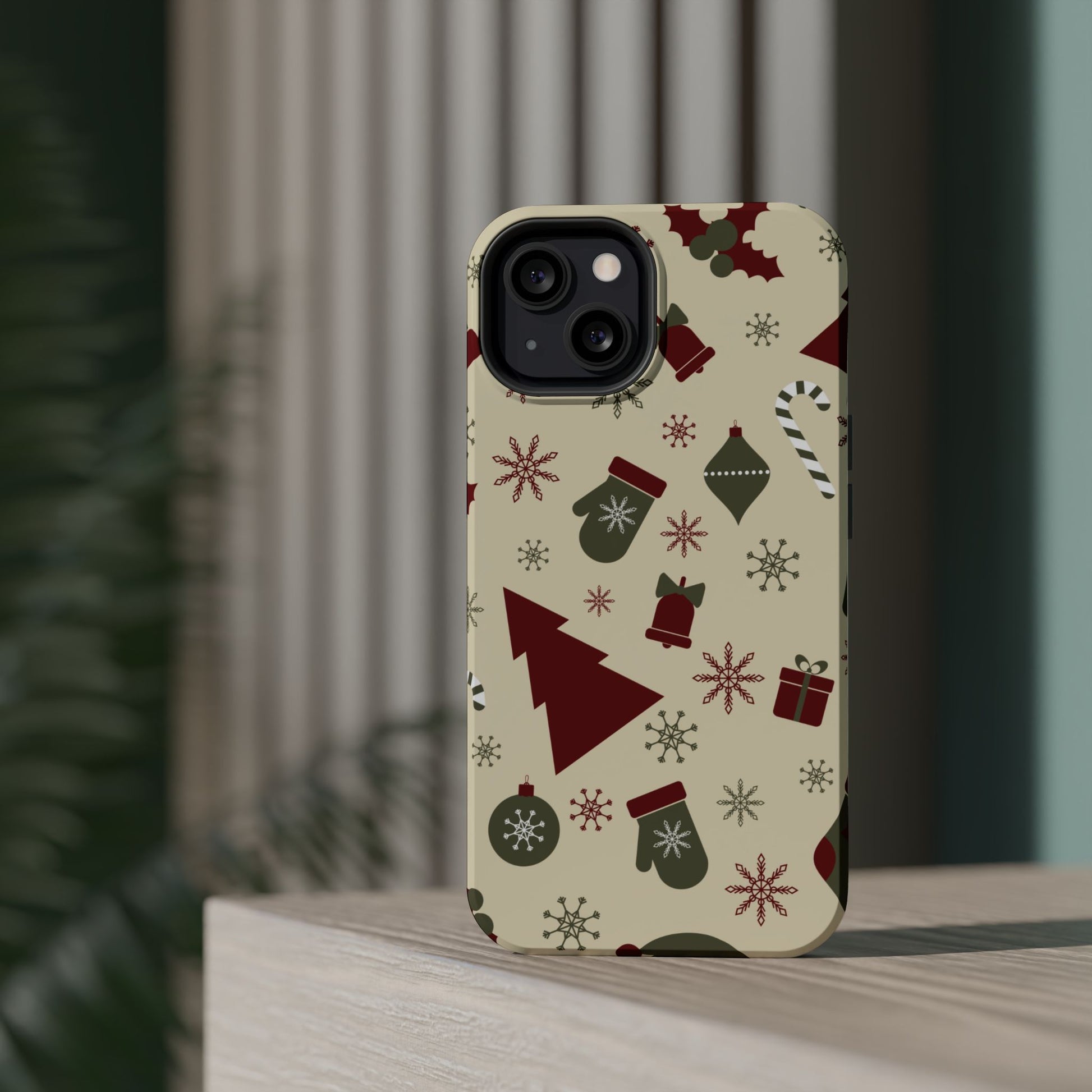 Embrace the spirit of the season with our Vintage Holiday Cheer MagSafe iPhone Case! This charming design showcases festive icons in classic red, green, and cream tones, including snowflakes, Christmas trees, candy canes, and gift boxes, all set on a warm, beige background. Perfect for adding a touch of retro holiday style to your phone, this case brings nostalgic holiday vibes wherever you go. Crafted from durable materials, it provides reliable protection against everyday bumps and scratches while keeping your phone lightweight and sleek. Celebrate the holidays in style with this festive, functional case!