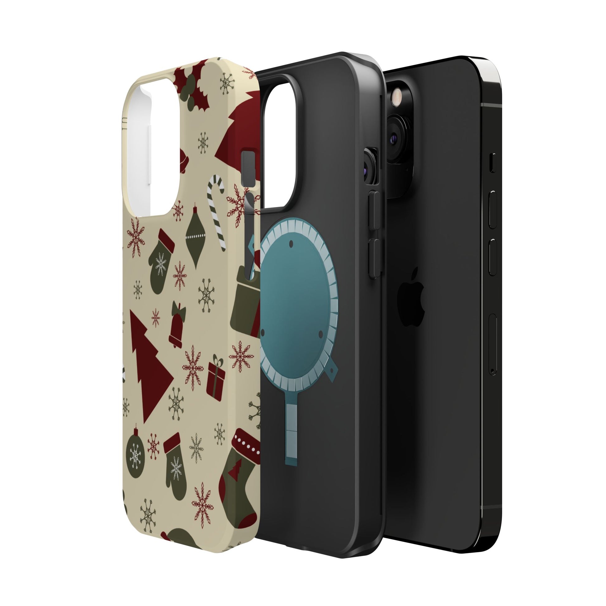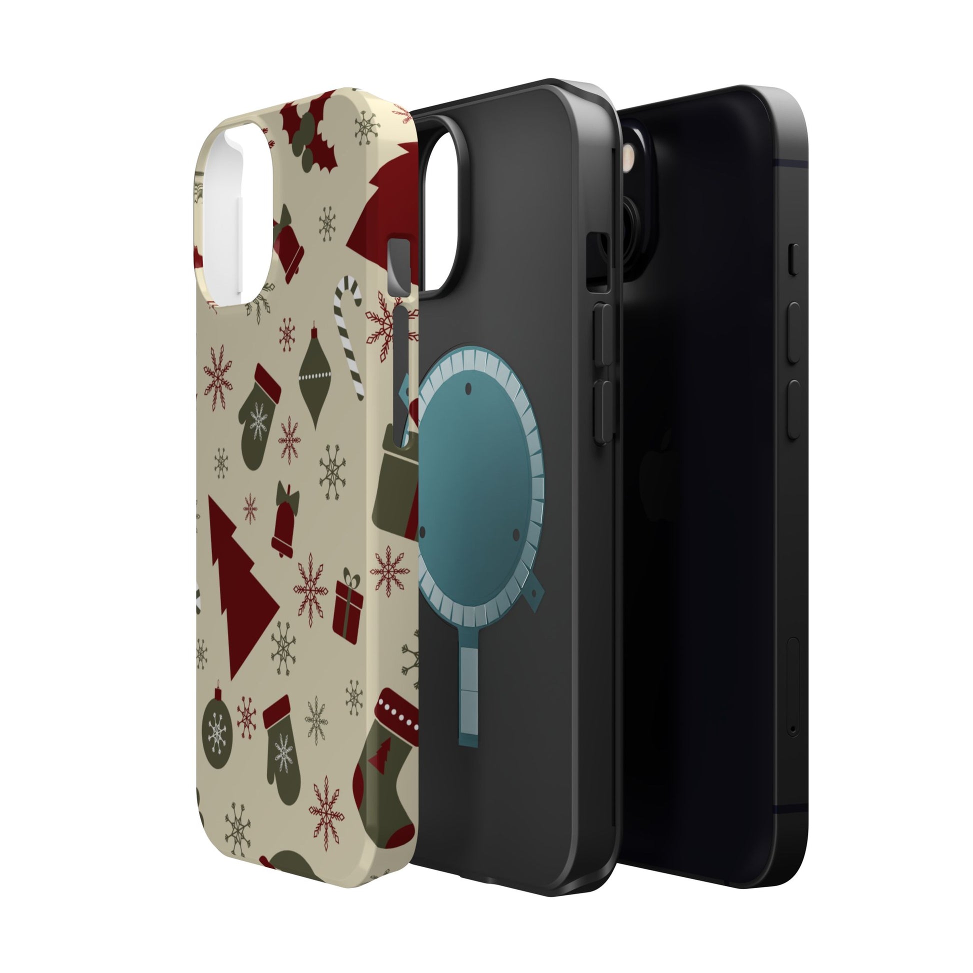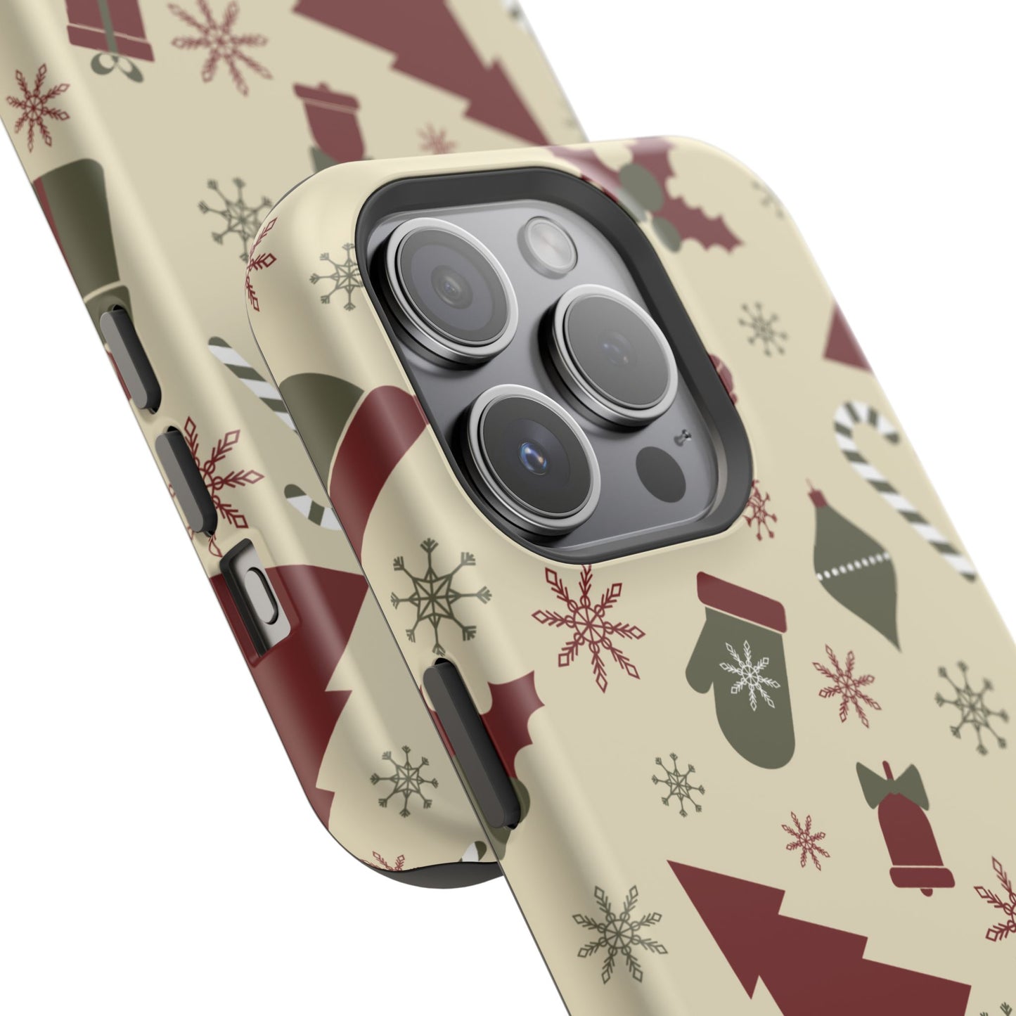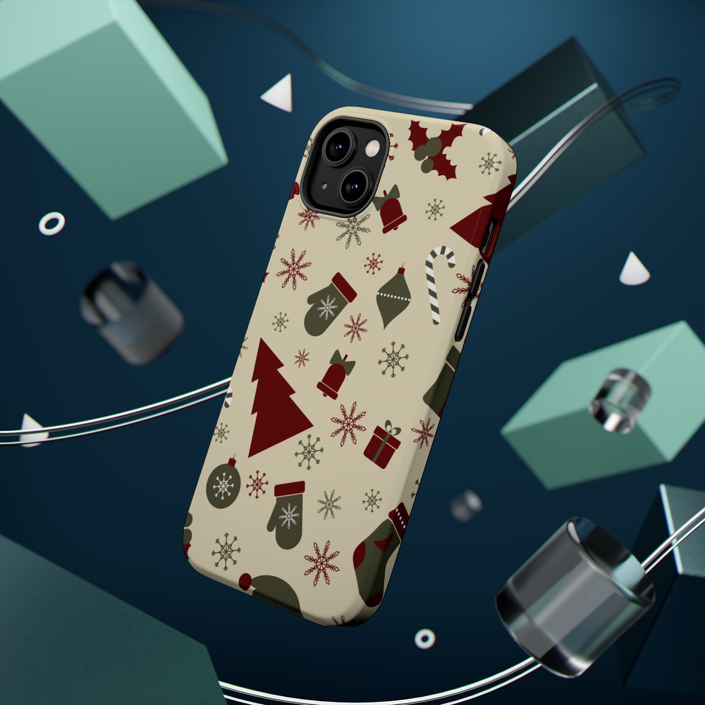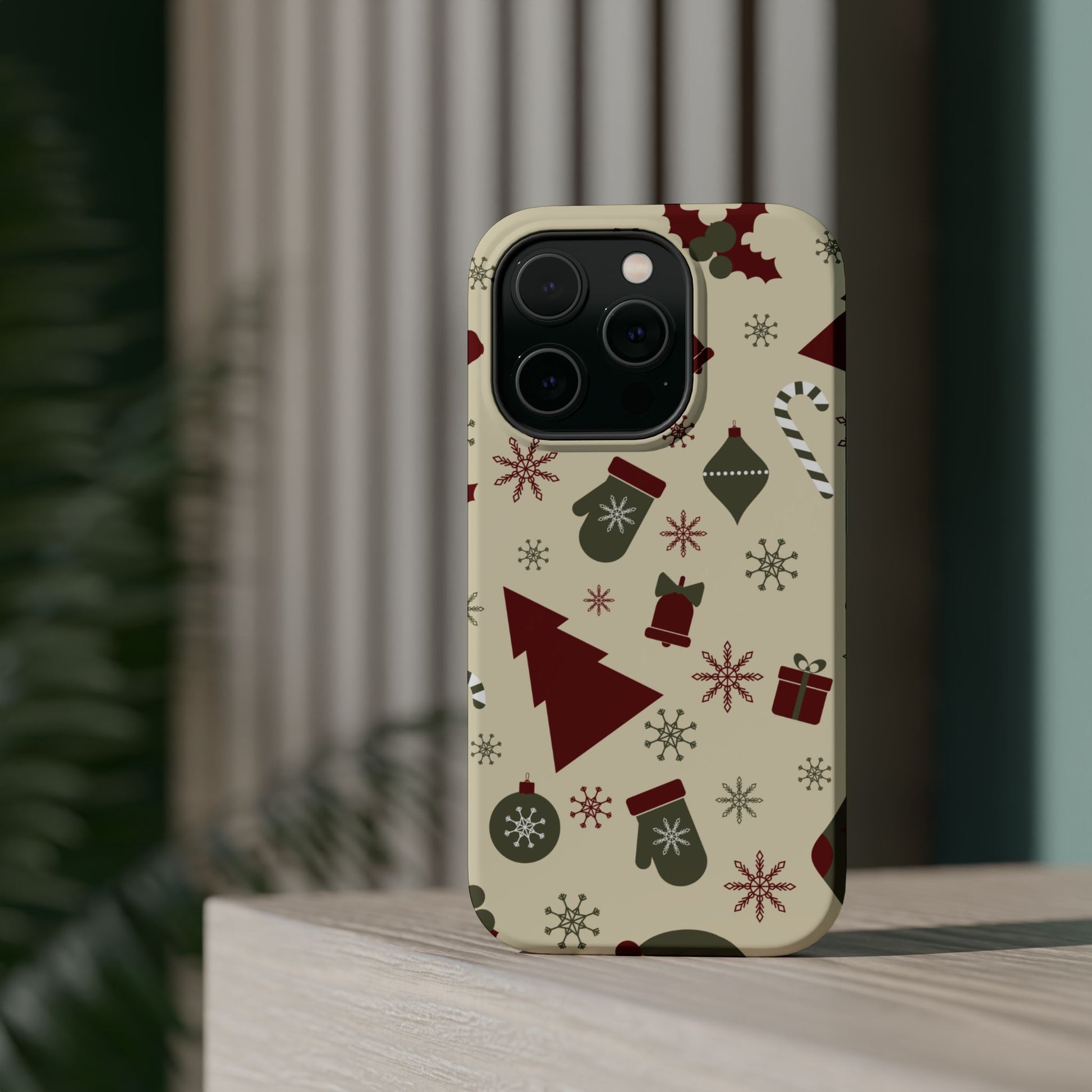Embrace the spirit of the season with our Vintage Holiday Cheer MagSafe iPhone Case! This charming design showcases festive icons in classic red, green, and cream tones, including snowflakes, Christmas trees, candy canes, and gift boxes, all set on a warm, beige background. Perfect for adding a touch of retro holiday style to your phone, this case brings nostalgic holiday vibes wherever you go. Crafted from durable materials, it provides reliable protection against everyday bumps and scratches while keeping your phone lightweight and sleek. Celebrate the holidays in style with this festive, functional case!